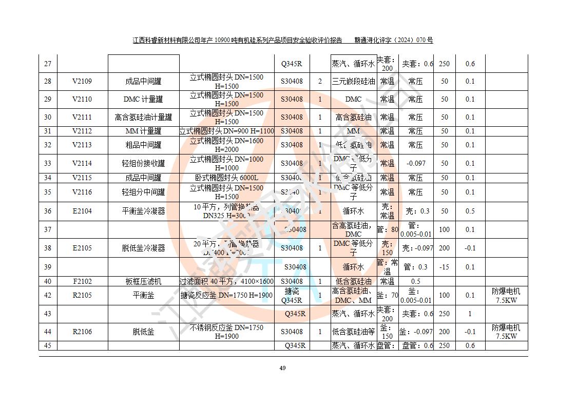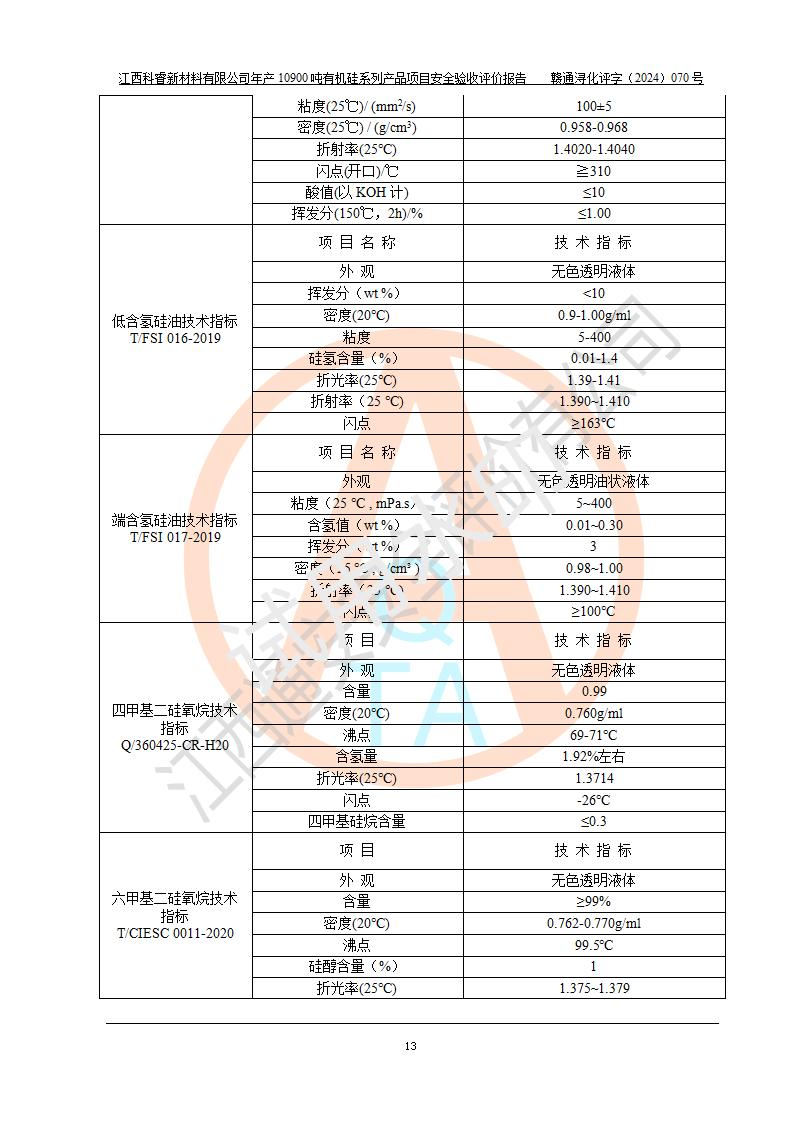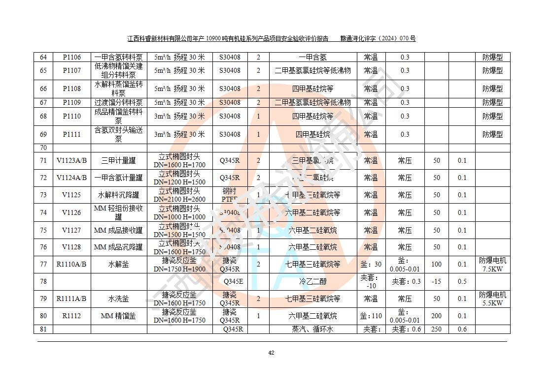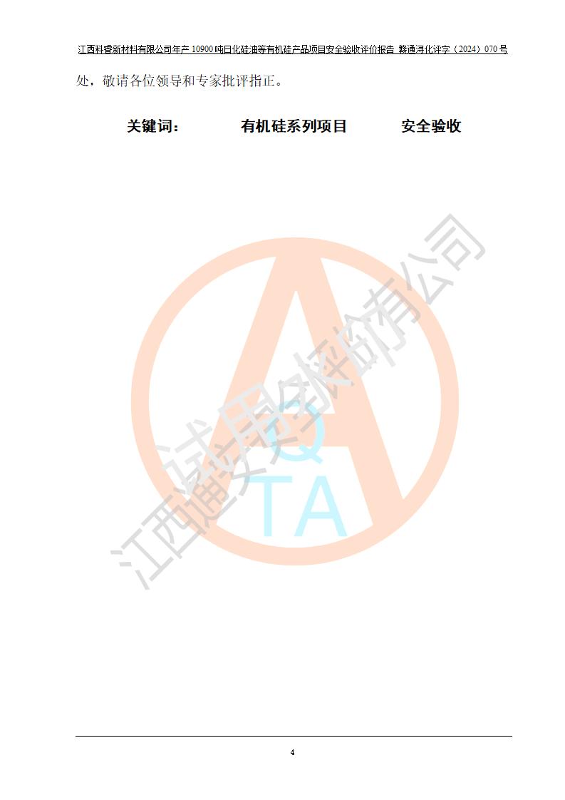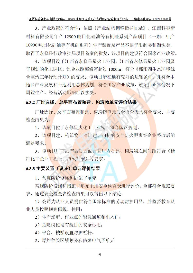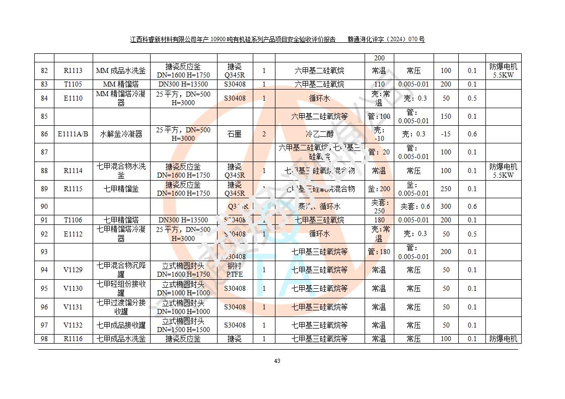 評(píng)價(jià)報(bào)告名稱 | 江西科睿新材料有限公司年產(chǎn)12900噸日化硅油等有機(jī)硅系列產(chǎn)品項(xiàng)目 (一期:年產(chǎn)10900噸日化硅油等有機(jī)硅系列)安全驗(yàn)收評(píng)價(jià) | |||||