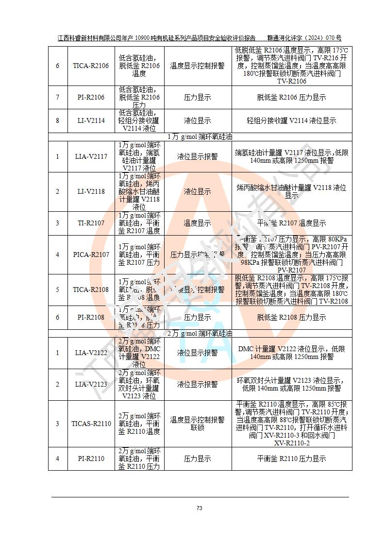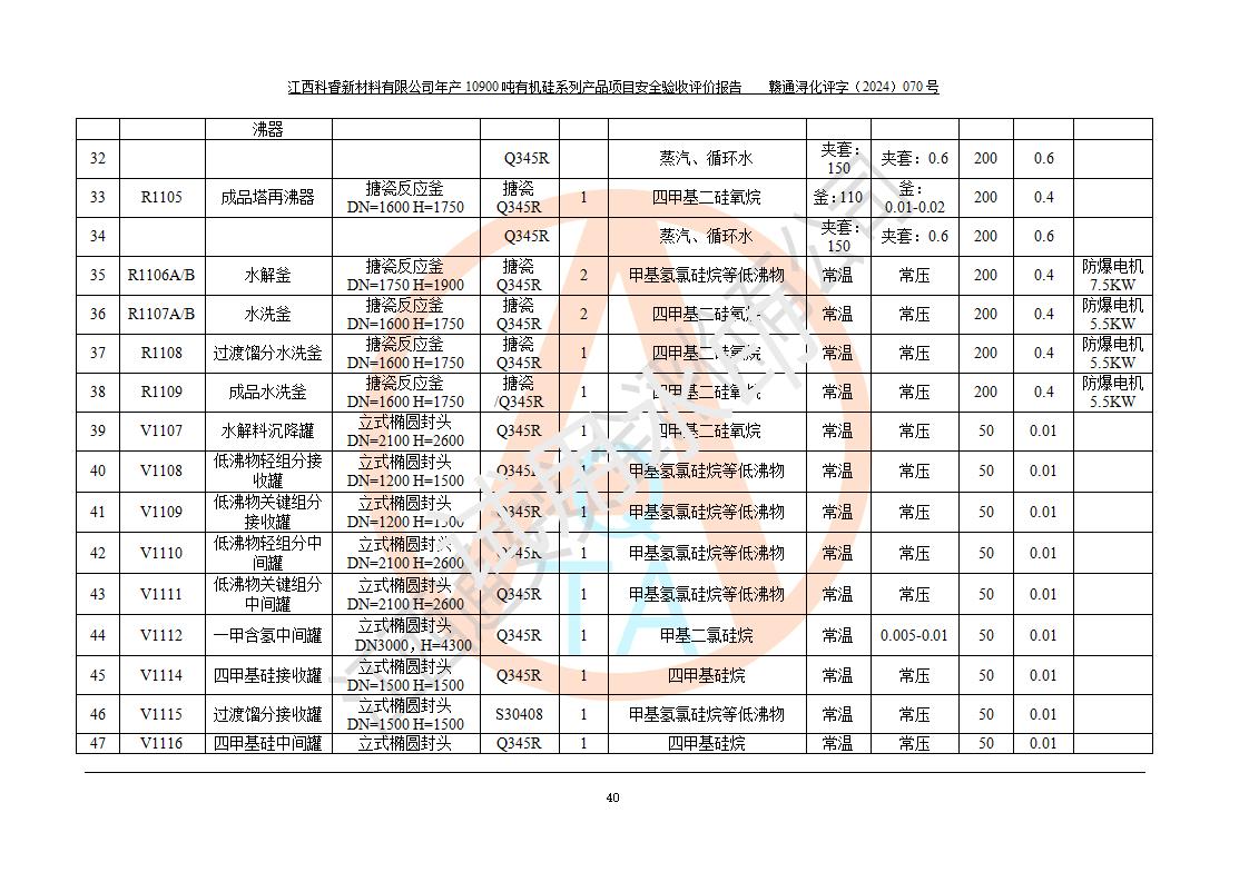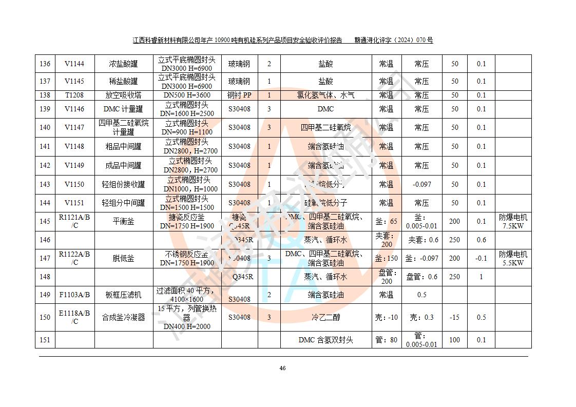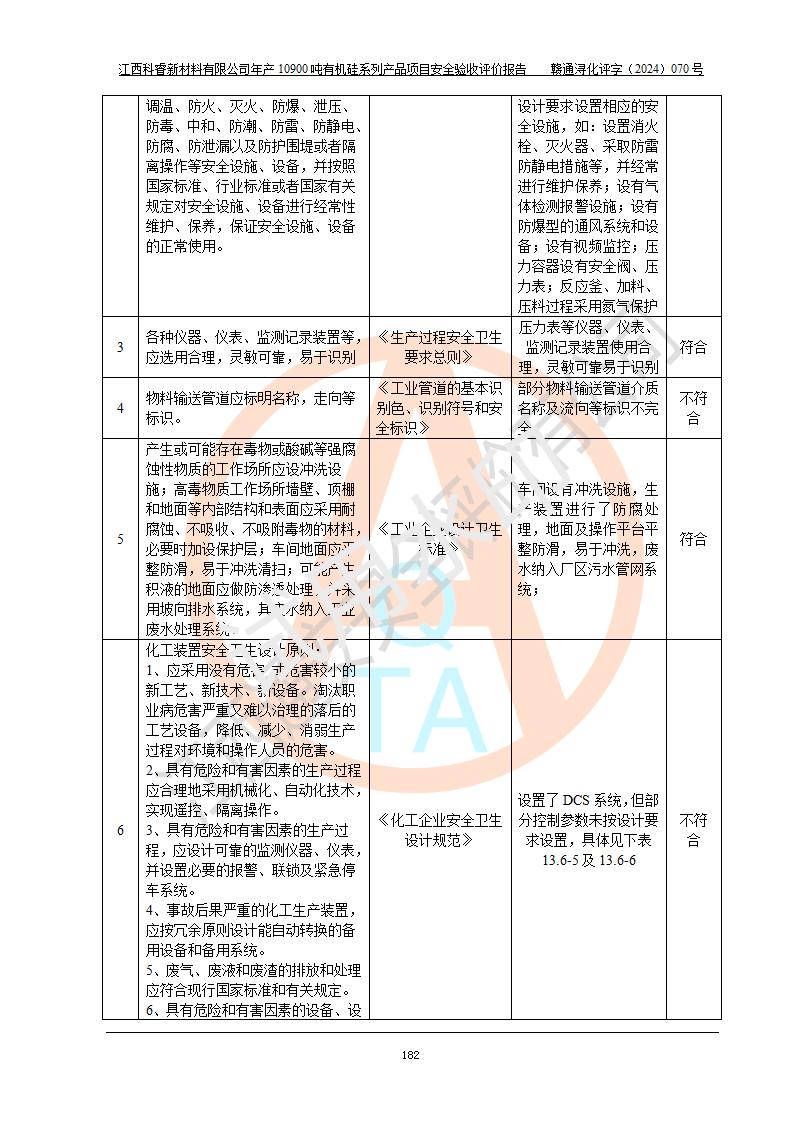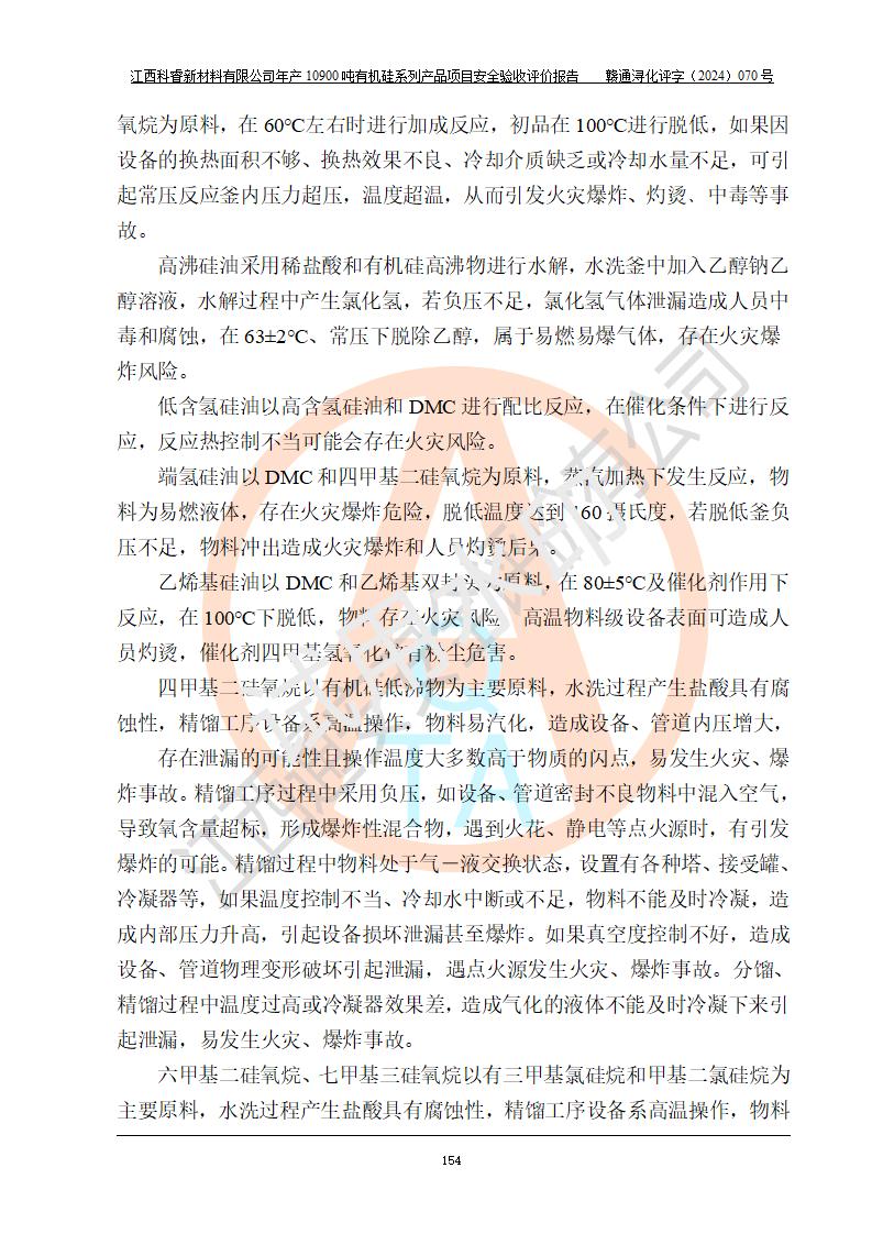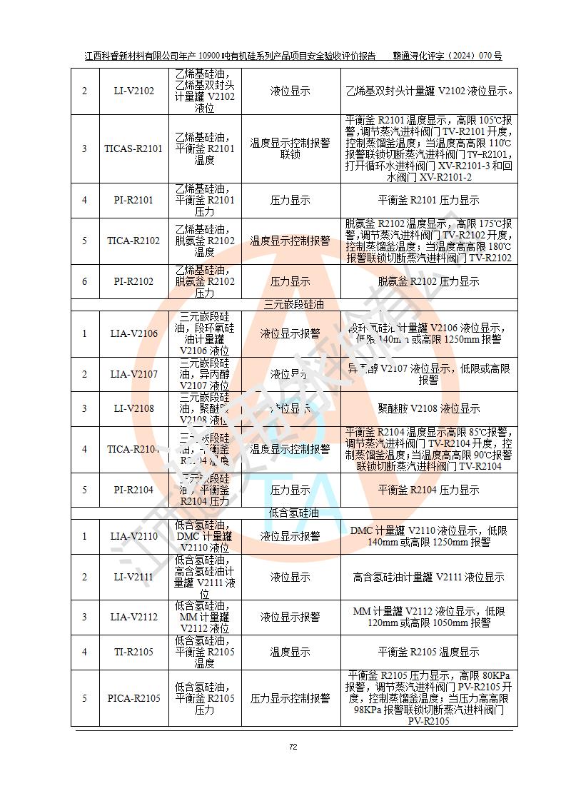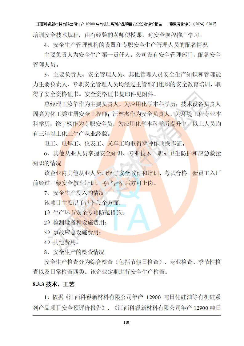 評(píng)價(jià)報(bào)告名稱 | 江西科睿新材料有限公司年產(chǎn)12900噸日化硅油等有機(jī)硅系列產(chǎn)品項(xiàng)目 (一期:年產(chǎn)10900噸日化硅油等有機(jī)硅系列)安全驗(yàn)收評(píng)價(jià) | |||||