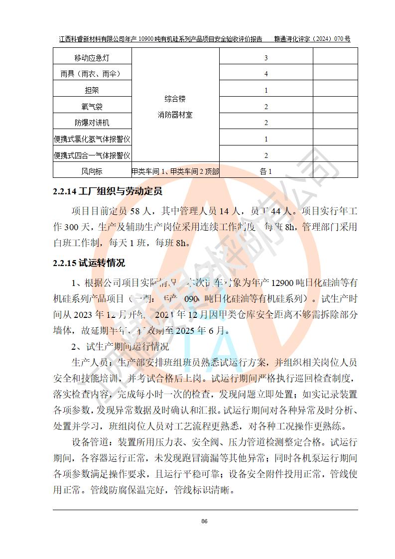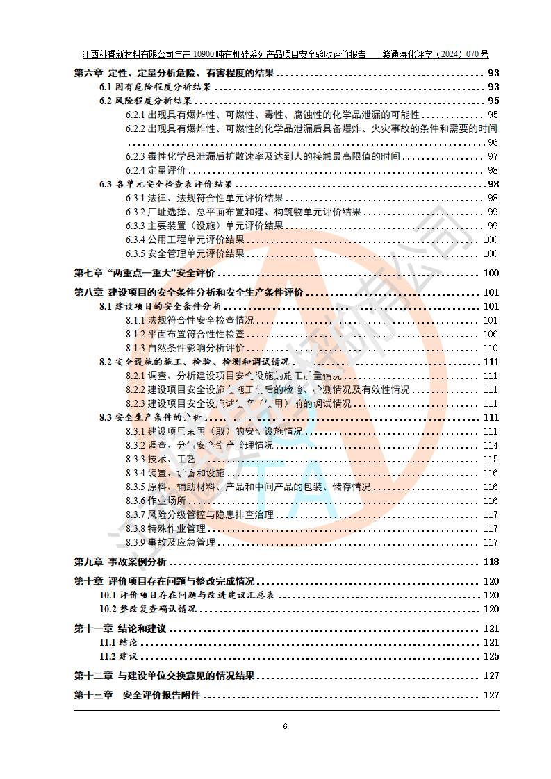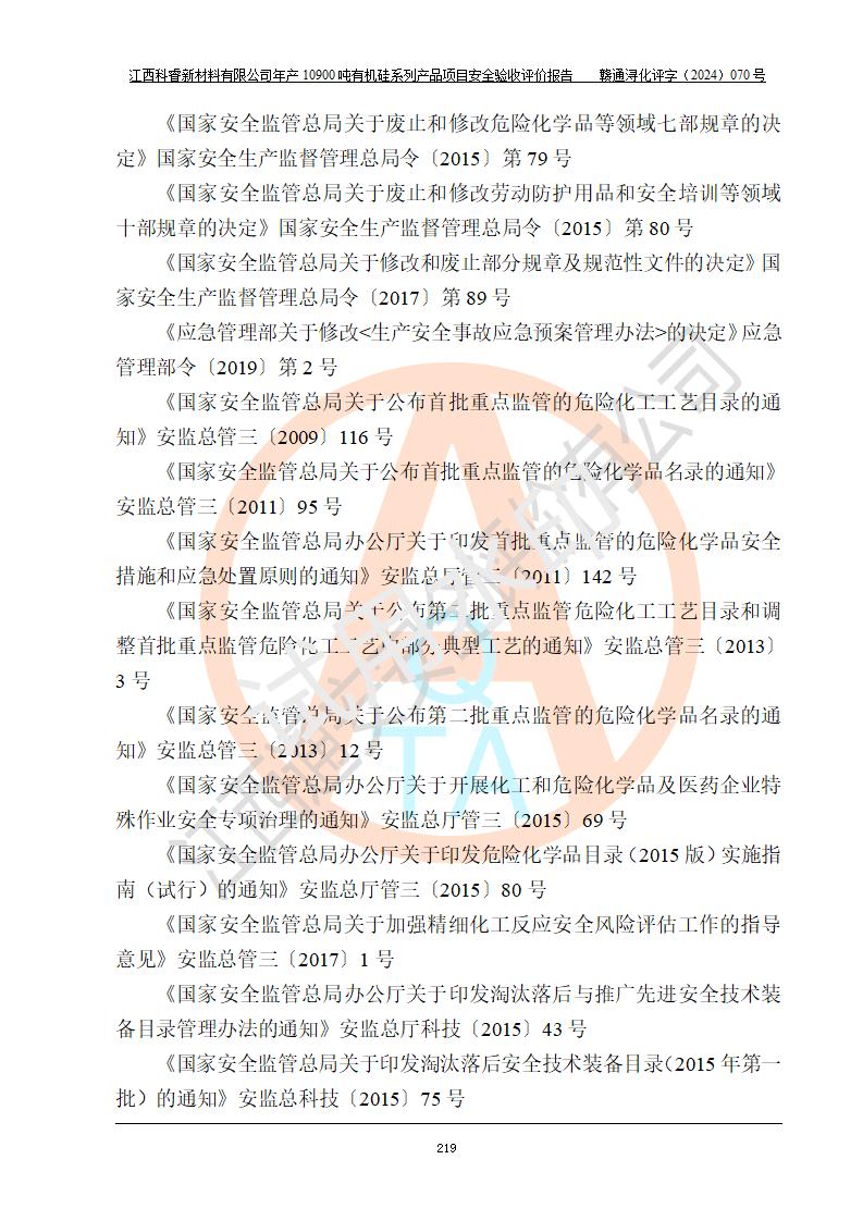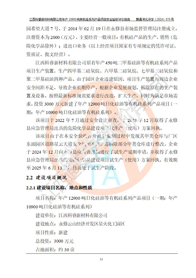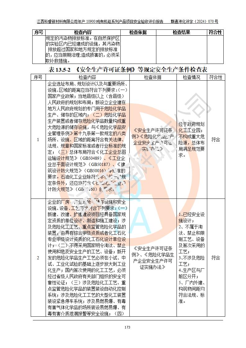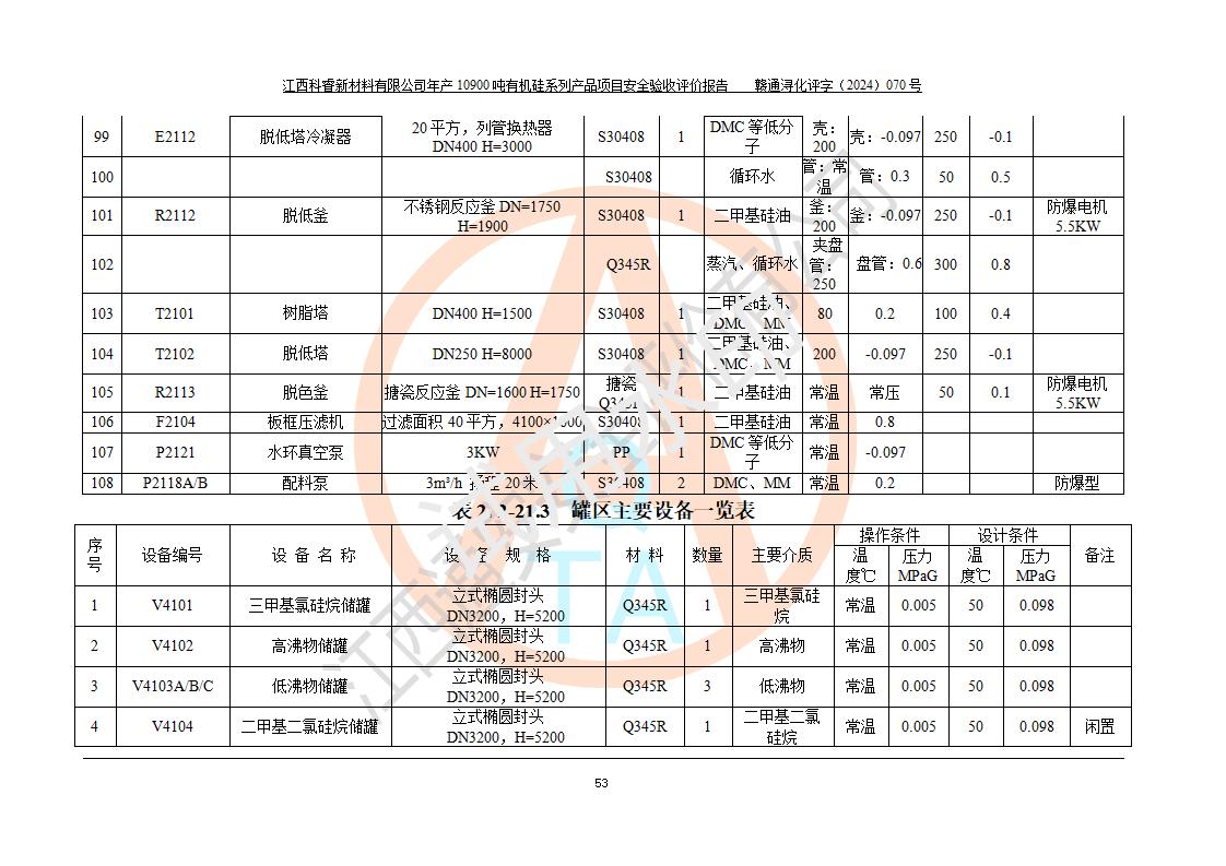 評(píng)價(jià)報(bào)告名稱 | 江西科睿新材料有限公司年產(chǎn)12900噸日化硅油等有機(jī)硅系列產(chǎn)品項(xiàng)目 (一期:年產(chǎn)10900噸日化硅油等有機(jī)硅系列)安全驗(yàn)收評(píng)價(jià) | |||||