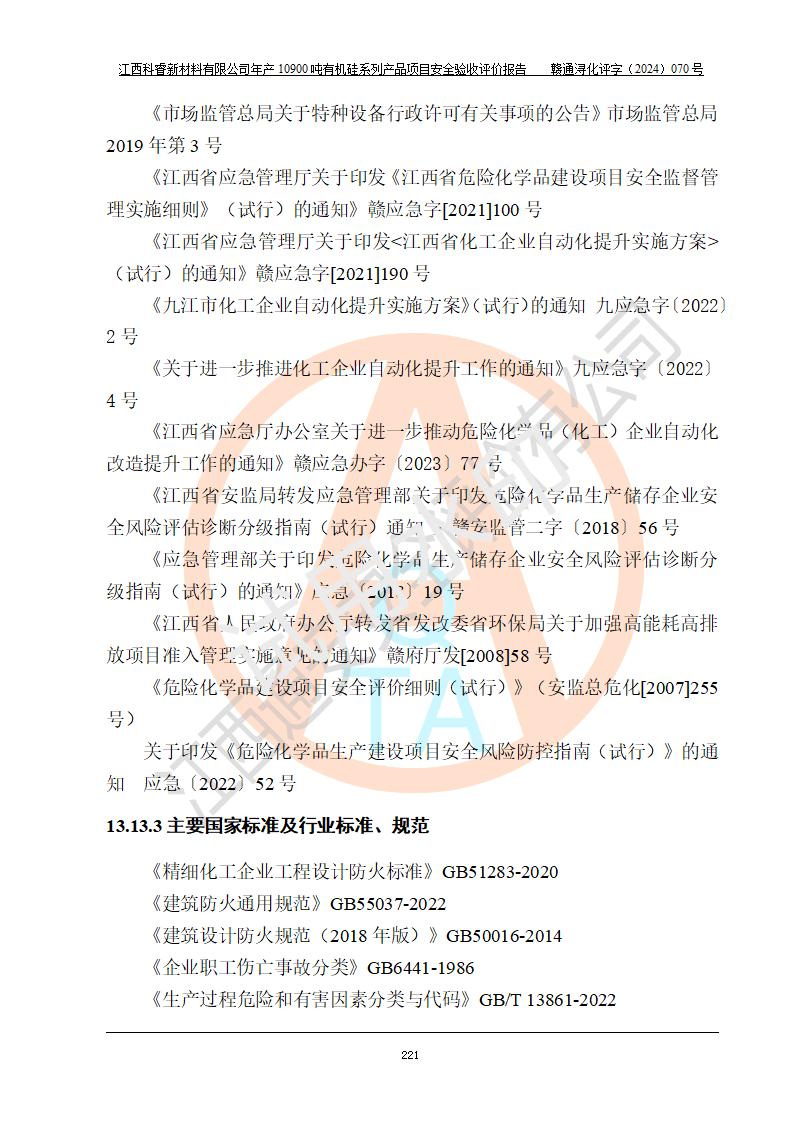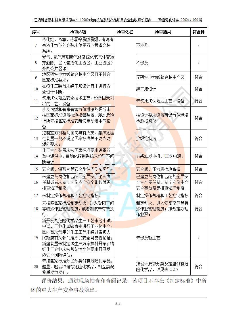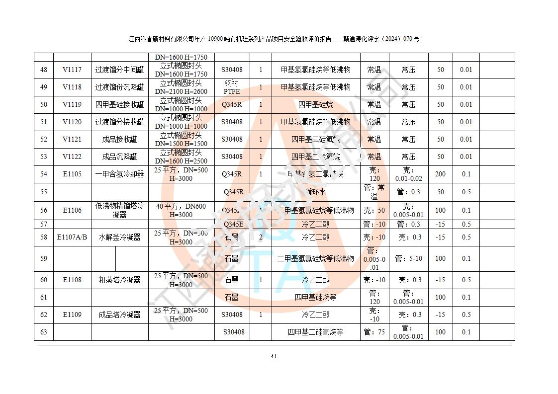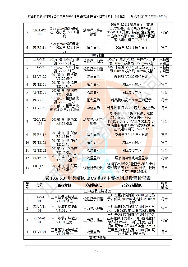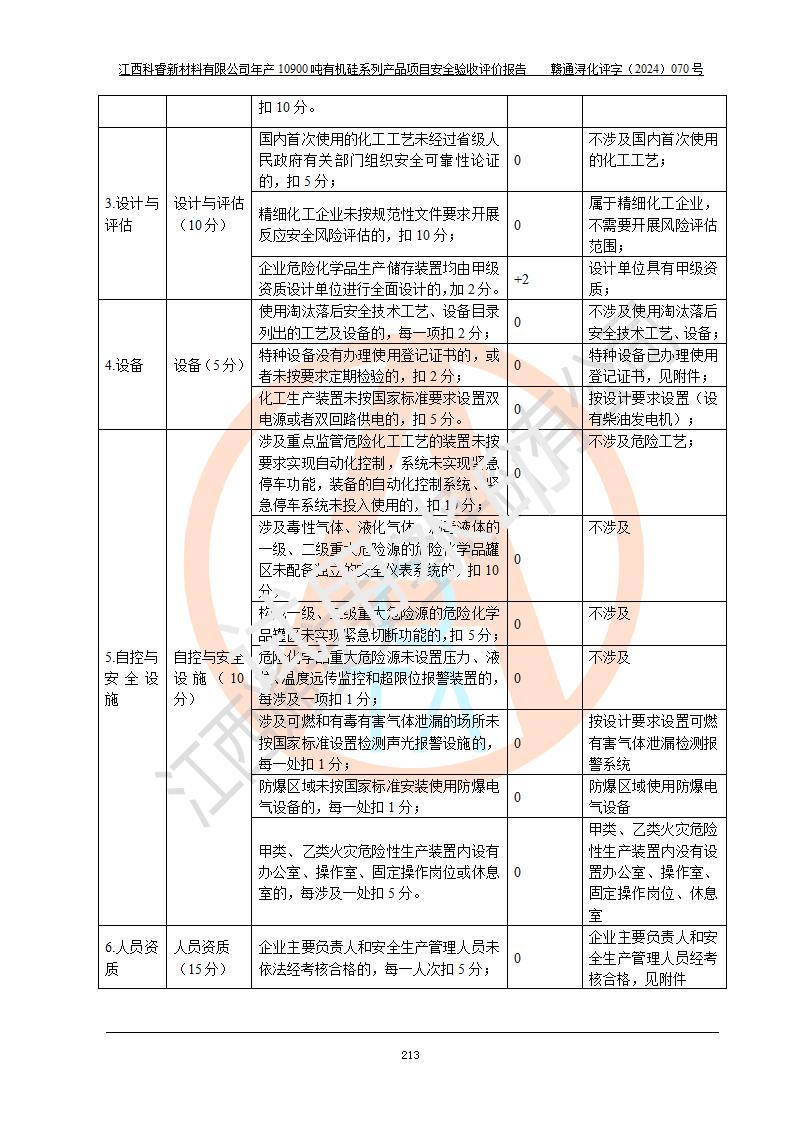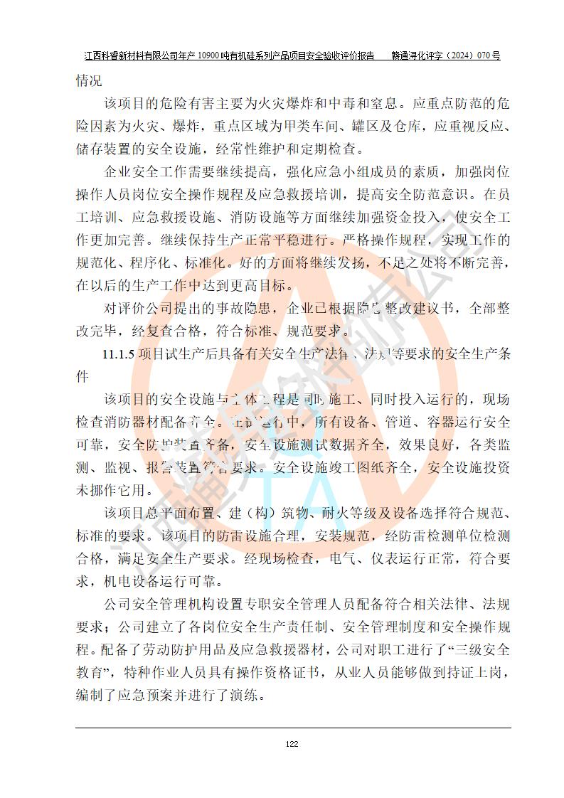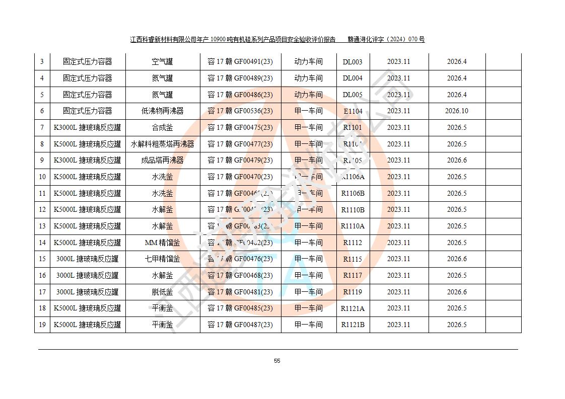 評(píng)價(jià)報(bào)告名稱 | 江西科睿新材料有限公司年產(chǎn)12900噸日化硅油等有機(jī)硅系列產(chǎn)品項(xiàng)目 (一期:年產(chǎn)10900噸日化硅油等有機(jī)硅系列)安全驗(yàn)收評(píng)價(jià) | |||||