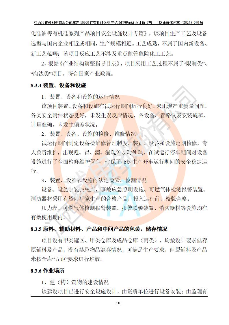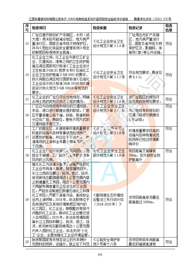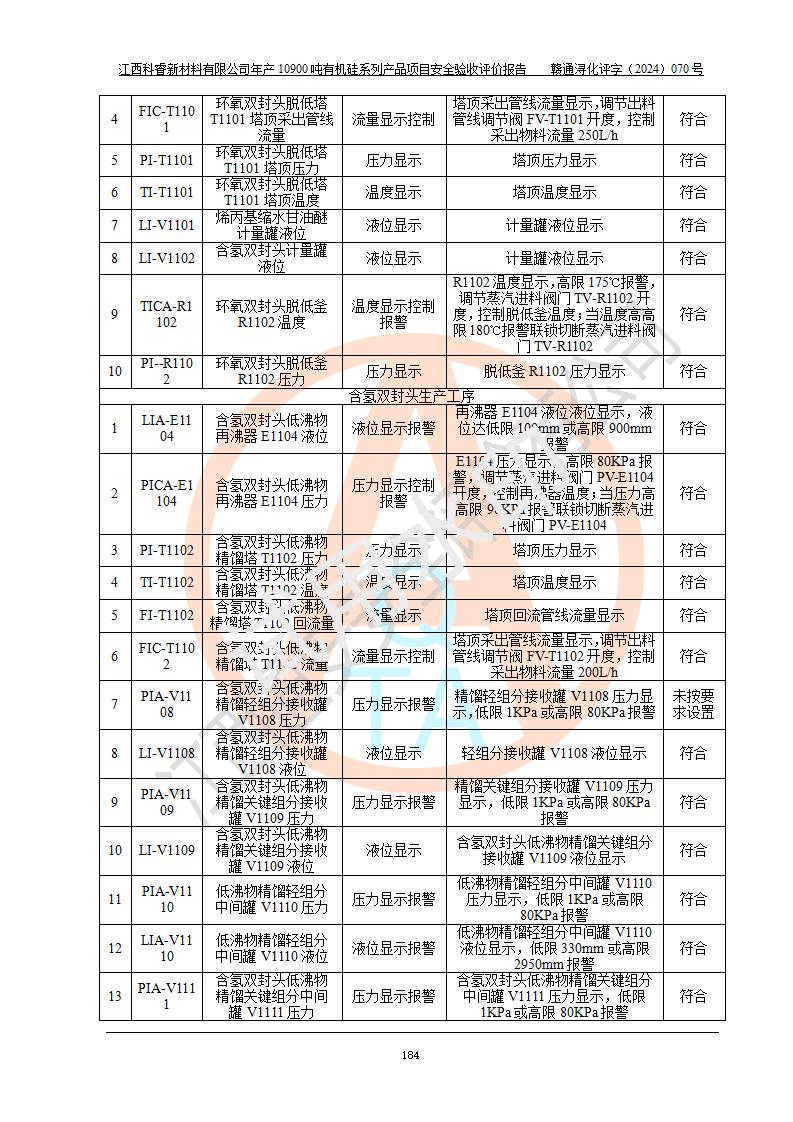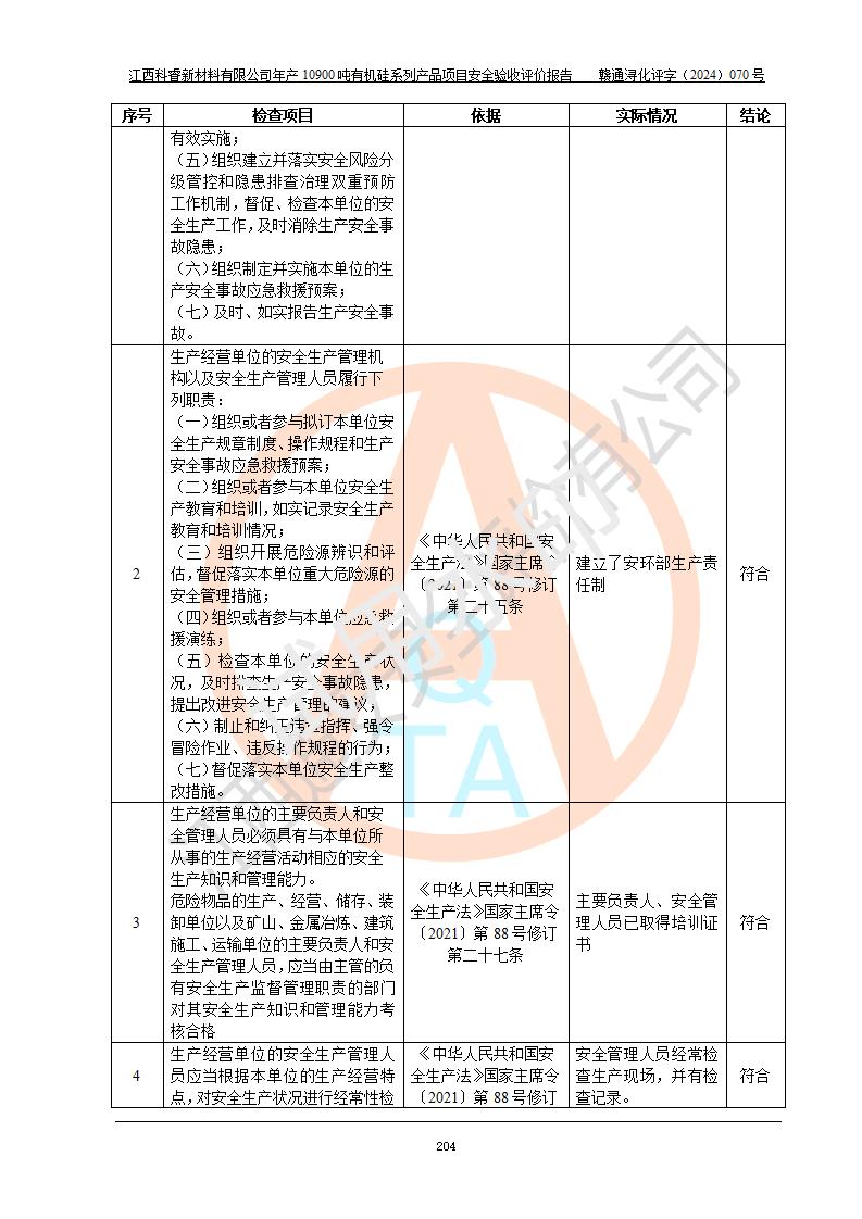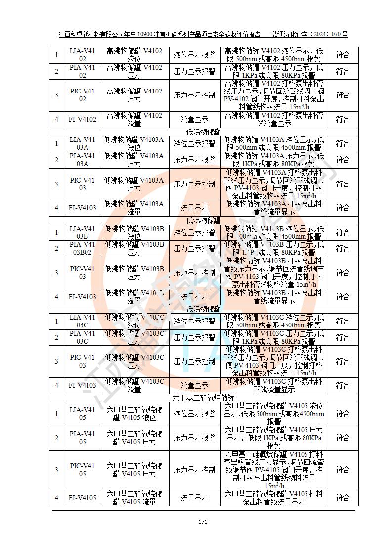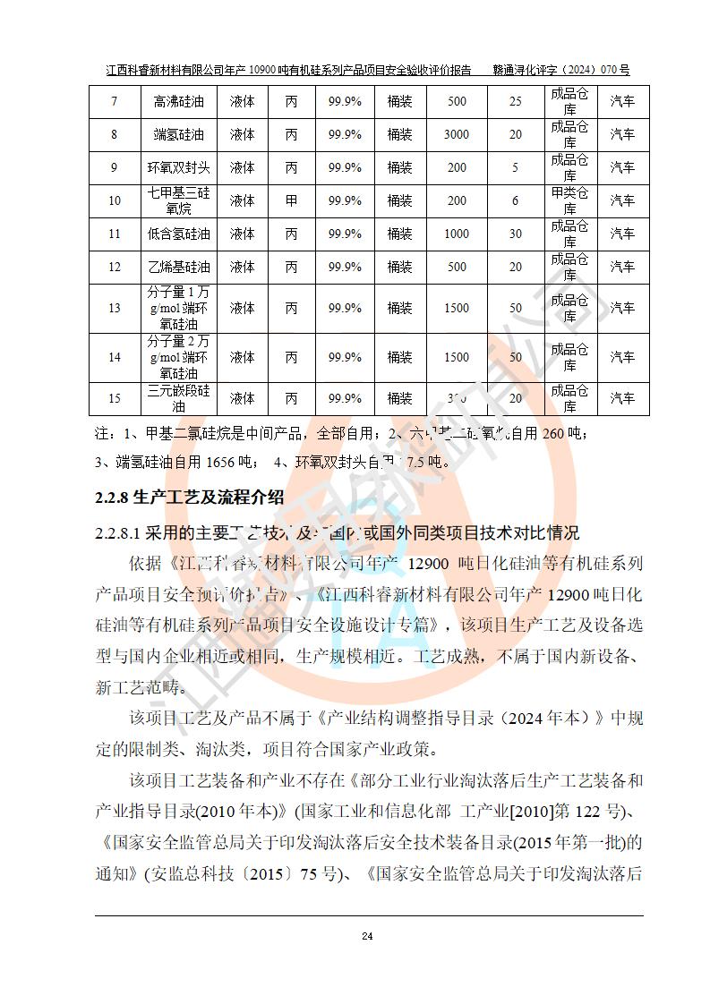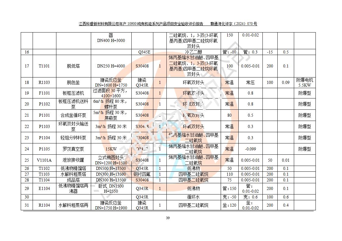 評(píng)價(jià)報(bào)告名稱 | 江西科睿新材料有限公司年產(chǎn)12900噸日化硅油等有機(jī)硅系列產(chǎn)品項(xiàng)目 (一期:年產(chǎn)10900噸日化硅油等有機(jī)硅系列)安全驗(yàn)收評(píng)價(jià) | |||||
