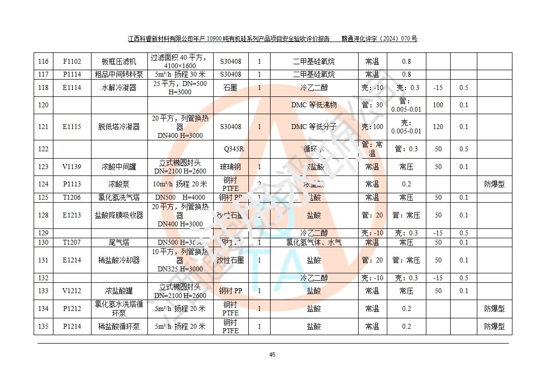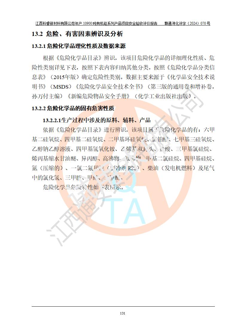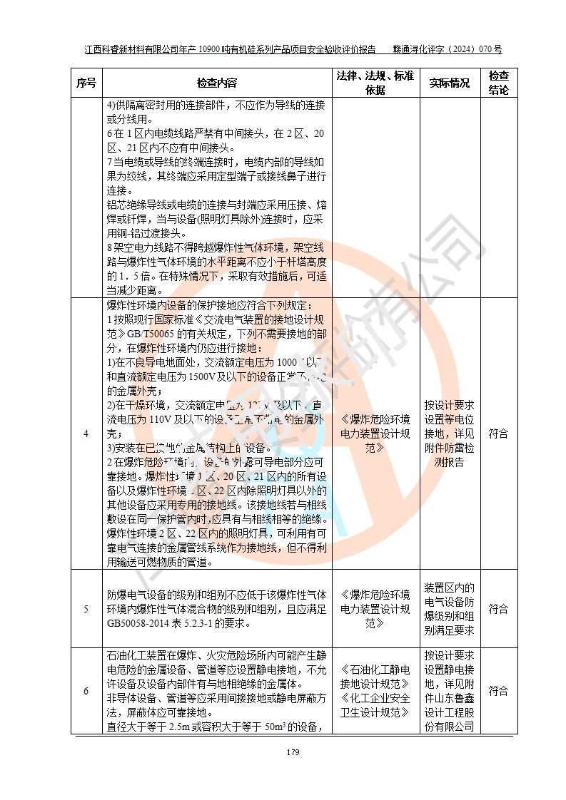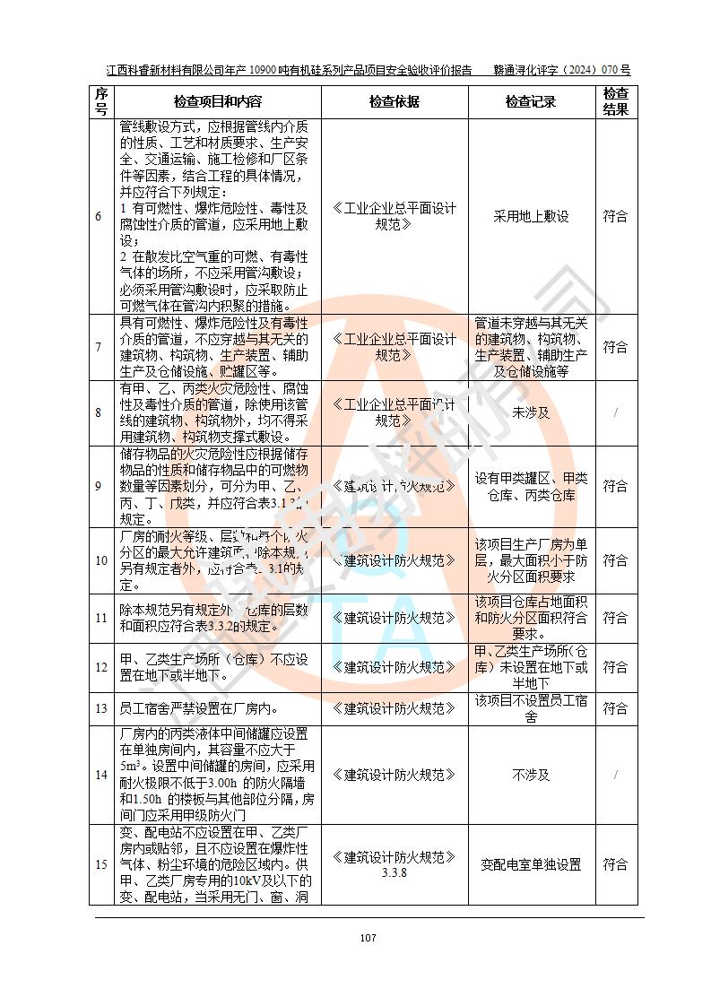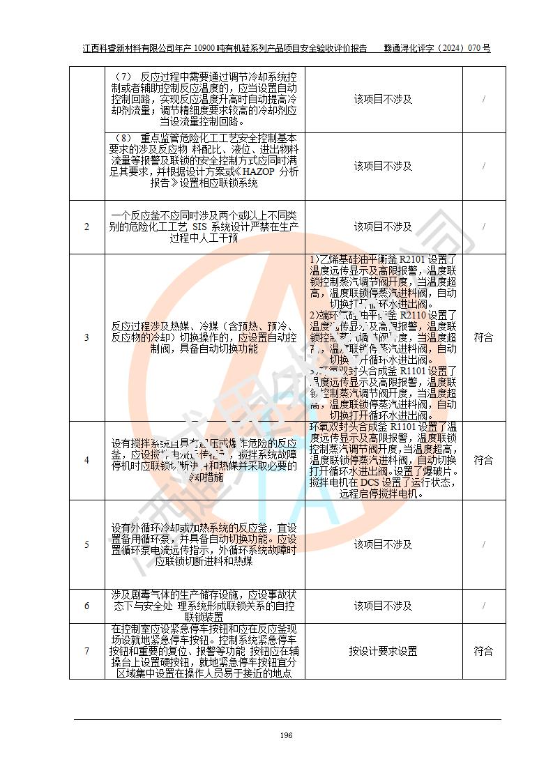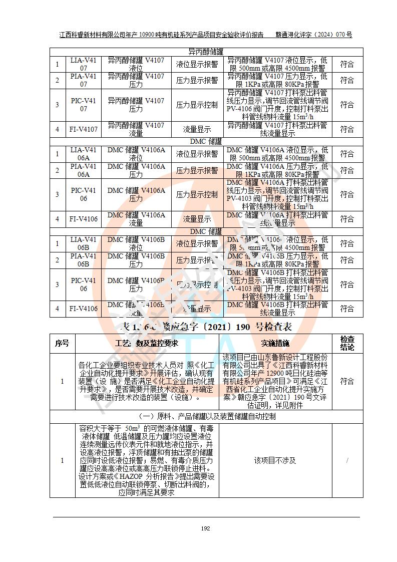 評(píng)價(jià)報(bào)告名稱 | 江西科睿新材料有限公司年產(chǎn)12900噸日化硅油等有機(jī)硅系列產(chǎn)品項(xiàng)目 (一期:年產(chǎn)10900噸日化硅油等有機(jī)硅系列)安全驗(yàn)收評(píng)價(jià) | |||||