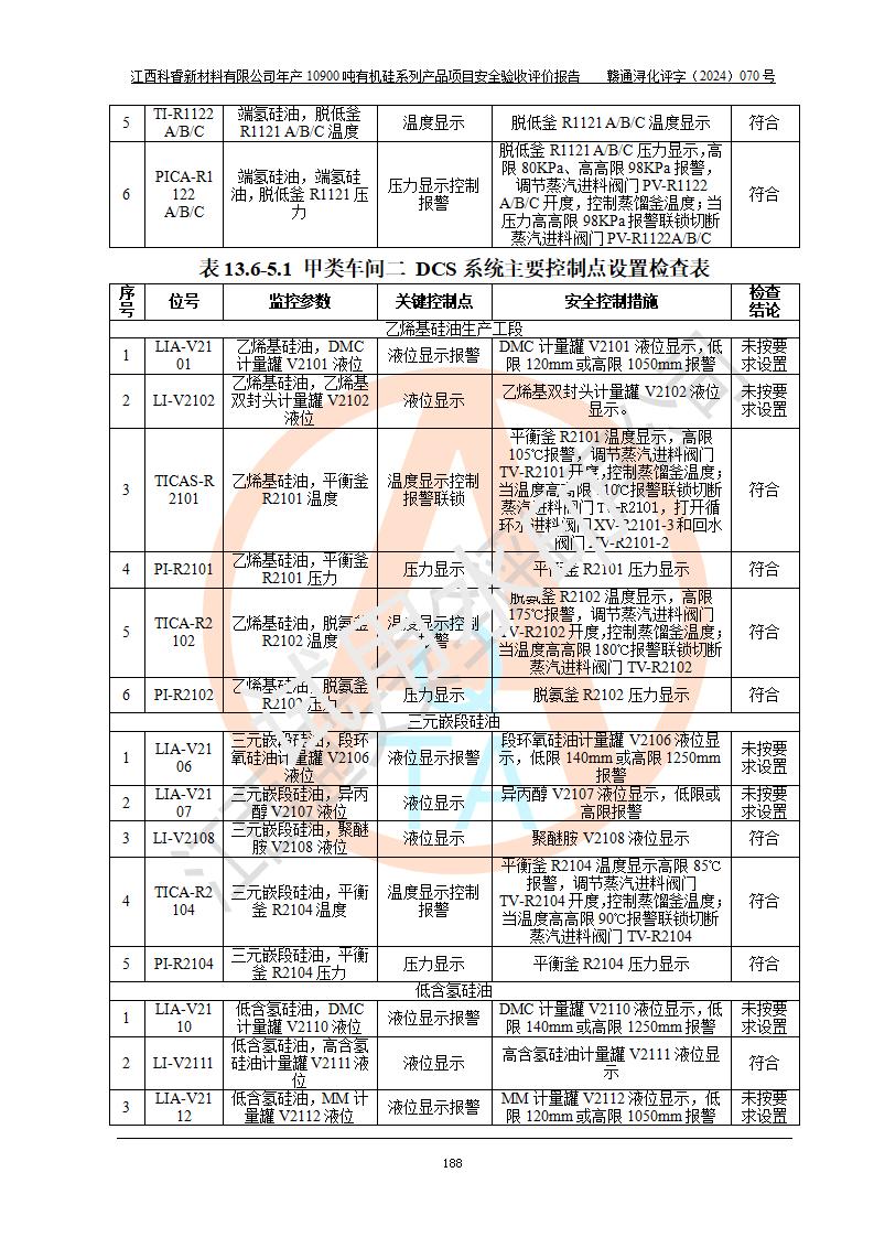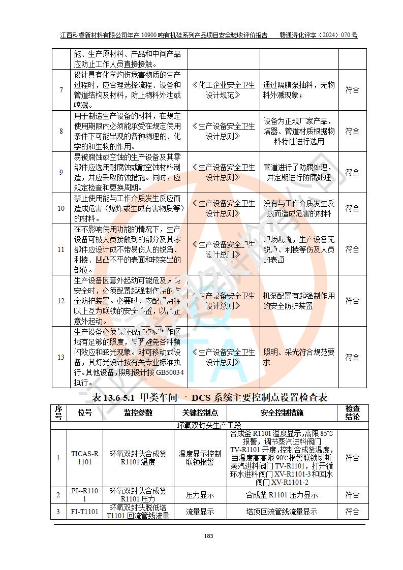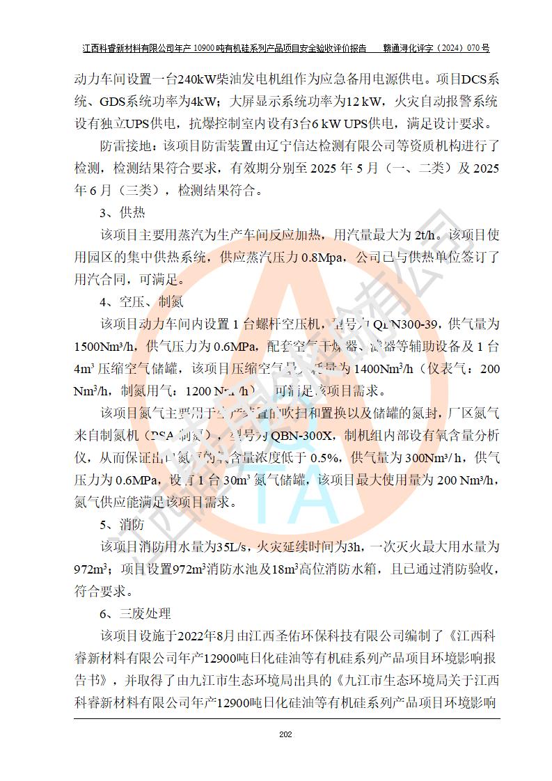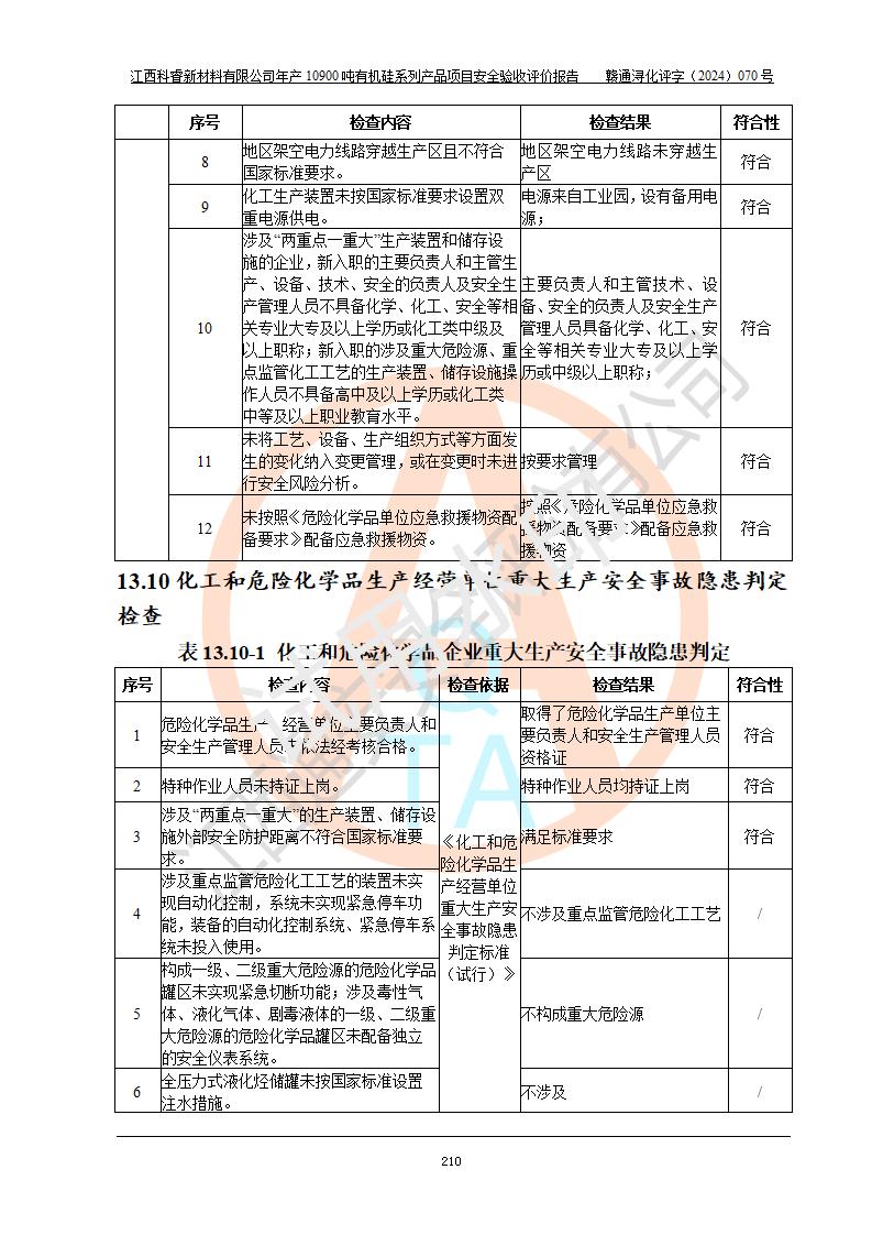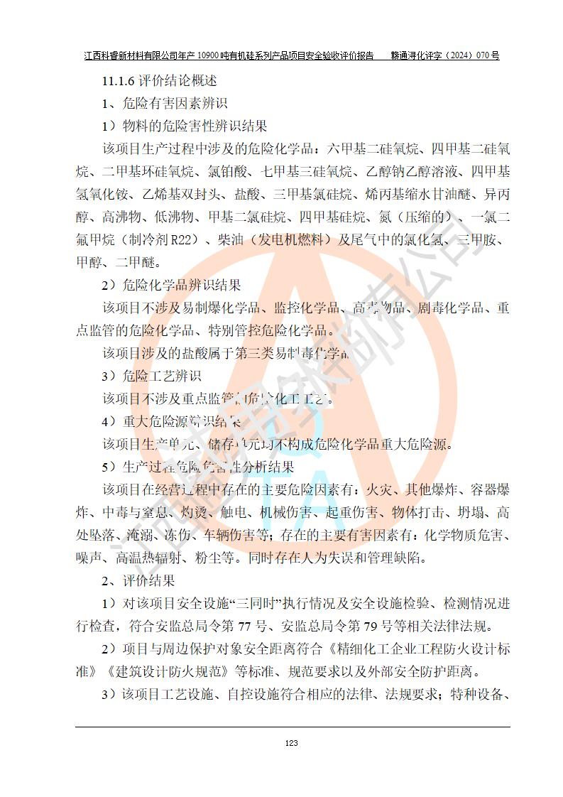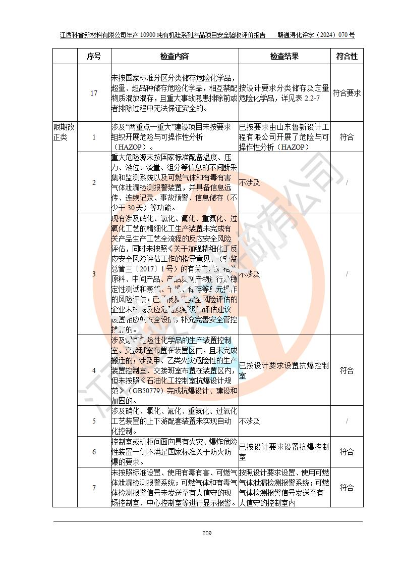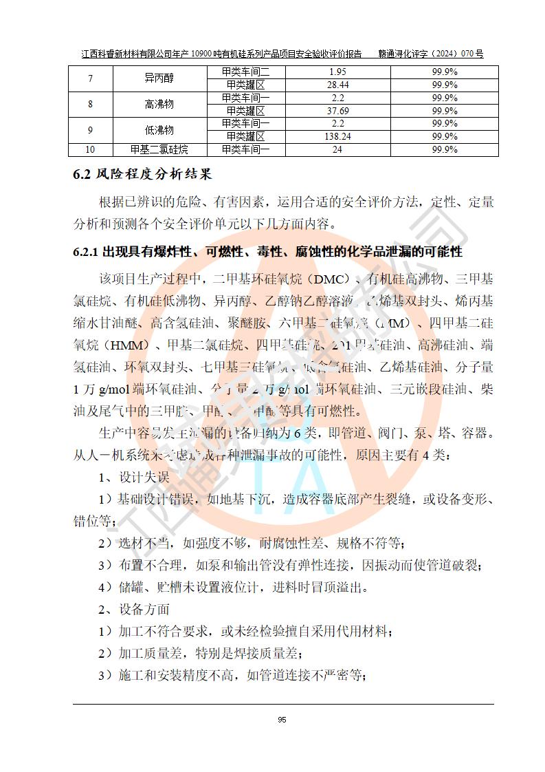 評(píng)價(jià)報(bào)告名稱 | 江西科睿新材料有限公司年產(chǎn)12900噸日化硅油等有機(jī)硅系列產(chǎn)品項(xiàng)目 (一期:年產(chǎn)10900噸日化硅油等有機(jī)硅系列)安全驗(yàn)收評(píng)價(jià) | |||||