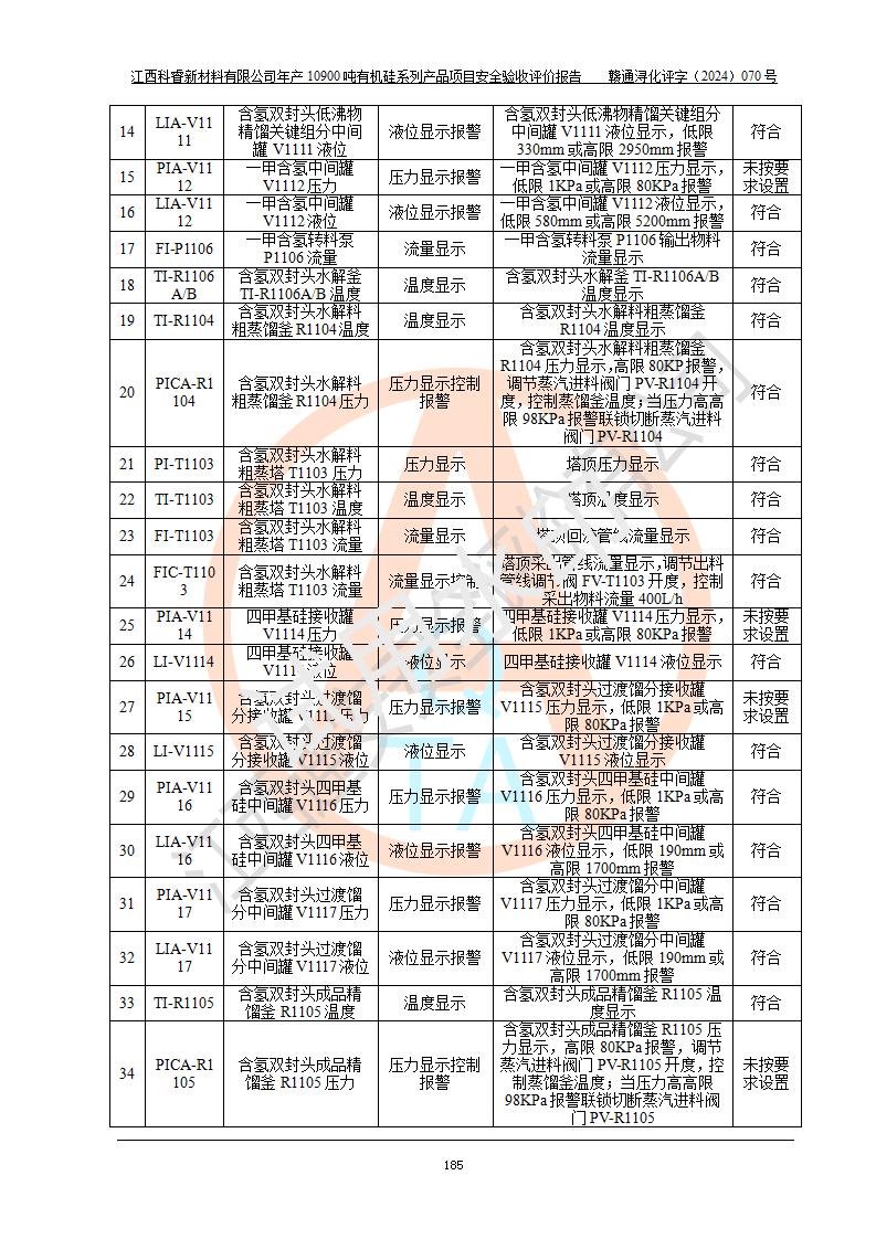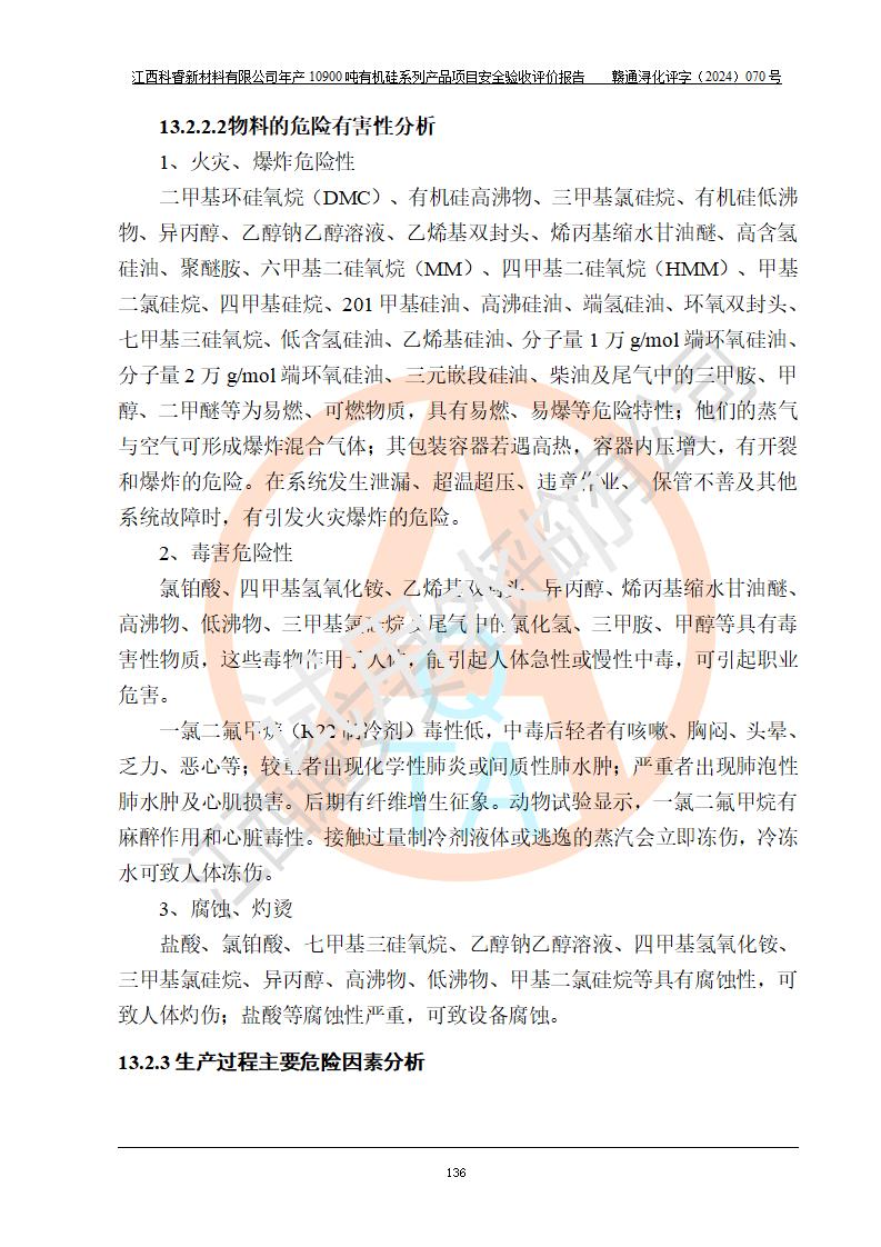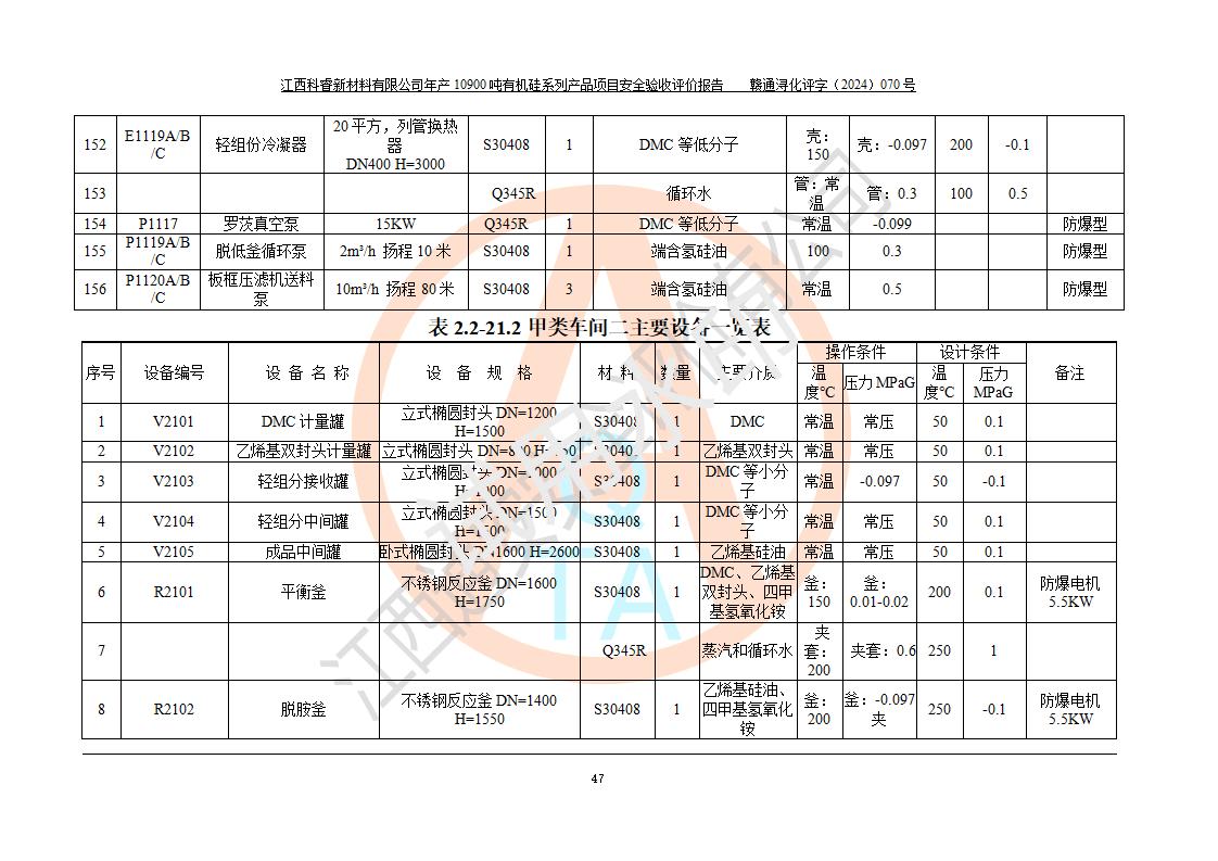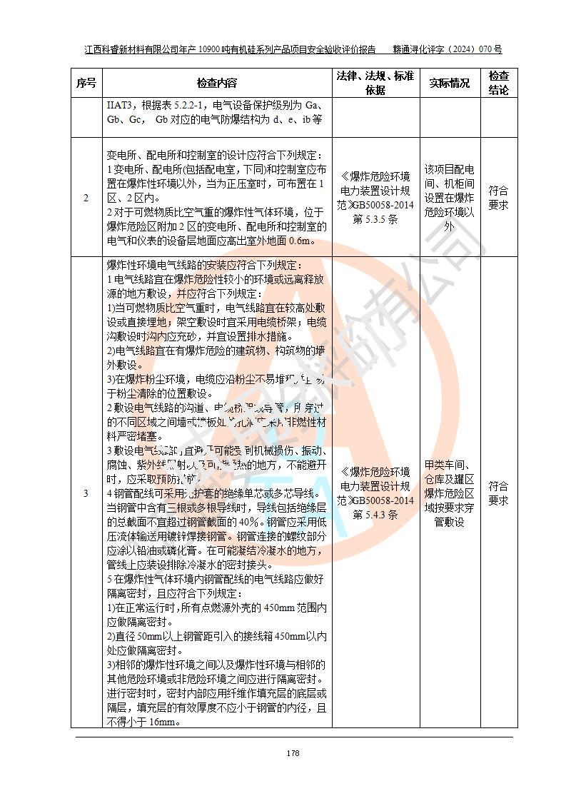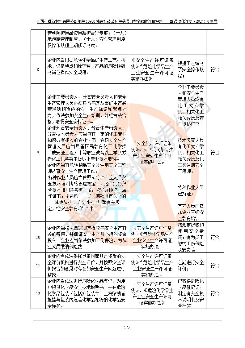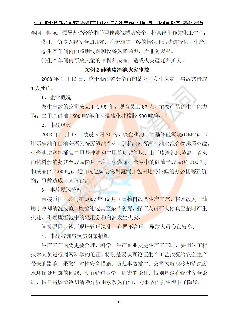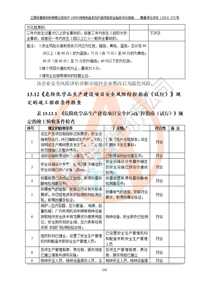 評(píng)價(jià)報(bào)告名稱 | 江西科睿新材料有限公司年產(chǎn)12900噸日化硅油等有機(jī)硅系列產(chǎn)品項(xiàng)目 (一期:年產(chǎn)10900噸日化硅油等有機(jī)硅系列)安全驗(yàn)收評(píng)價(jià) | |||||