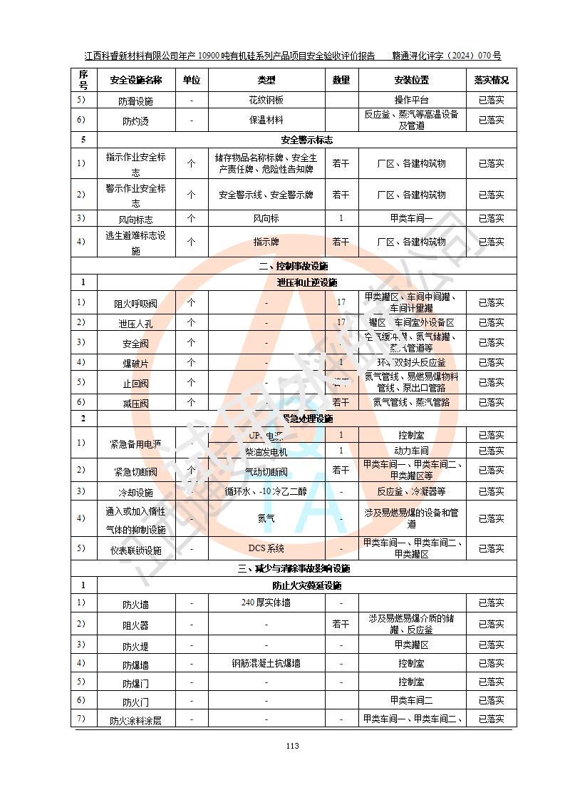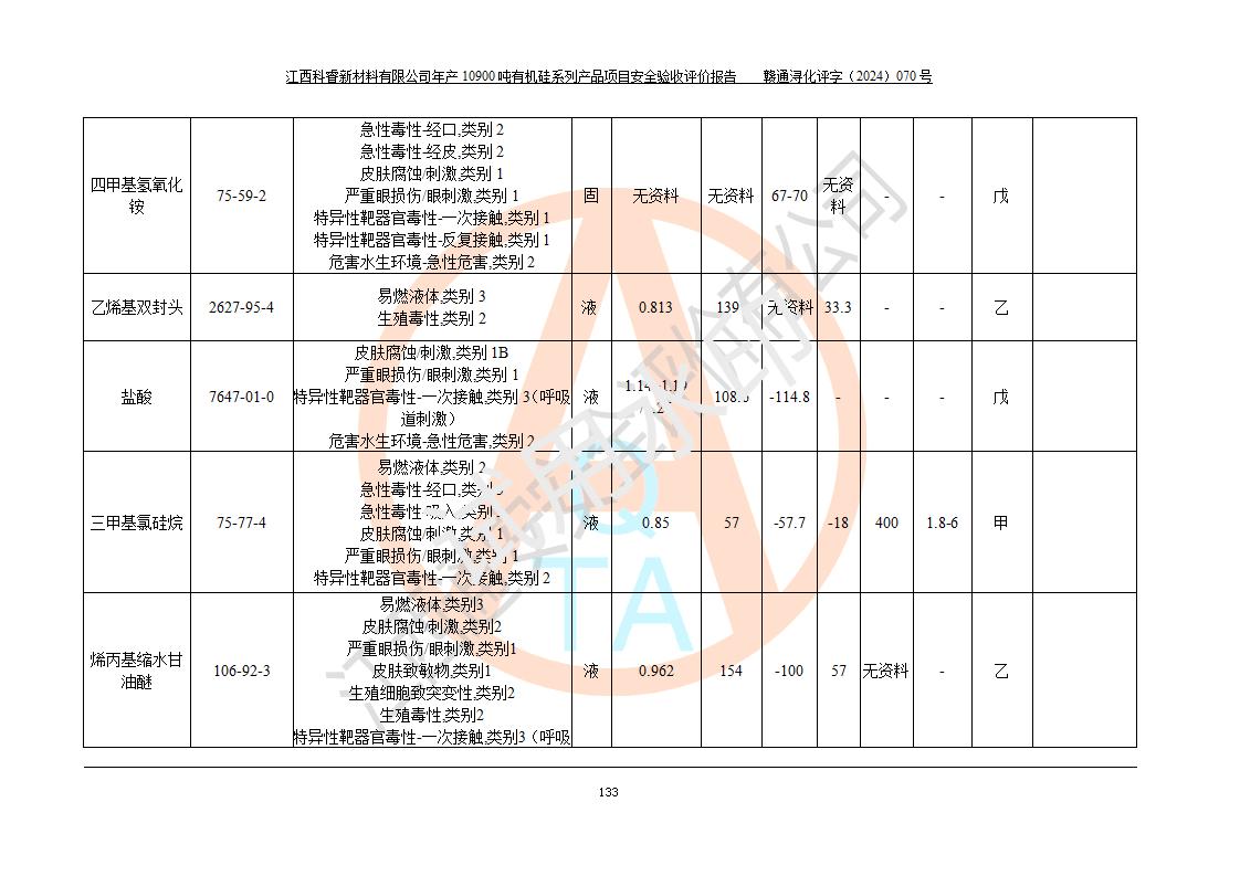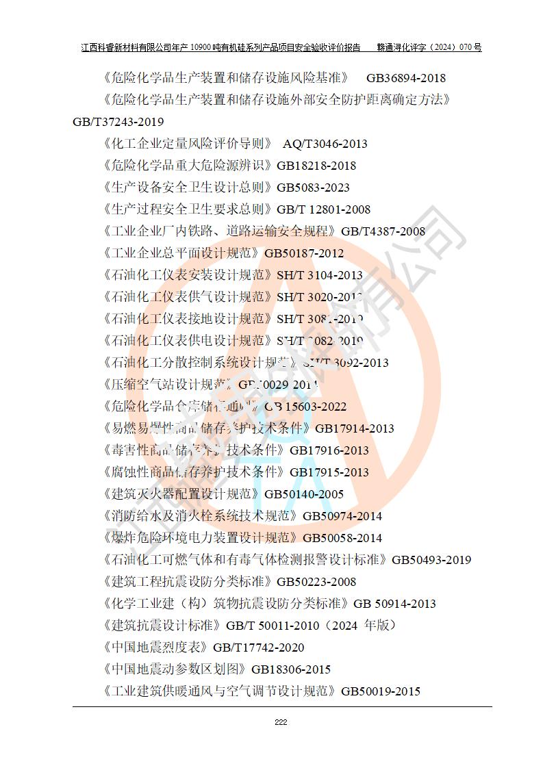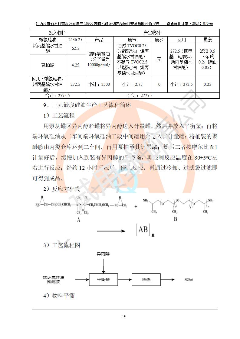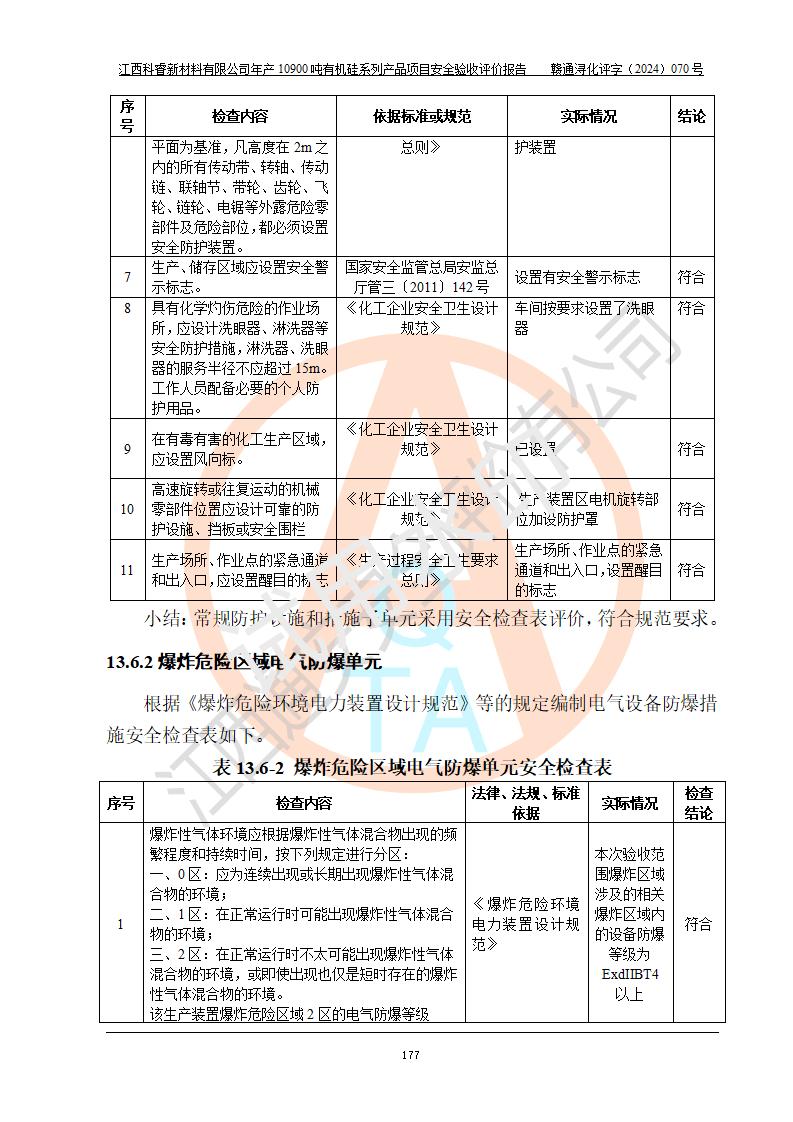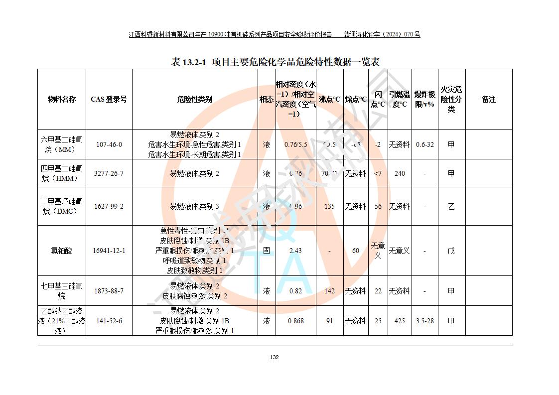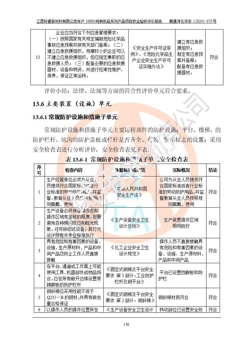 評(píng)價(jià)報(bào)告名稱 | 江西科睿新材料有限公司年產(chǎn)12900噸日化硅油等有機(jī)硅系列產(chǎn)品項(xiàng)目 (一期:年產(chǎn)10900噸日化硅油等有機(jī)硅系列)安全驗(yàn)收評(píng)價(jià) | |||||