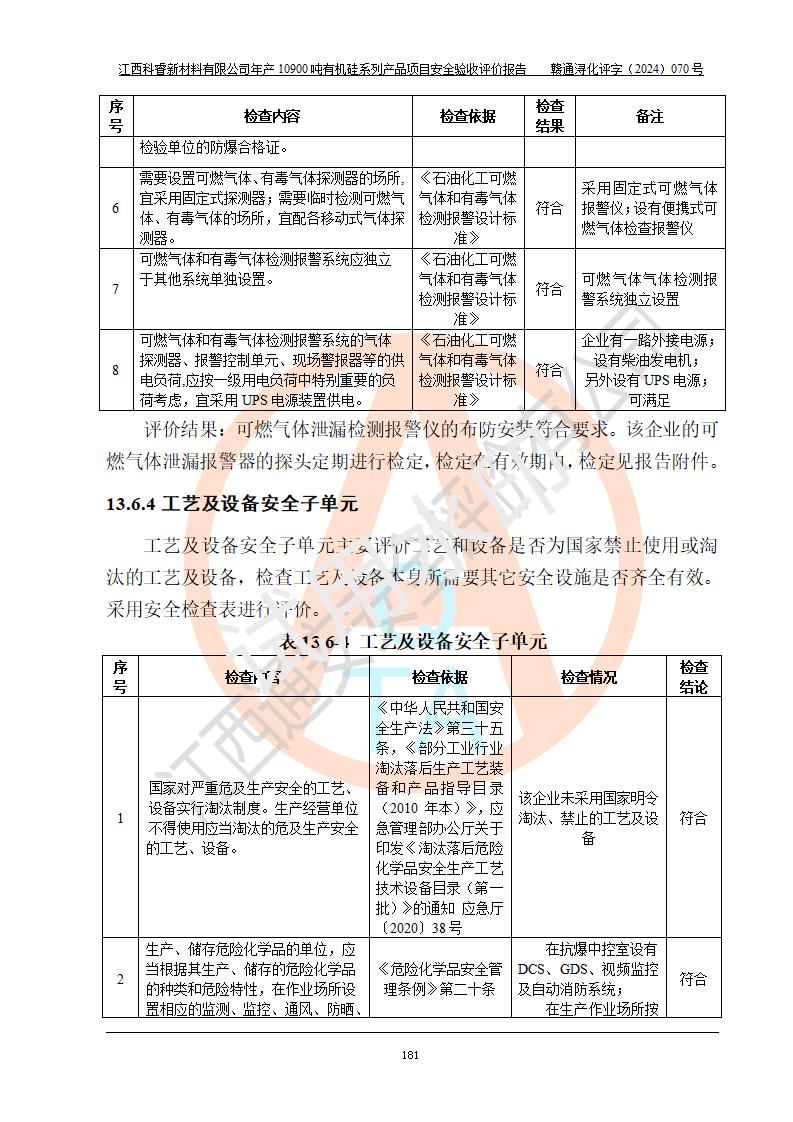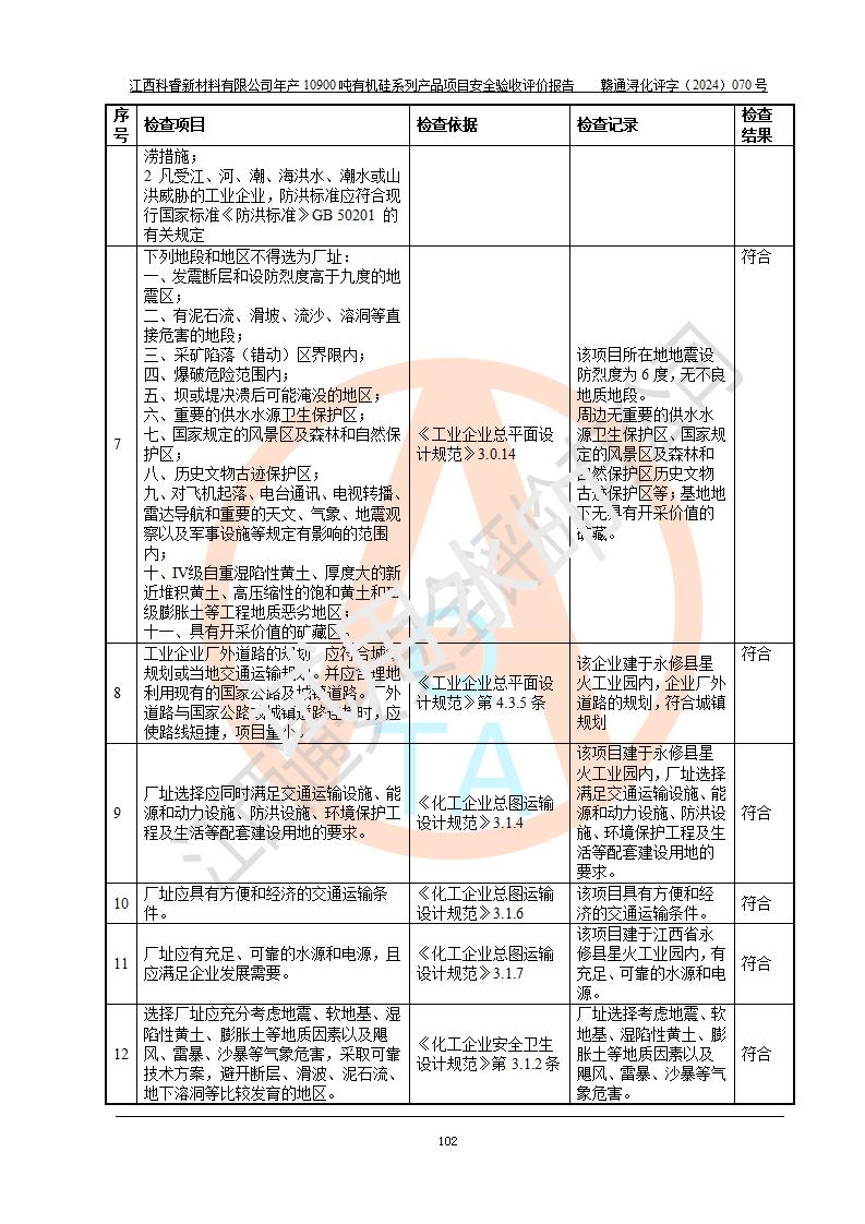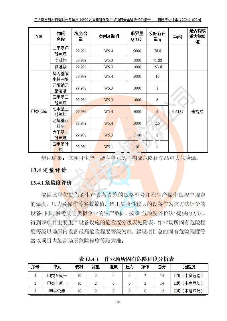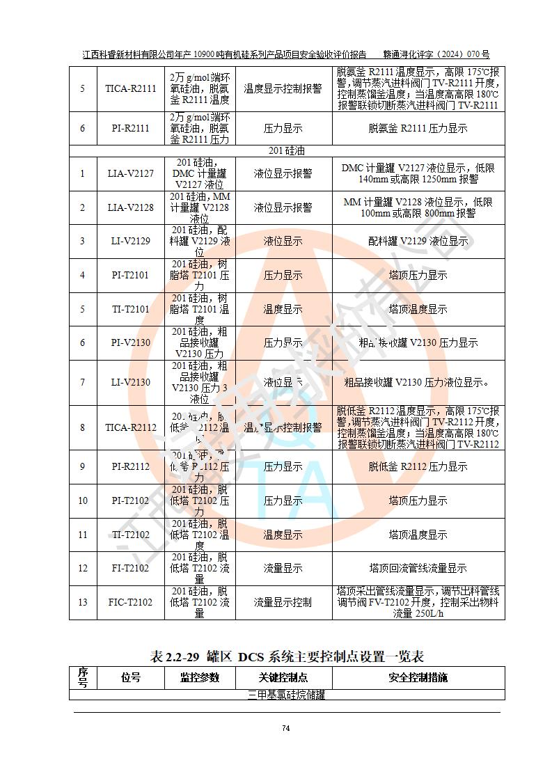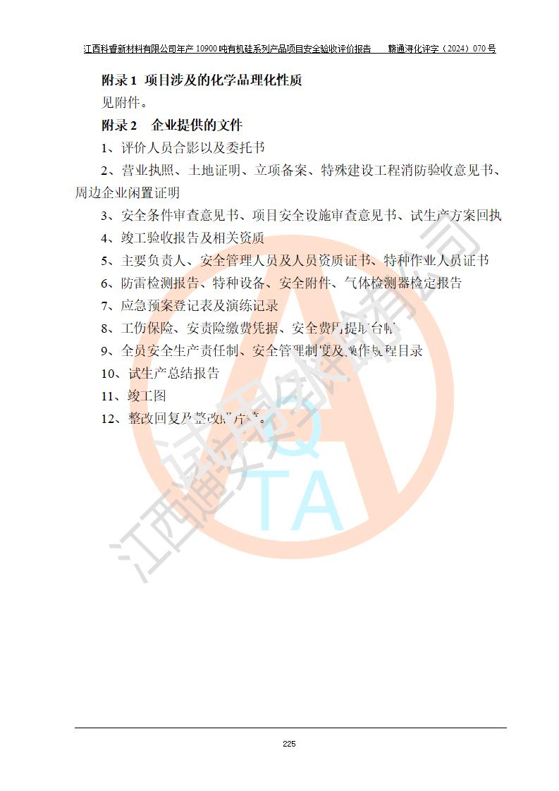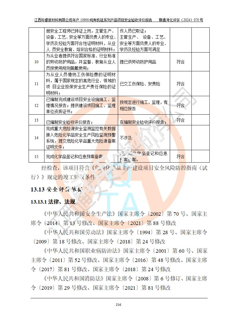 評(píng)價(jià)報(bào)告名稱 | 江西科睿新材料有限公司年產(chǎn)12900噸日化硅油等有機(jī)硅系列產(chǎn)品項(xiàng)目 (一期:年產(chǎn)10900噸日化硅油等有機(jī)硅系列)安全驗(yàn)收評(píng)價(jià) | |||||