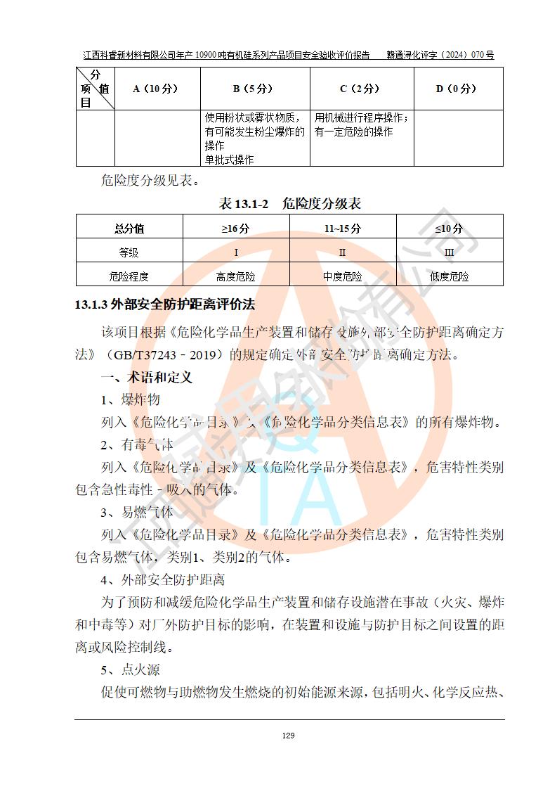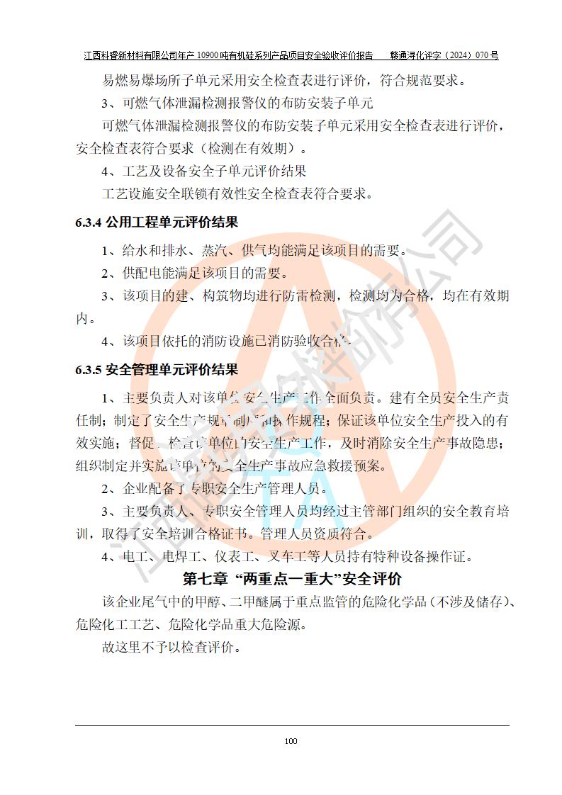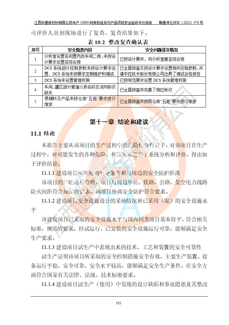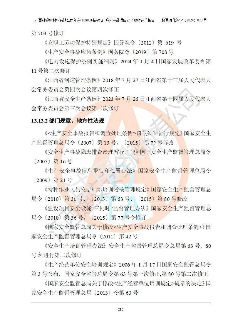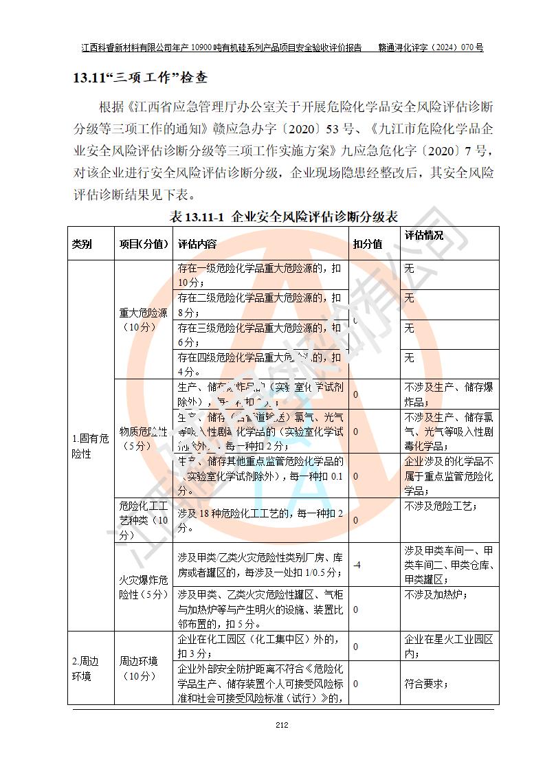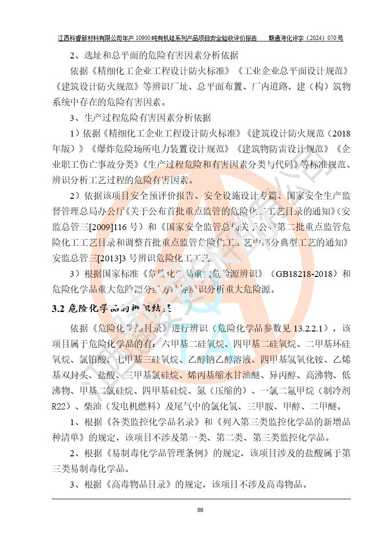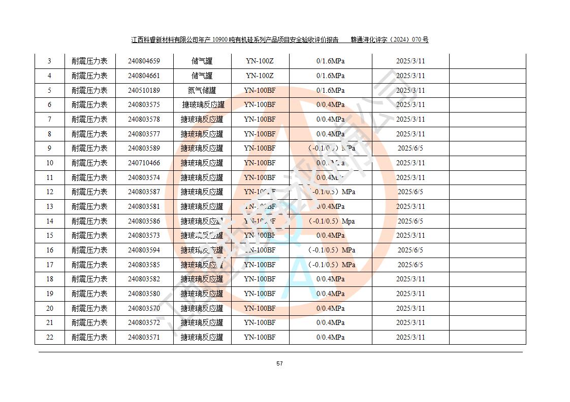 評(píng)價(jià)報(bào)告名稱 | 江西科睿新材料有限公司年產(chǎn)12900噸日化硅油等有機(jī)硅系列產(chǎn)品項(xiàng)目 (一期:年產(chǎn)10900噸日化硅油等有機(jī)硅系列)安全驗(yàn)收評(píng)價(jià) | |||||