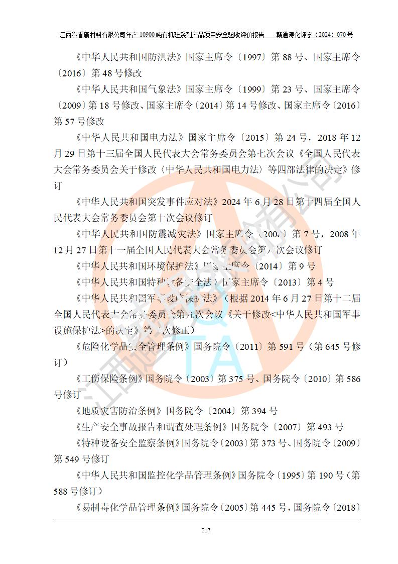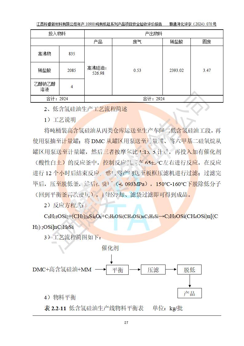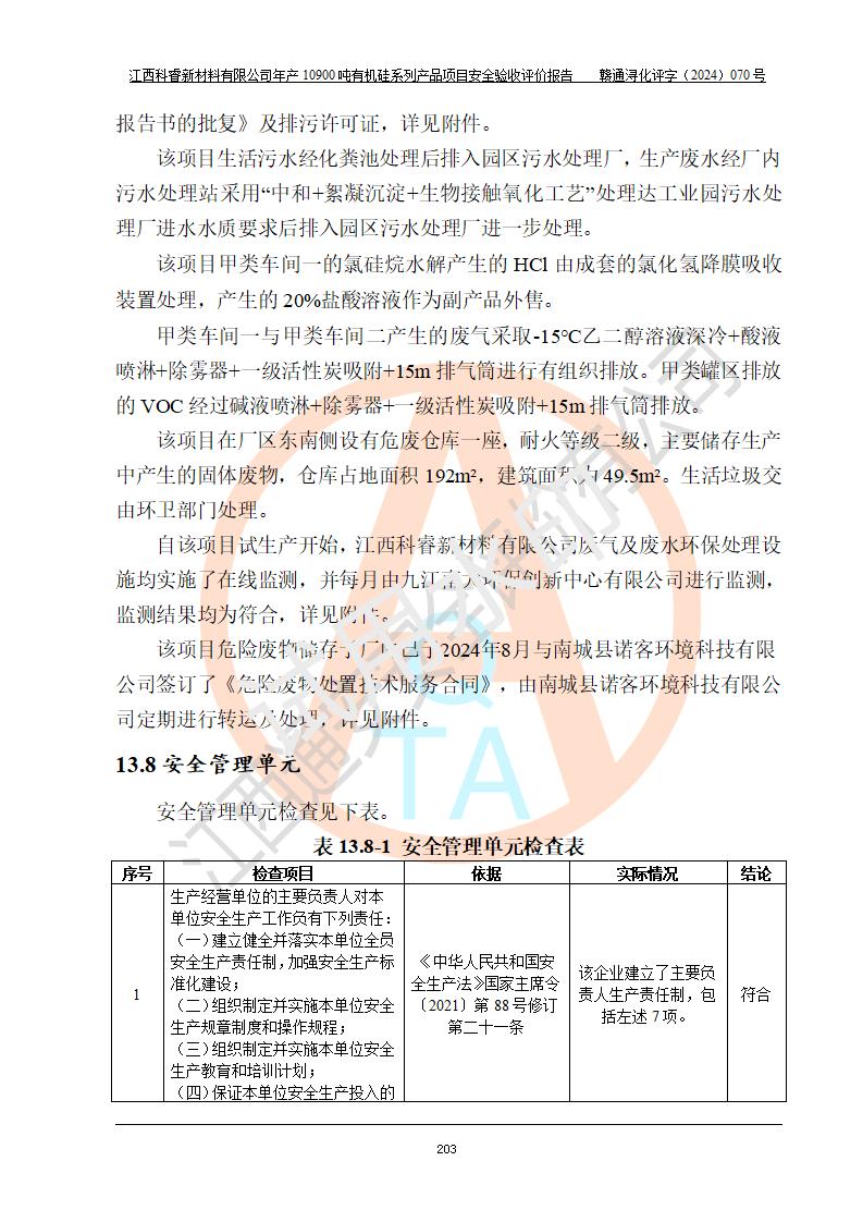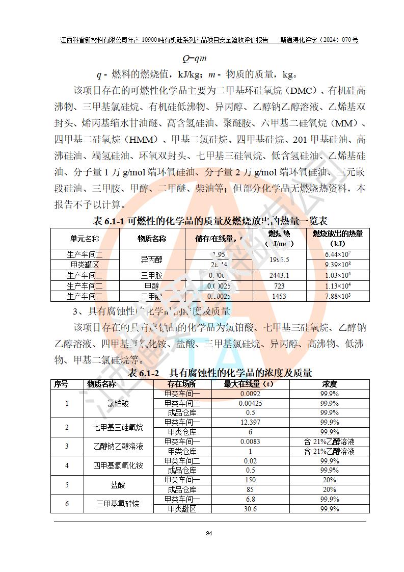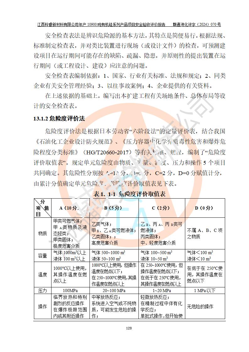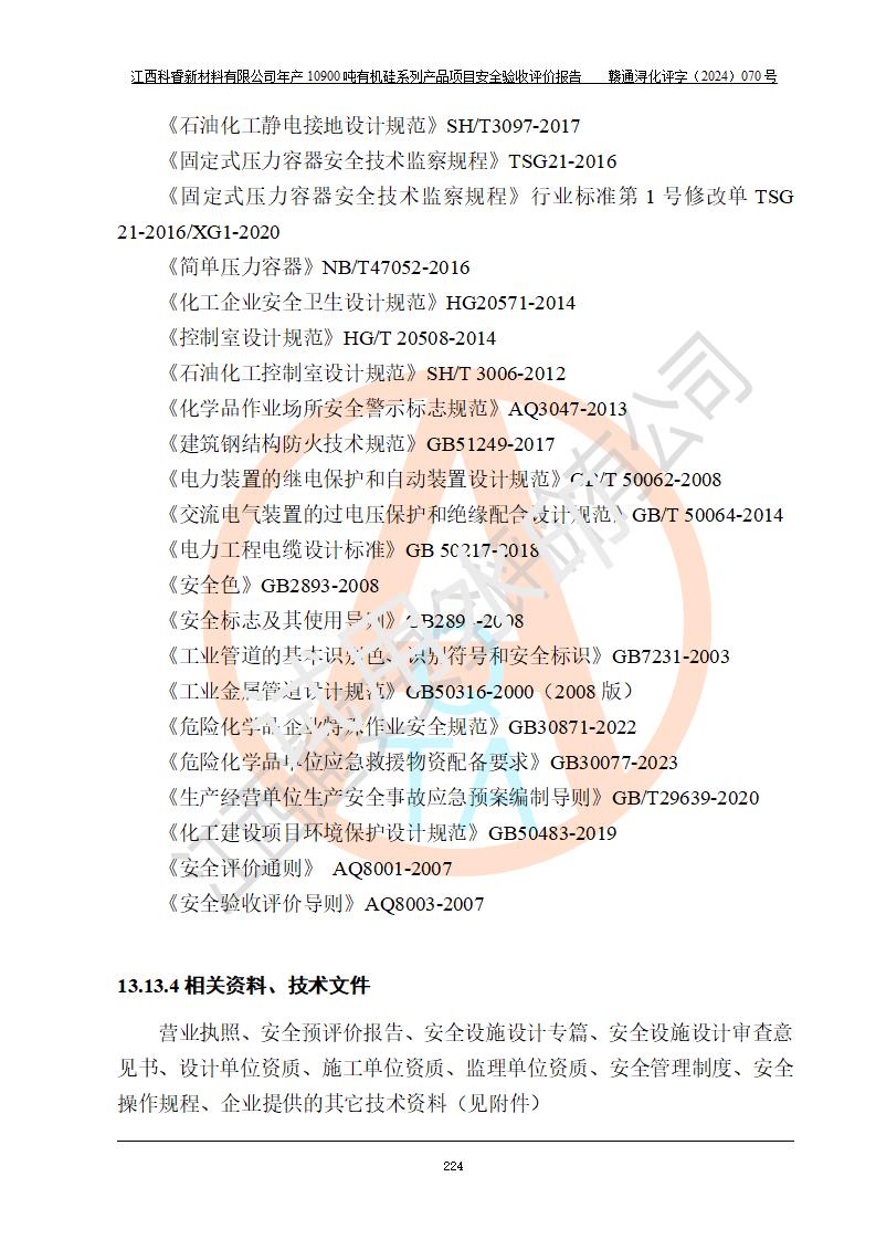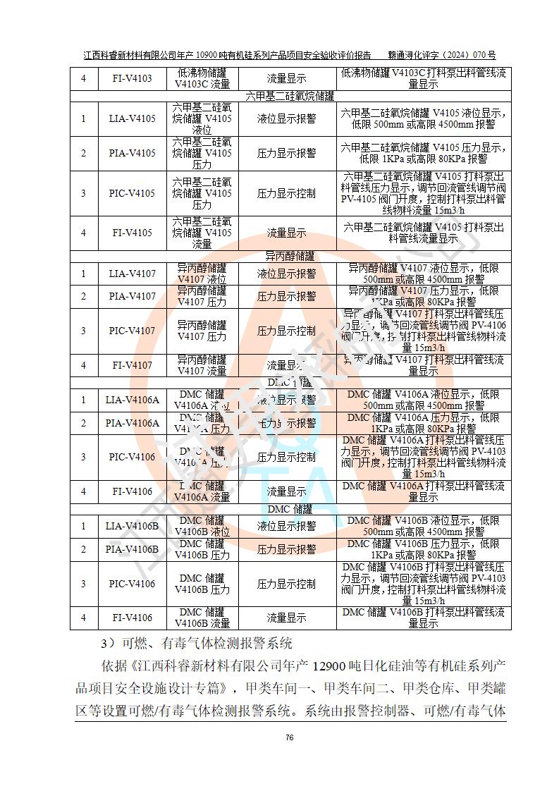評(píng)價(jià)報(bào)告名稱 | 江西科睿新材料有限公司年產(chǎn)12900噸日化硅油等有機(jī)硅系列產(chǎn)品項(xiàng)目 (一期:年產(chǎn)10900噸日化硅油等有機(jī)硅系列)安全驗(yàn)收評(píng)價(jià) | |||||