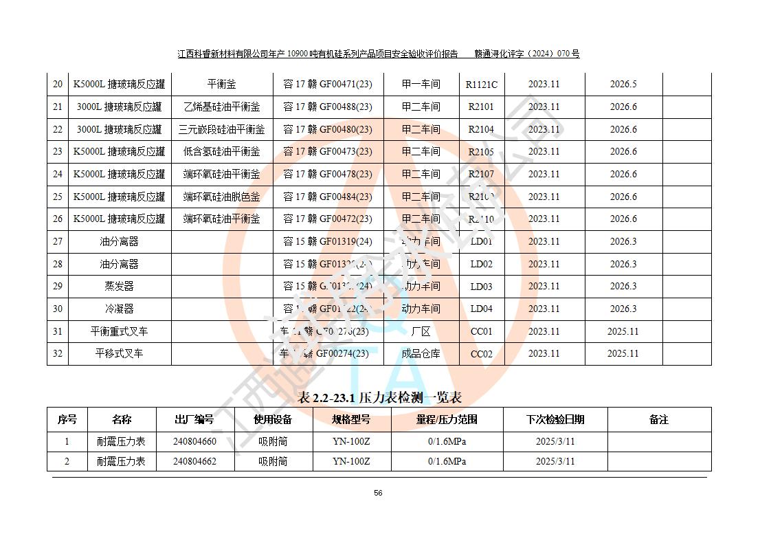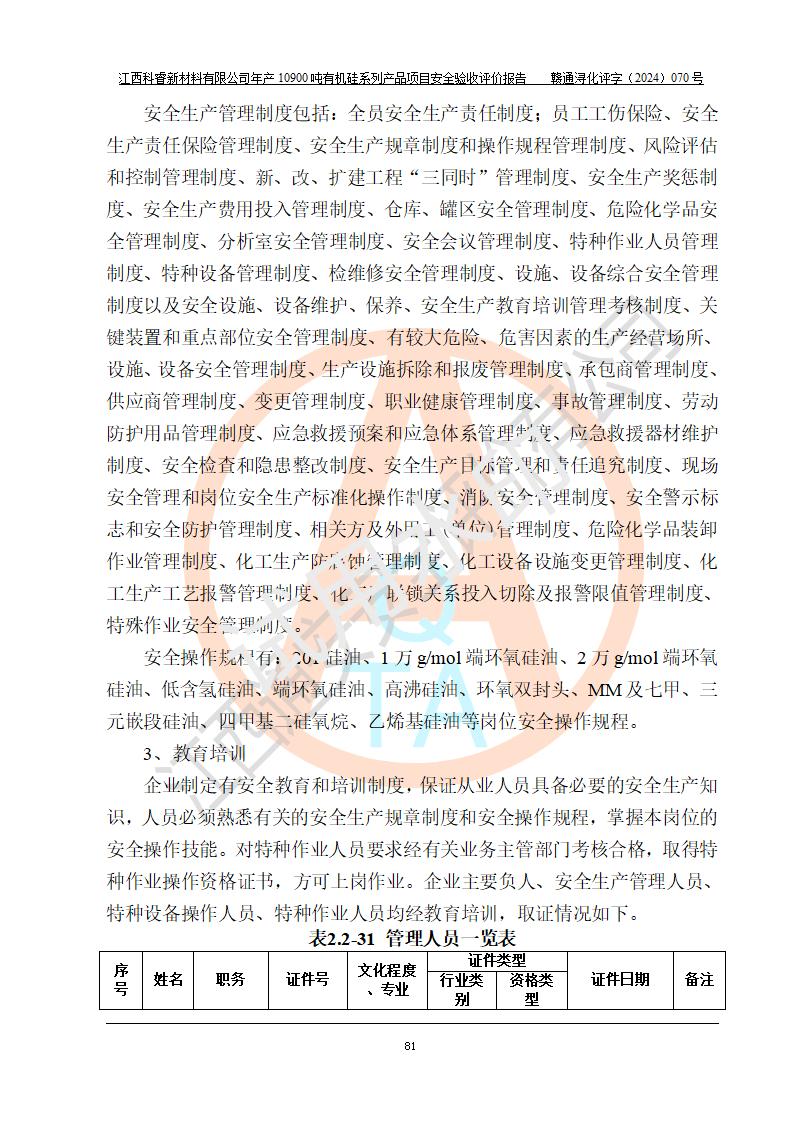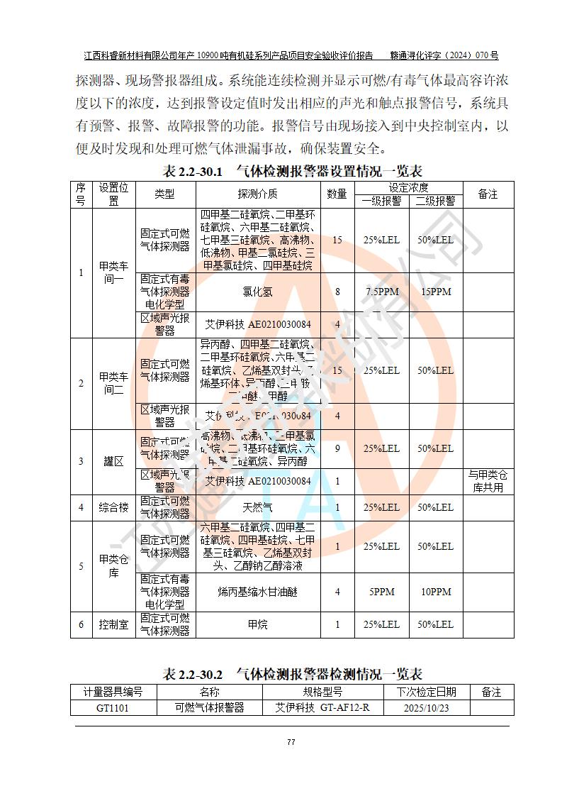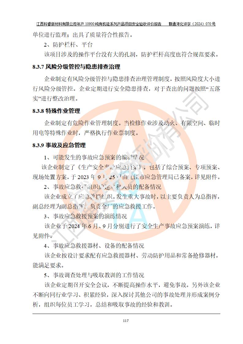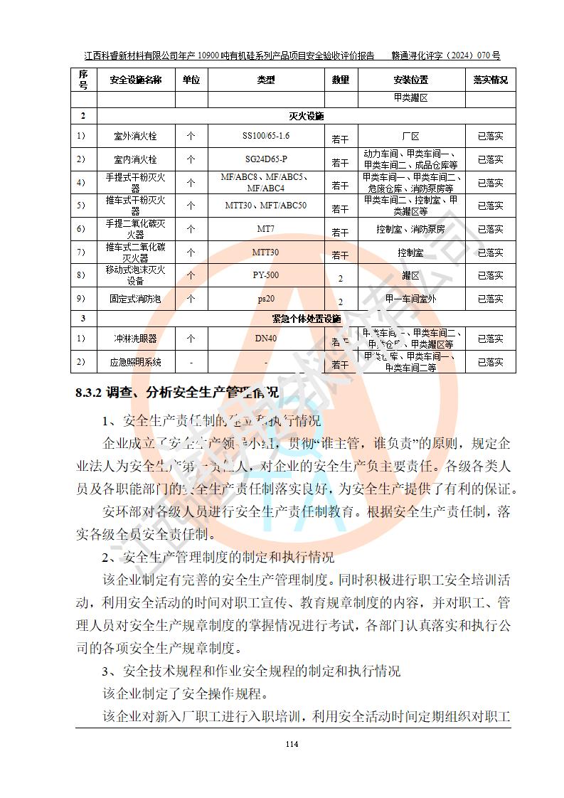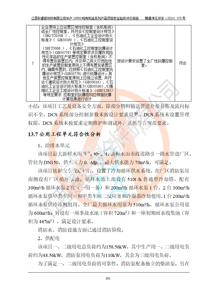 評(píng)價(jià)報(bào)告名稱 | 江西科睿新材料有限公司年產(chǎn)12900噸日化硅油等有機(jī)硅系列產(chǎn)品項(xiàng)目 (一期:年產(chǎn)10900噸日化硅油等有機(jī)硅系列)安全驗(yàn)收評(píng)價(jià) | |||||