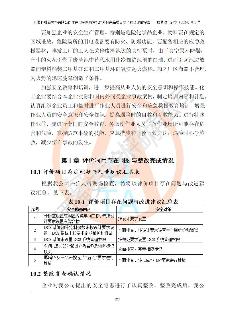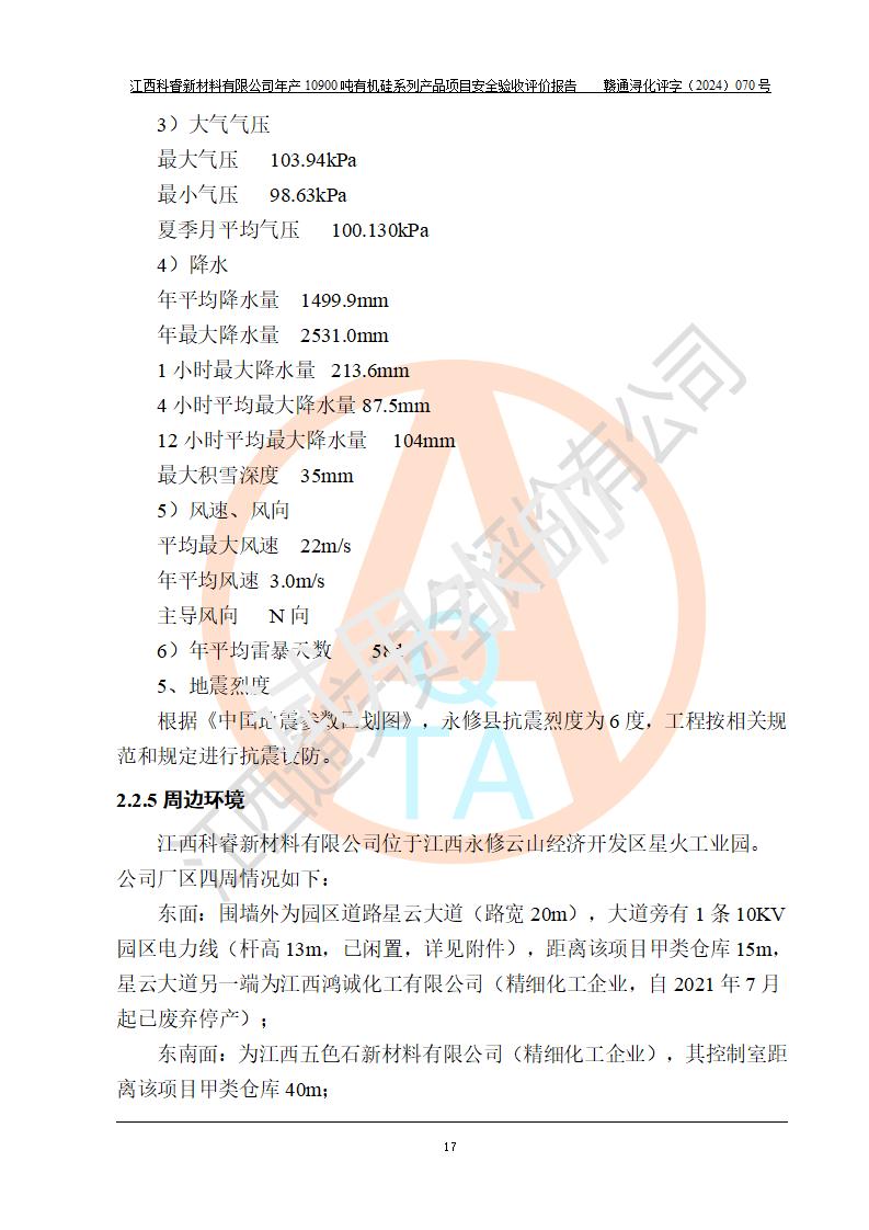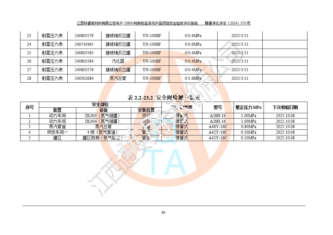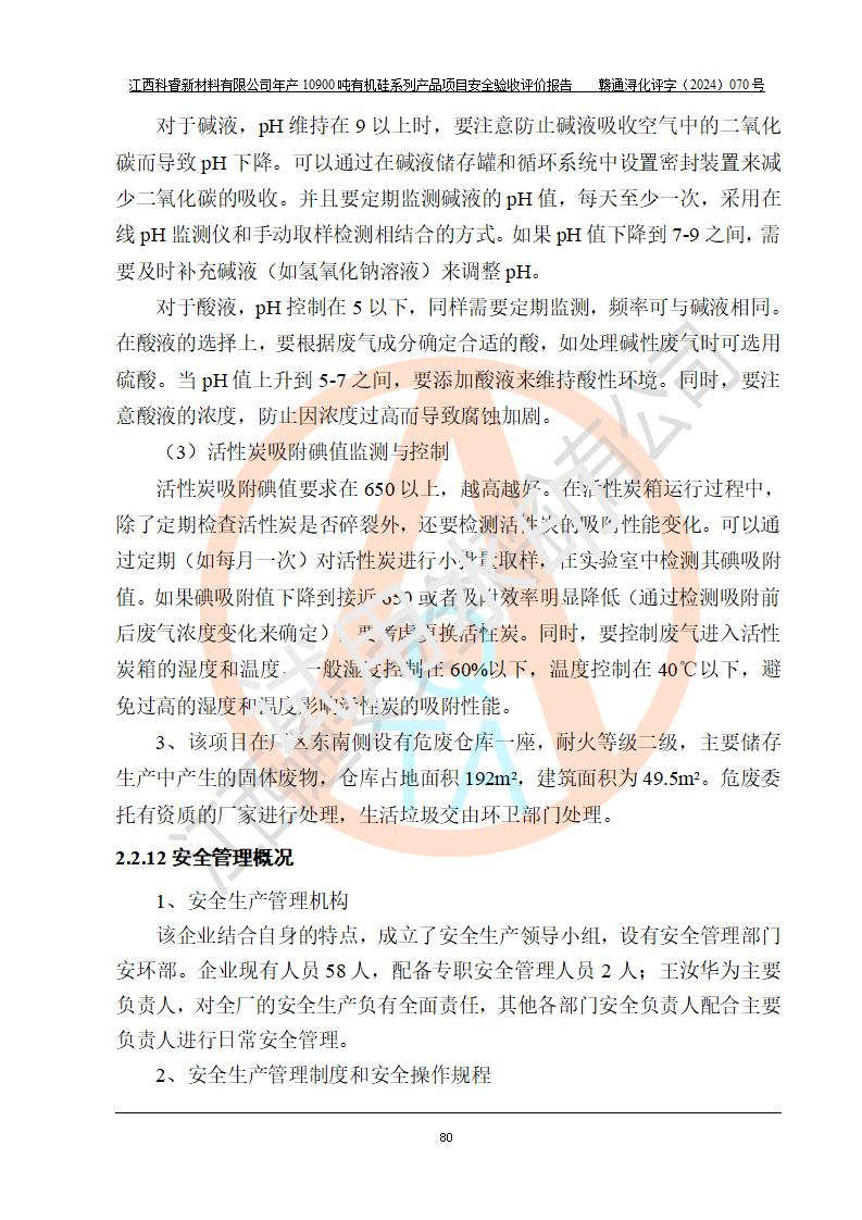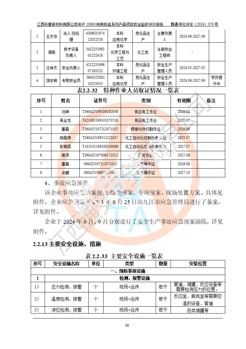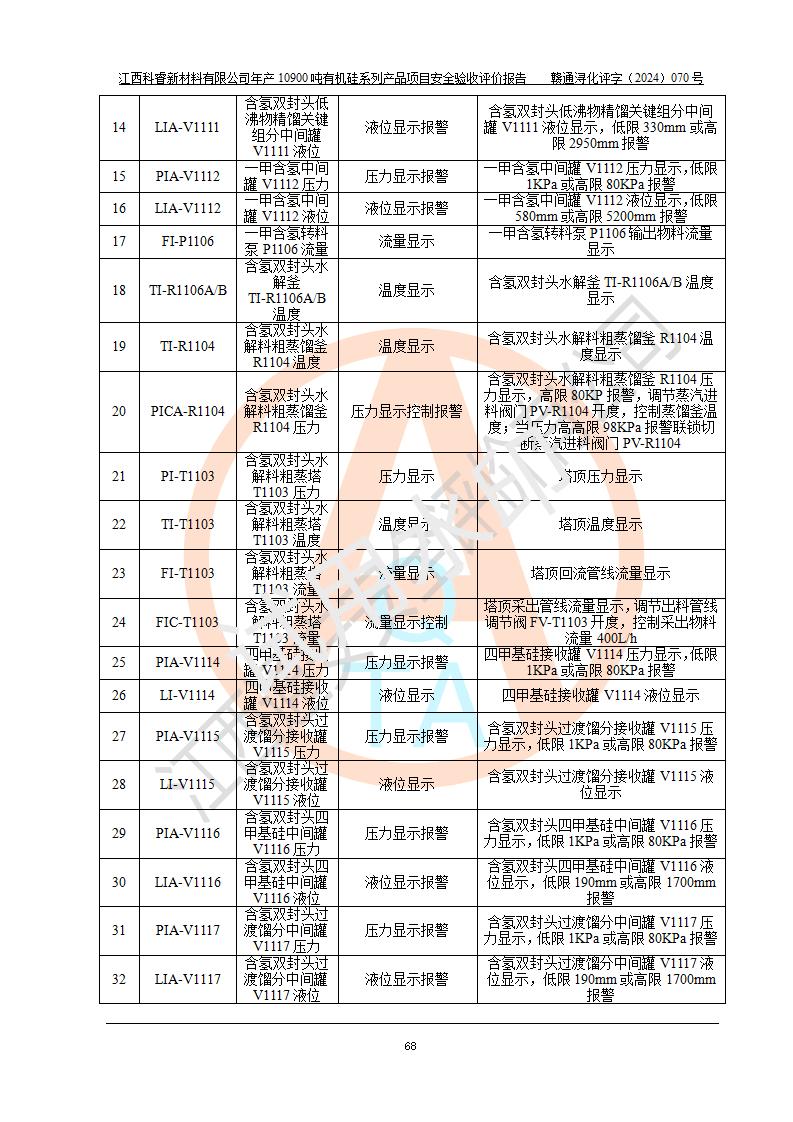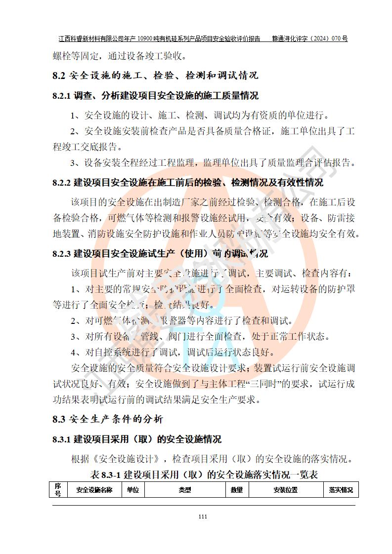 評(píng)價(jià)報(bào)告名稱 | 江西科睿新材料有限公司年產(chǎn)12900噸日化硅油等有機(jī)硅系列產(chǎn)品項(xiàng)目 (一期:年產(chǎn)10900噸日化硅油等有機(jī)硅系列)安全驗(yàn)收評(píng)價(jià) | |||||