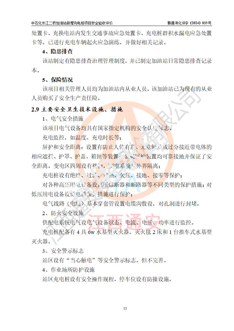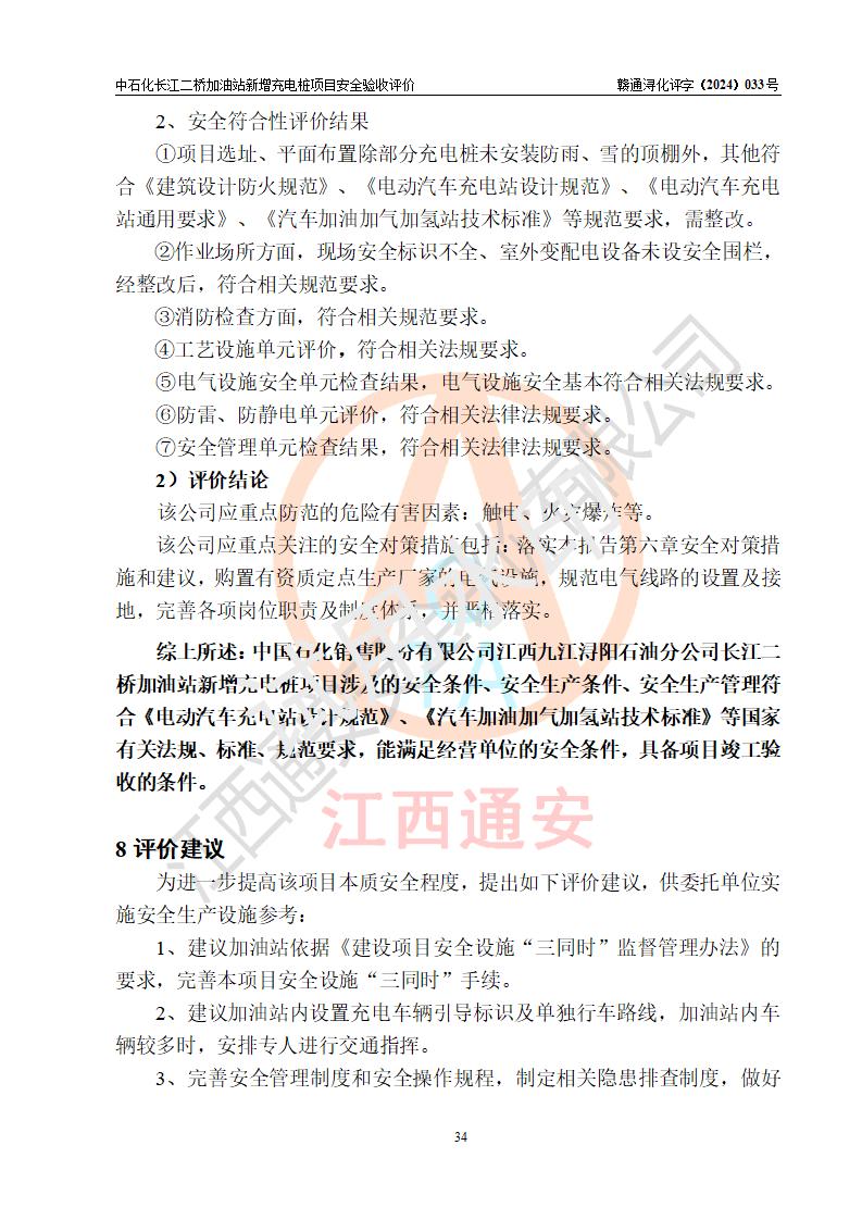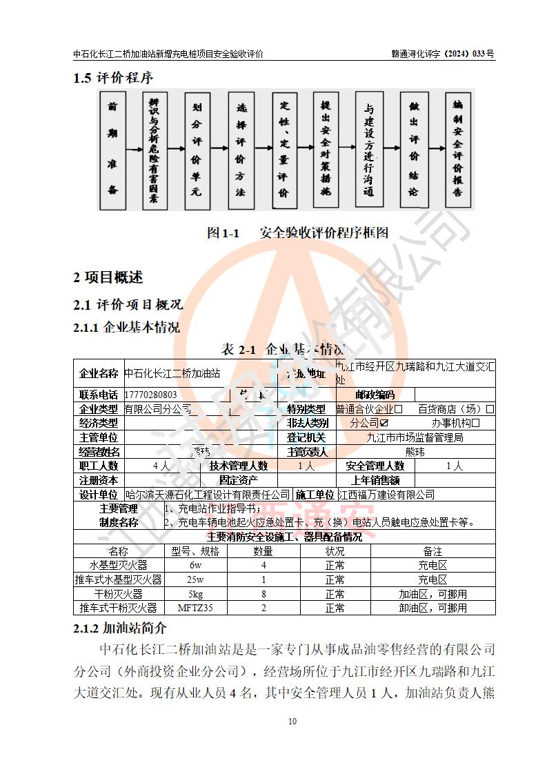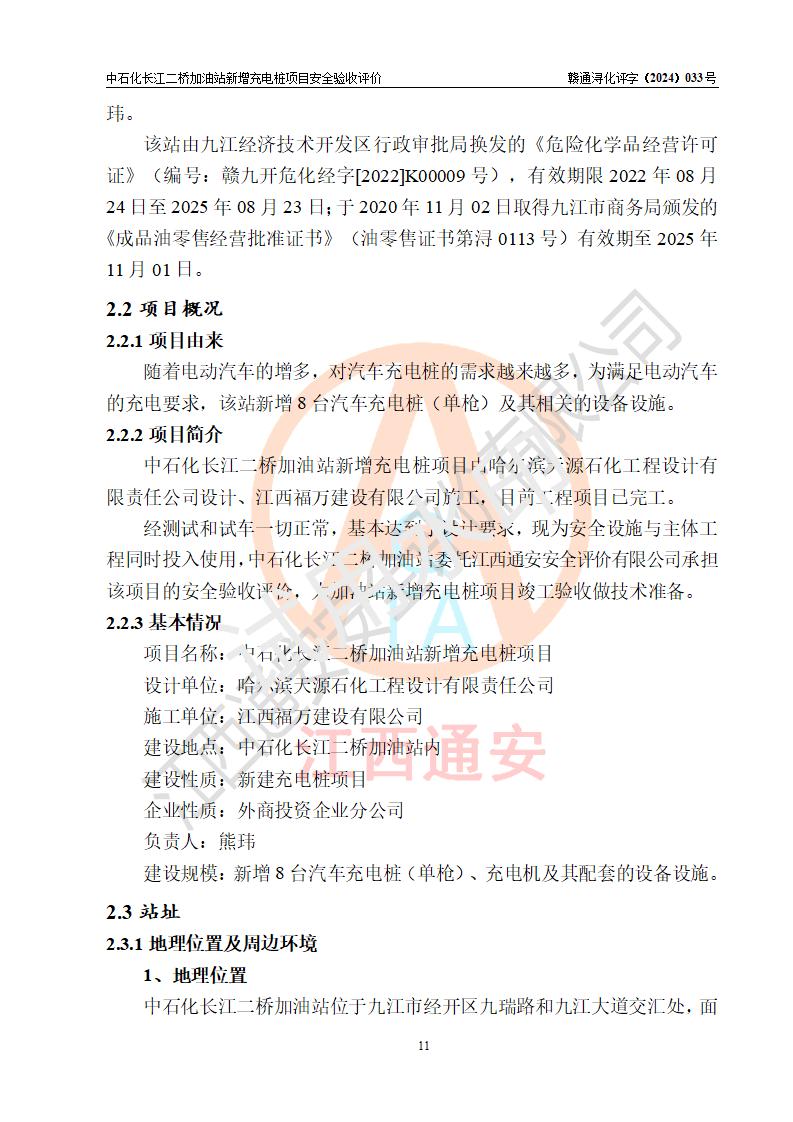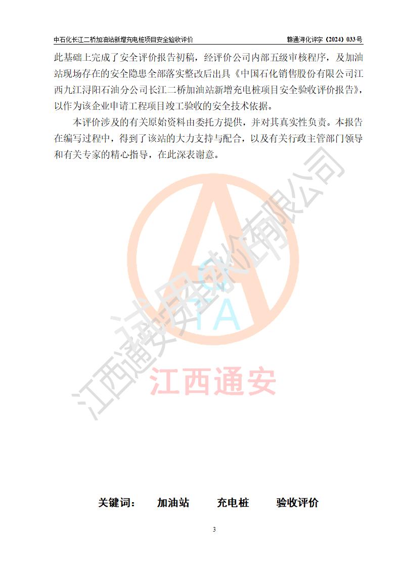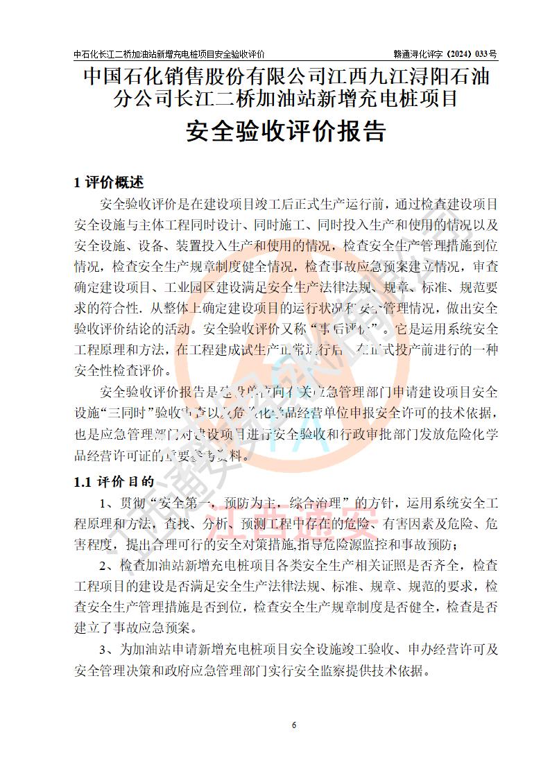 評(píng)價(jià)報(bào)告名稱 | 中國(guó)石化銷售股份有限公司江西九江潯陽(yáng)石油分公司長(zhǎng)江二橋加油站新增充電樁項(xiàng)目安全驗(yàn)收評(píng)價(jià)報(bào)告 | |||