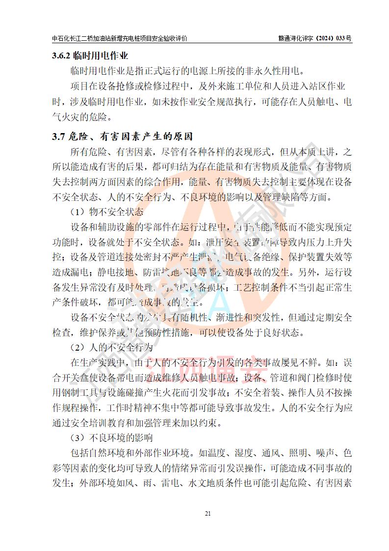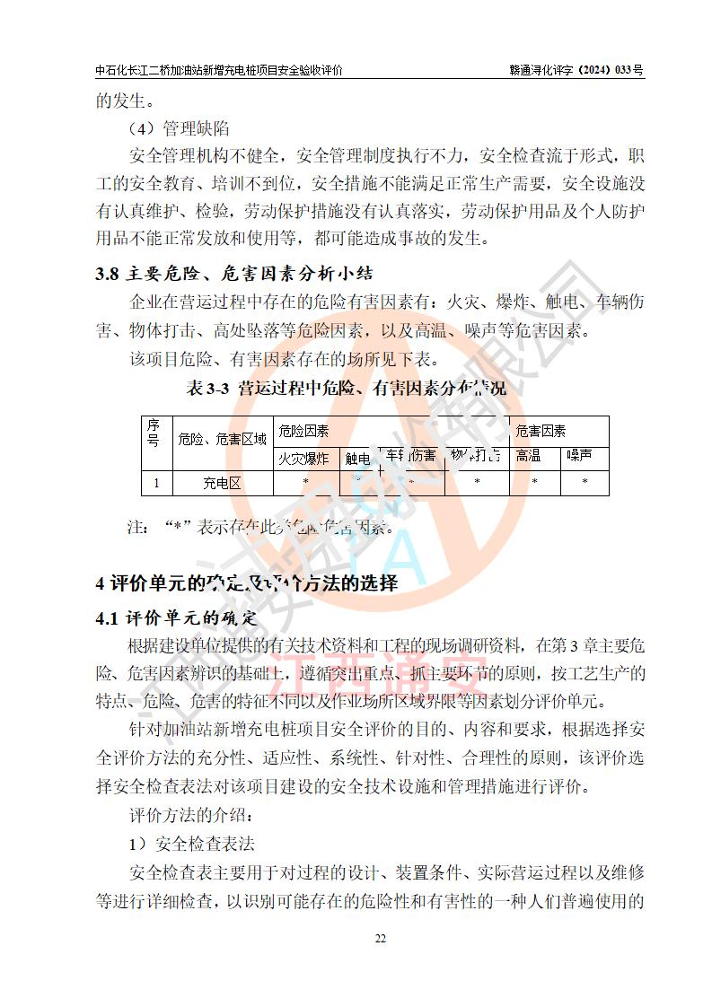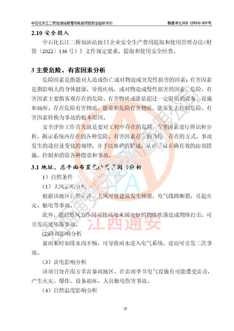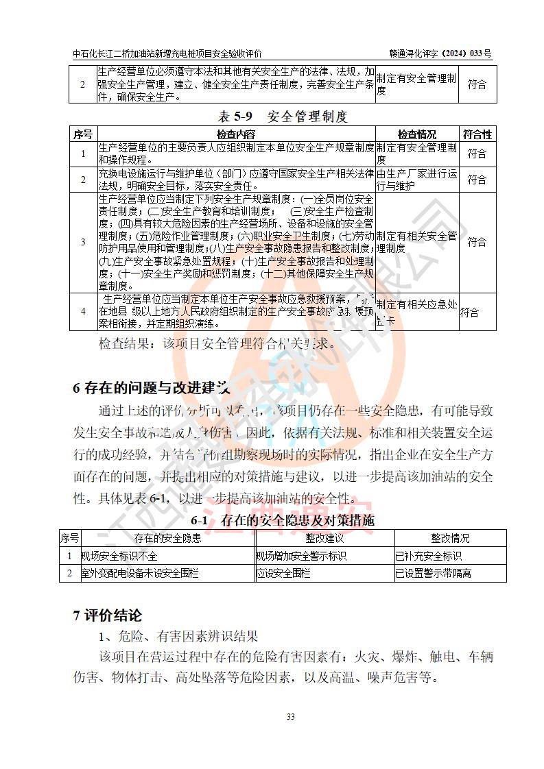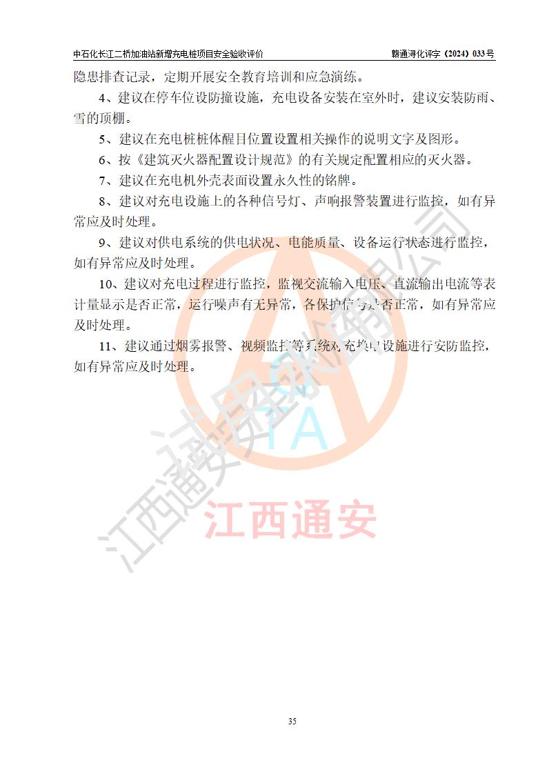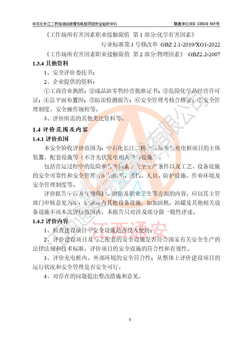 評(píng)價(jià)報(bào)告名稱 | 中國(guó)石化銷售股份有限公司江西九江潯陽(yáng)石油分公司長(zhǎng)江二橋加油站新增充電樁項(xiàng)目安全驗(yàn)收評(píng)價(jià)報(bào)告 | |||