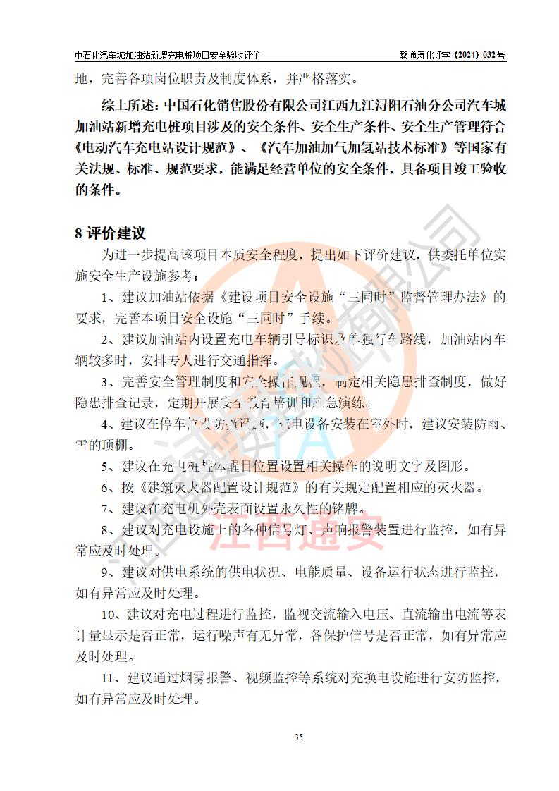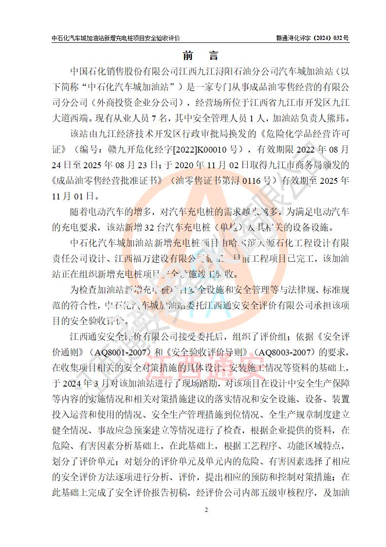 評價(jià)報(bào)告名稱 | 中國石化銷售股份有限公司江西九江潯陽石油分公司汽車城加油站新增充電樁項(xiàng)目安全驗(yàn)收評價(jià)報(bào)告 | |||