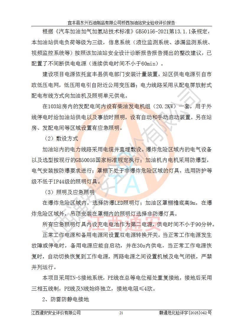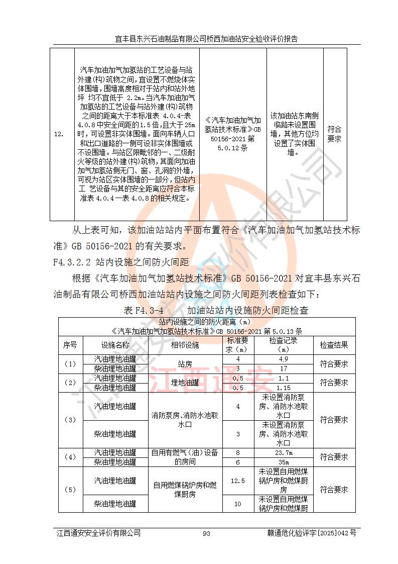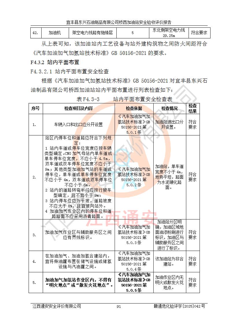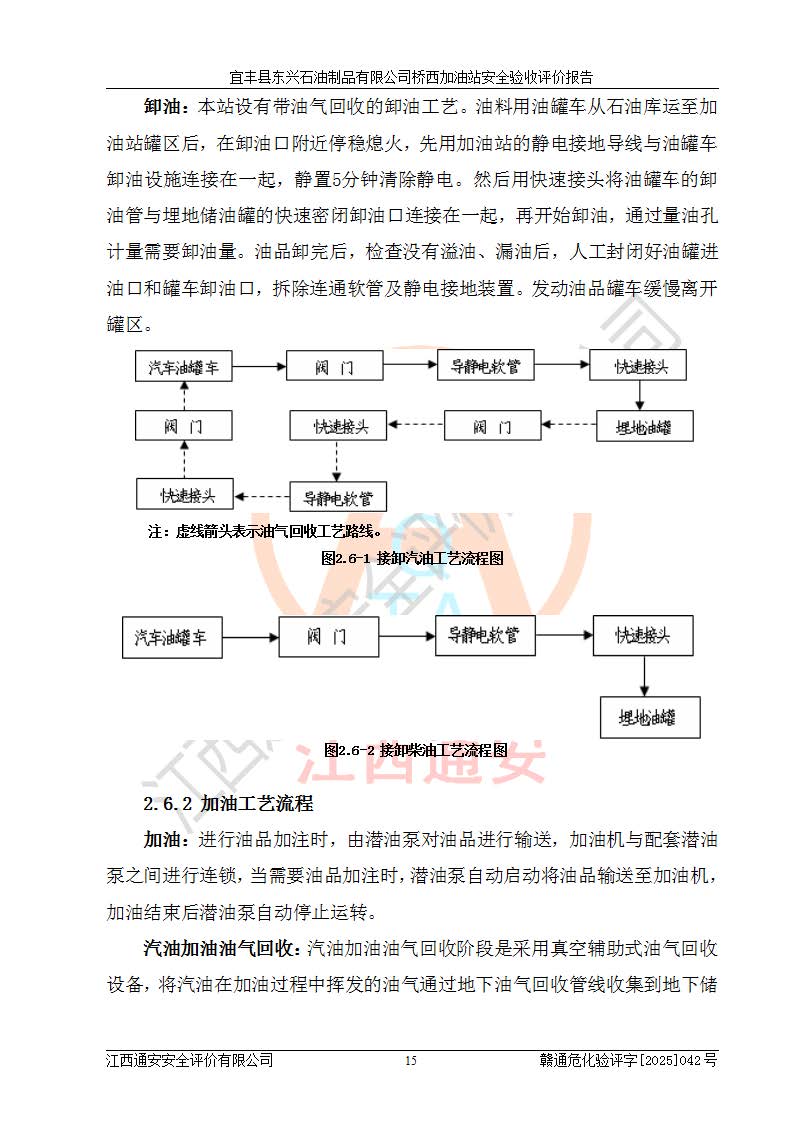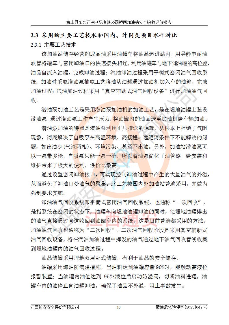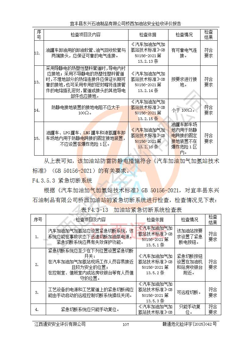 項目簡介 | 宜豐縣東興石油制品有限公司橋西加油站(以下簡稱“該加油站”)成立于2001年10月23日,營業(yè)場所位于宜春市宜豐縣橋西鄉(xiāng),法定**人為張凱軍。該加油站統(tǒng)一社會信用代碼為91360924731962916E,屬于有限責任制公司分公司(自然人投資或控股)。經(jīng)營范圍:汽油、柴油、潤滑油、煤油零售,煙、預包裝食品零售。 該加油站油罐區(qū)設(shè)有4個埋地臥式儲罐,其中1臺50m3的0#柴油儲罐,1臺50m3的92#汽油儲罐,1臺30m3的92#汽油儲罐,1臺30m3的95#汽油儲罐,柴油罐容積折半計入油罐總?cè)莘e,折算后總?cè)莘e為135m3,屬于二級加油站,站內(nèi)設(shè)有油氣回收系統(tǒng)。油罐采用直埋鋪設(shè),并設(shè)抗浮基礎(chǔ)。加油區(qū)設(shè)4個加油島,采用4臺雙槍加油機。該加油站于2023年2月9日經(jīng)宜豐縣應急管理局核準,換發(fā)了新的《危險化學品經(jīng)營許可證》,證書編號:贛宜安經(jīng)油字[2022]36092402號,許可范圍:汽油、柴油。**期限為2022年9月12日至2025年9月11日。 根據(jù)《危險化學品安全管理條例》(經(jīng)***令第344號發(fā)布,***令第591號、***令第645號修改),《危險化學品經(jīng)營許可證管理辦法》(2012年7月17日**安全生產(chǎn)監(jiān)督管理總局令第55號公布,自2012年9月1日起施行;根據(jù)2015年5月27日**安全生產(chǎn)監(jiān)督管理總局令第79號修正)等法律法規(guī)及文件要求,該加油站的危險化學品經(jīng)營許可證三年**期即將到期,需要重新進行安全現(xiàn)狀評價。由于該加油站2013年建成投運,安全設(shè)施“三同時”資料不全,根據(jù)《江西省應急管理廳辦公室關(guān)于規(guī)范危險化學品經(jīng)營許可工作的通知》(贛應急辦字〔2025〕58號)等要求,危險化學品經(jīng)營企業(yè)應在一個延期換證周期內(nèi)進行安全設(shè)計診斷,并根據(jù)診斷結(jié)論開展安全設(shè)施設(shè)計整改,驗收通過后方可延期換證。該加油站于2025年6月委托黑龍江龍維化學工程設(shè)計有限公司(具有化工石化醫(yī)藥行業(yè)專業(yè)**工程設(shè)計資質(zhì))編制了《宜豐縣東興石油制品有限公司橋西加油站安全設(shè)計診斷報告》,并通過了專家評審。根據(jù)該安全設(shè)計診斷報告提出的安全隱患及整改建議,該加油站及時進行了整改,目前已整改到位,具備安全設(shè)施驗收條件。
