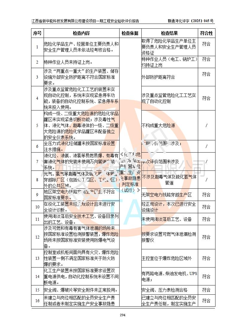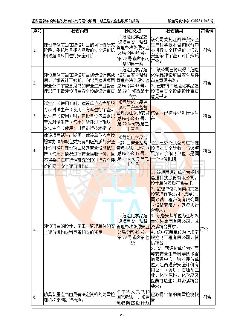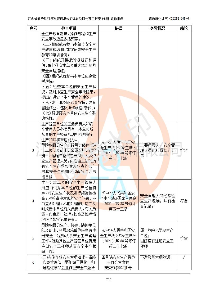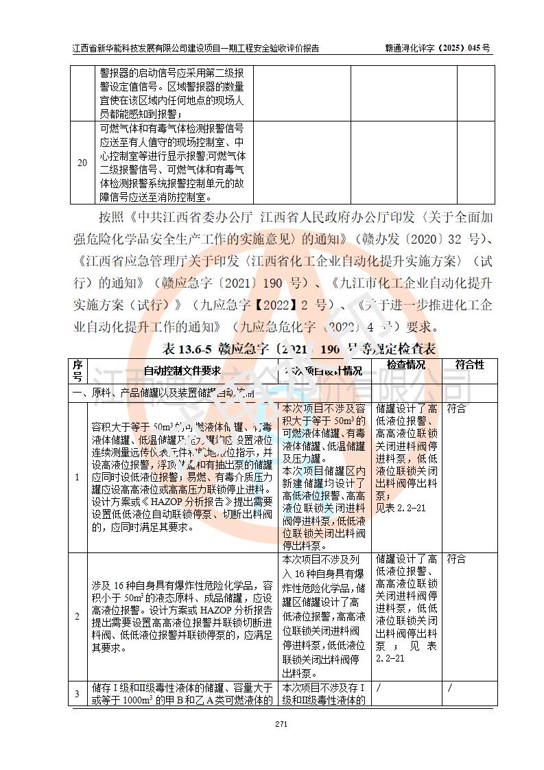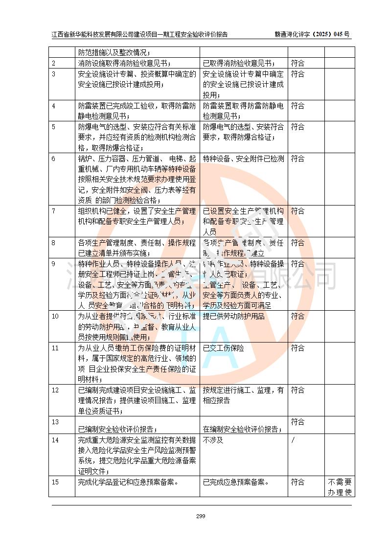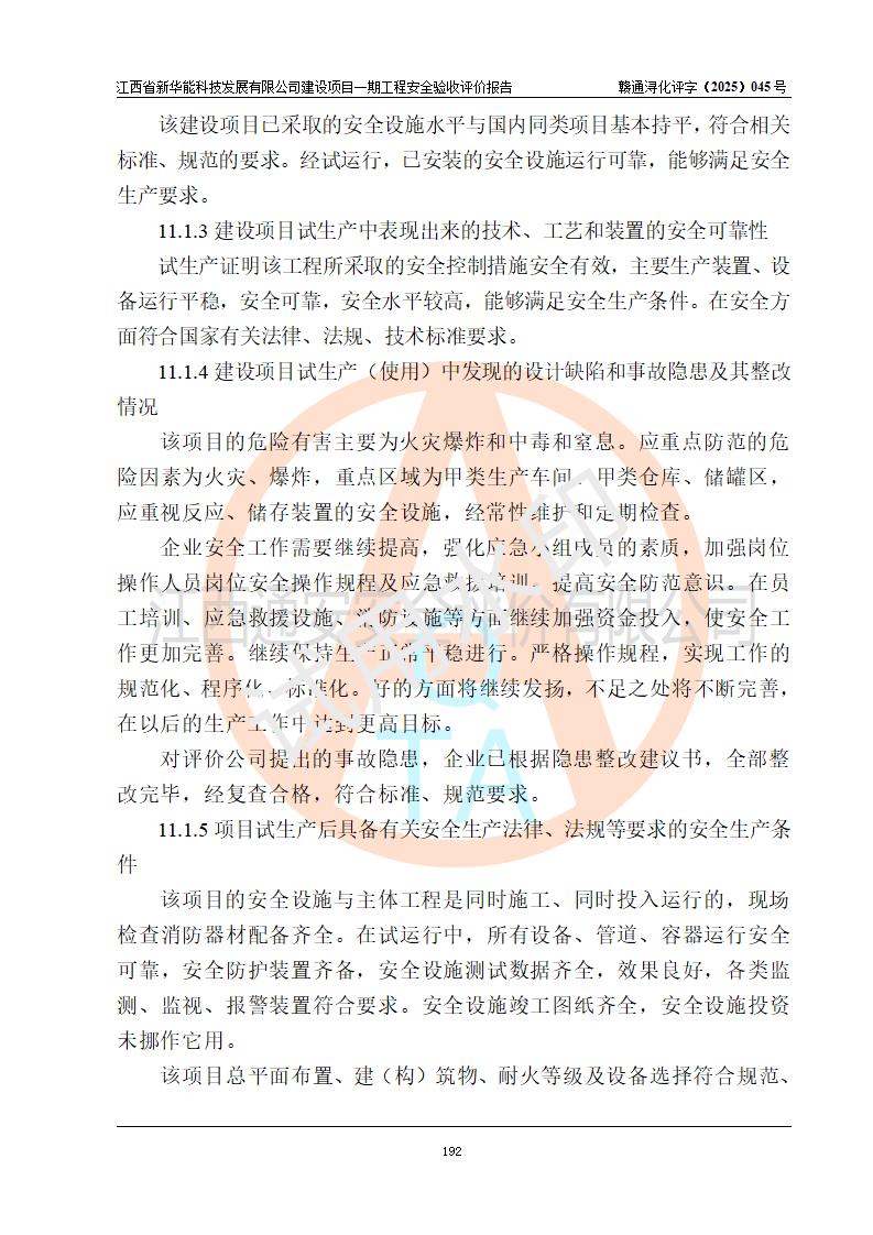 評(píng)價(jià)報(bào)告名稱 | 江西省新華能科技發(fā)展有限公司建設(shè)項(xiàng)目一期工程安全驗(yàn)收評(píng)價(jià)報(bào)告 | |||||