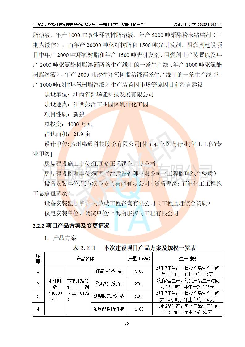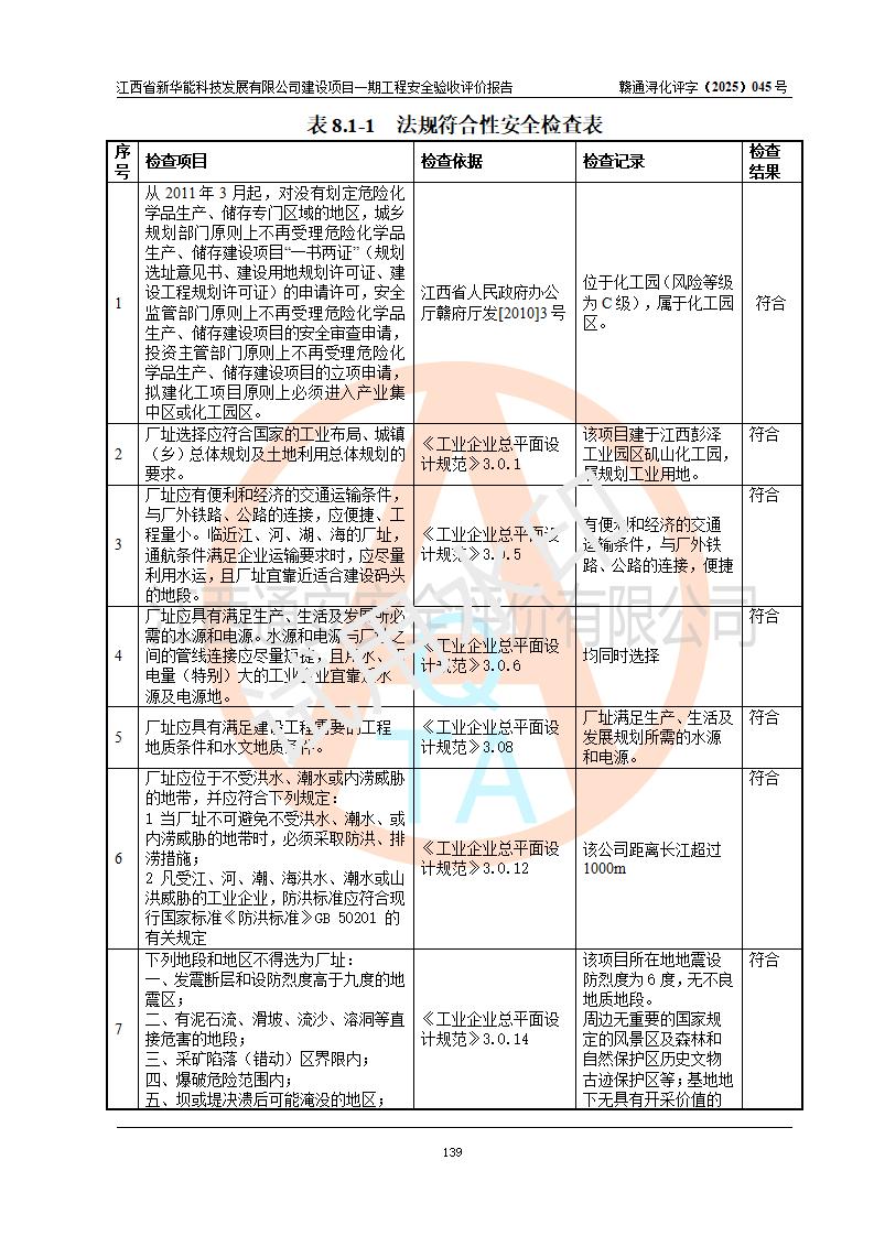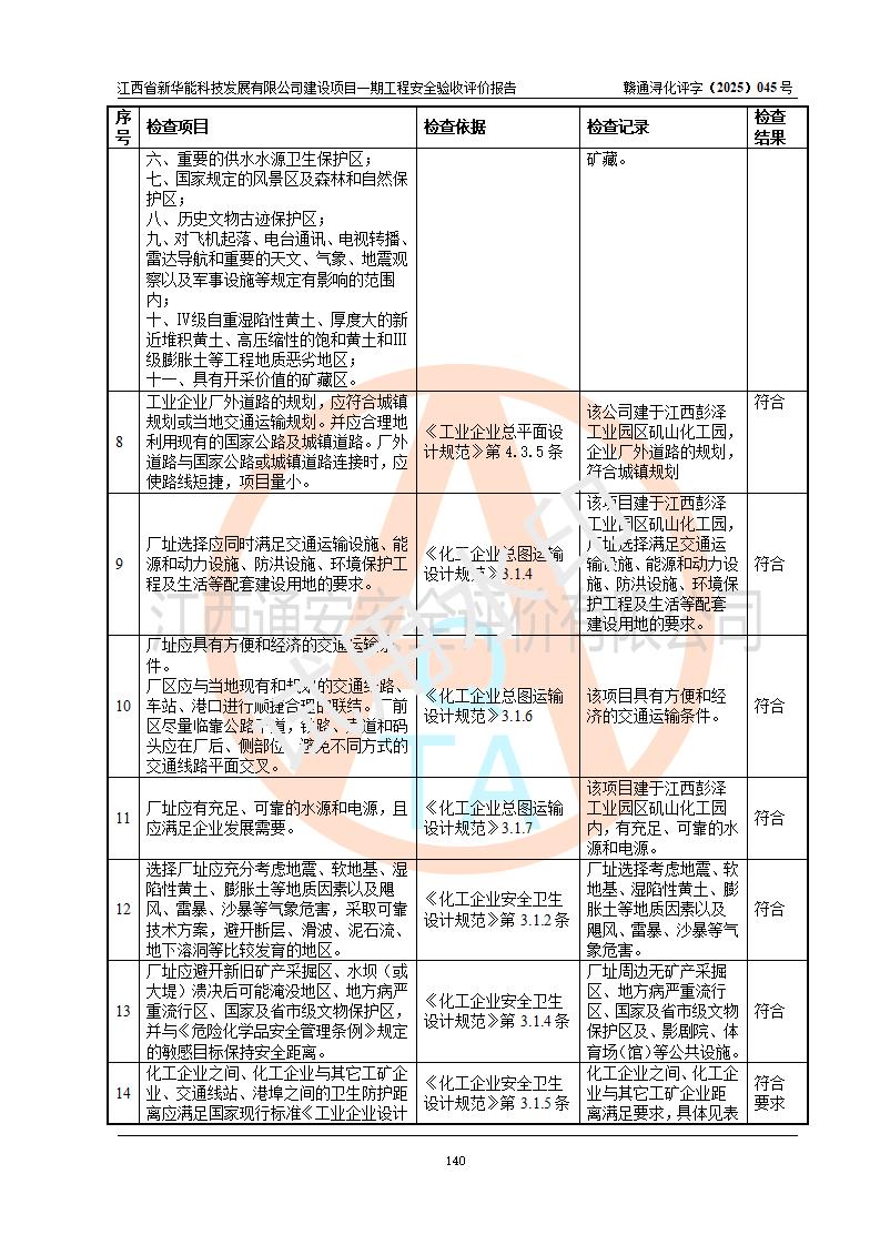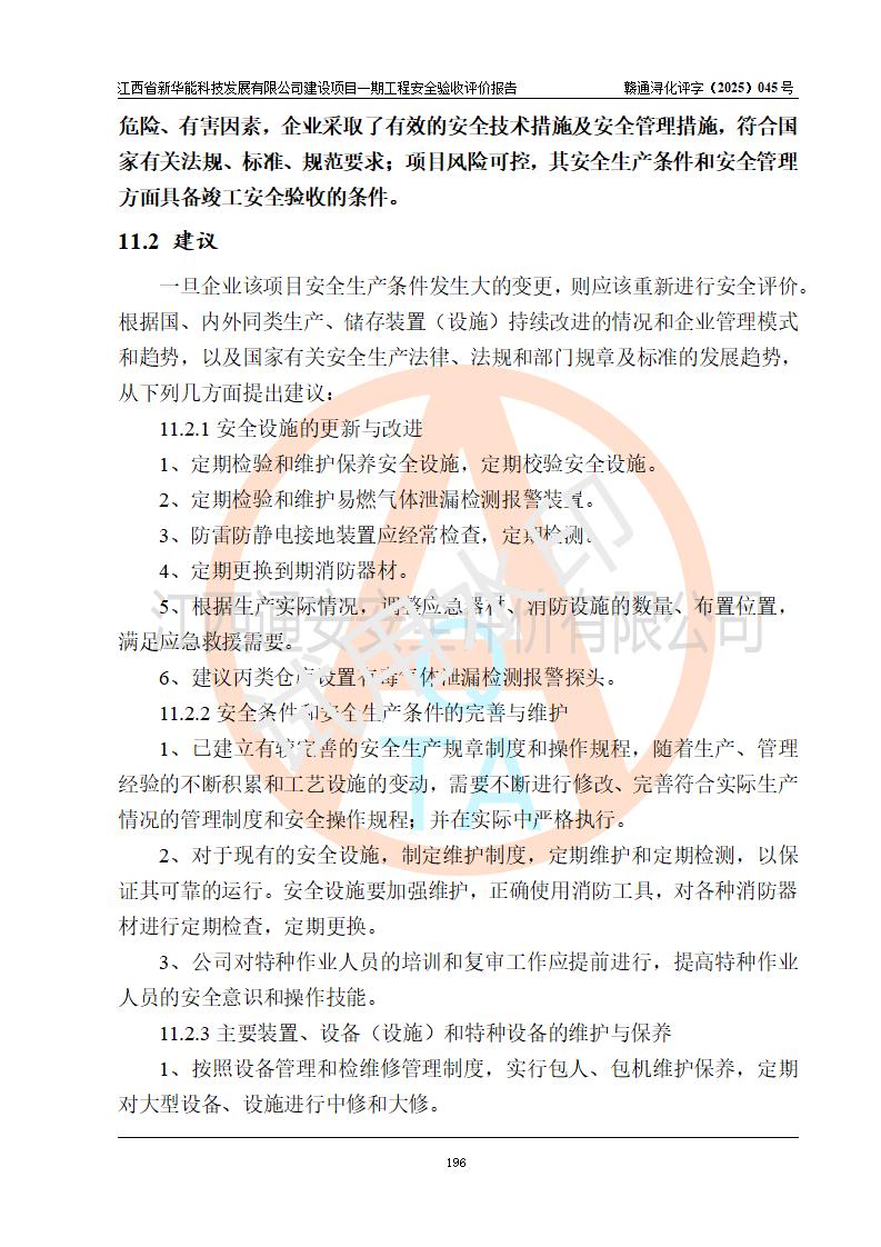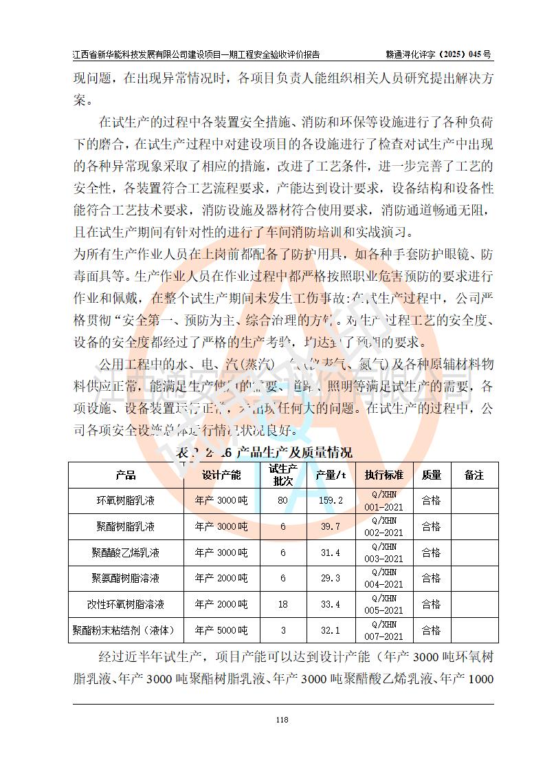 評(píng)價(jià)報(bào)告名稱 | 江西省新華能科技發(fā)展有限公司建設(shè)項(xiàng)目一期工程安全驗(yàn)收評(píng)價(jià)報(bào)告 | |||||