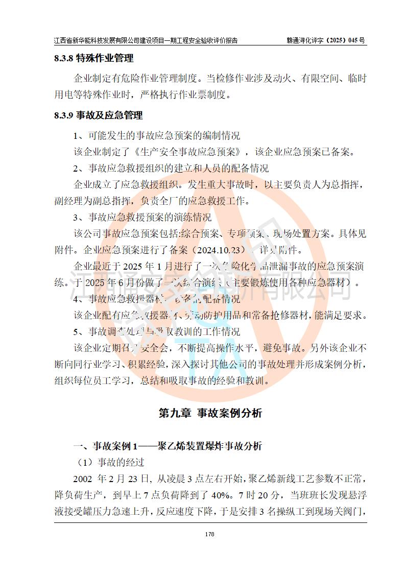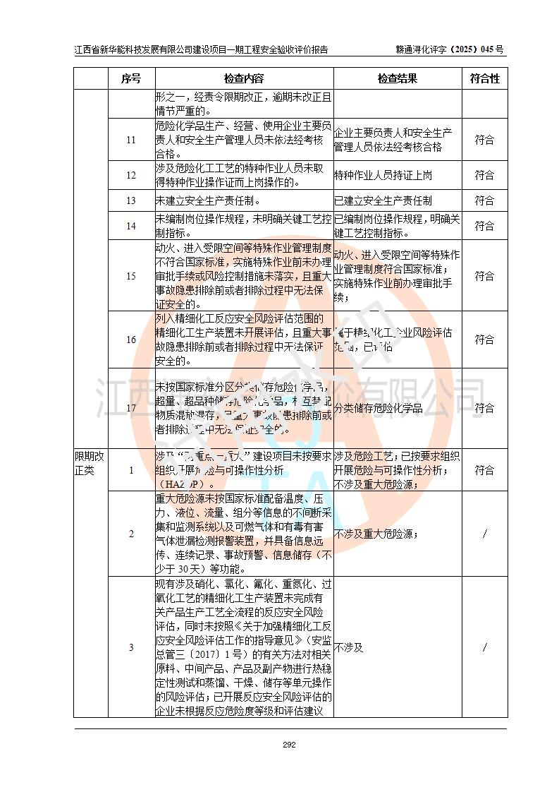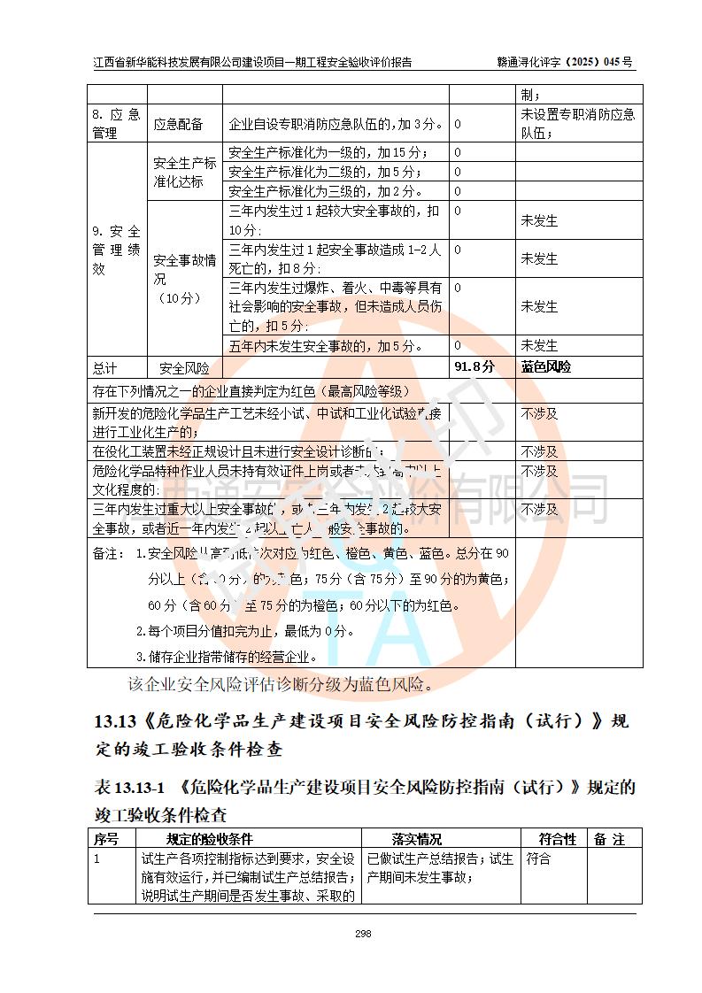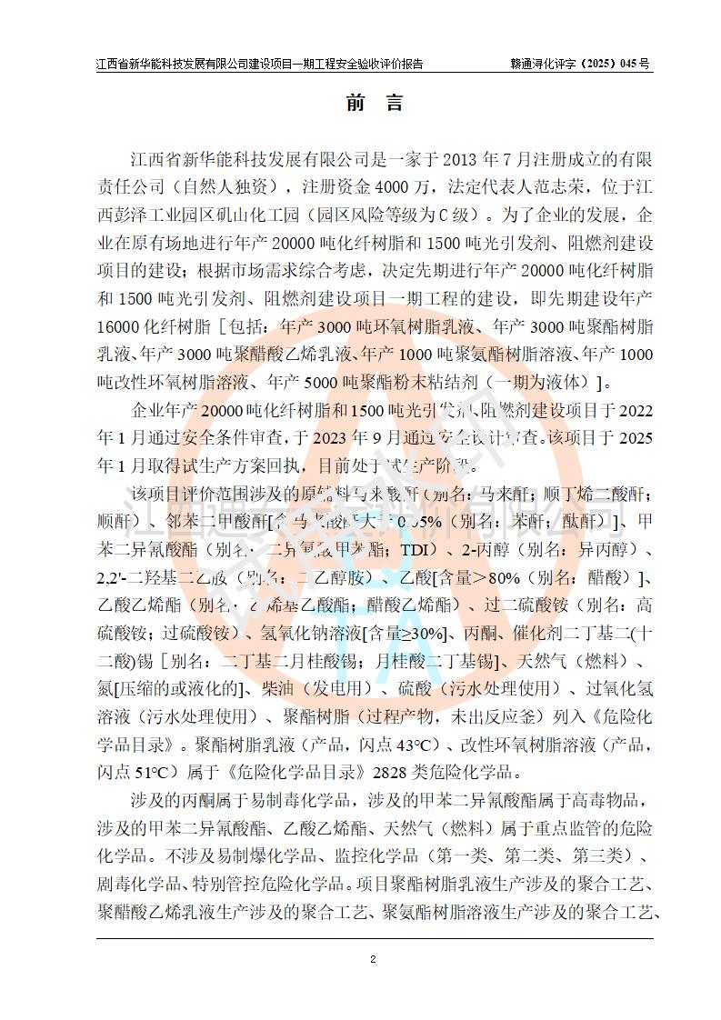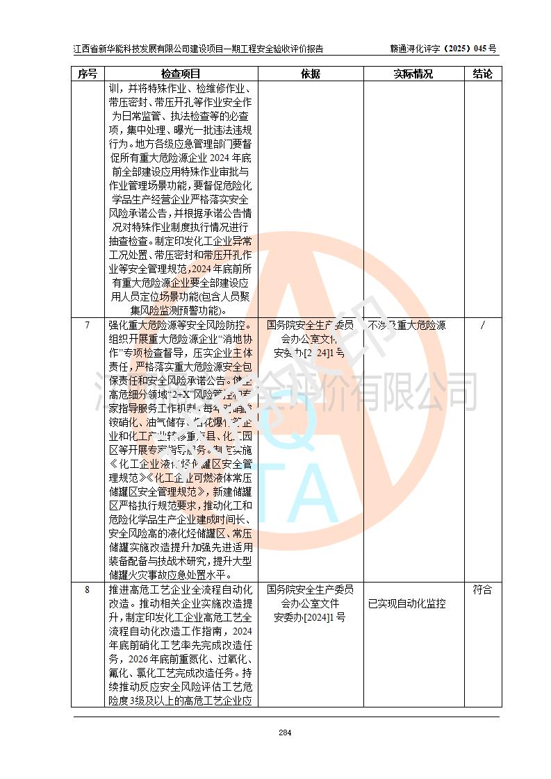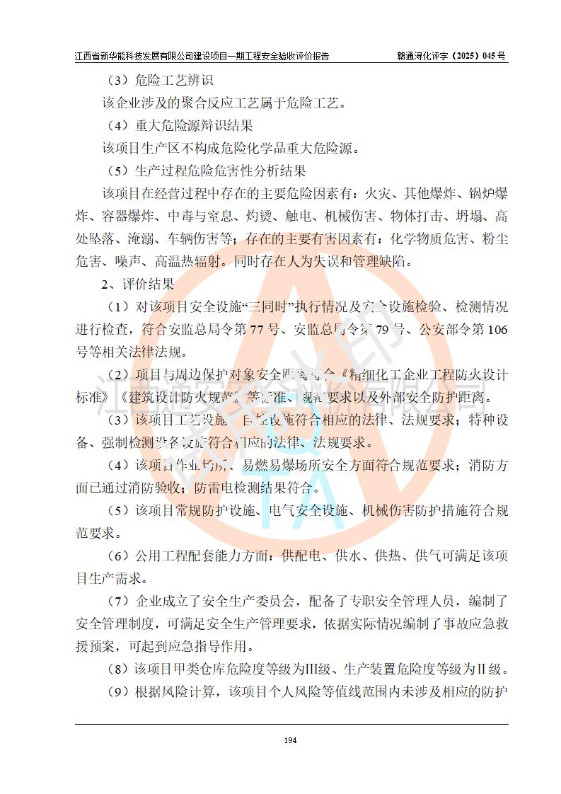 評(píng)價(jià)報(bào)告名稱 | 江西省新華能科技發(fā)展有限公司建設(shè)項(xiàng)目一期工程安全驗(yàn)收評(píng)價(jià)報(bào)告 | |||||