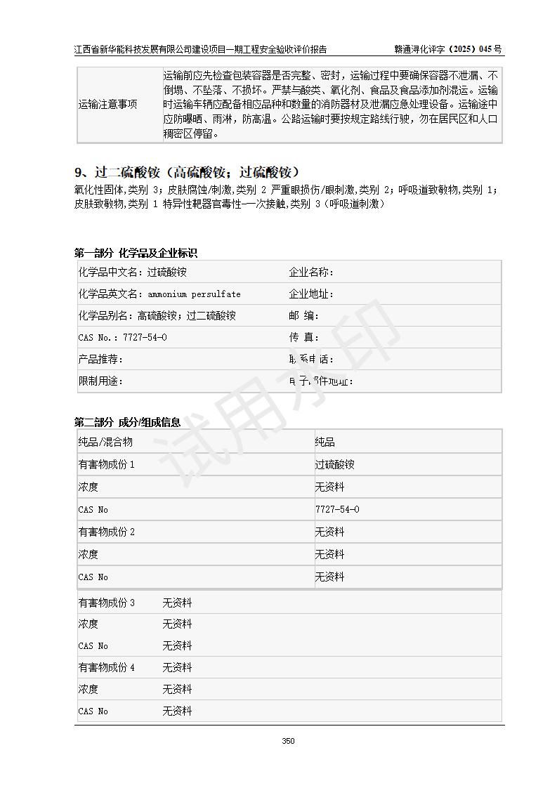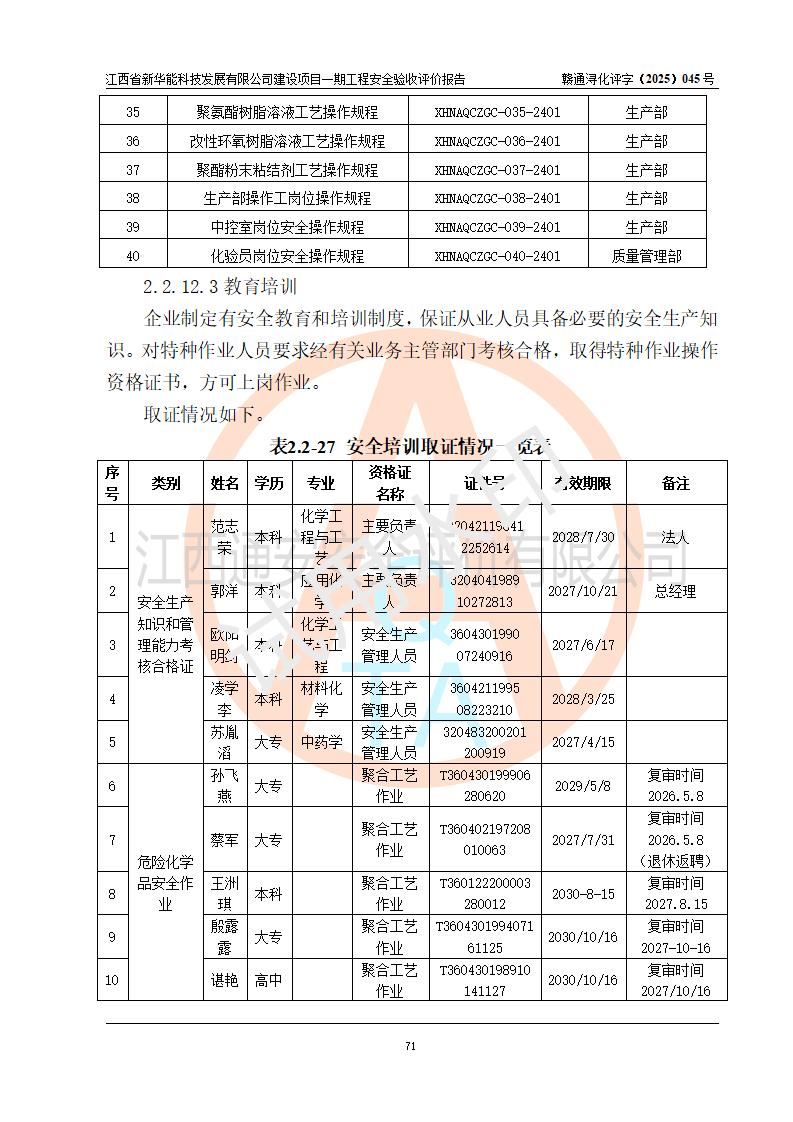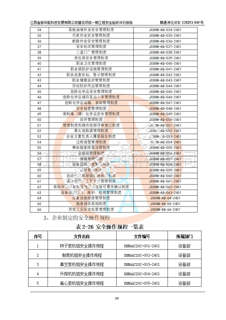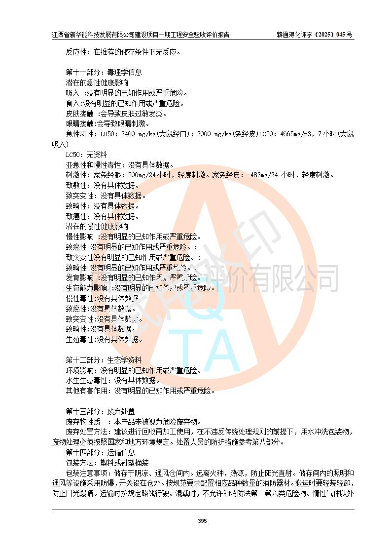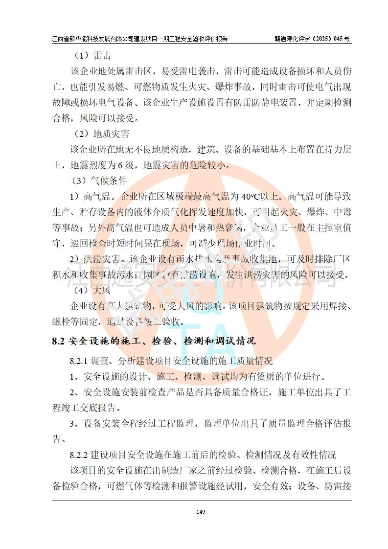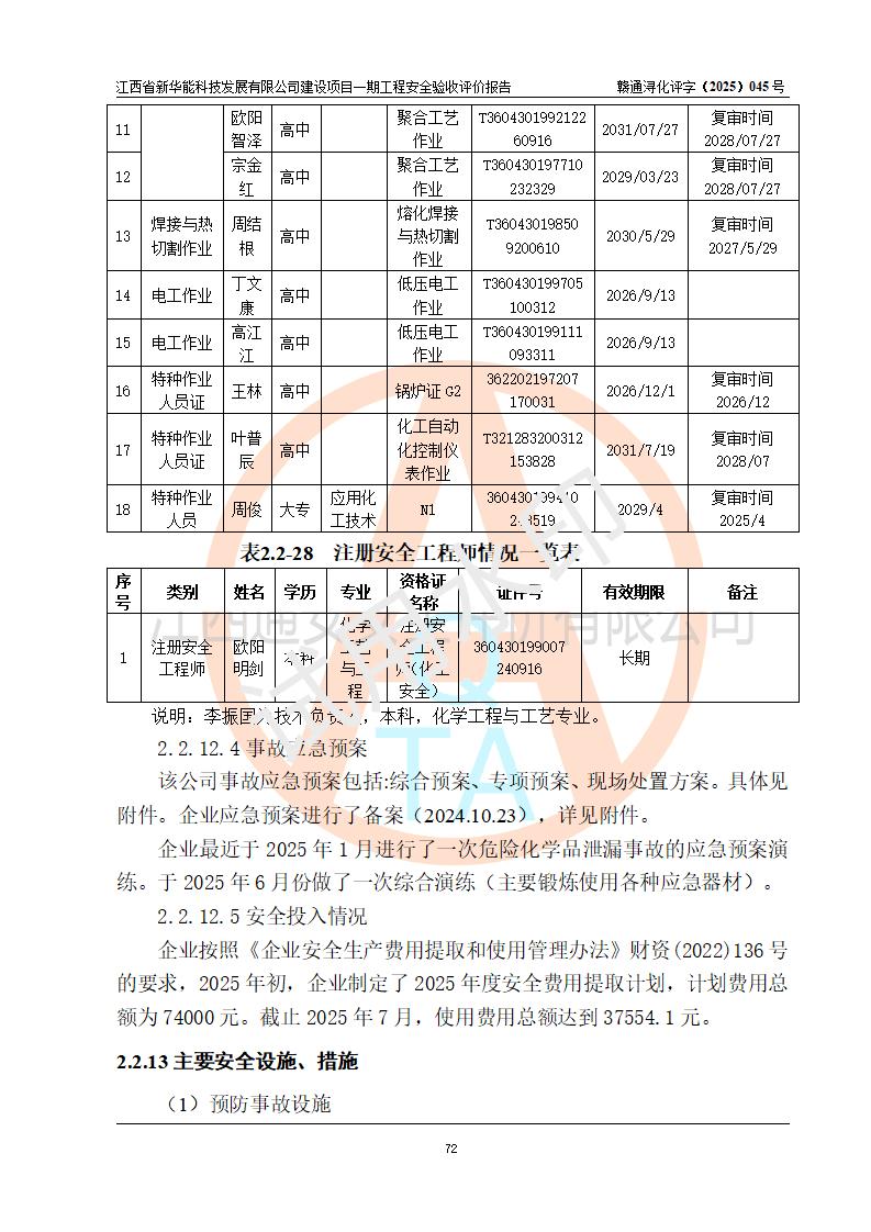 評(píng)價(jià)報(bào)告名稱 | 江西省新華能科技發(fā)展有限公司建設(shè)項(xiàng)目一期工程安全驗(yàn)收評(píng)價(jià)報(bào)告 | |||||