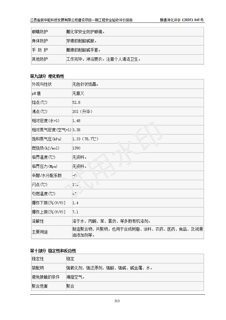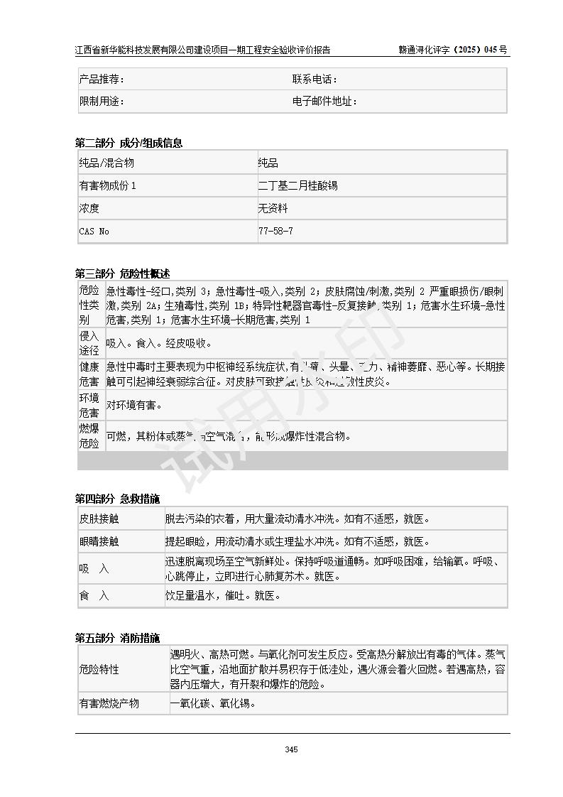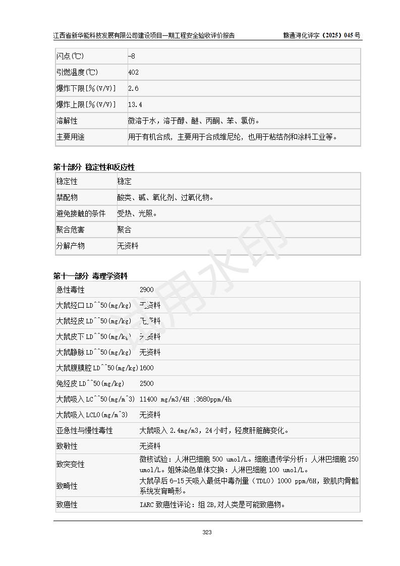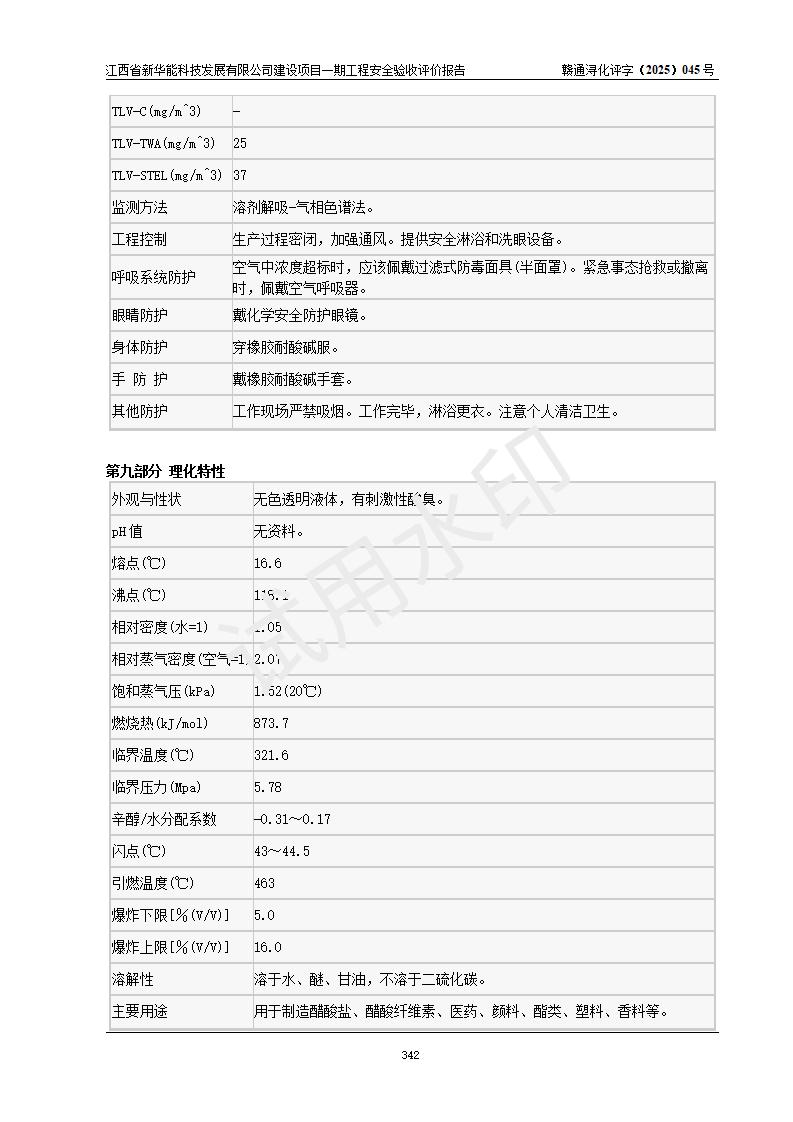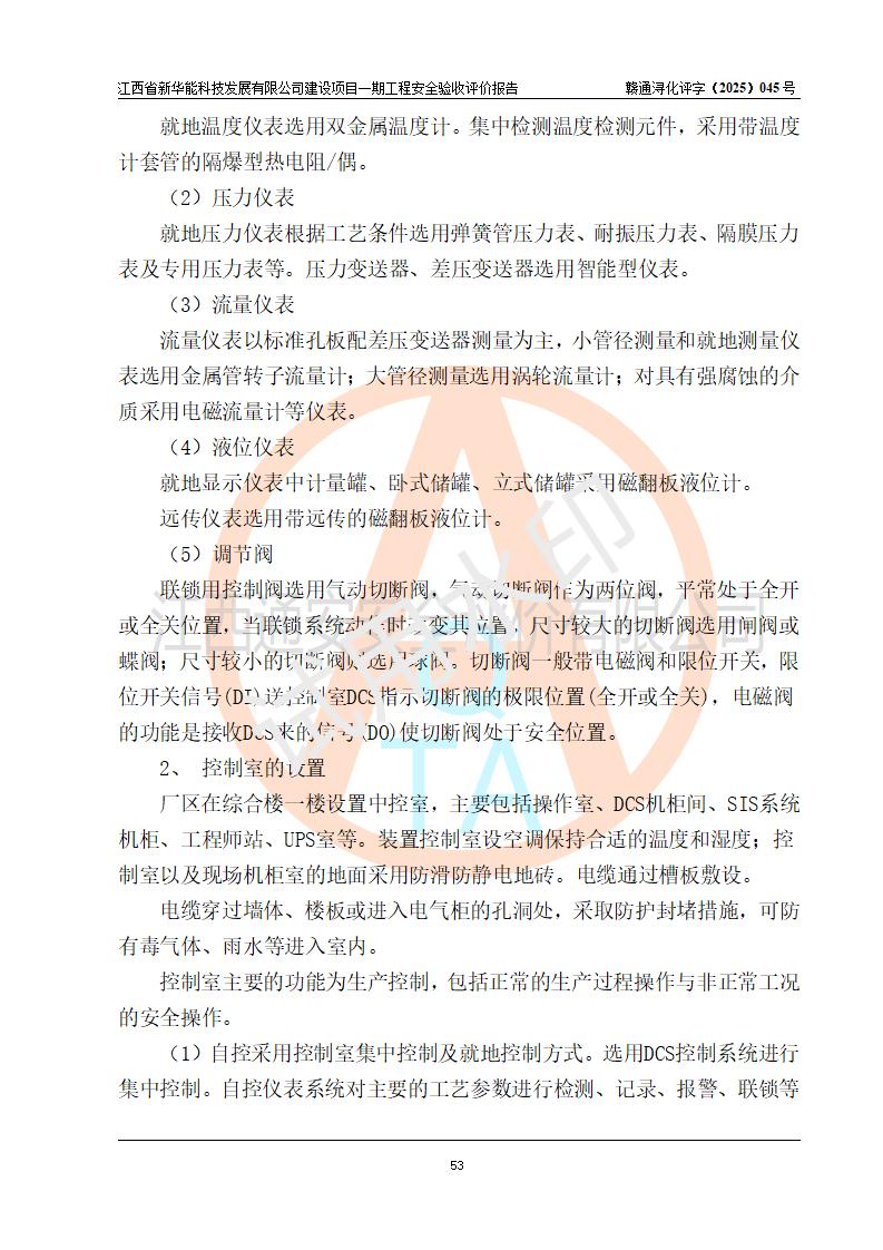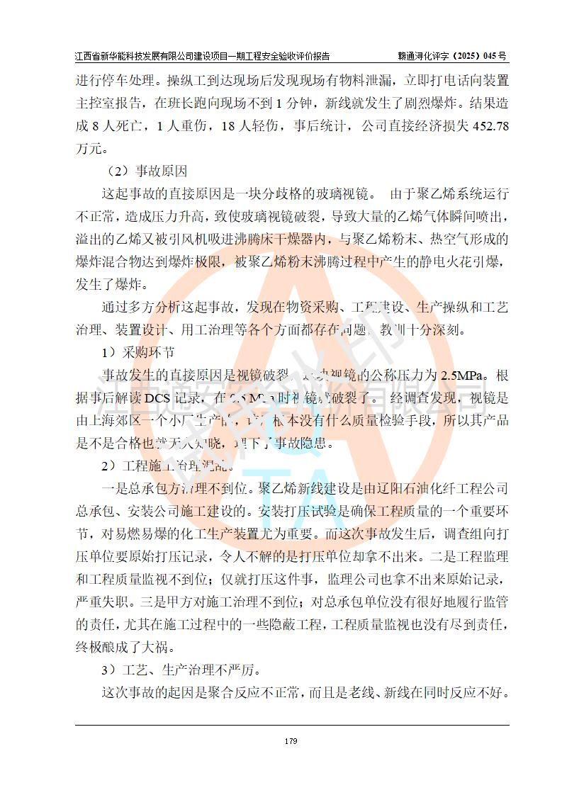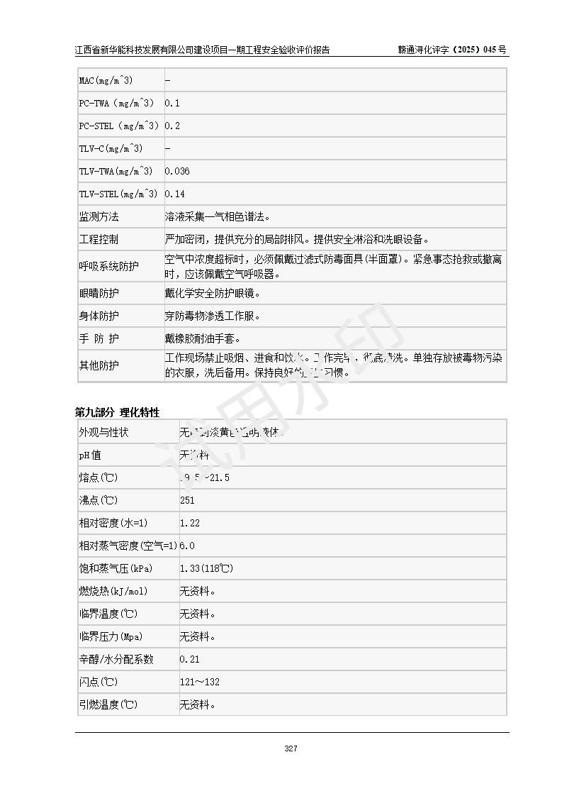 評(píng)價(jià)結(jié)論 | 經(jīng)評(píng)價(jià)組評(píng)價(jià),江西省新華能科技發(fā)展有限公司年產(chǎn)20000噸化纖樹脂和1500噸光引發(fā)劑、阻燃劑建設(shè)項(xiàng)目一期工程(年產(chǎn)16000化纖樹脂項(xiàng)目)總體布局、現(xiàn)場(chǎng)設(shè)備布置情況與設(shè)計(jì)圖紙一致,本次項(xiàng)目涉及重點(diǎn)監(jiān)管的危險(xiǎn)化學(xué)品、危險(xiǎn)工藝,按設(shè)計(jì)要求,設(shè)置有DCS系統(tǒng)、SIS系統(tǒng)、GDS系統(tǒng),符合《江西省應(yīng)急管理廳關(guān)于印發(fā)(試行)的通知 》、關(guān)于印發(fā)《九江市化工企業(yè)自動(dòng)化提升實(shí)施方案》的安全要求,符合《危險(xiǎn)化學(xué)品生產(chǎn)建設(shè)項(xiàng)目安全風(fēng)險(xiǎn)防控指南(試行)》規(guī)定竣工驗(yàn)收的安全條件;企業(yè)主要負(fù)責(zé)人、安全管理部門負(fù)責(zé)人均為化學(xué)、化工相關(guān)專業(yè),且有3年以上化工行業(yè)從業(yè)經(jīng)歷,企業(yè)主要負(fù)責(zé)人及安全管理人員已取得危險(xiǎn)化學(xué)品企業(yè)主要負(fù)責(zé)人及安全管理人員考核合格證。項(xiàng)目選擇的工藝過(guò)程及設(shè)備設(shè)施的安全可靠性能 達(dá)到**法規(guī)、標(biāo)準(zhǔn)規(guī)定要求。 項(xiàng)目運(yùn)行后存在的主要危險(xiǎn)、有害因素有:火災(zāi)、其他爆炸、容器爆炸、中毒與窒息等;存在的主要有害因素有高溫、化學(xué)物質(zhì)危害等;針對(duì)存在的危險(xiǎn)、有害因素,企業(yè)采取了**的安全技術(shù)措施及安全管理措施,符合**有關(guān)法規(guī)、標(biāo)準(zhǔn)、規(guī)范要求;項(xiàng)目風(fēng)險(xiǎn)可控,其安全生產(chǎn)條件和安全管理 方面具備竣工安全驗(yàn)收的條件。 | |||||