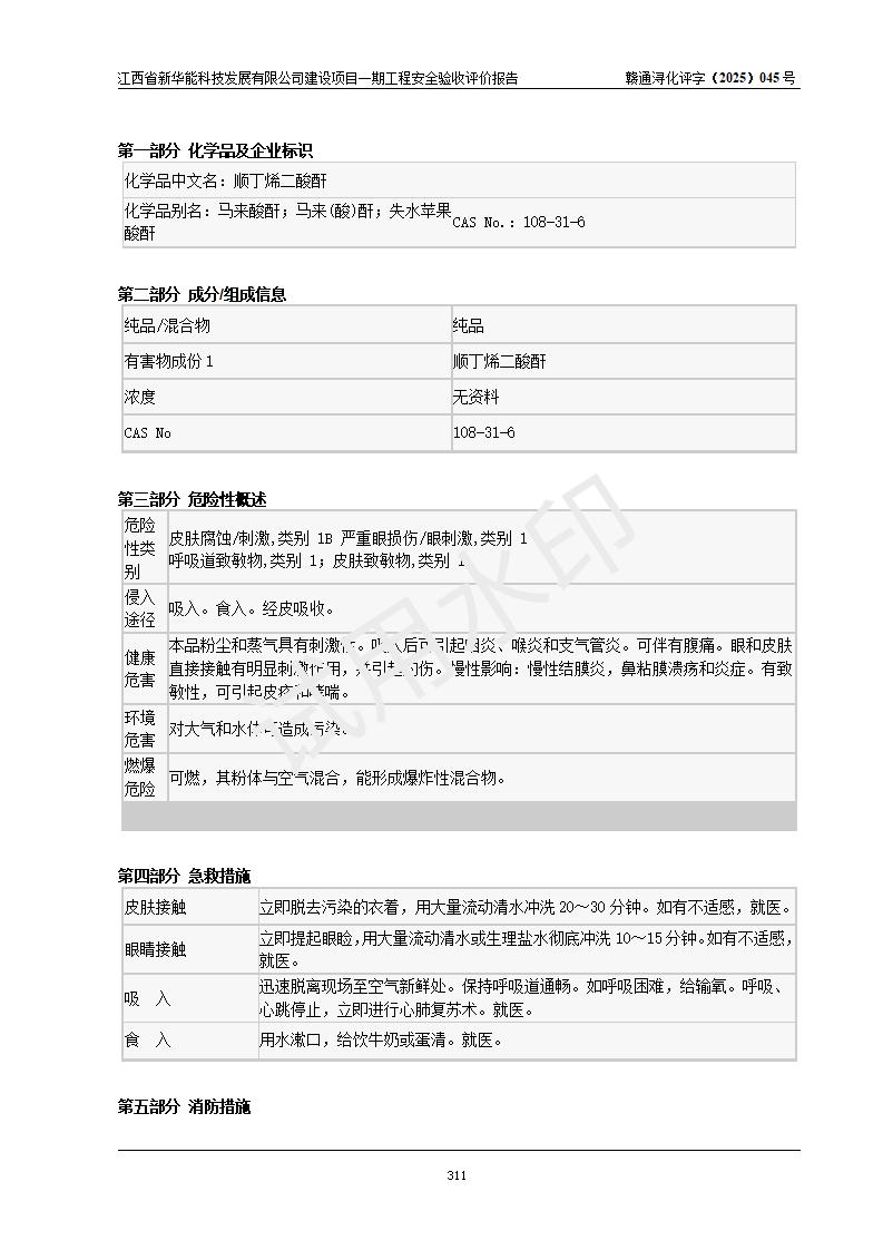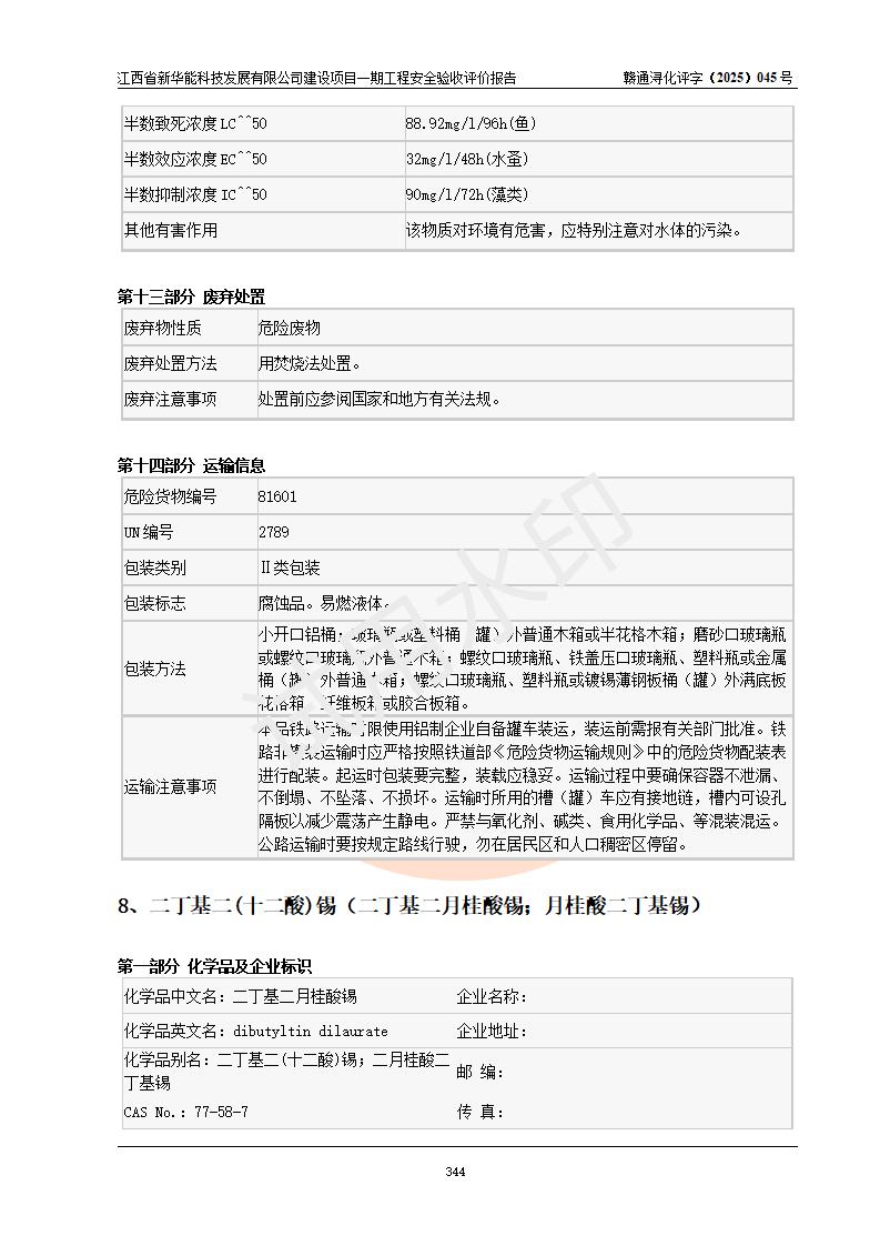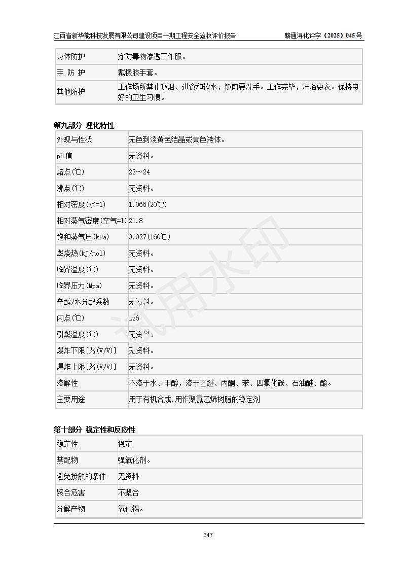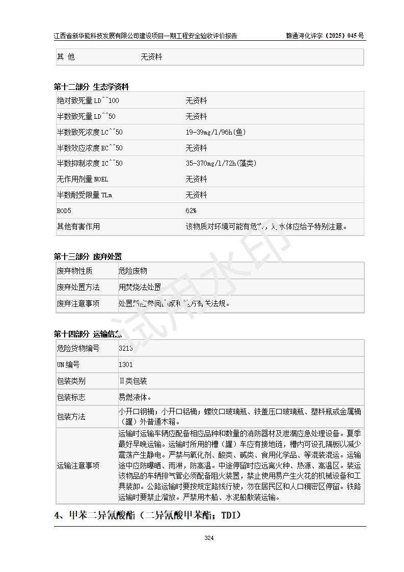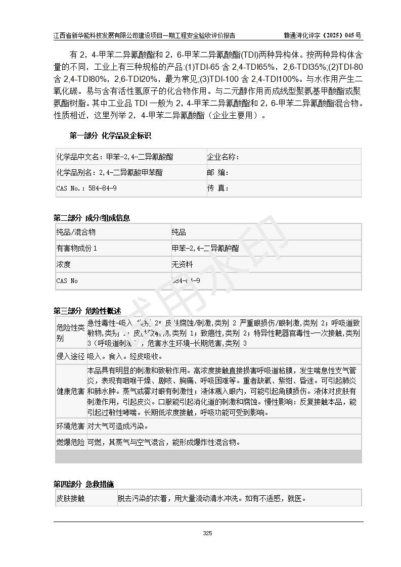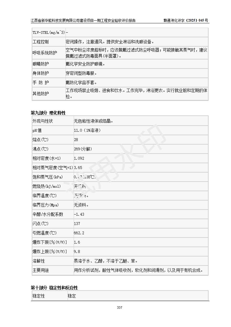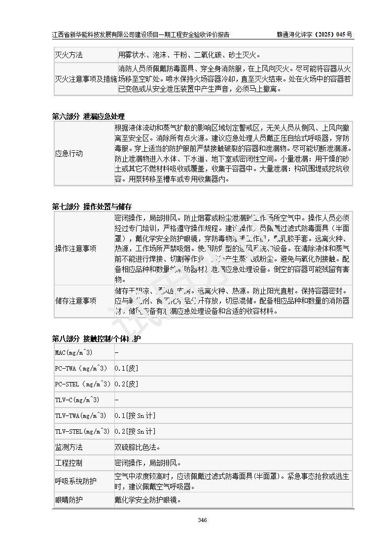 評(píng)價(jià)結(jié)論 | 經(jīng)評(píng)價(jià)組評(píng)價(jià),江西省新華能科技發(fā)展有限公司年產(chǎn)20000噸化纖樹脂和1500噸光引發(fā)劑、阻燃劑建設(shè)項(xiàng)目一期工程(年產(chǎn)16000化纖樹脂項(xiàng)目)總體布局、現(xiàn)場(chǎng)設(shè)備布置情況與設(shè)計(jì)圖紙一致,本次項(xiàng)目涉及重點(diǎn)監(jiān)管的危險(xiǎn)化學(xué)品、危險(xiǎn)工藝,按設(shè)計(jì)要求,設(shè)置有DCS系統(tǒng)、SIS系統(tǒng)、GDS系統(tǒng),符合《江西省應(yīng)急管理廳關(guān)于印發(fā)(試行)的通知 》、關(guān)于印發(fā)《九江市化工企業(yè)自動(dòng)化提升實(shí)施方案》的安全要求,符合《危險(xiǎn)化學(xué)品生產(chǎn)建設(shè)項(xiàng)目安全風(fēng)險(xiǎn)防控指南(試行)》規(guī)定竣工驗(yàn)收的安全條件;企業(yè)主要負(fù)責(zé)人、安全管理部門負(fù)責(zé)人均為化學(xué)、化工相關(guān)專業(yè),且有3年以上化工行業(yè)從業(yè)經(jīng)歷,企業(yè)主要負(fù)責(zé)人及安全管理人員已取得危險(xiǎn)化學(xué)品企業(yè)主要負(fù)責(zé)人及安全管理人員考核合格證。項(xiàng)目選擇的工藝過(guò)程及設(shè)備設(shè)施的安全可靠性能 達(dá)到**法規(guī)、標(biāo)準(zhǔn)規(guī)定要求。 項(xiàng)目運(yùn)行后存在的主要危險(xiǎn)、有害因素有:火災(zāi)、其他爆炸、容器爆炸、中毒與窒息等;存在的主要有害因素有高溫、化學(xué)物質(zhì)危害等;針對(duì)存在的危險(xiǎn)、有害因素,企業(yè)采取了**的安全技術(shù)措施及安全管理措施,符合**有關(guān)法規(guī)、標(biāo)準(zhǔn)、規(guī)范要求;項(xiàng)目風(fēng)險(xiǎn)可控,其安全生產(chǎn)條件和安全管理 方面具備竣工安全驗(yàn)收的條件。 | |||||