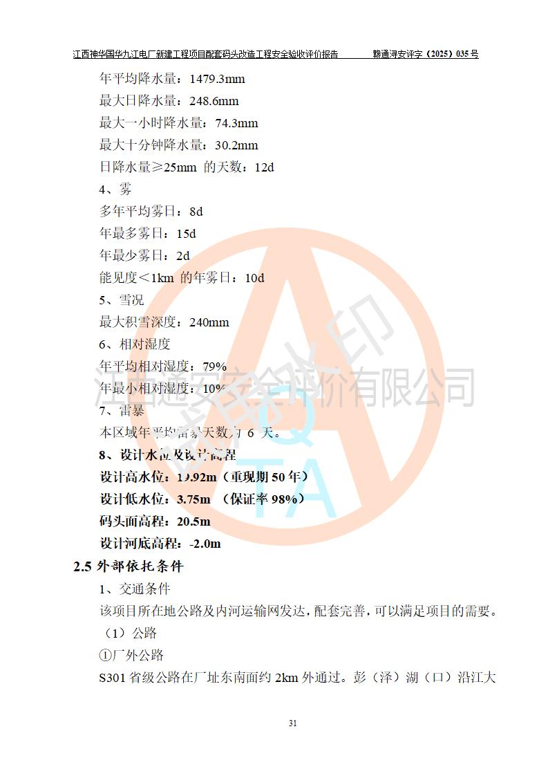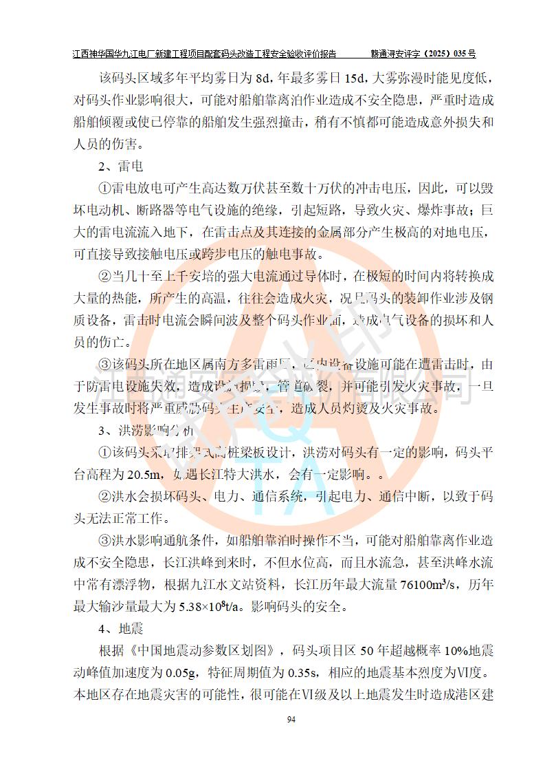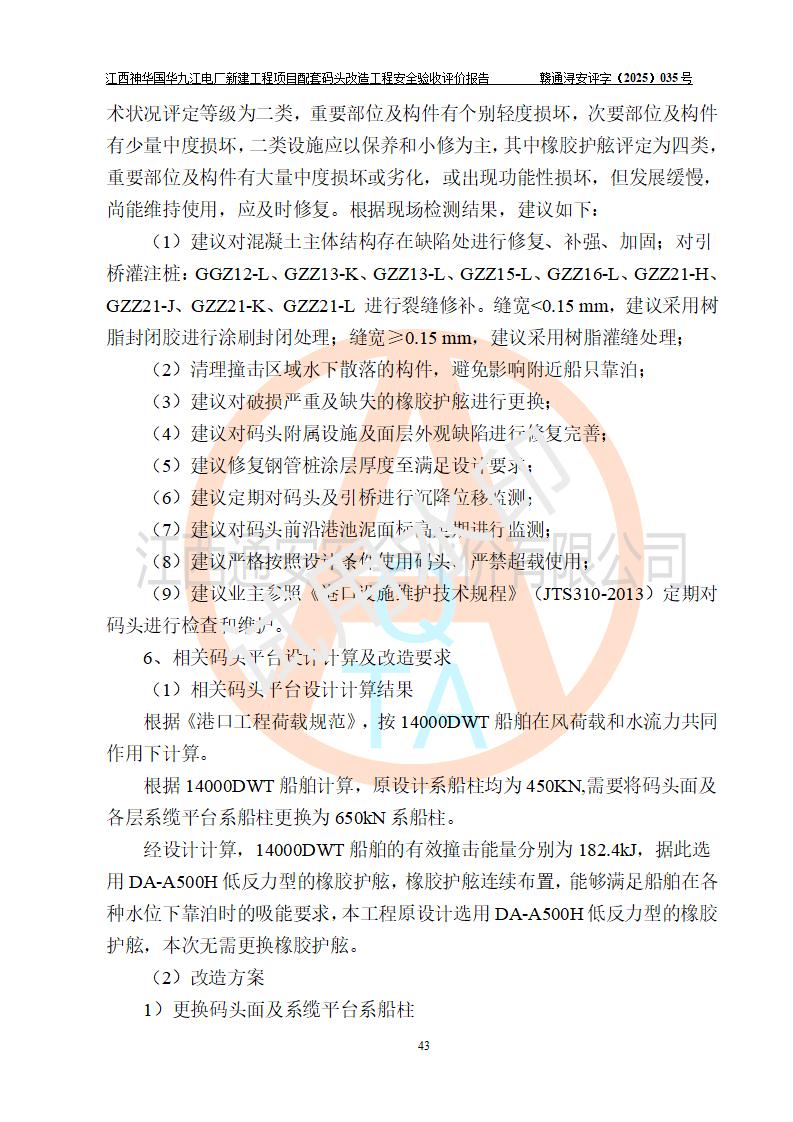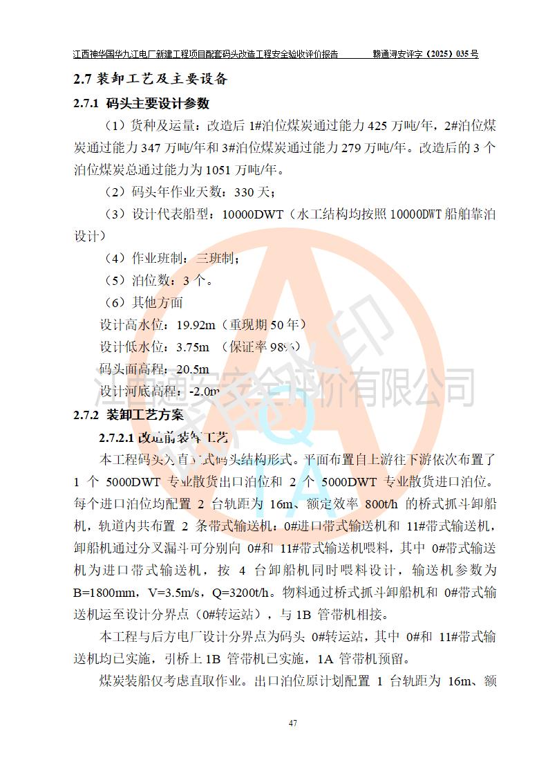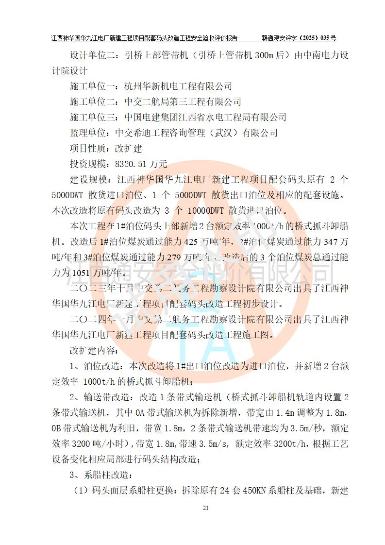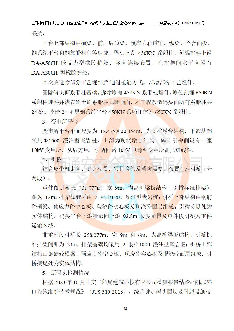項(xiàng)目名稱:江西神華國(guó)華九江電廠新建工程項(xiàng)目配套碼頭改造工程 項(xiàng)目地點(diǎn):位于長(zhǎng)江下游東北水道右岸,九江長(zhǎng)江大橋下游約37**,岸線批復(fù)總長(zhǎng)度為409米 建設(shè)單位:國(guó)能神華九江發(fā)電有限責(zé)任公司 勘察設(shè)計(jì)單位:中交第二航務(wù)工程勘察設(shè)計(jì)院有限公司 設(shè)計(jì)單位一:中交第二航務(wù)工程勘察設(shè)計(jì)院有限公司(水工建筑物設(shè)計(jì)分界以大堤為界,大堤以外由二航院設(shè)計(jì)) ;工藝專業(yè)設(shè)計(jì)分界點(diǎn)以碼頭平臺(tái)上的 0#轉(zhuǎn)運(yùn)站為分界點(diǎn),0#轉(zhuǎn)運(yùn)站內(nèi)部工藝設(shè)備由二航院設(shè)計(jì) 設(shè)計(jì)單位二:引橋上部管帶機(jī)(引橋上管帶機(jī)300m后)由中南電力設(shè)計(jì)院設(shè)計(jì) 施工單位一:杭州華新機(jī)電工程有限公司 施工單位二:中交二航局第三工程有限公司 施工單位三:中國(guó)電建集團(tuán)江西省水電工程局有限公司 監(jiān)理單位:中交希迪工程咨詢管理(武漢)有限公司 項(xiàng)目性質(zhì):改擴(kuò)建 投資規(guī)模:8320.51萬(wàn)元 建設(shè)規(guī)模:江西神華國(guó)華九江電廠新建工程項(xiàng)目配套碼頭原有 2 個(gè)5000DWT 散貨**泊位、1 個(gè) 5000DWT 散貨出口泊位及相應(yīng)的配套設(shè)施。本次改造將原有碼頭改造為 3 個(gè) 10000DWT 散貨**泊位。改造后的3個(gè)泊位煤炭總通過(guò)能力為1051萬(wàn)噸/年。 |