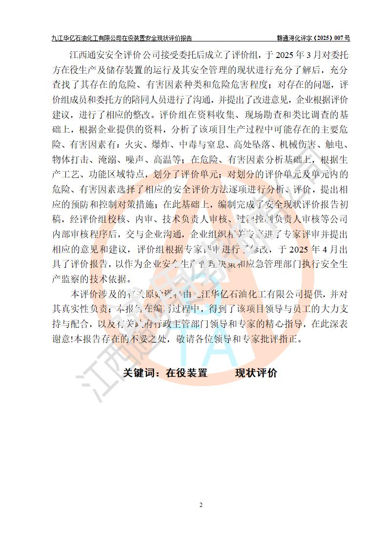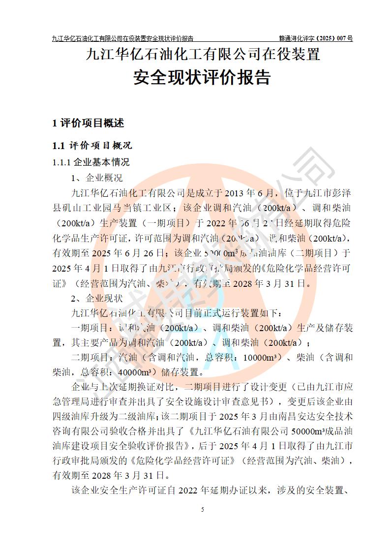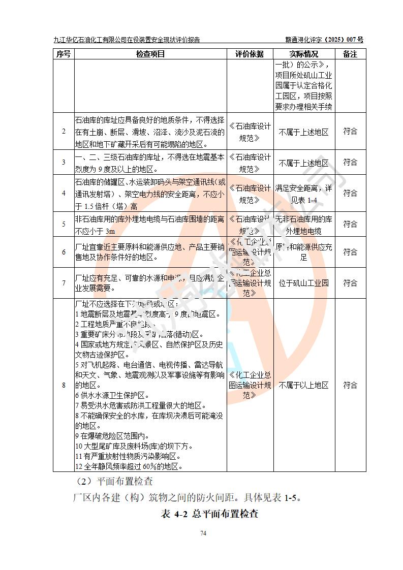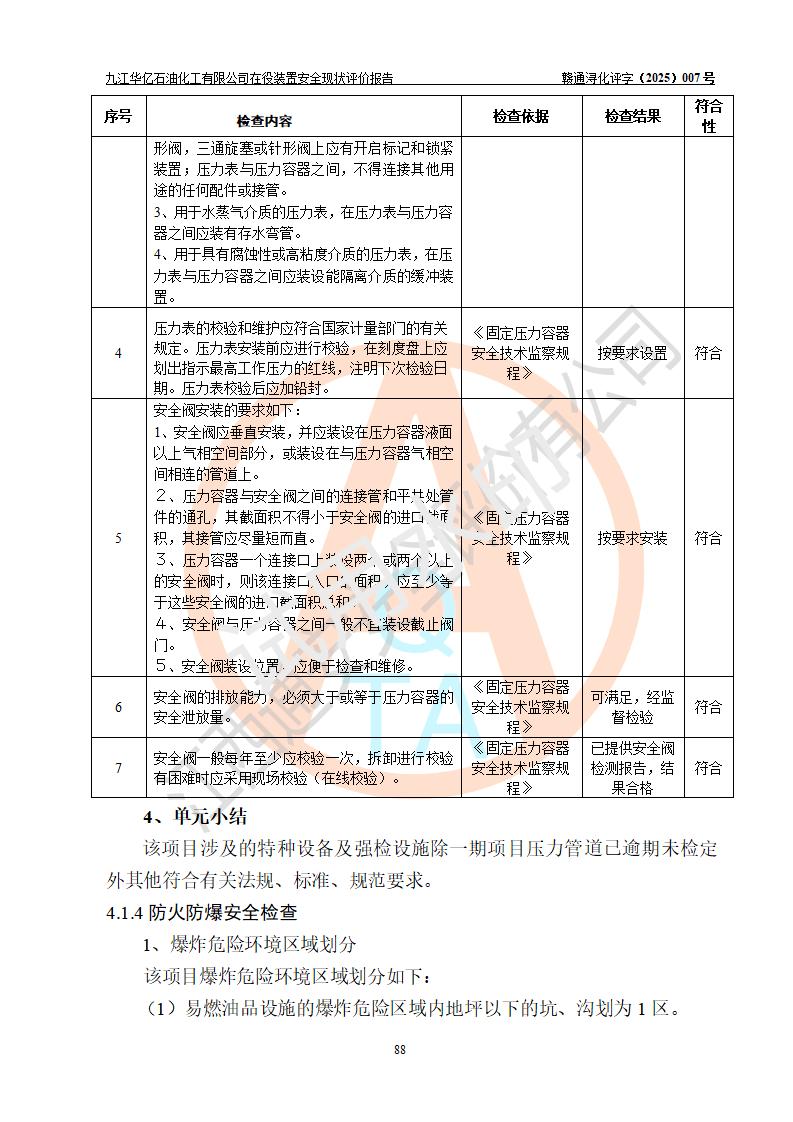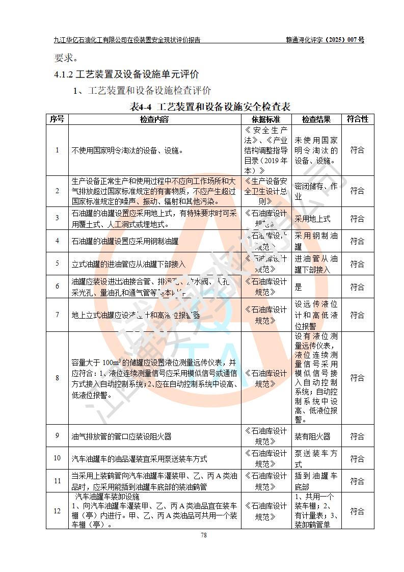 評價報告名稱 | 九江華億石油化工有限公司 在役裝置安全現(xiàn)狀評價 | |||||