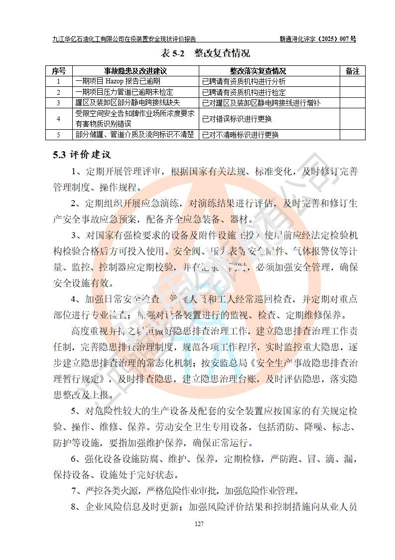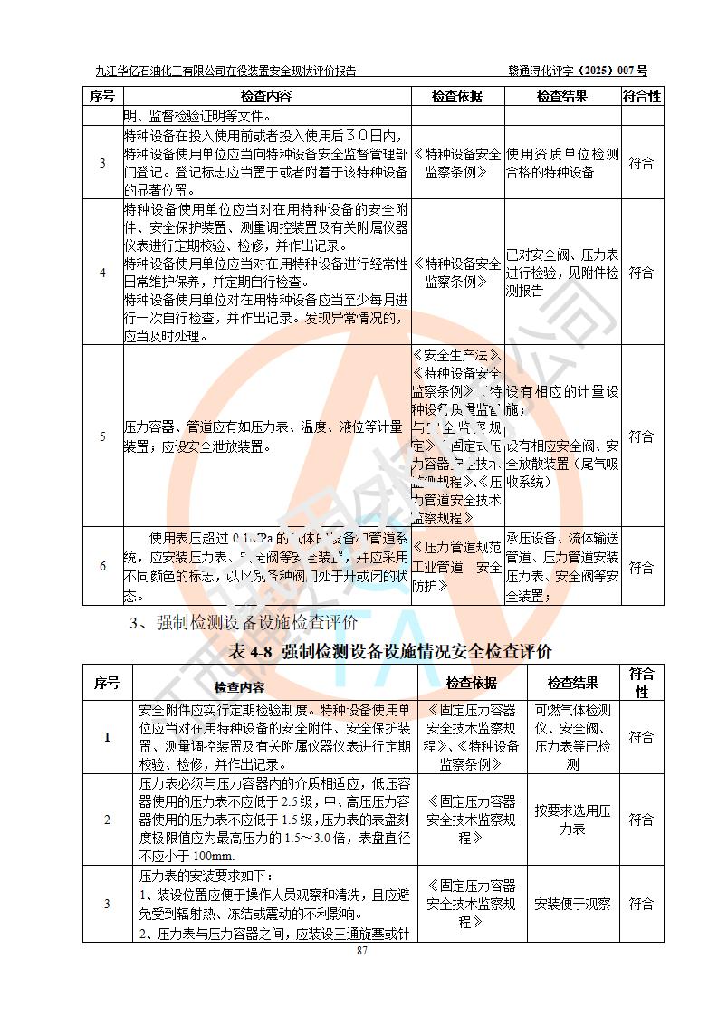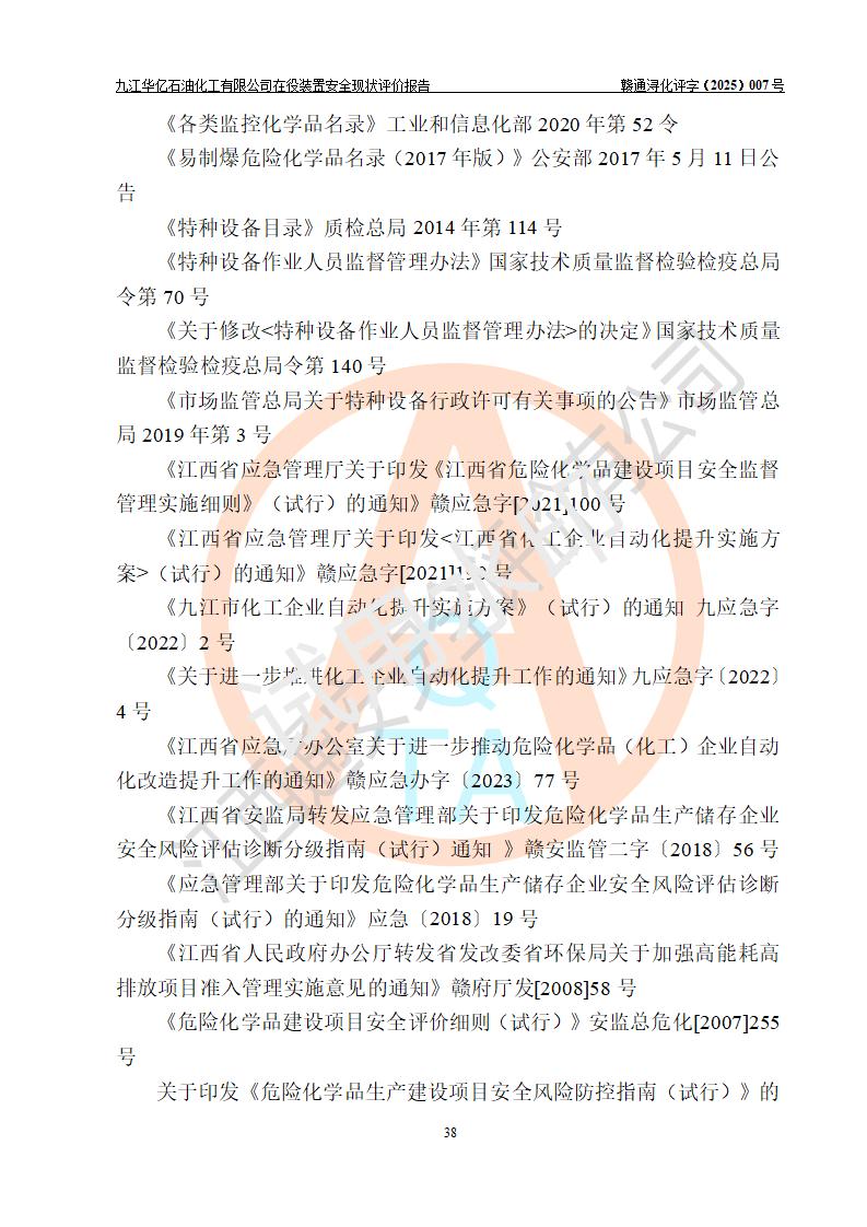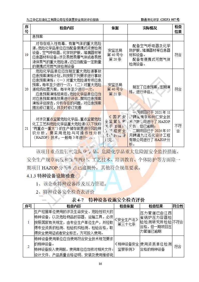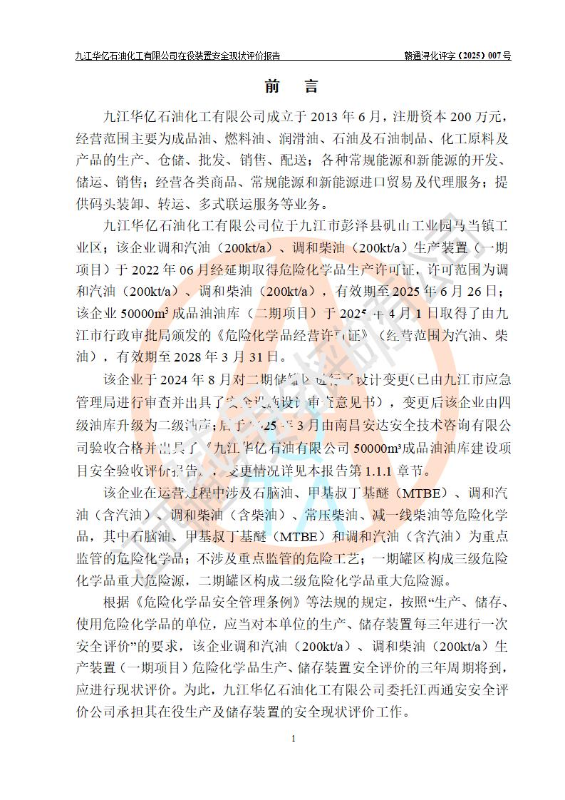 評價報告名稱 | 九江華億石油化工有限公司 在役裝置安全現(xiàn)狀評價 | |||||