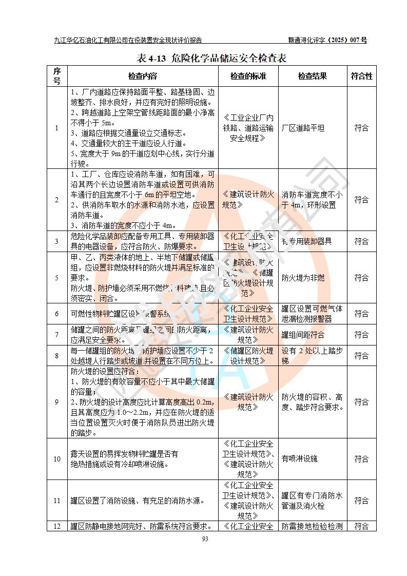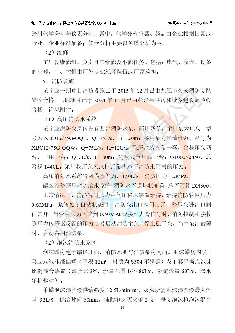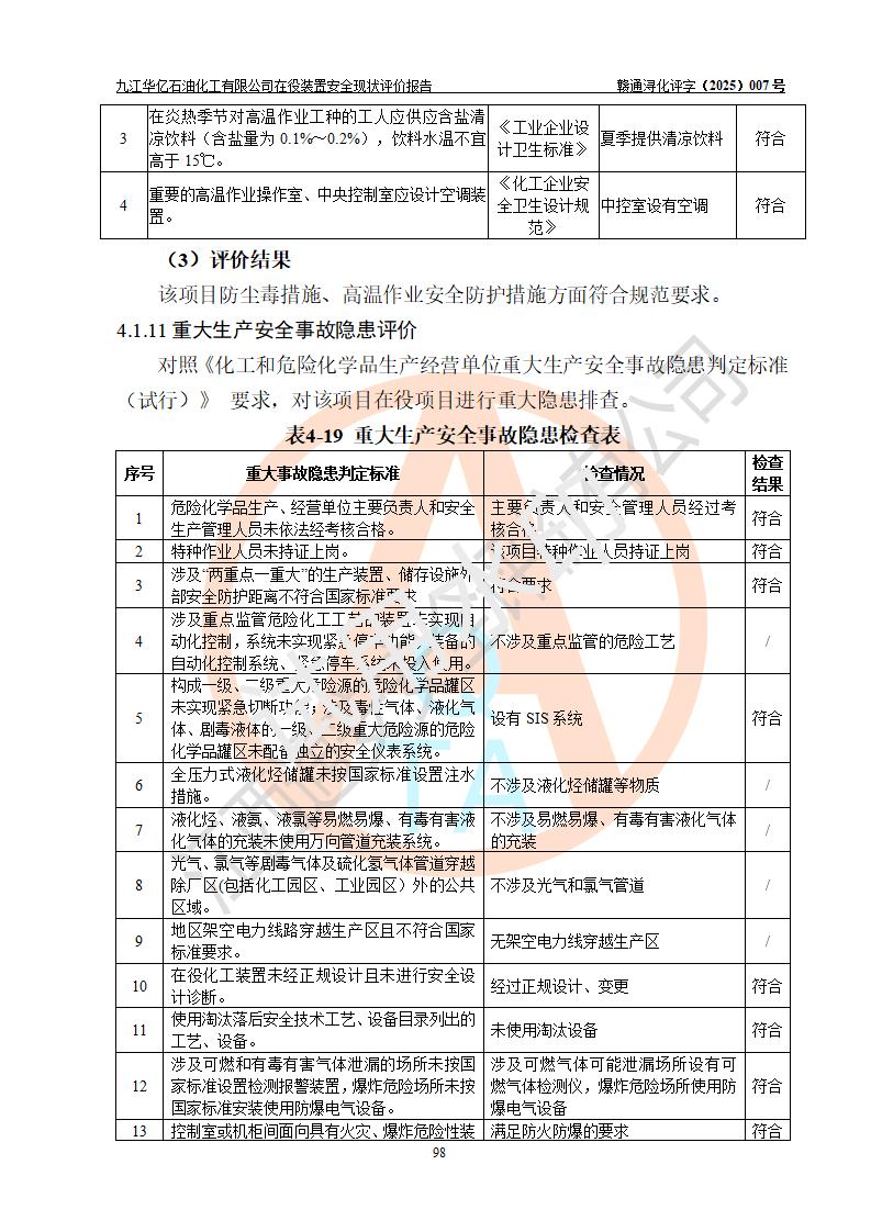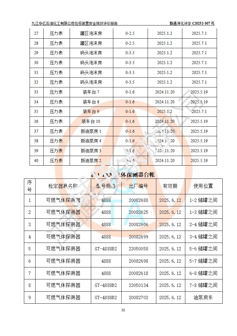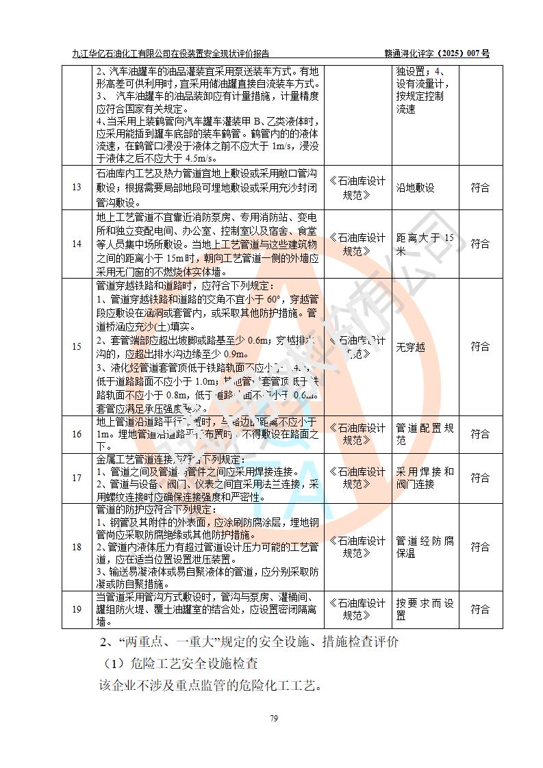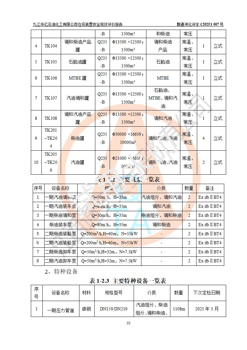 評價報告名稱 | 九江華億石油化工有限公司 在役裝置安全現(xiàn)狀評價 | |||||