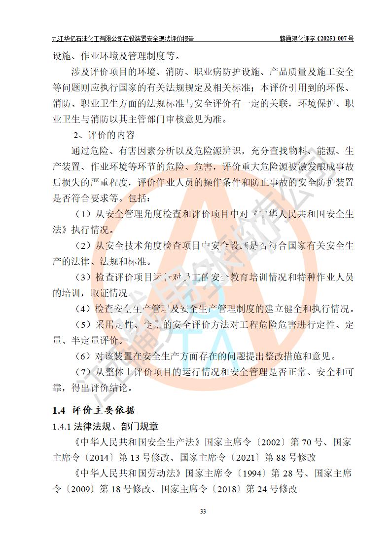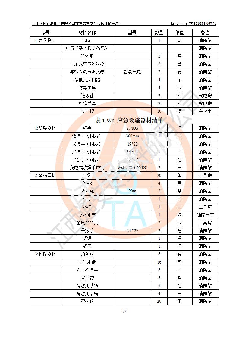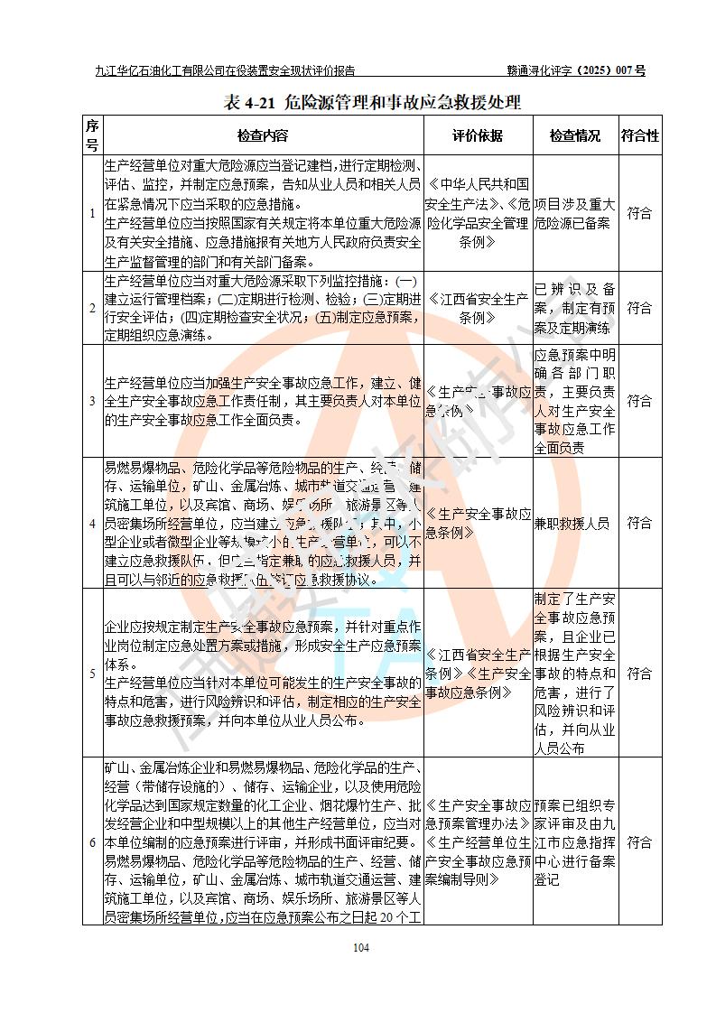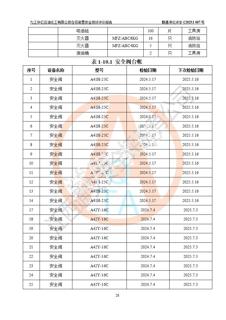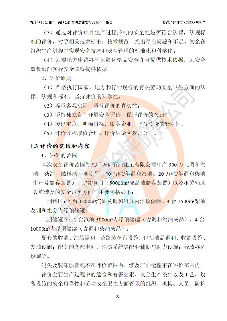 評價報告名稱 | 九江華億石油化工有限公司 在役裝置安全現(xiàn)狀評價 | |||||