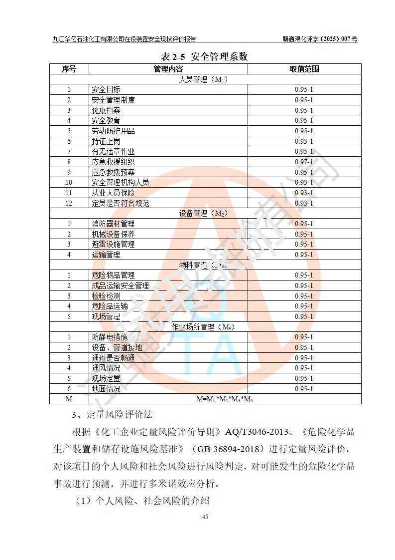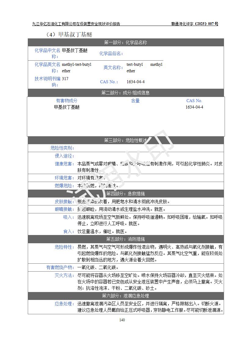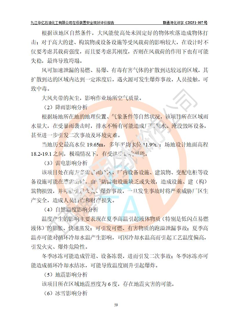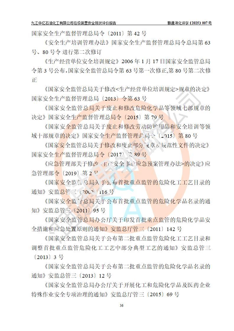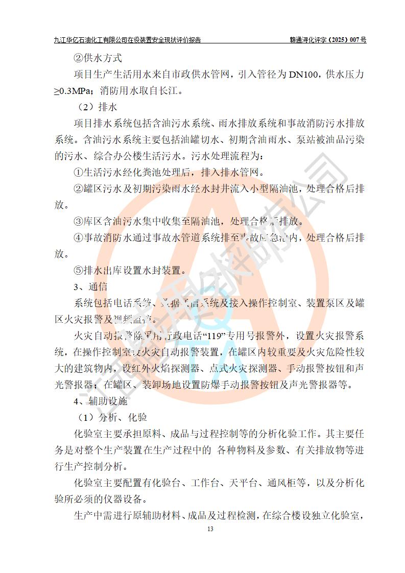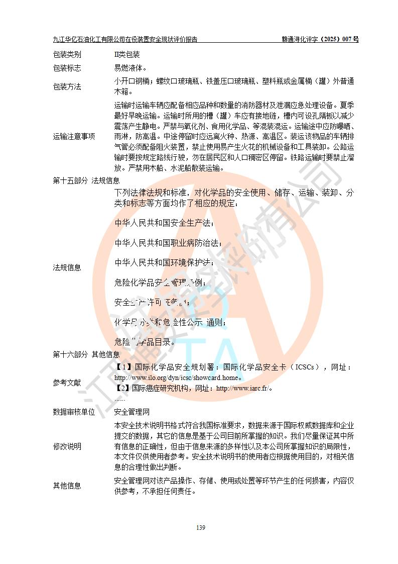 評價結(jié)論 | 經(jīng)評價組評價,九江華億石油化工有限公司現(xiàn)場總體布局、設(shè)備布置、DCS/SIS系統(tǒng)情況與安全設(shè)計圖紙一致;企業(yè)在役裝置涉及重點監(jiān)管危險化學品、重大危險源,相關(guān)自控系統(tǒng)配置與安全設(shè)計相符并正常投用;企業(yè)主要負責人董事長、總經(jīng)理、生產(chǎn)、技術(shù)、設(shè)備負責人及安全管理人員均已具有化工類大專以上相關(guān)專業(yè)學歷,已取得危險化學品生產(chǎn)企業(yè)主要負責人及安全管理人員考核合格證。 九江華億石油化工有限公司在役生產(chǎn)裝置配套安全裝置、防護設(shè)施以及采取的安全技術(shù)措施及安全管理措施符合**有關(guān)法規(guī)、標準、規(guī)范要求,符合《危險化學品生產(chǎn)企業(yè)安全生產(chǎn)許可證實施辦法》規(guī)定的安全生產(chǎn)條件,項目風險可控,滿足安全生產(chǎn)條件。
