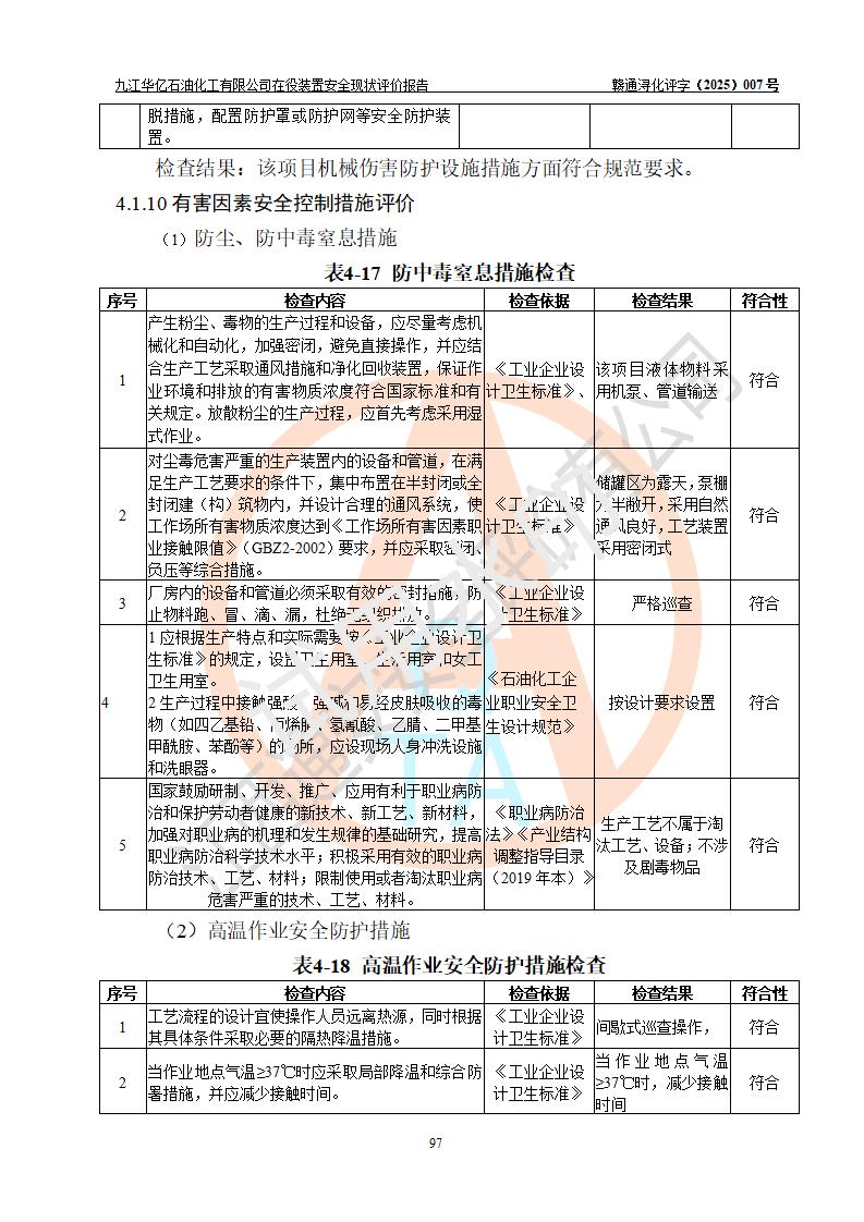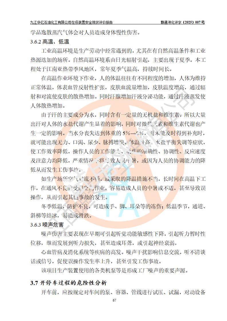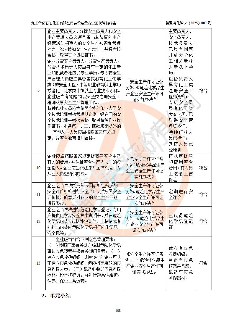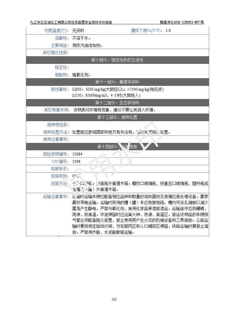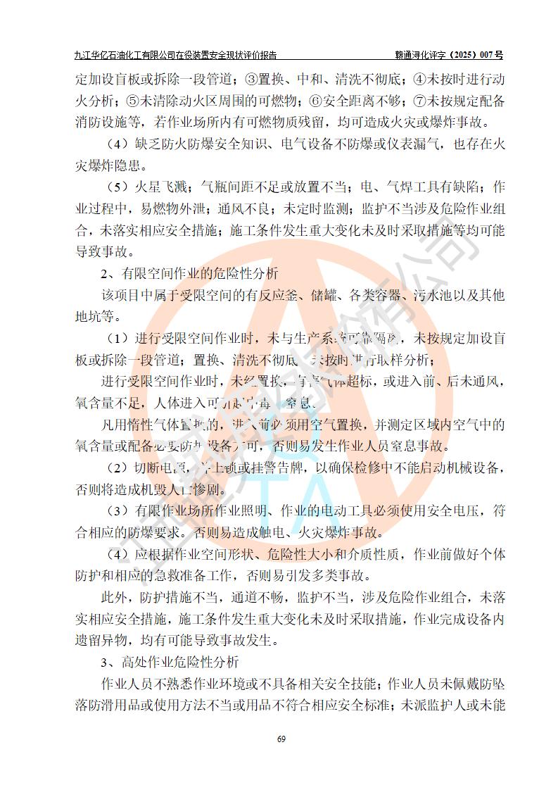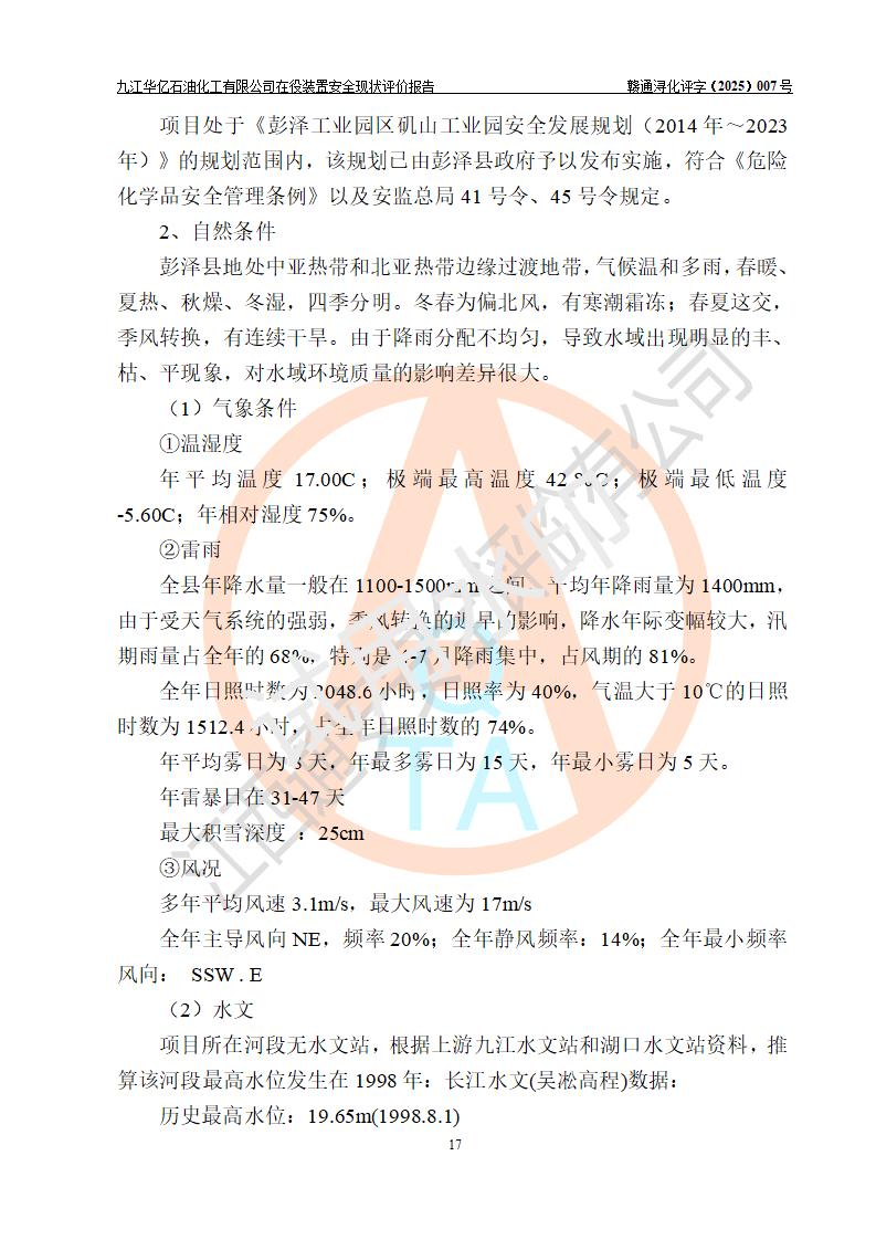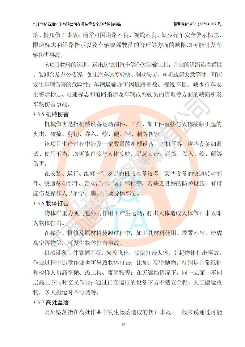 評價結(jié)論 | 經(jīng)評價組評價,九江華億石油化工有限公司現(xiàn)場總體布局、設(shè)備布置、DCS/SIS系統(tǒng)情況與安全設(shè)計圖紙一致;企業(yè)在役裝置涉及重點監(jiān)管危險化學品、重大危險源,相關(guān)自控系統(tǒng)配置與安全設(shè)計相符并正常投用;企業(yè)主要負責人董事長、總經(jīng)理、生產(chǎn)、技術(shù)、設(shè)備負責人及安全管理人員均已具有化工類大專以上相關(guān)專業(yè)學歷,已取得危險化學品生產(chǎn)企業(yè)主要負責人及安全管理人員考核合格證。 九江華億石油化工有限公司在役生產(chǎn)裝置配套安全裝置、防護設(shè)施以及采取的安全技術(shù)措施及安全管理措施符合**有關(guān)法規(guī)、標準、規(guī)范要求,符合《危險化學品生產(chǎn)企業(yè)安全生產(chǎn)許可證實施辦法》規(guī)定的安全生產(chǎn)條件,項目風險可控,滿足安全生產(chǎn)條件。
