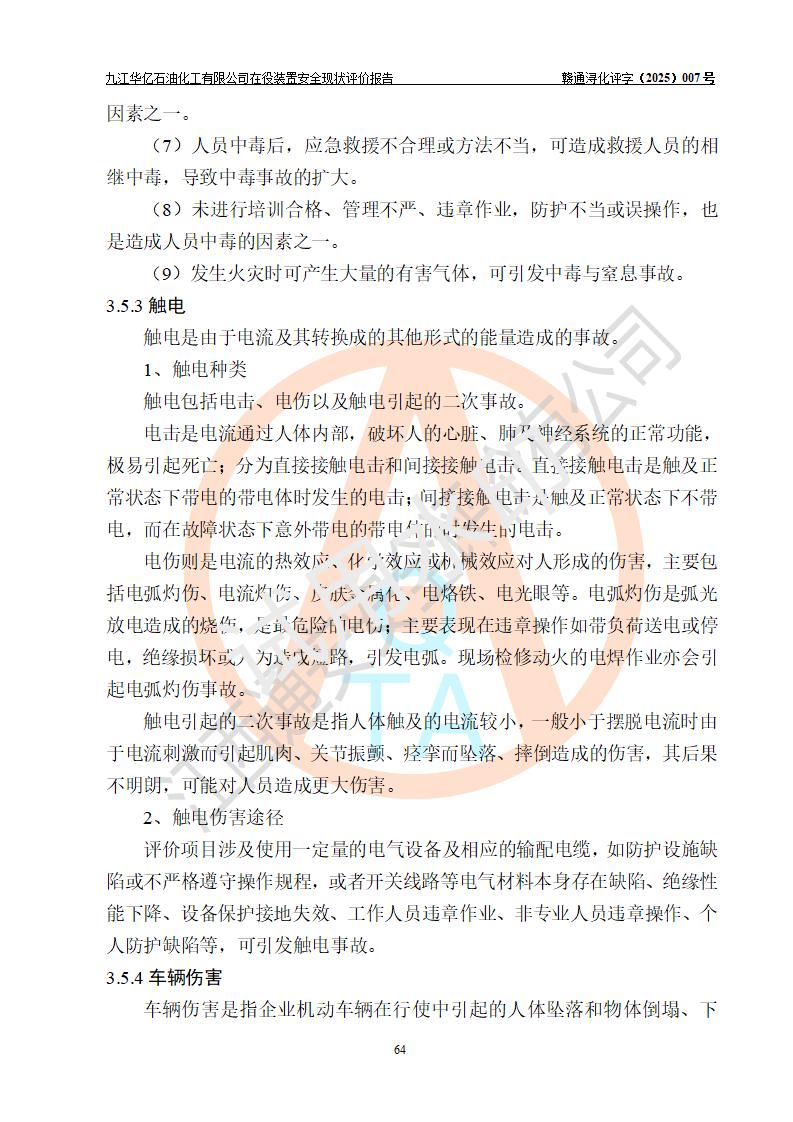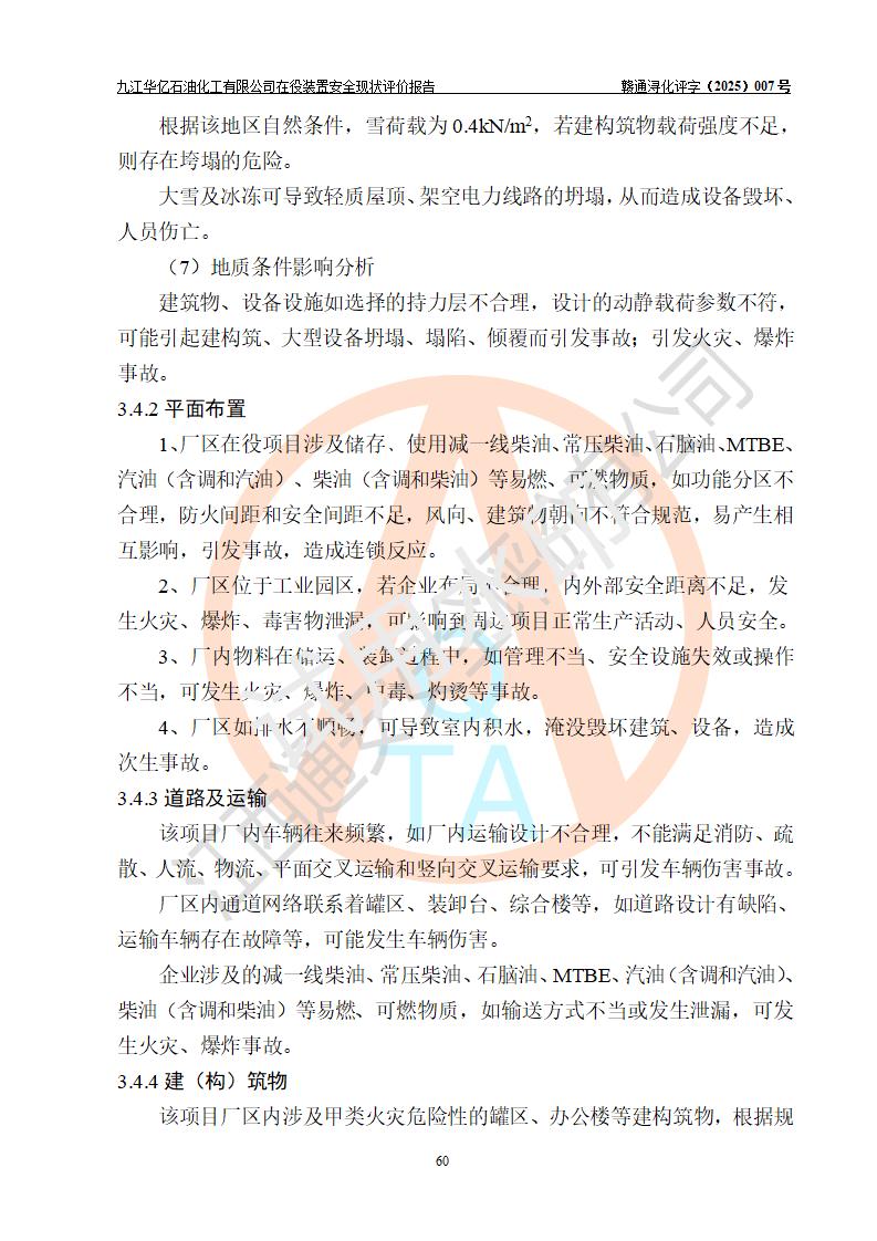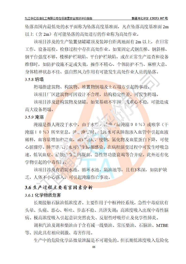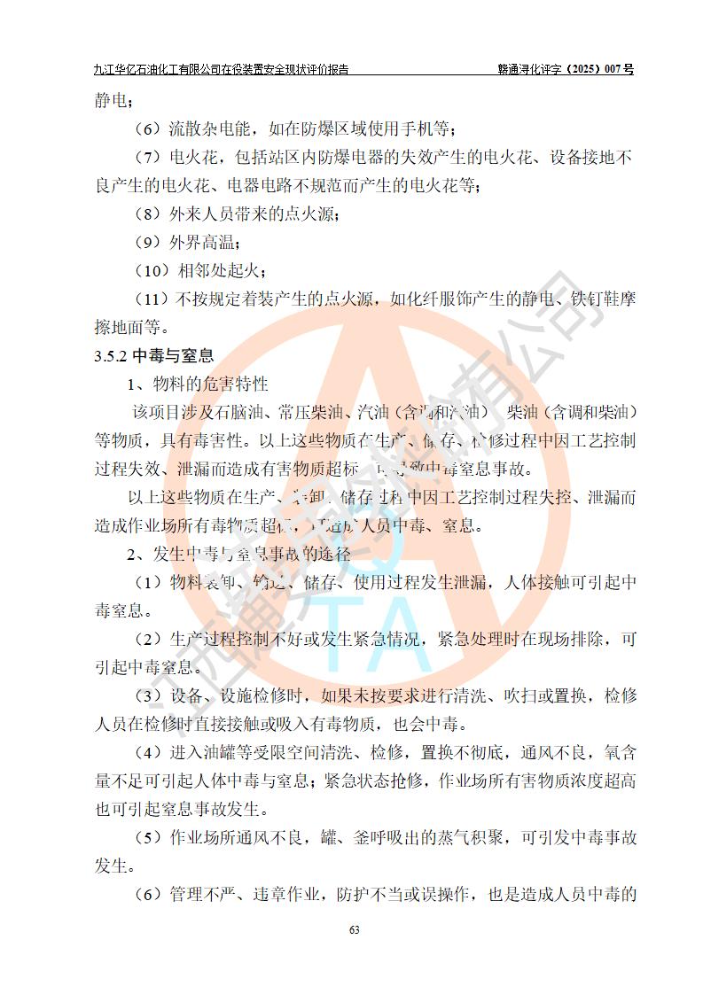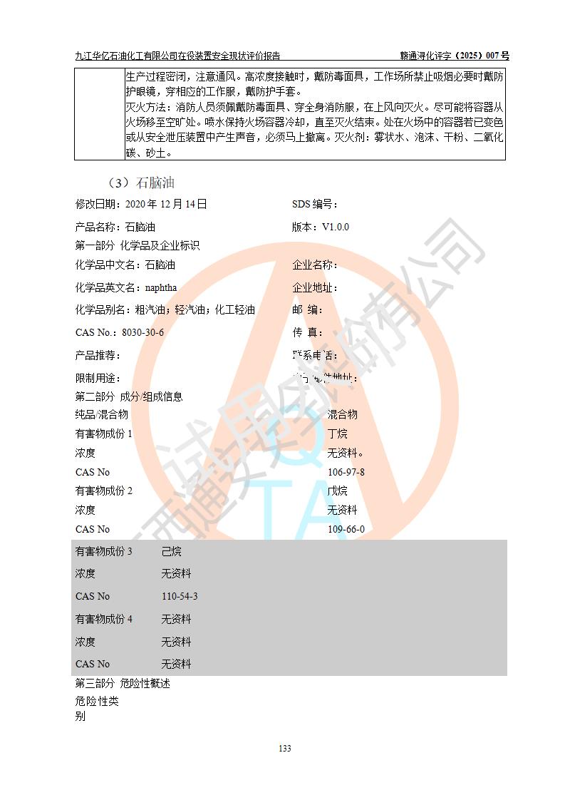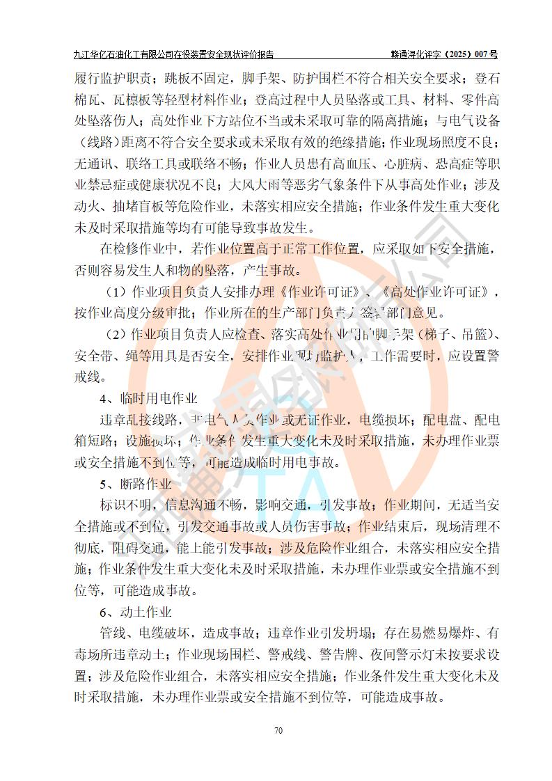 評價結(jié)論 | 經(jīng)評價組評價,九江華億石油化工有限公司現(xiàn)場總體布局、設(shè)備布置、DCS/SIS系統(tǒng)情況與安全設(shè)計圖紙一致;企業(yè)在役裝置涉及重點監(jiān)管危險化學品、重大危險源,相關(guān)自控系統(tǒng)配置與安全設(shè)計相符并正常投用;企業(yè)主要負責人董事長、總經(jīng)理、生產(chǎn)、技術(shù)、設(shè)備負責人及安全管理人員均已具有化工類大專以上相關(guān)專業(yè)學歷,已取得危險化學品生產(chǎn)企業(yè)主要負責人及安全管理人員考核合格證。 九江華億石油化工有限公司在役生產(chǎn)裝置配套安全裝置、防護設(shè)施以及采取的安全技術(shù)措施及安全管理措施符合**有關(guān)法規(guī)、標準、規(guī)范要求,符合《危險化學品生產(chǎn)企業(yè)安全生產(chǎn)許可證實施辦法》規(guī)定的安全生產(chǎn)條件,項目風險可控,滿足安全生產(chǎn)條件。