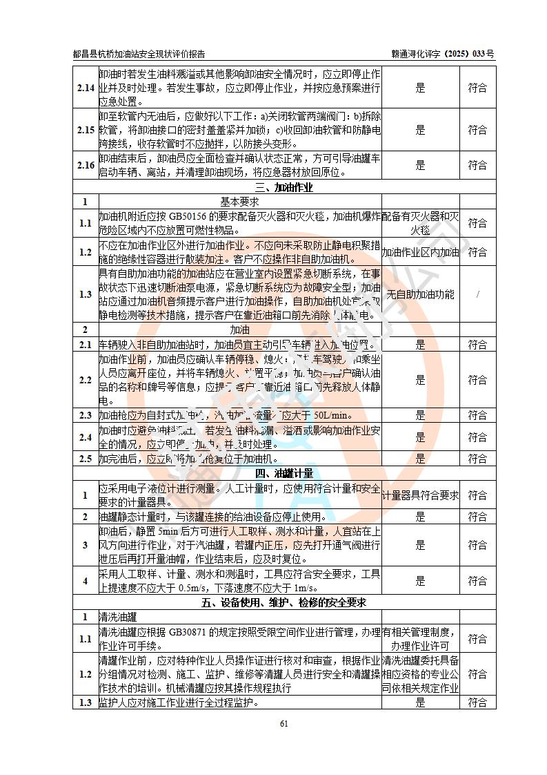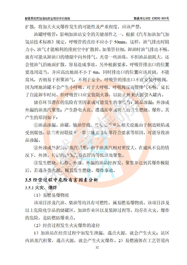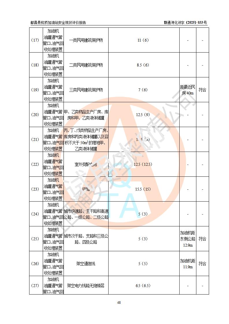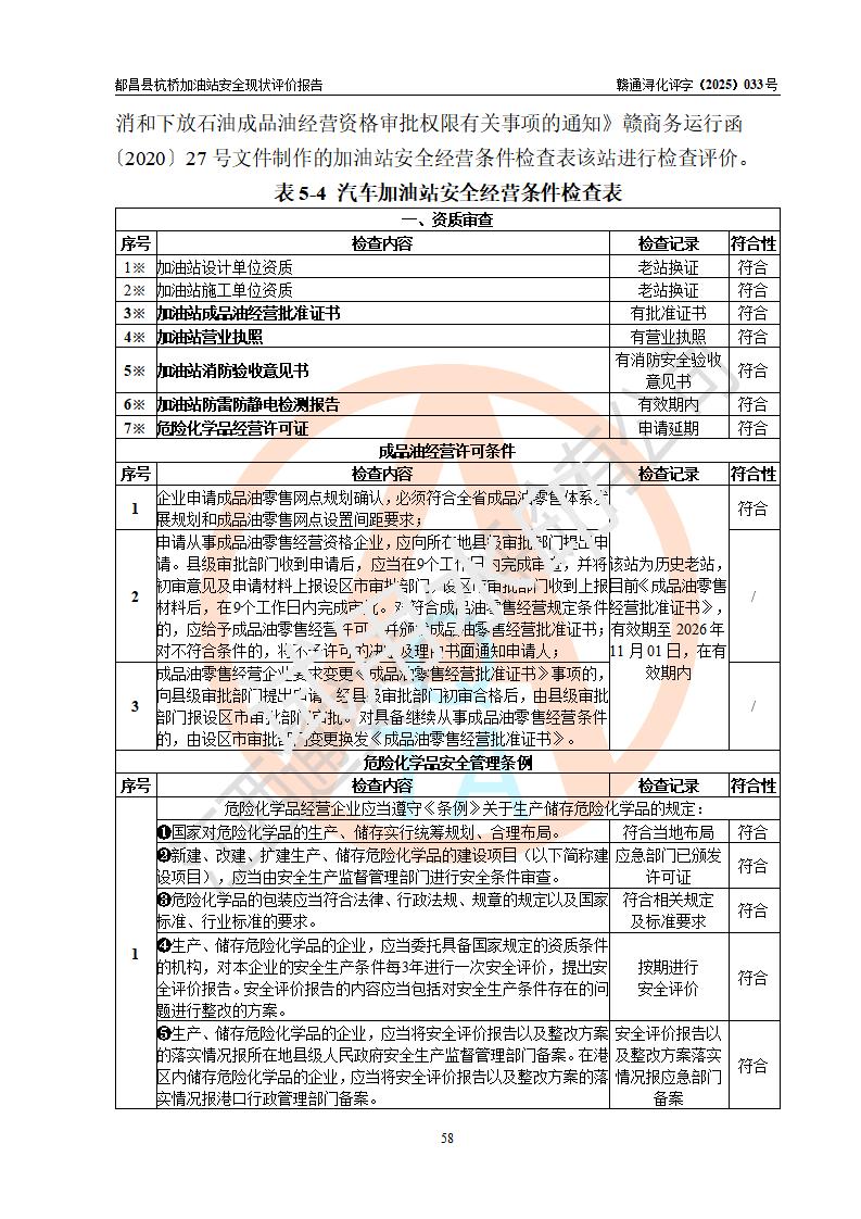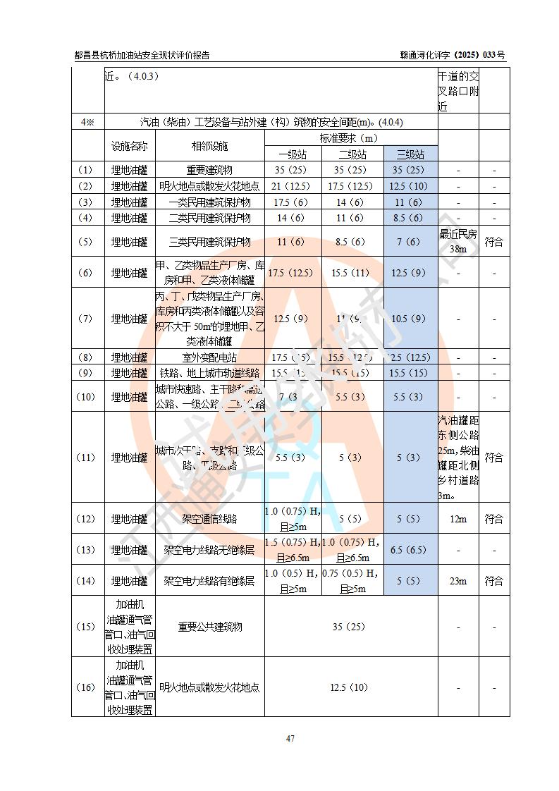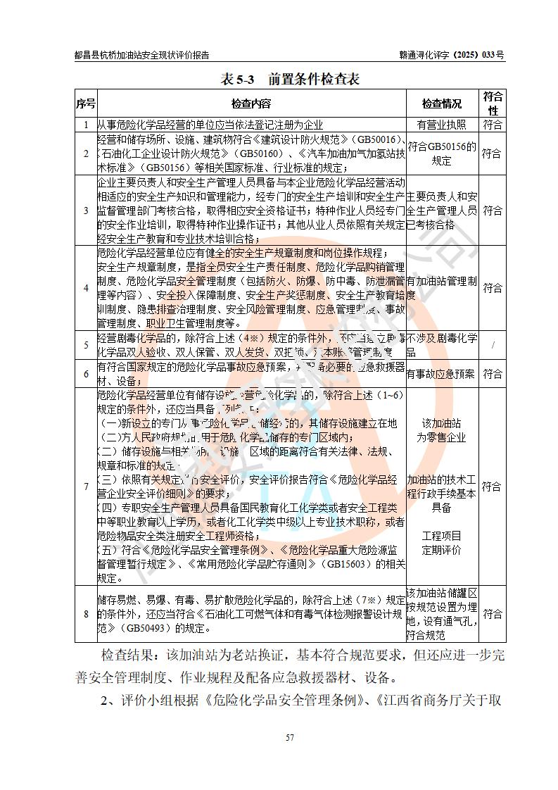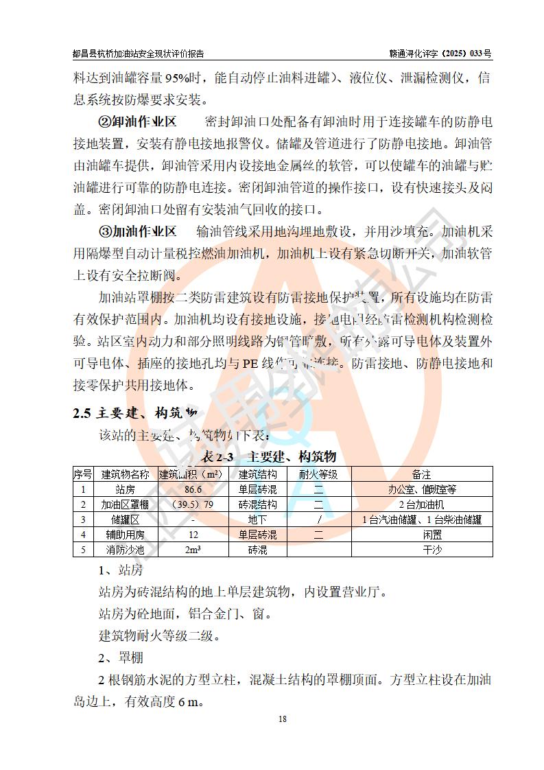 都昌縣杭橋加油站是一家專門從事成品油零售經(jīng)營的個人獨資企業(yè),投資人張愛香,經(jīng)營場所位于都昌縣土塘鎮(zhèn)杭橋珠光村。該加油站現(xiàn)有從業(yè)人員4人,其中安全管理人員1人,主要負(fù)責(zé)人陳閩。 該加油站站區(qū)占地面積833m2,站區(qū)內(nèi)設(shè)置有1臺三槍稅控燃油加油機和1臺雙槍稅控燃油加油機及配套的工藝管線,設(shè)有15m3的92#汽油雙層儲罐1臺、15m3的0#柴油雙層儲罐1臺,油品儲罐總?cè)莘e為30m3(折算成汽油為22.5m3)。按現(xiàn)行《汽車加油加氣加氫站技術(shù)標(biāo)準(zhǔn)》對加油站的等級劃分原則,該站屬于三級加油站。 該站由九江市行政審批局換發(fā)《危險化學(xué)品經(jīng)營許可證》(證號:贛九行審經(jīng)(甲)字[2022]000080號),**期限2022年06月27日至2025年06月26日。 |