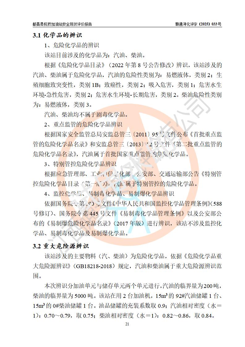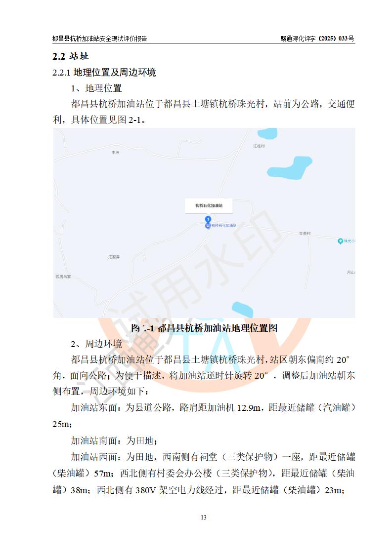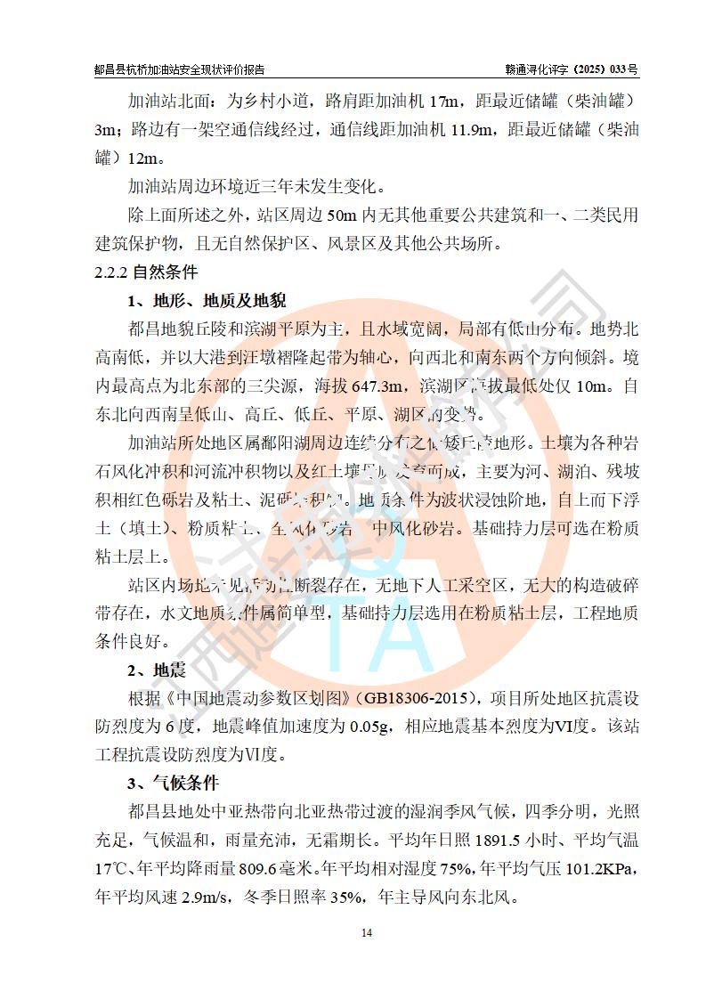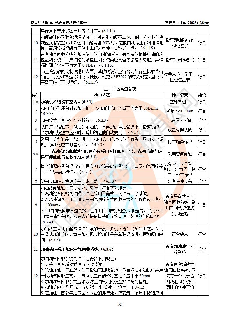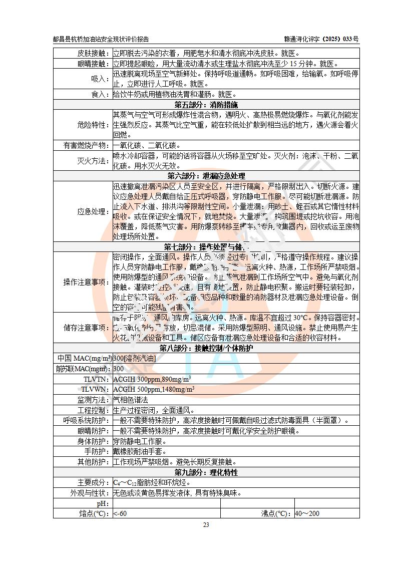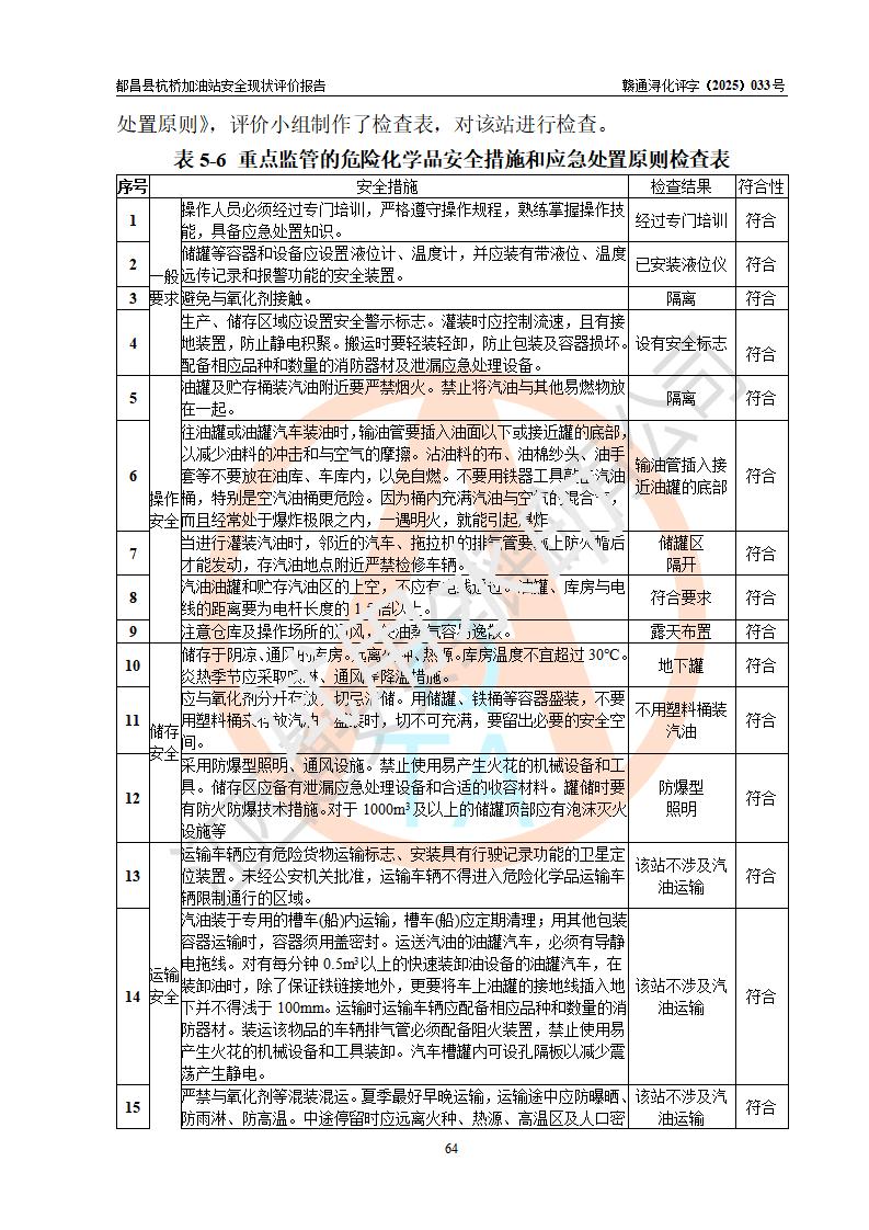 都昌縣杭橋加油站是一家專門從事成品油零售經(jīng)營的個人獨資企業(yè),投資人張愛香,經(jīng)營場所位于都昌縣土塘鎮(zhèn)杭橋珠光村。該加油站現(xiàn)有從業(yè)人員4人,其中安全管理人員1人,主要負(fù)責(zé)人陳閩。 該加油站站區(qū)占地面積833m2,站區(qū)內(nèi)設(shè)置有1臺三槍稅控燃油加油機和1臺雙槍稅控燃油加油機及配套的工藝管線,設(shè)有15m3的92#汽油雙層儲罐1臺、15m3的0#柴油雙層儲罐1臺,油品儲罐總?cè)莘e為30m3(折算成汽油為22.5m3)。按現(xiàn)行《汽車加油加氣加氫站技術(shù)標(biāo)準(zhǔn)》對加油站的等級劃分原則,該站屬于三級加油站。 該站由九江市行政審批局換發(fā)《危險化學(xué)品經(jīng)營許可證》(證號:贛九行審經(jīng)(甲)字[2022]000080號),**期限2022年06月27日至2025年06月26日。 |