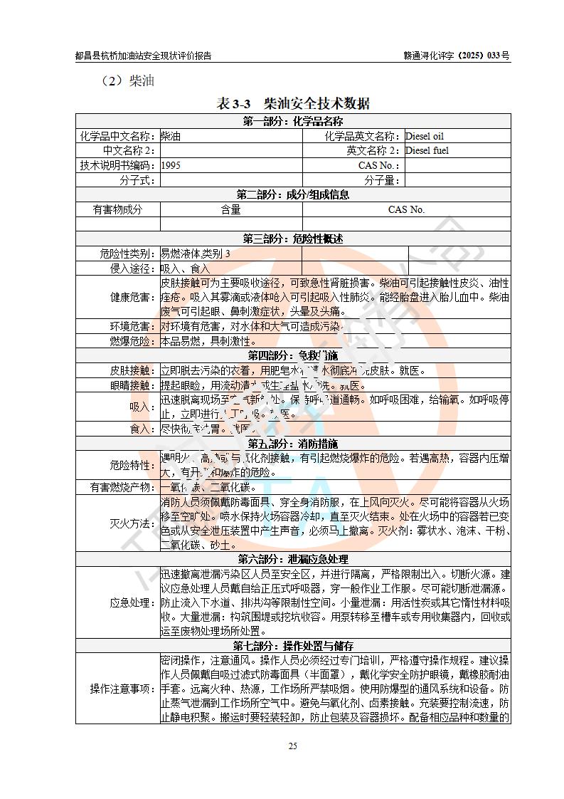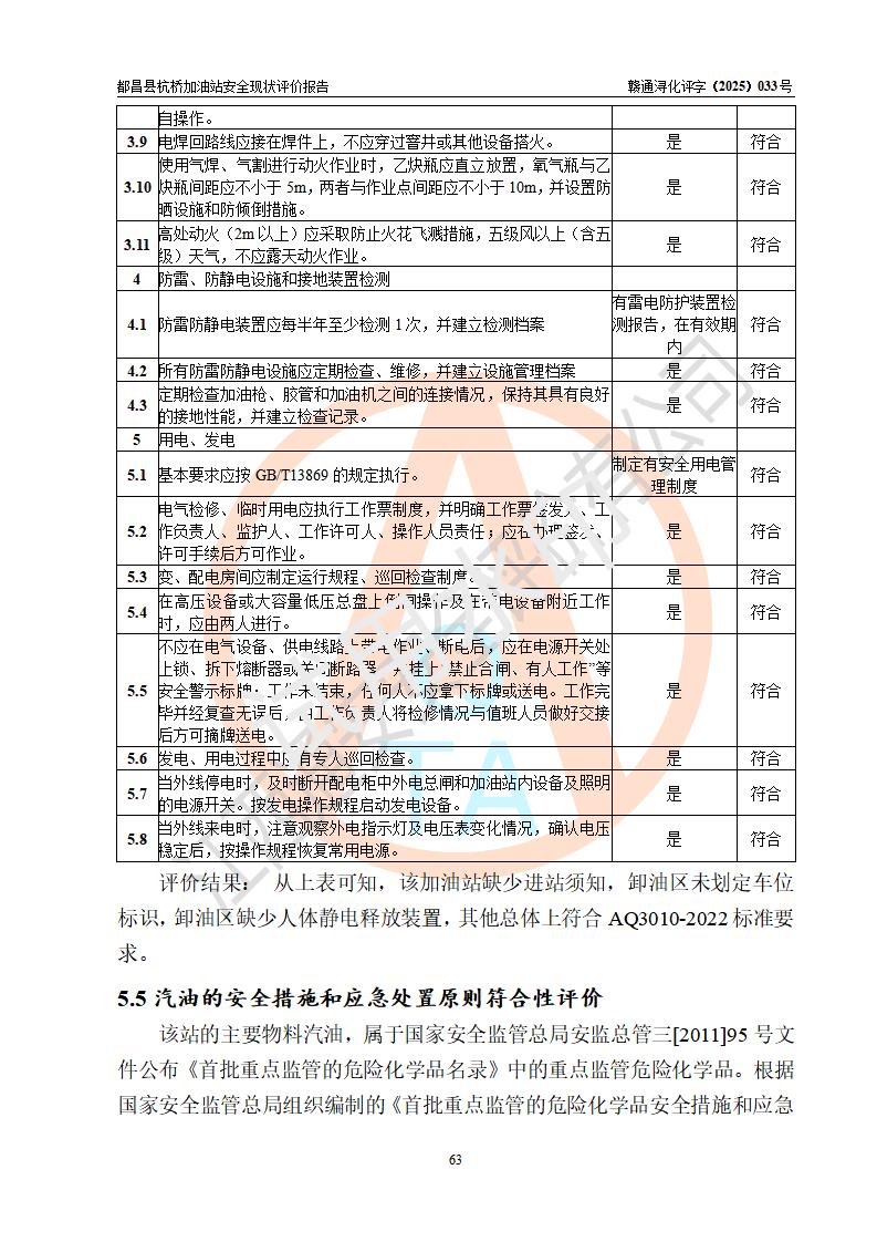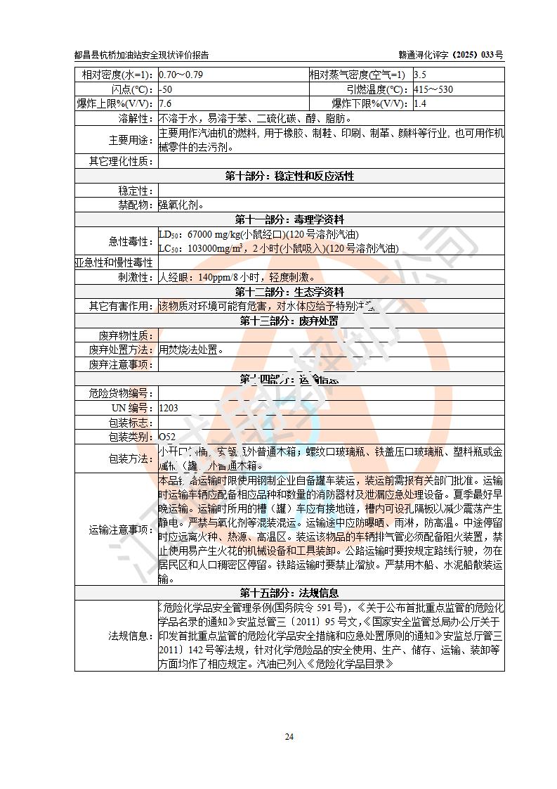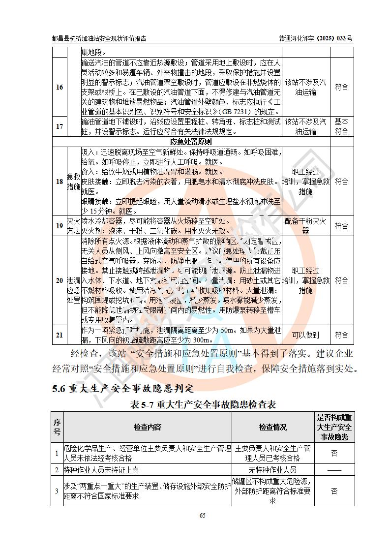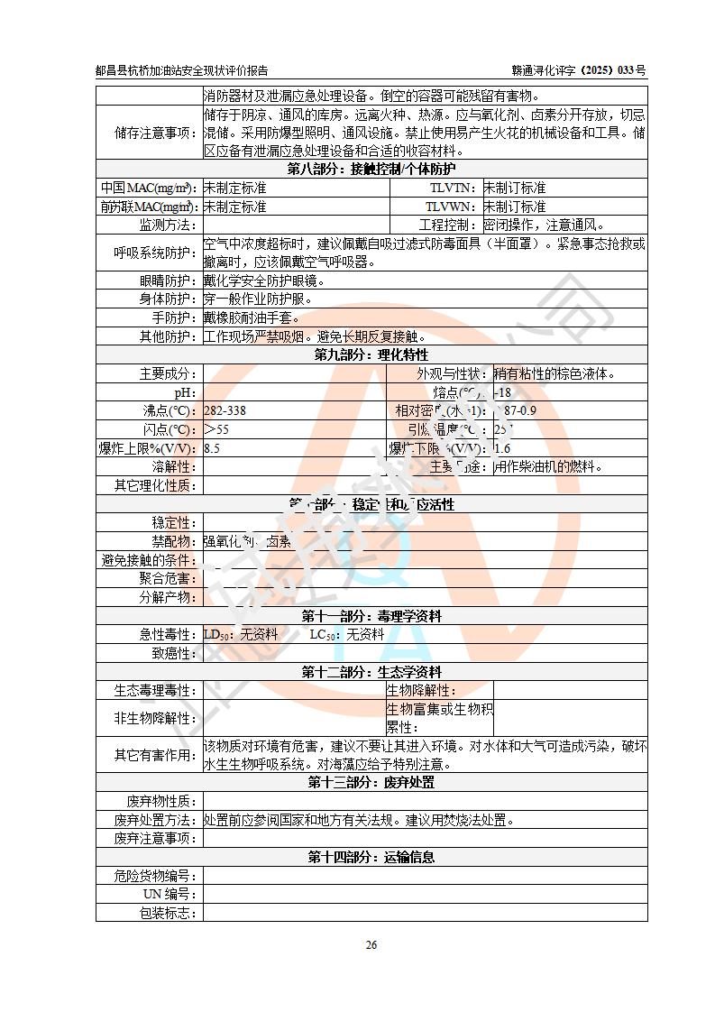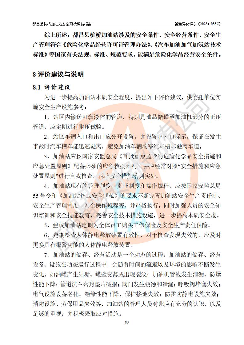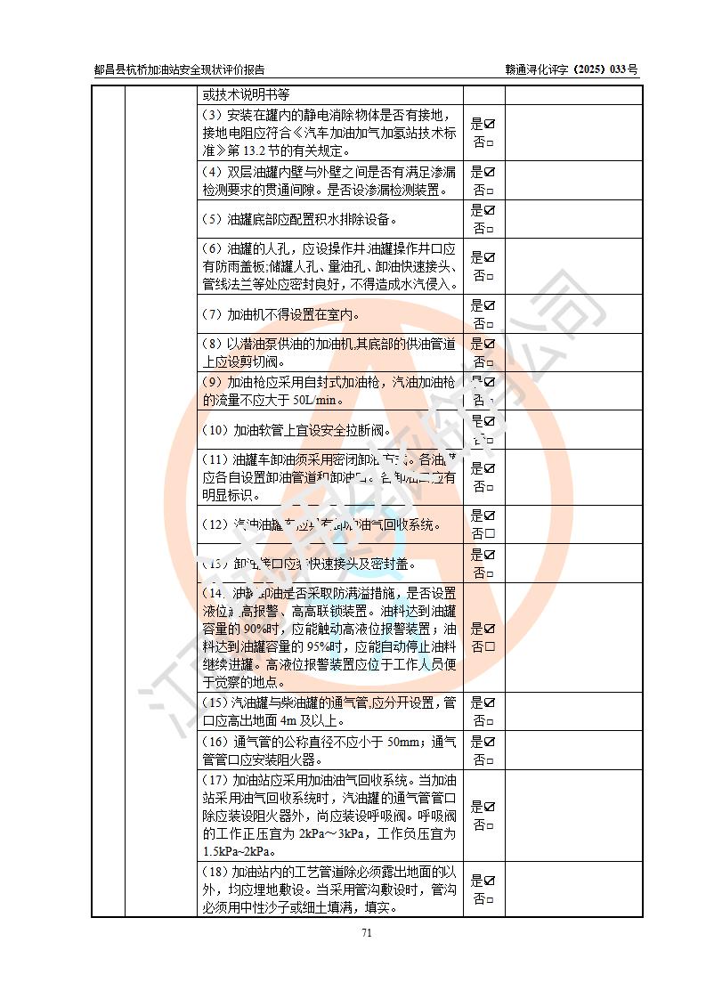 都昌縣杭橋加油站是一家專門從事成品油零售經(jīng)營的個人獨資企業(yè),投資人張愛香,經(jīng)營場所位于都昌縣土塘鎮(zhèn)杭橋珠光村。該加油站現(xiàn)有從業(yè)人員4人,其中安全管理人員1人,主要負(fù)責(zé)人陳閩。 該加油站站區(qū)占地面積833m2,站區(qū)內(nèi)設(shè)置有1臺三槍稅控燃油加油機和1臺雙槍稅控燃油加油機及配套的工藝管線,設(shè)有15m3的92#汽油雙層儲罐1臺、15m3的0#柴油雙層儲罐1臺,油品儲罐總?cè)莘e為30m3(折算成汽油為22.5m3)。按現(xiàn)行《汽車加油加氣加氫站技術(shù)標(biāo)準(zhǔn)》對加油站的等級劃分原則,該站屬于三級加油站。 該站由九江市行政審批局換發(fā)《危險化學(xué)品經(jīng)營許可證》(證號:贛九行審經(jīng)(甲)字[2022]000080號),**期限2022年06月27日至2025年06月26日。 |