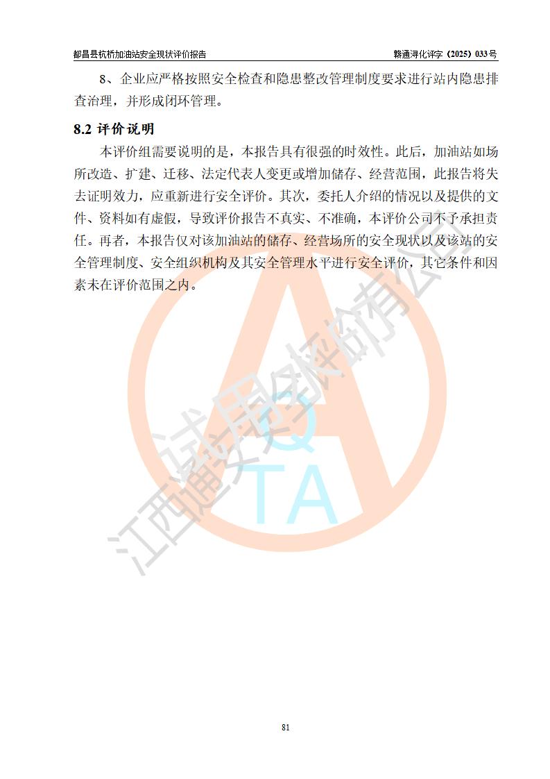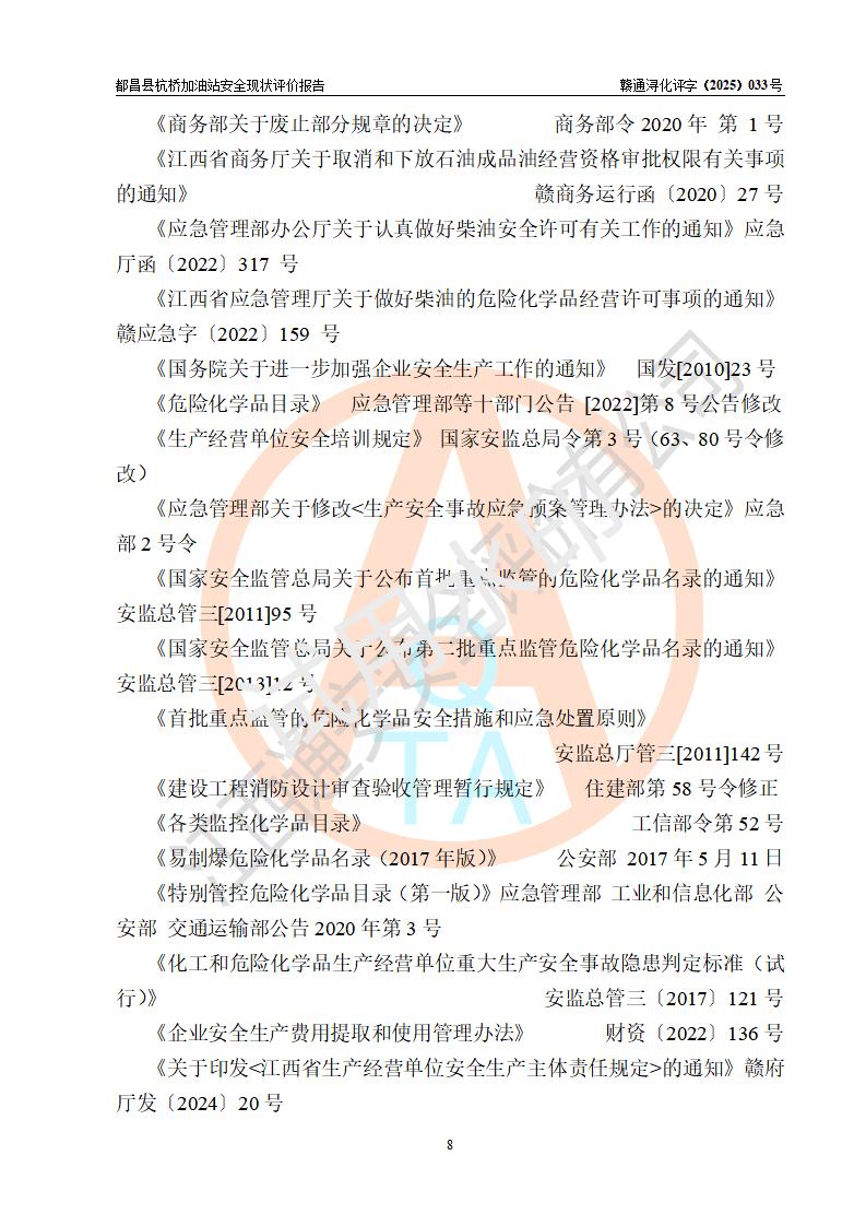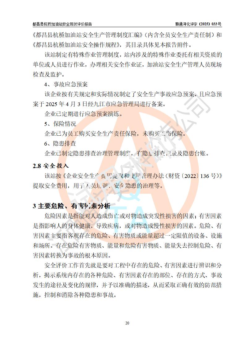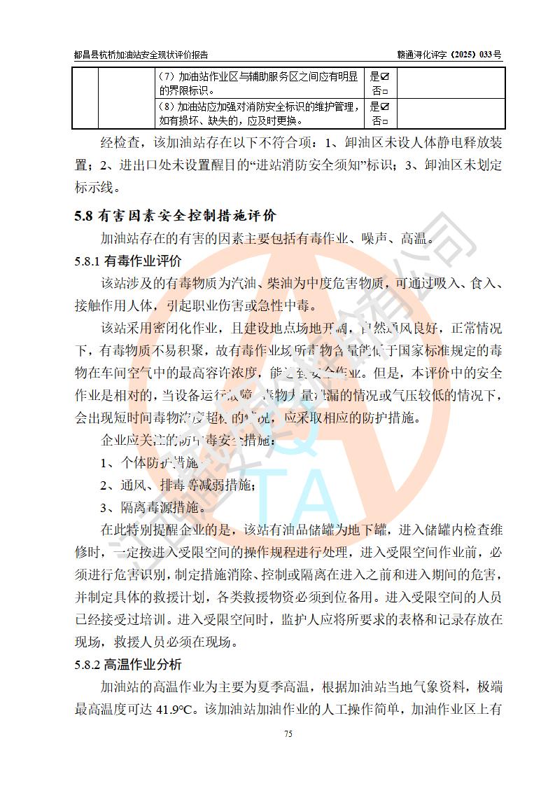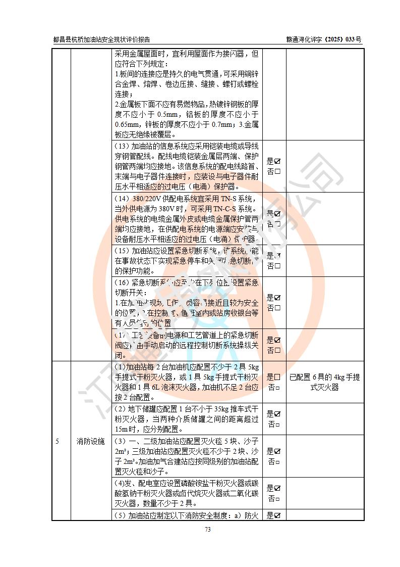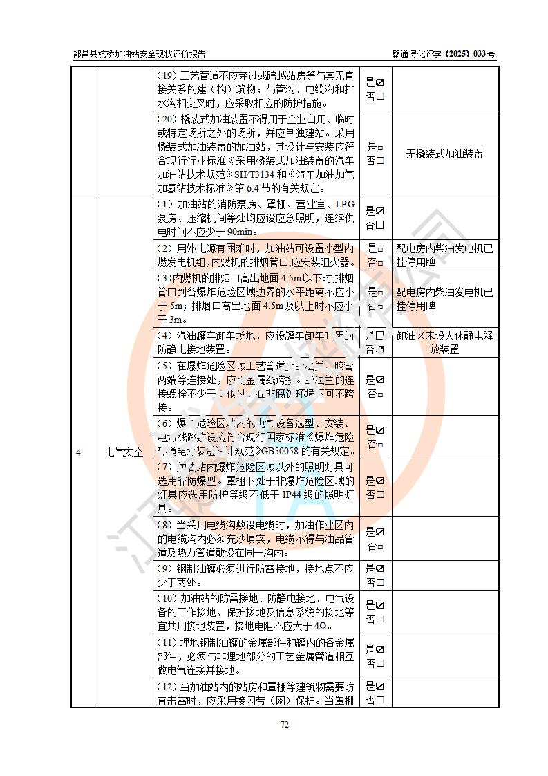 都昌縣杭橋加油站是一家專門從事成品油零售經(jīng)營的個人獨資企業(yè),投資人張愛香,經(jīng)營場所位于都昌縣土塘鎮(zhèn)杭橋珠光村。該加油站現(xiàn)有從業(yè)人員4人,其中安全管理人員1人,主要負(fù)責(zé)人陳閩。 該加油站站區(qū)占地面積833m2,站區(qū)內(nèi)設(shè)置有1臺三槍稅控燃油加油機和1臺雙槍稅控燃油加油機及配套的工藝管線,設(shè)有15m3的92#汽油雙層儲罐1臺、15m3的0#柴油雙層儲罐1臺,油品儲罐總?cè)莘e為30m3(折算成汽油為22.5m3)。按現(xiàn)行《汽車加油加氣加氫站技術(shù)標(biāo)準(zhǔn)》對加油站的等級劃分原則,該站屬于三級加油站。 該站由九江市行政審批局換發(fā)《危險化學(xué)品經(jīng)營許可證》(證號:贛九行審經(jīng)(甲)字[2022]000080號),**期限2022年06月27日至2025年06月26日。 |