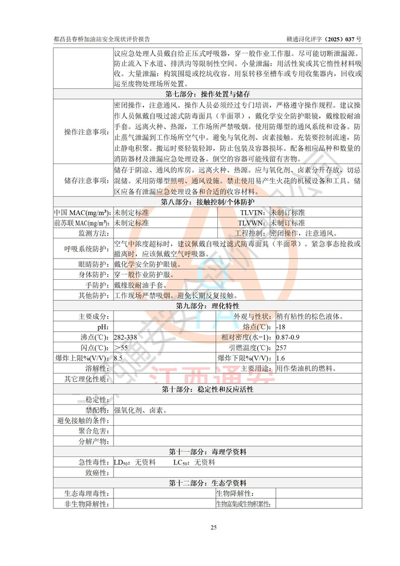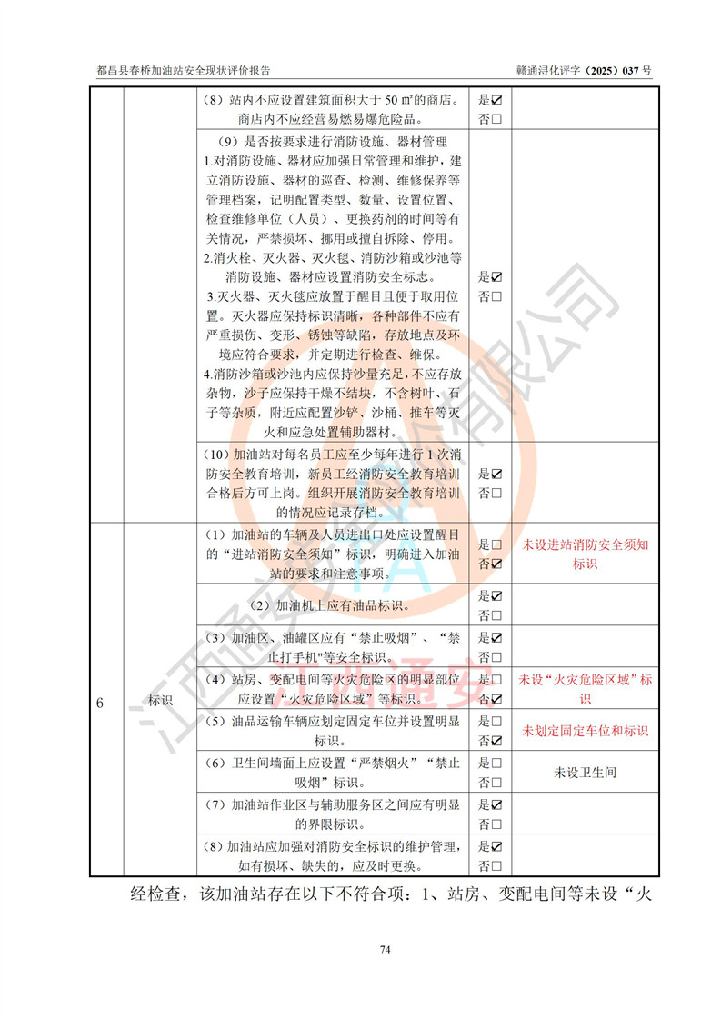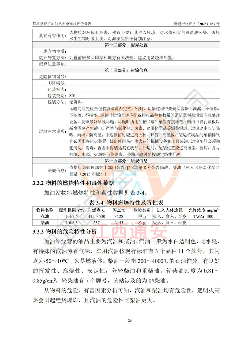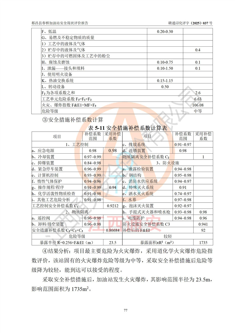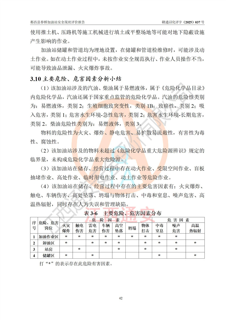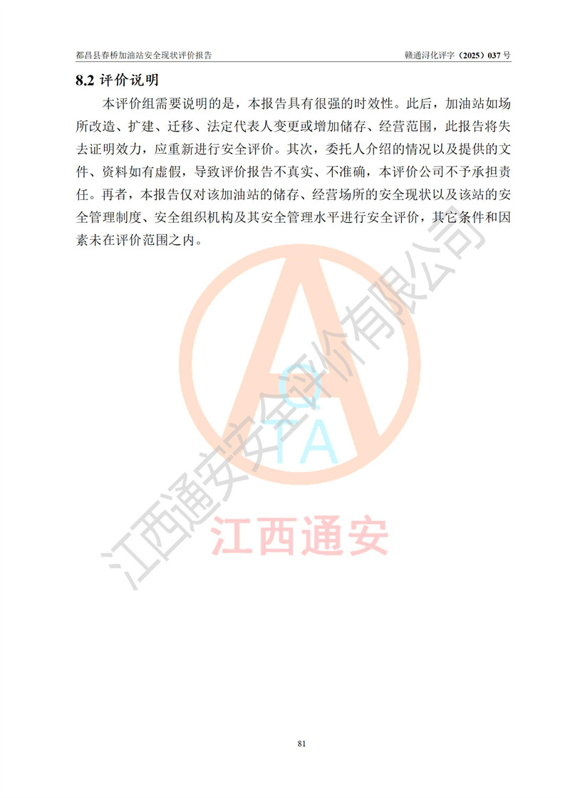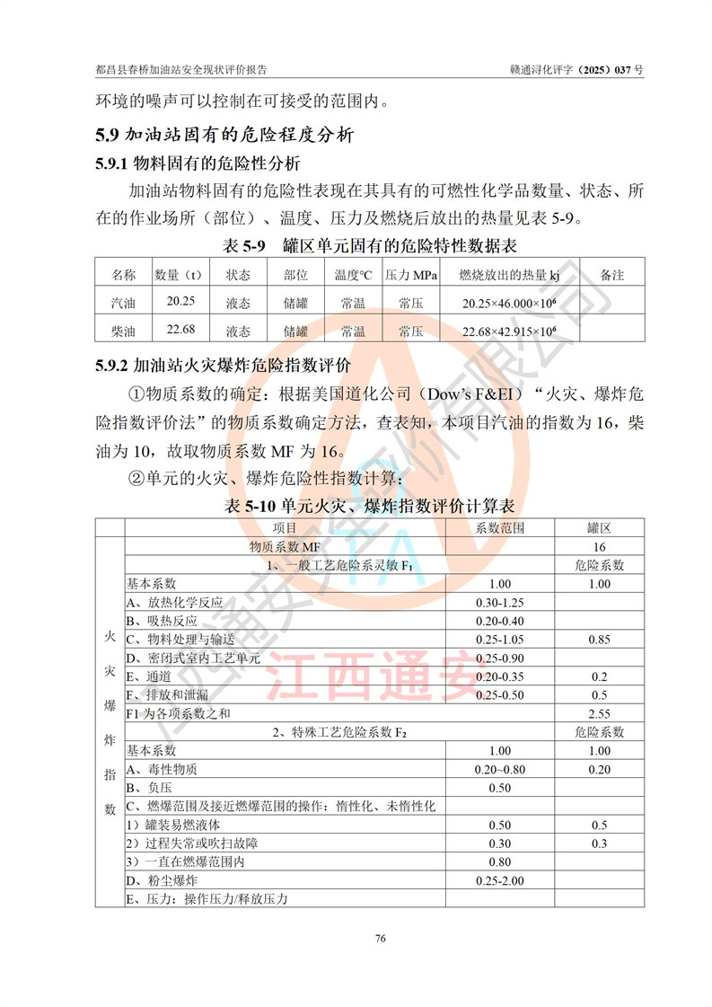 評(píng)價(jià)結(jié)論 | 都昌縣春橋加油站涉及的安全條件、安全經(jīng)營(yíng)條件、安全生產(chǎn)管理符合《危險(xiǎn)化學(xué)品經(jīng)營(yíng)許可證管理辦法》、《汽車加油加氣加氫站技術(shù)標(biāo)準(zhǔn)》等**有關(guān)法規(guī)、標(biāo)準(zhǔn)、規(guī)范要求,能滿足危險(xiǎn)化學(xué)品經(jīng)營(yíng)安全條件。 | |||