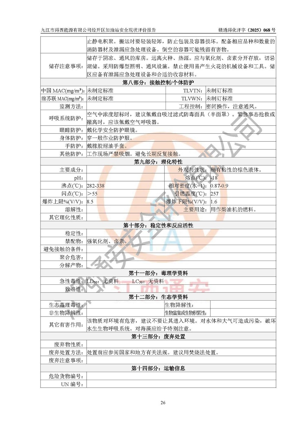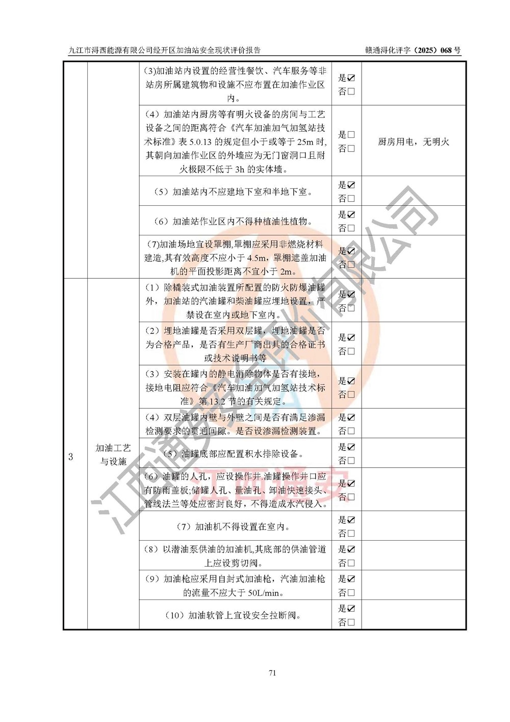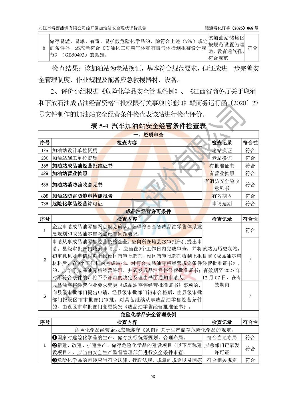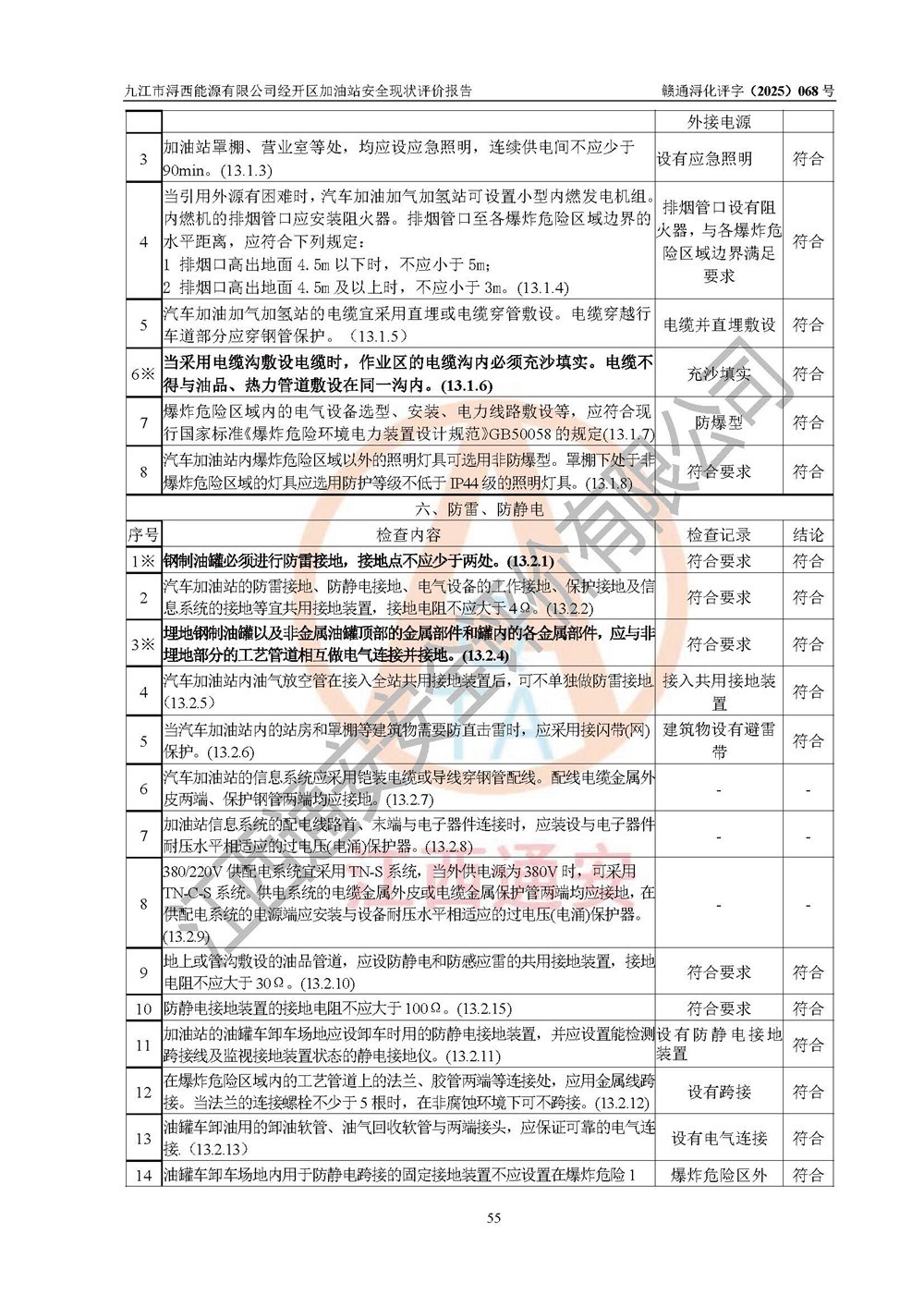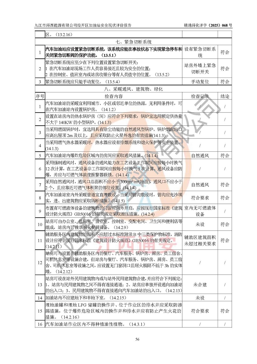 評(píng)價(jià)結(jié)論 | 九江市潯西能源有限公司經(jīng)開區(qū)加油站涉及的安全條件、安全經(jīng)營條件、安全生產(chǎn)管理符合《危險(xiǎn)化學(xué)品經(jīng)營許可證管理辦法》、《汽車加油加氣加氫站技術(shù)標(biāo)準(zhǔn)》等**有關(guān)法規(guī)、標(biāo)準(zhǔn)、規(guī)范要求,能滿足危險(xiǎn)化學(xué)品經(jīng)營安全條件。 | |||