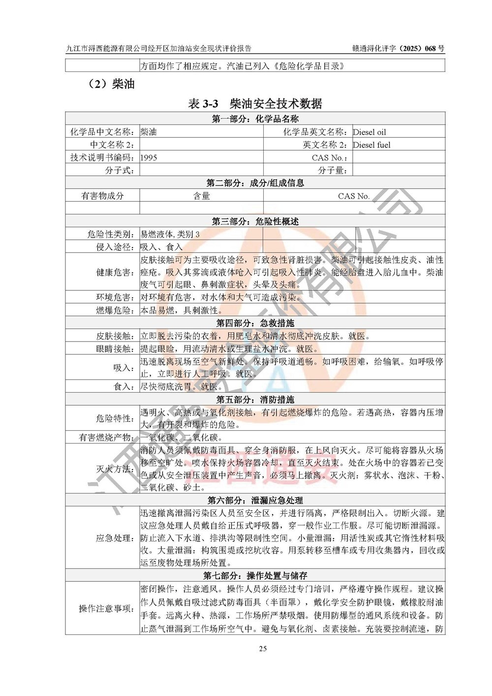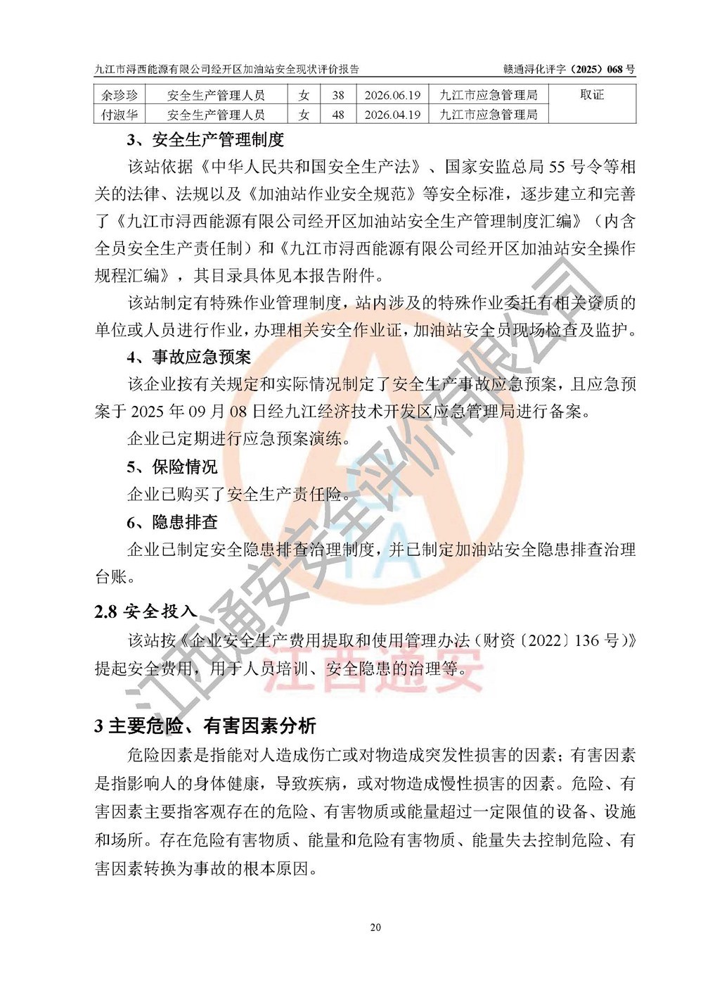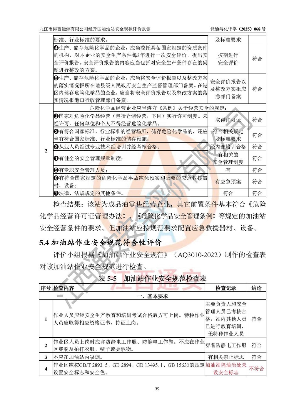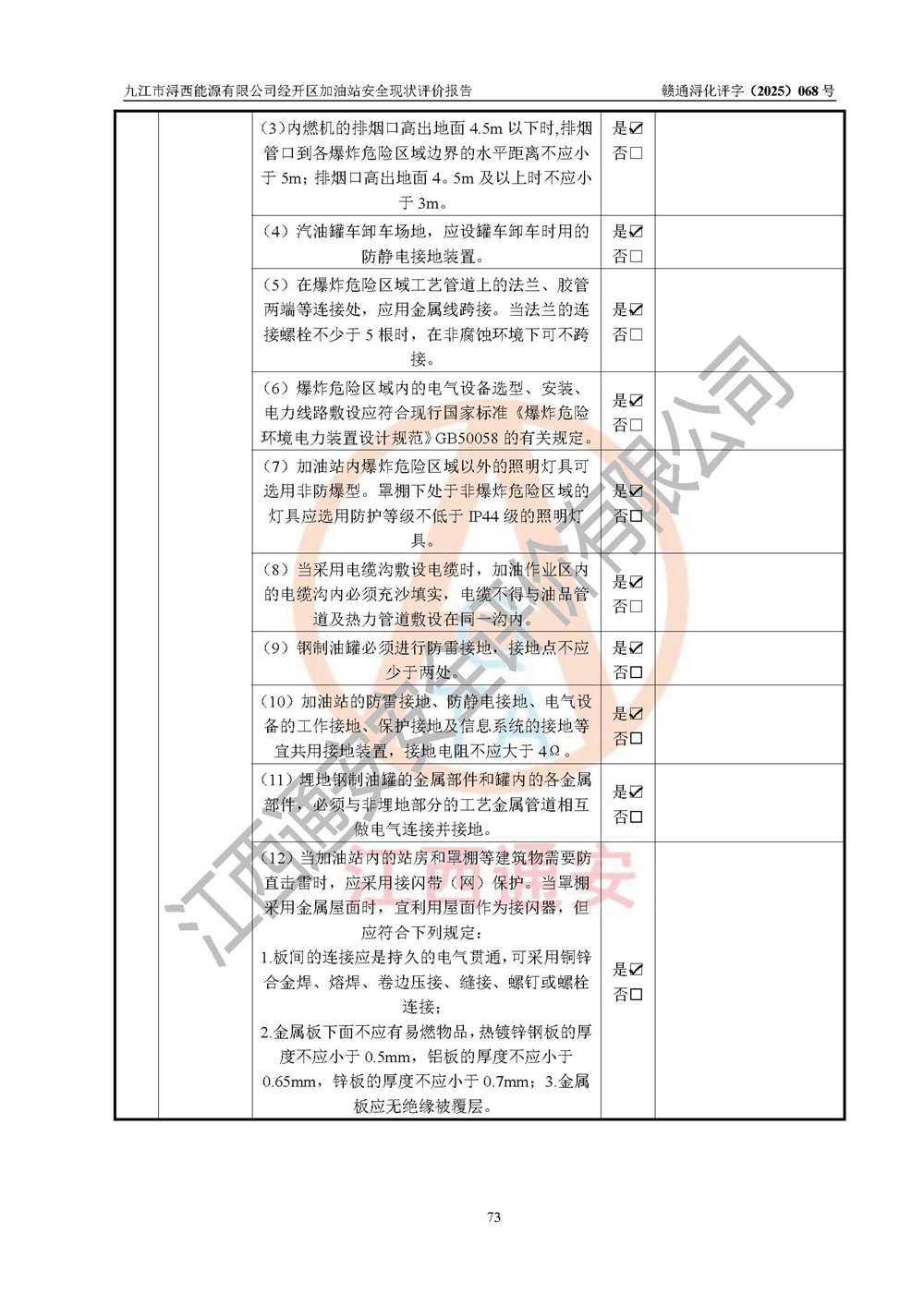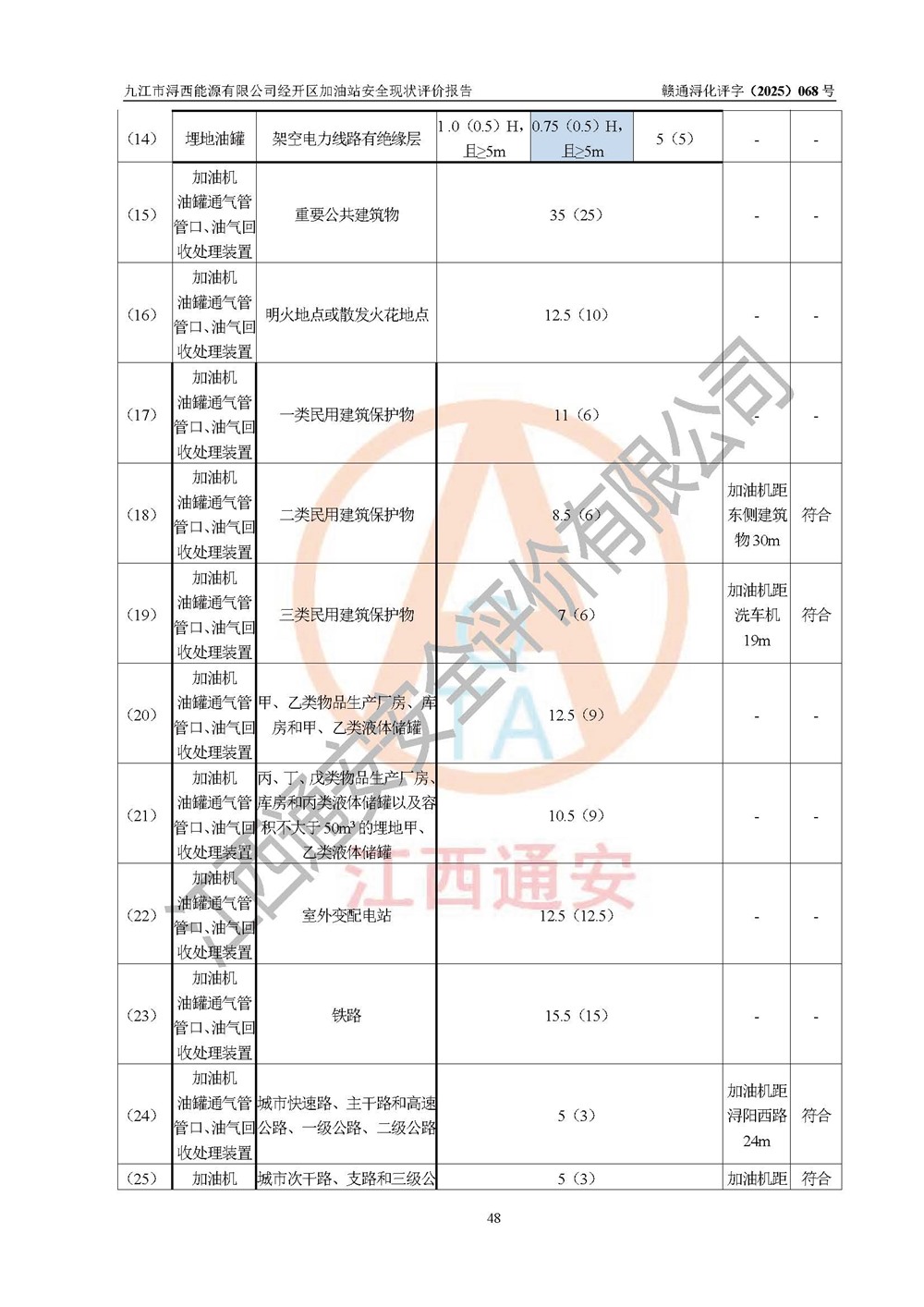 評(píng)價(jià)結(jié)論 | 九江市潯西能源有限公司經(jīng)開區(qū)加油站涉及的安全條件、安全經(jīng)營條件、安全生產(chǎn)管理符合《危險(xiǎn)化學(xué)品經(jīng)營許可證管理辦法》、《汽車加油加氣加氫站技術(shù)標(biāo)準(zhǔn)》等**有關(guān)法規(guī)、標(biāo)準(zhǔn)、規(guī)范要求,能滿足危險(xiǎn)化學(xué)品經(jīng)營安全條件。 | |||