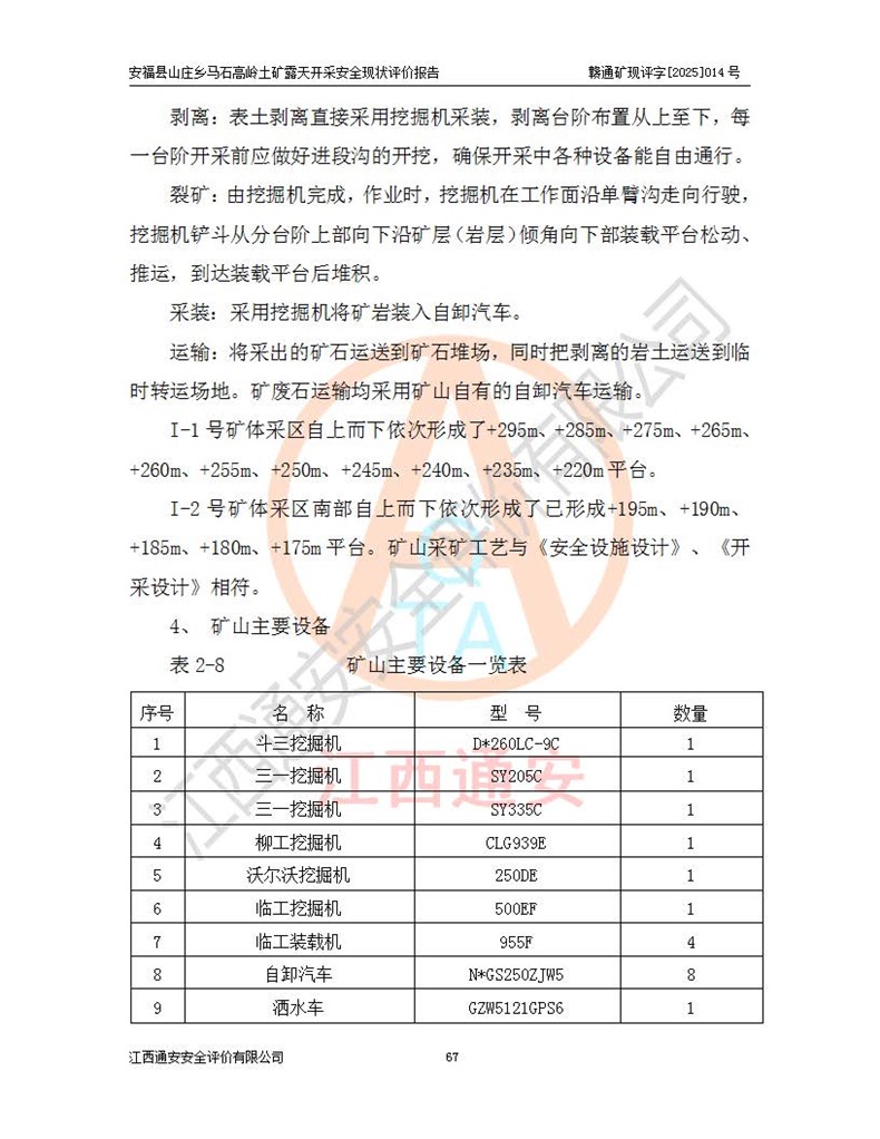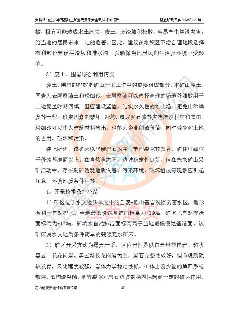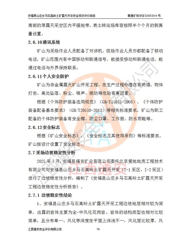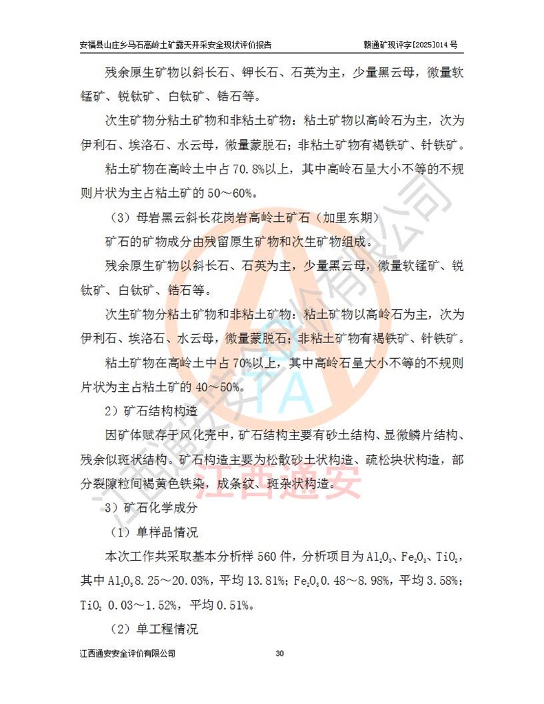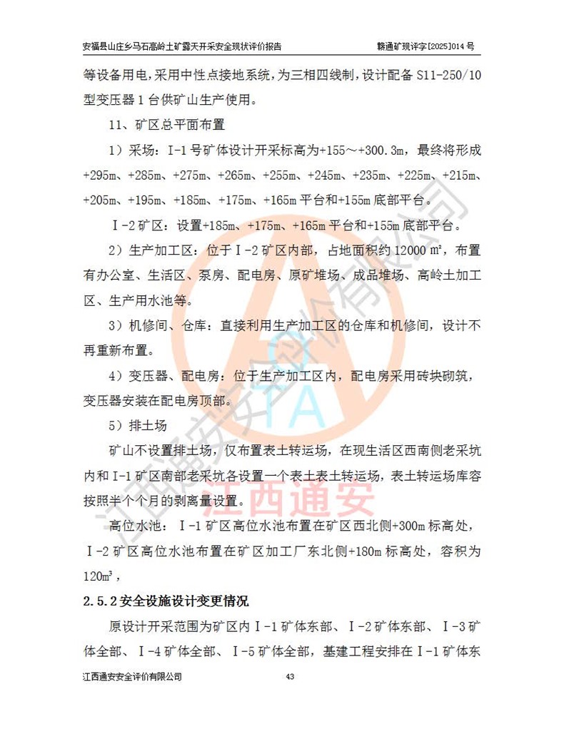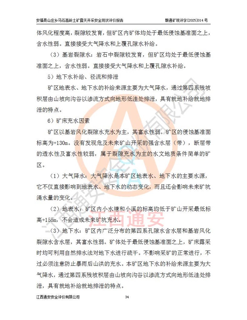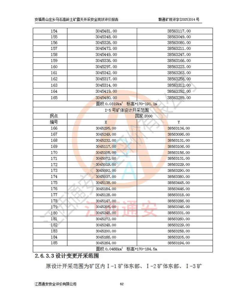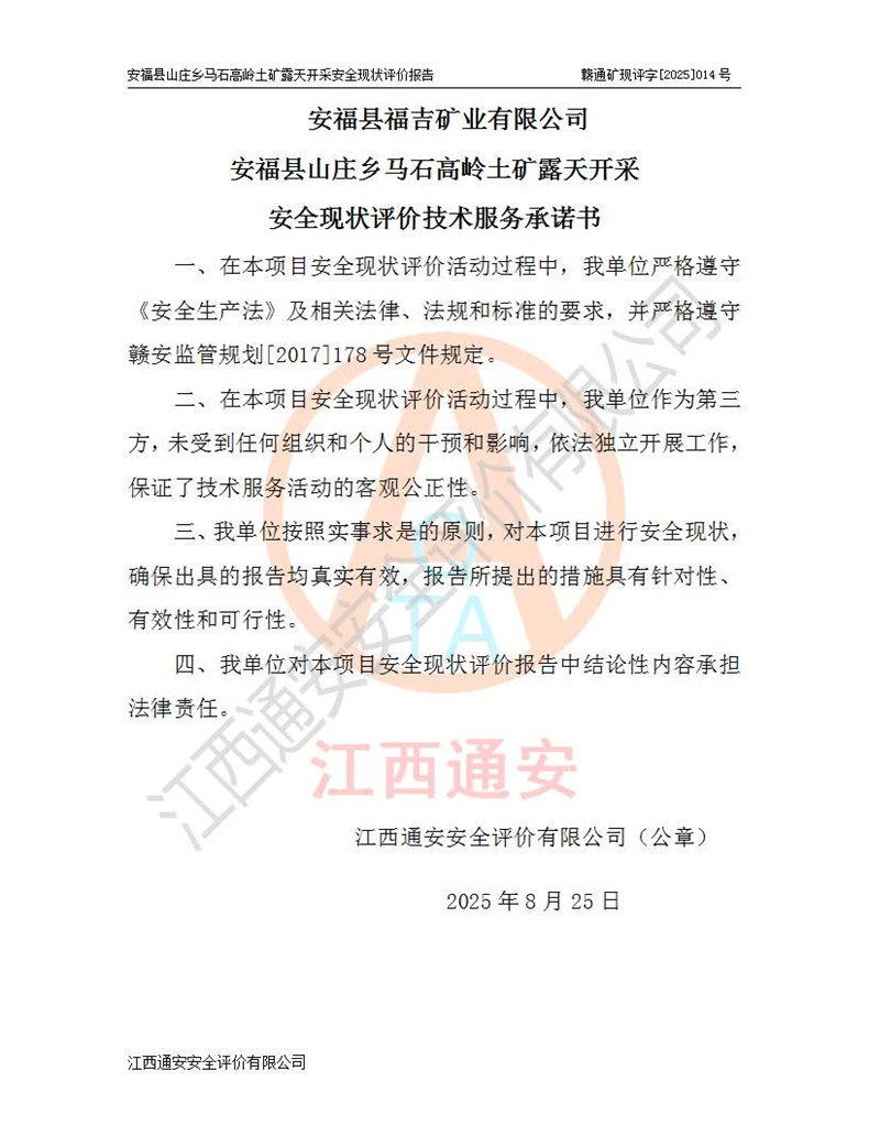 安福縣福吉礦業(yè)有限公司成立于2008年7月8日,地址位于江西省吉安市安??h山莊鄉(xiāng)東頭村五組,注冊資金:1288.66萬元,營業(yè)執(zhí)照統(tǒng)一社會(huì)信用代碼:9136082969683448X,營業(yè)期限:2008年7月8日至長期,企業(yè)類型為有限責(zé)任公司(自然人獨(dú)資),法定**人為劉國棟,經(jīng)營范圍:高嶺土開采、銷售;礦產(chǎn)品(鐵礦除外)加工、銷售。 安??h山莊鄉(xiāng)馬石高嶺土礦為安福縣福吉礦業(yè)有限公司下屬露天礦山,礦區(qū)位于安福縣城北北東,直距縣城12°方位約15km,行政區(qū)劃屬安??h山莊鄉(xiāng)管轄,礦區(qū)地理坐標(biāo)(2000坐標(biāo)系):東經(jīng)114°37′12″~114°38′32″,北緯27°30′37″~27°32′05″。礦區(qū)中心地理坐標(biāo):東經(jīng)114°37′52″,北緯 27°31′14″。礦區(qū)有3km水泥公路通往山莊鄉(xiāng),并與安福-分宜公路相連,距安福縣城18km。 馬石高嶺土礦成立于2008年,生產(chǎn)規(guī)模為2萬噸/年,礦區(qū)面積2.3642平方**,開采深度280m至155m,礦區(qū)資源于2018年重新進(jìn)行了核實(shí),2019年6月由吉安市自然資源局重新核發(fā)了采礦許可證,礦區(qū)面積由原2.3642平方**調(diào)整至1.2016平方**,開采深度由330.3m至155m,生產(chǎn)規(guī)模由2萬噸/年變更為50萬噸/年。 因礦山生產(chǎn)規(guī)模擴(kuò)大,根據(jù)《建設(shè)項(xiàng)目安全設(shè)施“三同時(shí)”監(jiān)督管理辦法》安監(jiān)總局令第36號(hào)(77號(hào)令修改)的要求,礦山應(yīng)履行安全設(shè)施擴(kuò)建“三同時(shí)”手續(xù),安??h福吉礦業(yè)有限公司分別委托內(nèi)蒙古吉安勞動(dòng)安全評(píng)價(jià)有限責(zé)任公司和山東乾舜礦冶科技股份有限公司對(duì)馬石高嶺土礦擴(kuò)建工程進(jìn)行了安全預(yù)評(píng)價(jià)及安全設(shè)施設(shè)計(jì)。 2021年10月16日安全設(shè)施設(shè)計(jì)通過了安??h應(yīng)急管理局組織的專家評(píng)審,2021年11月18日,安??h應(yīng)急管理局下發(fā)了《關(guān)于安福縣福吉礦業(yè)有限公司安??h山莊鄉(xiāng)馬石高嶺土礦露天開采擴(kuò)建工程安全設(shè)施設(shè)計(jì)審查意見》安應(yīng)急字[2021]59號(hào))。 馬石高嶺土礦于2021年12月開始了基建工程,期間因征地原因,設(shè)計(jì)開采范圍發(fā)生了變化,2022年4月,安福縣福吉礦業(yè)有限公司委托山東乾舜礦冶科技股份有限公司編制了《安??h福吉礦業(yè)有限公司安福縣山莊鄉(xiāng)馬石高嶺土礦露天開采擴(kuò)建工程變更設(shè)計(jì)》,2022年4月24日變更設(shè)計(jì)通過了安??h應(yīng)急管理局組織的專家評(píng)審,2022年5月18日,安??h應(yīng)急管理局下發(fā)了《關(guān)于安福縣福吉礦業(yè)有限公司安??h山莊鄉(xiāng)馬石高嶺土礦露天開采擴(kuò)建工程安全設(shè)施設(shè)計(jì)變更審查意見》安應(yīng)急字[2022]30號(hào))。 2022年8月,安福縣山莊鄉(xiāng)馬石高嶺土礦露天開采擴(kuò)建工程通過驗(yàn)收,2022年9月9日,礦山取得了安??h應(yīng)急管理局頒發(fā)的安全生產(chǎn)許可證,編號(hào):(贛)FM安許證字[2022]DAF02號(hào)。**期:2022年9月9日至2025年9月8日。 2024年10月25日,安福縣應(yīng)急管理局現(xiàn)場檢查時(shí),發(fā)現(xiàn)安福縣山莊鄉(xiāng)馬石高嶺土礦存在2條違法違規(guī)行為和事故隱患,并存在5條其他問題,安??h應(yīng)急管理局開具了《安全生產(chǎn)行政執(zhí)法文書現(xiàn)場處理措施決定書》(安福)應(yīng)急現(xiàn)決(2024)非煤007號(hào),《安全生產(chǎn)行政執(zhí)法文書責(zé)令限期整改指令書》(安福)應(yīng)急責(zé)改(2024)058號(hào);2024年11月15日,安??h應(yīng)急管理局開具了《安全生產(chǎn)行政執(zhí)法文書行政處罰決定書》(安福)應(yīng)急罰(2024)非煤-4號(hào);并處人民幣貳萬伍仟元罰款的行政處罰。 隨著正常的生產(chǎn),礦山企業(yè)發(fā)現(xiàn)礦區(qū)Ⅰ-2礦體西部及Ⅰ-2礦體東部的礦體難以達(dá)到工業(yè)品味的需求,經(jīng)礦山企業(yè)商討后決定:放棄對(duì)Ⅰ-2礦體西部及Ⅰ-2礦體東部的開采,僅開采Ⅰ-2礦體南部,并于2025年3月委托山東乾舜礦冶科技股份有限公司編制了《安??h福吉礦業(yè)有限公司安??h山莊鄉(xiāng)馬石高嶺土礦露天開采Ⅰ-2礦體開采設(shè)計(jì)》。 依照《非煤礦礦山企業(yè)安全生產(chǎn)許可證延期換證工作》的通知,根據(jù)***《安全生產(chǎn)許可證條例》、《江西省安全生產(chǎn)條例》、《非煤礦山安全生產(chǎn)許可證實(shí)施辦法》、《江西省非煤礦礦山企業(yè)安全生產(chǎn)許可證辦法》規(guī)定及非煤礦山安全評(píng)價(jià)導(dǎo)則的要求,受安??h福吉礦業(yè)有限公司的委托,我公司承擔(dān)安福縣山莊鄉(xiāng)馬石高嶺土礦露天開采延期換證的安全現(xiàn)狀評(píng)價(jià)工作。 |