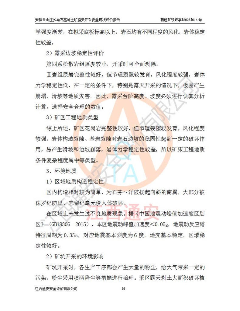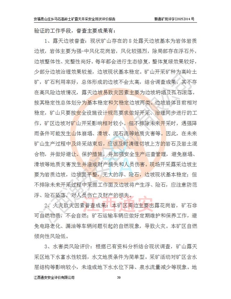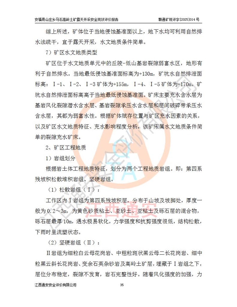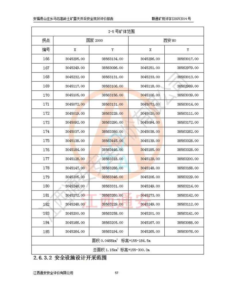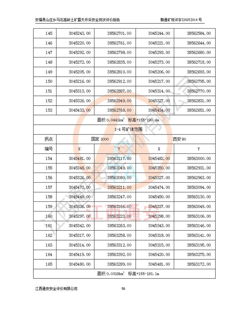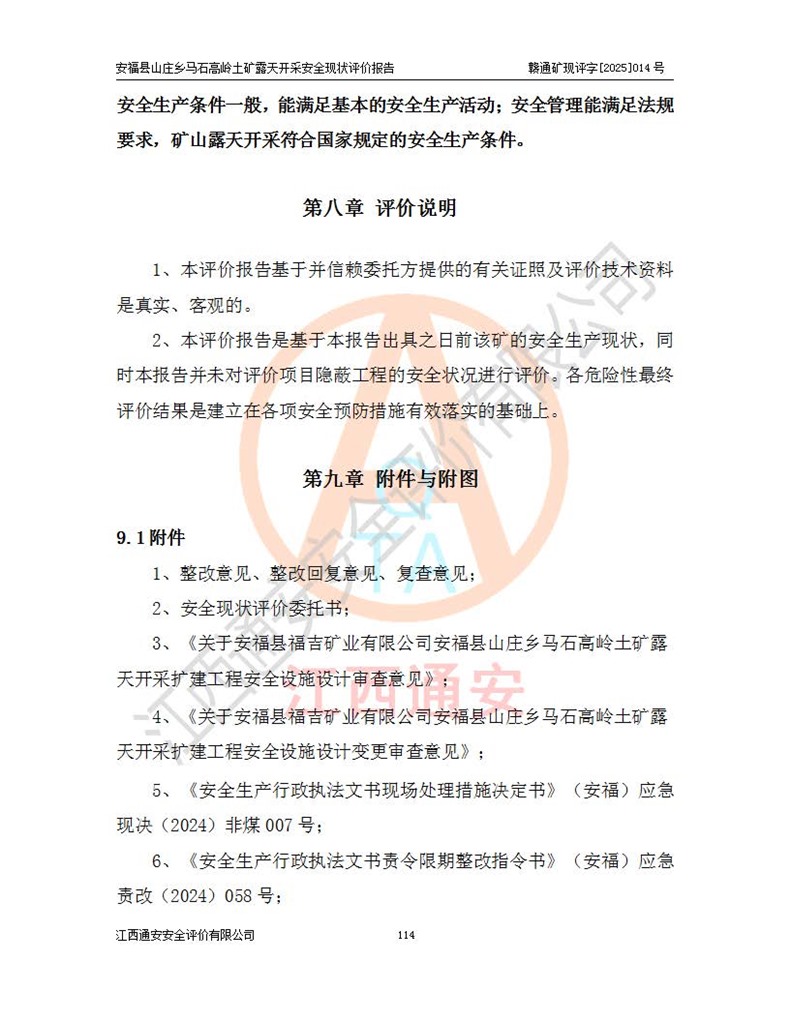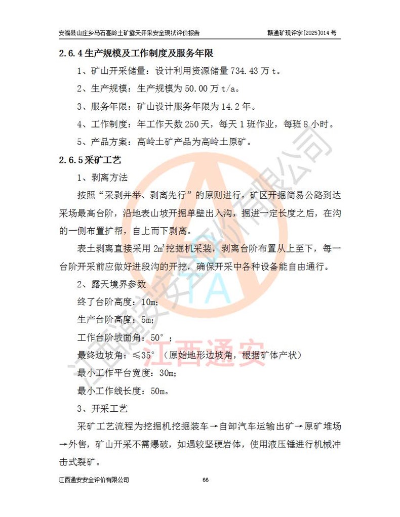 安福縣福吉礦業(yè)有限公司成立于2008年7月8日,地址位于江西省吉安市安??h山莊鄉(xiāng)東頭村五組,注冊資金:1288.66萬元,營業(yè)執(zhí)照統(tǒng)一社會(huì)信用代碼:9136082969683448X,營業(yè)期限:2008年7月8日至長期,企業(yè)類型為有限責(zé)任公司(自然人獨(dú)資),法定**人為劉國棟,經(jīng)營范圍:高嶺土開采、銷售;礦產(chǎn)品(鐵礦除外)加工、銷售。 安??h山莊鄉(xiāng)馬石高嶺土礦為安福縣福吉礦業(yè)有限公司下屬露天礦山,礦區(qū)位于安福縣城北北東,直距縣城12°方位約15km,行政區(qū)劃屬安??h山莊鄉(xiāng)管轄,礦區(qū)地理坐標(biāo)(2000坐標(biāo)系):東經(jīng)114°37′12″~114°38′32″,北緯27°30′37″~27°32′05″。礦區(qū)中心地理坐標(biāo):東經(jīng)114°37′52″,北緯 27°31′14″。礦區(qū)有3km水泥公路通往山莊鄉(xiāng),并與安福-分宜公路相連,距安福縣城18km。 馬石高嶺土礦成立于2008年,生產(chǎn)規(guī)模為2萬噸/年,礦區(qū)面積2.3642平方**,開采深度280m至155m,礦區(qū)資源于2018年重新進(jìn)行了核實(shí),2019年6月由吉安市自然資源局重新核發(fā)了采礦許可證,礦區(qū)面積由原2.3642平方**調(diào)整至1.2016平方**,開采深度由330.3m至155m,生產(chǎn)規(guī)模由2萬噸/年變更為50萬噸/年。 因礦山生產(chǎn)規(guī)模擴(kuò)大,根據(jù)《建設(shè)項(xiàng)目安全設(shè)施“三同時(shí)”監(jiān)督管理辦法》安監(jiān)總局令第36號(hào)(77號(hào)令修改)的要求,礦山應(yīng)履行安全設(shè)施擴(kuò)建“三同時(shí)”手續(xù),安??h福吉礦業(yè)有限公司分別委托內(nèi)蒙古吉安勞動(dòng)安全評(píng)價(jià)有限責(zé)任公司和山東乾舜礦冶科技股份有限公司對(duì)馬石高嶺土礦擴(kuò)建工程進(jìn)行了安全預(yù)評(píng)價(jià)及安全設(shè)施設(shè)計(jì)。 2021年10月16日安全設(shè)施設(shè)計(jì)通過了安??h應(yīng)急管理局組織的專家評(píng)審,2021年11月18日,安??h應(yīng)急管理局下發(fā)了《關(guān)于安福縣福吉礦業(yè)有限公司安??h山莊鄉(xiāng)馬石高嶺土礦露天開采擴(kuò)建工程安全設(shè)施設(shè)計(jì)審查意見》安應(yīng)急字[2021]59號(hào))。 馬石高嶺土礦于2021年12月開始了基建工程,期間因征地原因,設(shè)計(jì)開采范圍發(fā)生了變化,2022年4月,安福縣福吉礦業(yè)有限公司委托山東乾舜礦冶科技股份有限公司編制了《安??h福吉礦業(yè)有限公司安福縣山莊鄉(xiāng)馬石高嶺土礦露天開采擴(kuò)建工程變更設(shè)計(jì)》,2022年4月24日變更設(shè)計(jì)通過了安??h應(yīng)急管理局組織的專家評(píng)審,2022年5月18日,安??h應(yīng)急管理局下發(fā)了《關(guān)于安福縣福吉礦業(yè)有限公司安??h山莊鄉(xiāng)馬石高嶺土礦露天開采擴(kuò)建工程安全設(shè)施設(shè)計(jì)變更審查意見》安應(yīng)急字[2022]30號(hào))。 2022年8月,安福縣山莊鄉(xiāng)馬石高嶺土礦露天開采擴(kuò)建工程通過驗(yàn)收,2022年9月9日,礦山取得了安??h應(yīng)急管理局頒發(fā)的安全生產(chǎn)許可證,編號(hào):(贛)FM安許證字[2022]DAF02號(hào)。**期:2022年9月9日至2025年9月8日。 2024年10月25日,安福縣應(yīng)急管理局現(xiàn)場檢查時(shí),發(fā)現(xiàn)安福縣山莊鄉(xiāng)馬石高嶺土礦存在2條違法違規(guī)行為和事故隱患,并存在5條其他問題,安??h應(yīng)急管理局開具了《安全生產(chǎn)行政執(zhí)法文書現(xiàn)場處理措施決定書》(安福)應(yīng)急現(xiàn)決(2024)非煤007號(hào),《安全生產(chǎn)行政執(zhí)法文書責(zé)令限期整改指令書》(安福)應(yīng)急責(zé)改(2024)058號(hào);2024年11月15日,安??h應(yīng)急管理局開具了《安全生產(chǎn)行政執(zhí)法文書行政處罰決定書》(安福)應(yīng)急罰(2024)非煤-4號(hào);并處人民幣貳萬伍仟元罰款的行政處罰。 隨著正常的生產(chǎn),礦山企業(yè)發(fā)現(xiàn)礦區(qū)Ⅰ-2礦體西部及Ⅰ-2礦體東部的礦體難以達(dá)到工業(yè)品味的需求,經(jīng)礦山企業(yè)商討后決定:放棄對(duì)Ⅰ-2礦體西部及Ⅰ-2礦體東部的開采,僅開采Ⅰ-2礦體南部,并于2025年3月委托山東乾舜礦冶科技股份有限公司編制了《安??h福吉礦業(yè)有限公司安??h山莊鄉(xiāng)馬石高嶺土礦露天開采Ⅰ-2礦體開采設(shè)計(jì)》。 依照《非煤礦礦山企業(yè)安全生產(chǎn)許可證延期換證工作》的通知,根據(jù)***《安全生產(chǎn)許可證條例》、《江西省安全生產(chǎn)條例》、《非煤礦山安全生產(chǎn)許可證實(shí)施辦法》、《江西省非煤礦礦山企業(yè)安全生產(chǎn)許可證辦法》規(guī)定及非煤礦山安全評(píng)價(jià)導(dǎo)則的要求,受安??h福吉礦業(yè)有限公司的委托,我公司承擔(dān)安福縣山莊鄉(xiāng)馬石高嶺土礦露天開采延期換證的安全現(xiàn)狀評(píng)價(jià)工作。 |
