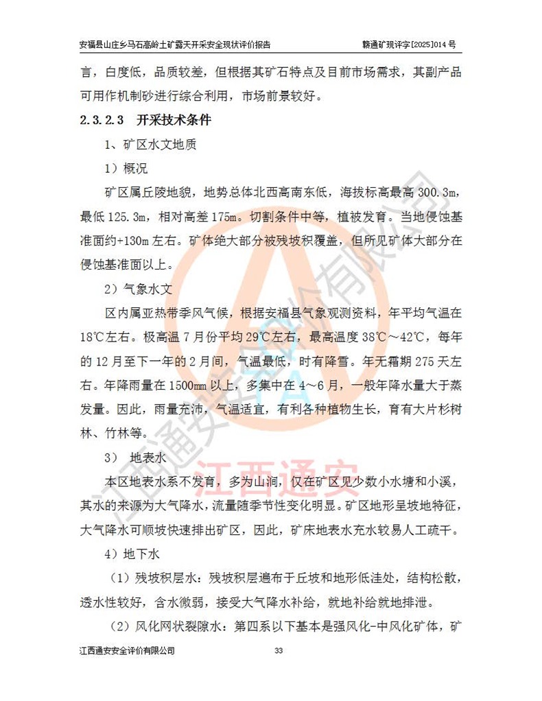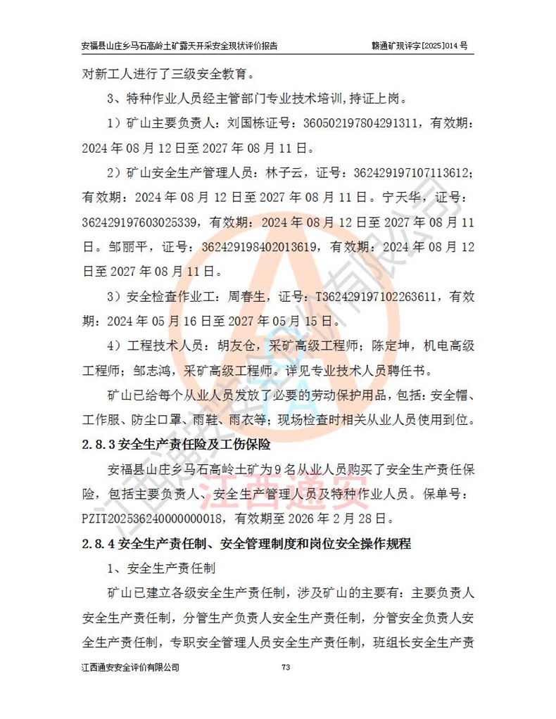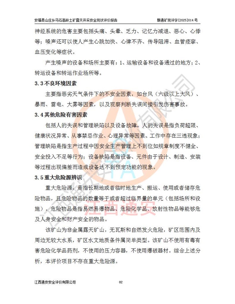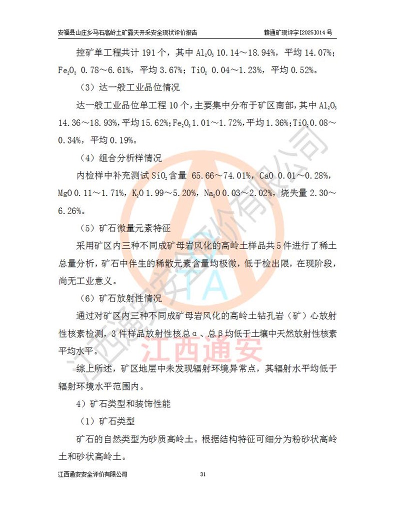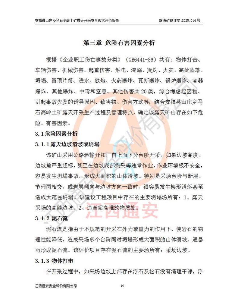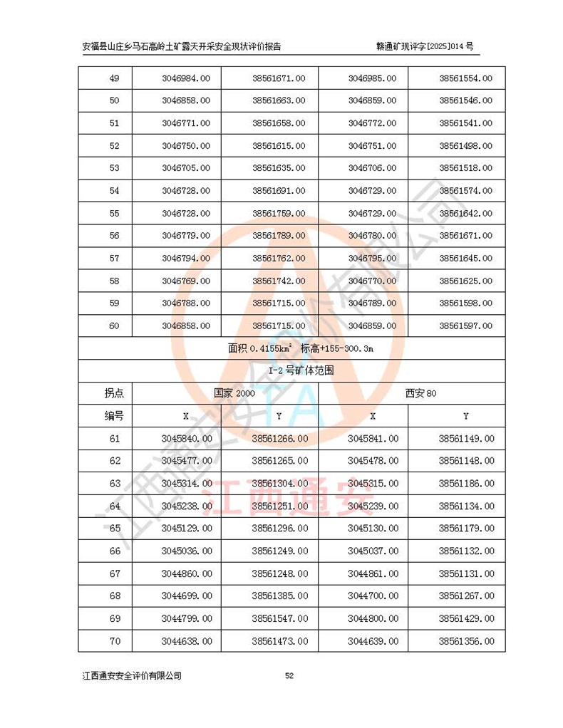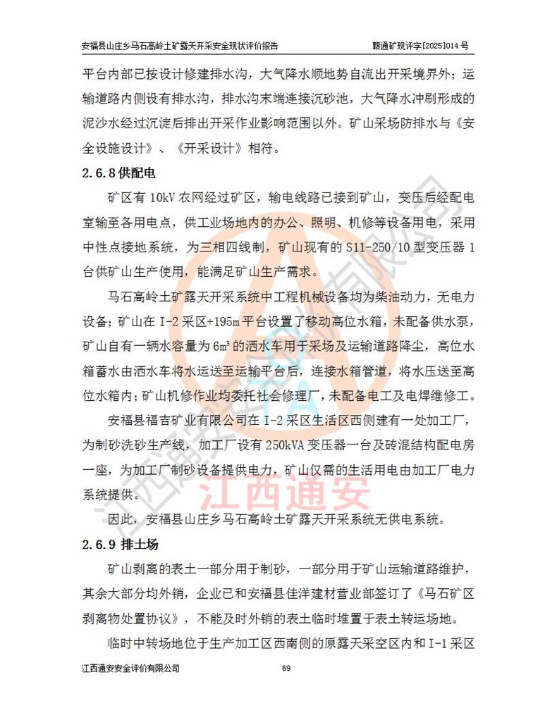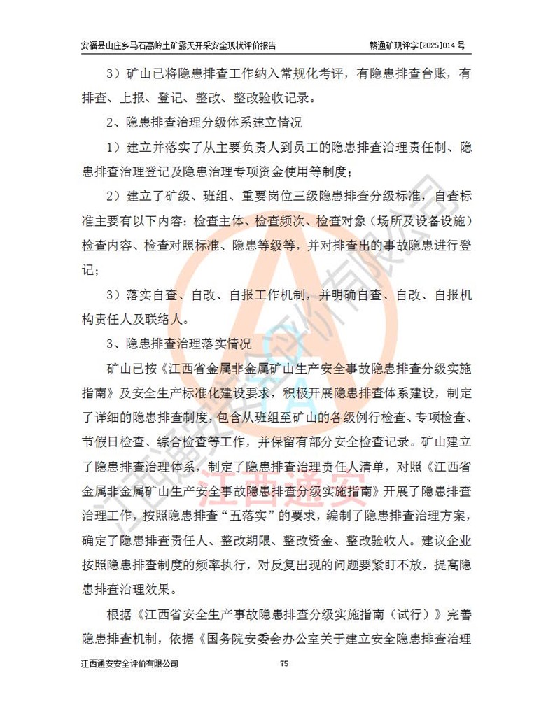 安福縣福吉礦業(yè)有限公司成立于2008年7月8日,地址位于江西省吉安市安??h山莊鄉(xiāng)東頭村五組,注冊資金:1288.66萬元,營業(yè)執(zhí)照統(tǒng)一社會(huì)信用代碼:9136082969683448X,營業(yè)期限:2008年7月8日至長期,企業(yè)類型為有限責(zé)任公司(自然人獨(dú)資),法定**人為劉國棟,經(jīng)營范圍:高嶺土開采、銷售;礦產(chǎn)品(鐵礦除外)加工、銷售。 安??h山莊鄉(xiāng)馬石高嶺土礦為安福縣福吉礦業(yè)有限公司下屬露天礦山,礦區(qū)位于安福縣城北北東,直距縣城12°方位約15km,行政區(qū)劃屬安??h山莊鄉(xiāng)管轄,礦區(qū)地理坐標(biāo)(2000坐標(biāo)系):東經(jīng)114°37′12″~114°38′32″,北緯27°30′37″~27°32′05″。礦區(qū)中心地理坐標(biāo):東經(jīng)114°37′52″,北緯 27°31′14″。礦區(qū)有3km水泥公路通往山莊鄉(xiāng),并與安福-分宜公路相連,距安福縣城18km。 馬石高嶺土礦成立于2008年,生產(chǎn)規(guī)模為2萬噸/年,礦區(qū)面積2.3642平方**,開采深度280m至155m,礦區(qū)資源于2018年重新進(jìn)行了核實(shí),2019年6月由吉安市自然資源局重新核發(fā)了采礦許可證,礦區(qū)面積由原2.3642平方**調(diào)整至1.2016平方**,開采深度由330.3m至155m,生產(chǎn)規(guī)模由2萬噸/年變更為50萬噸/年。 因礦山生產(chǎn)規(guī)模擴(kuò)大,根據(jù)《建設(shè)項(xiàng)目安全設(shè)施“三同時(shí)”監(jiān)督管理辦法》安監(jiān)總局令第36號(hào)(77號(hào)令修改)的要求,礦山應(yīng)履行安全設(shè)施擴(kuò)建“三同時(shí)”手續(xù),安??h福吉礦業(yè)有限公司分別委托內(nèi)蒙古吉安勞動(dòng)安全評(píng)價(jià)有限責(zé)任公司和山東乾舜礦冶科技股份有限公司對(duì)馬石高嶺土礦擴(kuò)建工程進(jìn)行了安全預(yù)評(píng)價(jià)及安全設(shè)施設(shè)計(jì)。 2021年10月16日安全設(shè)施設(shè)計(jì)通過了安??h應(yīng)急管理局組織的專家評(píng)審,2021年11月18日,安??h應(yīng)急管理局下發(fā)了《關(guān)于安福縣福吉礦業(yè)有限公司安??h山莊鄉(xiāng)馬石高嶺土礦露天開采擴(kuò)建工程安全設(shè)施設(shè)計(jì)審查意見》安應(yīng)急字[2021]59號(hào))。 馬石高嶺土礦于2021年12月開始了基建工程,期間因征地原因,設(shè)計(jì)開采范圍發(fā)生了變化,2022年4月,安福縣福吉礦業(yè)有限公司委托山東乾舜礦冶科技股份有限公司編制了《安??h福吉礦業(yè)有限公司安福縣山莊鄉(xiāng)馬石高嶺土礦露天開采擴(kuò)建工程變更設(shè)計(jì)》,2022年4月24日變更設(shè)計(jì)通過了安??h應(yīng)急管理局組織的專家評(píng)審,2022年5月18日,安??h應(yīng)急管理局下發(fā)了《關(guān)于安福縣福吉礦業(yè)有限公司安??h山莊鄉(xiāng)馬石高嶺土礦露天開采擴(kuò)建工程安全設(shè)施設(shè)計(jì)變更審查意見》安應(yīng)急字[2022]30號(hào))。 2022年8月,安福縣山莊鄉(xiāng)馬石高嶺土礦露天開采擴(kuò)建工程通過驗(yàn)收,2022年9月9日,礦山取得了安??h應(yīng)急管理局頒發(fā)的安全生產(chǎn)許可證,編號(hào):(贛)FM安許證字[2022]DAF02號(hào)。**期:2022年9月9日至2025年9月8日。 2024年10月25日,安福縣應(yīng)急管理局現(xiàn)場檢查時(shí),發(fā)現(xiàn)安福縣山莊鄉(xiāng)馬石高嶺土礦存在2條違法違規(guī)行為和事故隱患,并存在5條其他問題,安??h應(yīng)急管理局開具了《安全生產(chǎn)行政執(zhí)法文書現(xiàn)場處理措施決定書》(安福)應(yīng)急現(xiàn)決(2024)非煤007號(hào),《安全生產(chǎn)行政執(zhí)法文書責(zé)令限期整改指令書》(安福)應(yīng)急責(zé)改(2024)058號(hào);2024年11月15日,安??h應(yīng)急管理局開具了《安全生產(chǎn)行政執(zhí)法文書行政處罰決定書》(安福)應(yīng)急罰(2024)非煤-4號(hào);并處人民幣貳萬伍仟元罰款的行政處罰。 隨著正常的生產(chǎn),礦山企業(yè)發(fā)現(xiàn)礦區(qū)Ⅰ-2礦體西部及Ⅰ-2礦體東部的礦體難以達(dá)到工業(yè)品味的需求,經(jīng)礦山企業(yè)商討后決定:放棄對(duì)Ⅰ-2礦體西部及Ⅰ-2礦體東部的開采,僅開采Ⅰ-2礦體南部,并于2025年3月委托山東乾舜礦冶科技股份有限公司編制了《安??h福吉礦業(yè)有限公司安??h山莊鄉(xiāng)馬石高嶺土礦露天開采Ⅰ-2礦體開采設(shè)計(jì)》。 依照《非煤礦礦山企業(yè)安全生產(chǎn)許可證延期換證工作》的通知,根據(jù)***《安全生產(chǎn)許可證條例》、《江西省安全生產(chǎn)條例》、《非煤礦山安全生產(chǎn)許可證實(shí)施辦法》、《江西省非煤礦礦山企業(yè)安全生產(chǎn)許可證辦法》規(guī)定及非煤礦山安全評(píng)價(jià)導(dǎo)則的要求,受安??h福吉礦業(yè)有限公司的委托,我公司承擔(dān)安福縣山莊鄉(xiāng)馬石高嶺土礦露天開采延期換證的安全現(xiàn)狀評(píng)價(jià)工作。 |