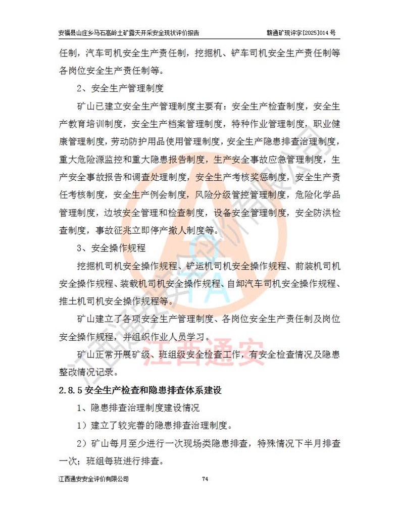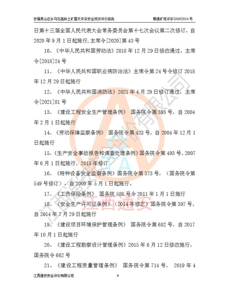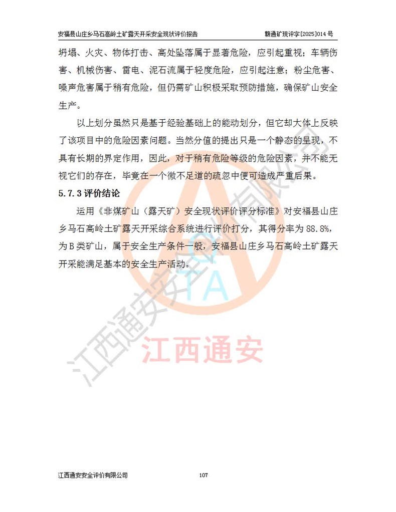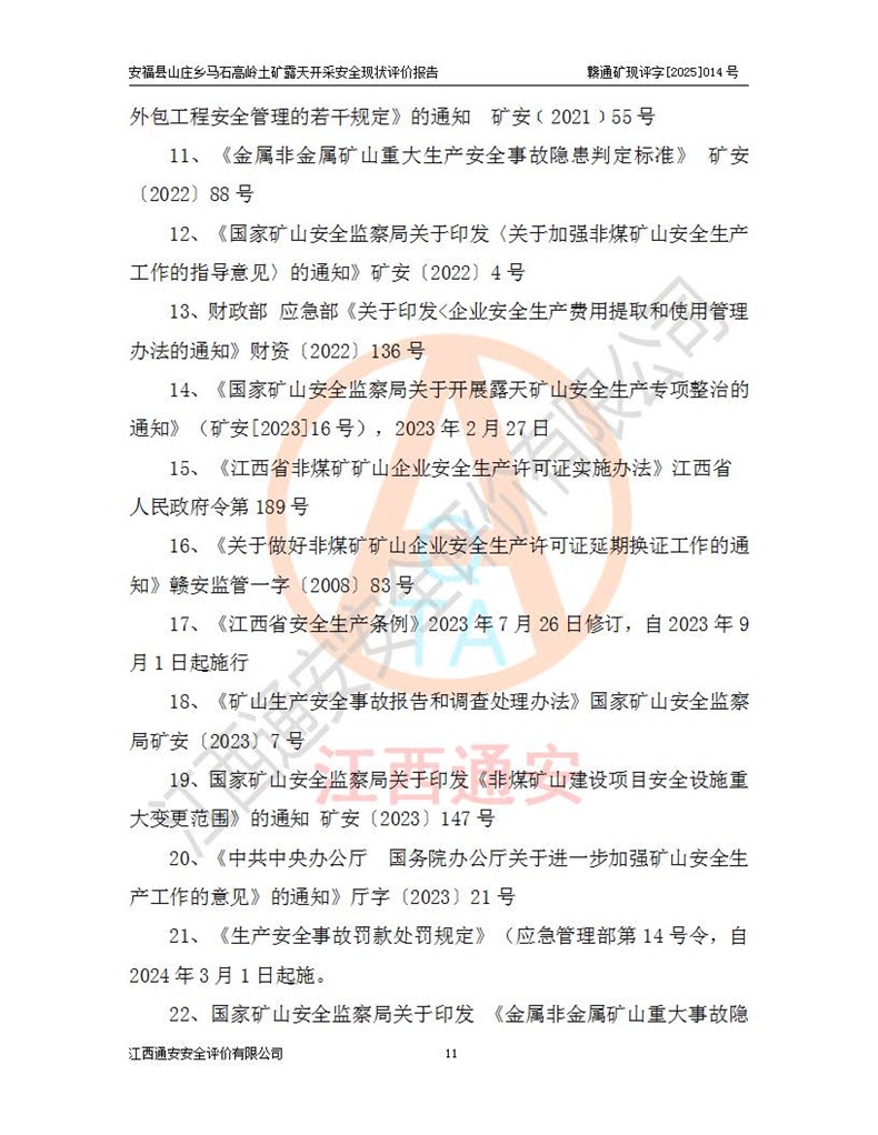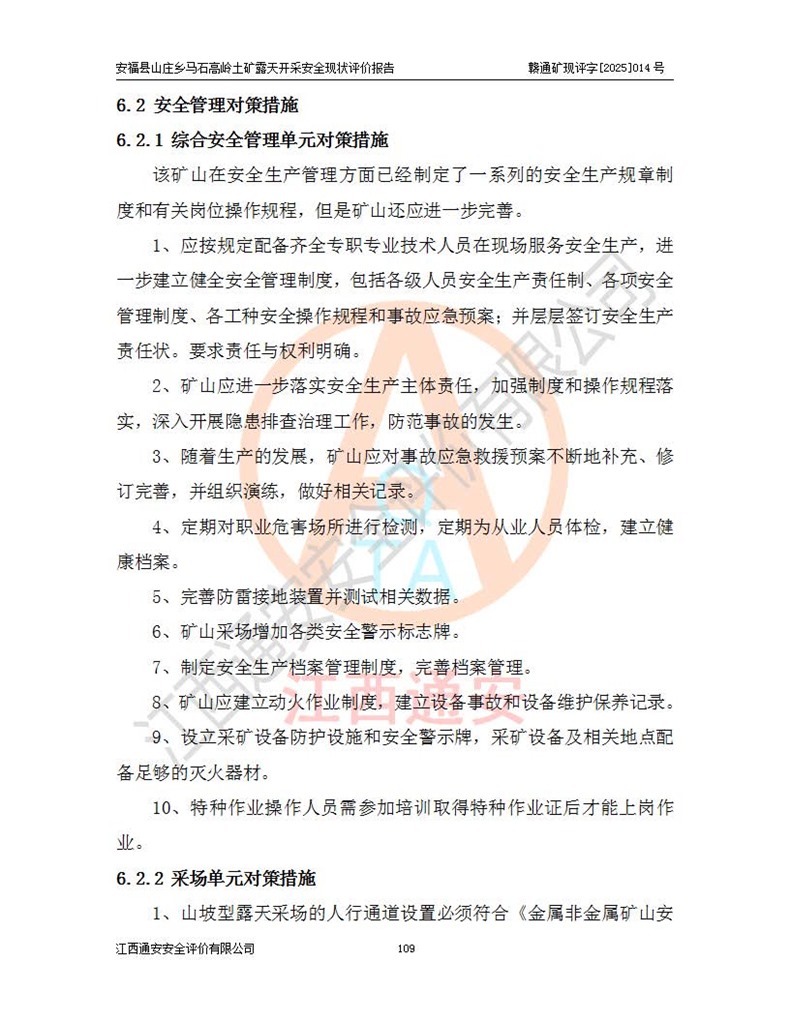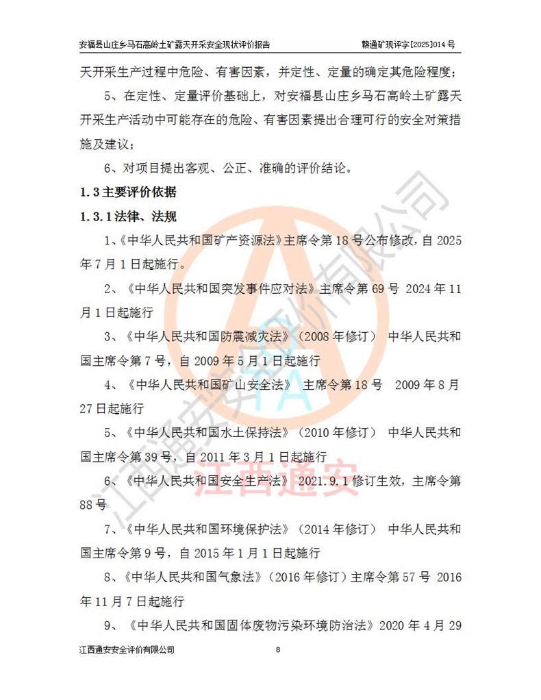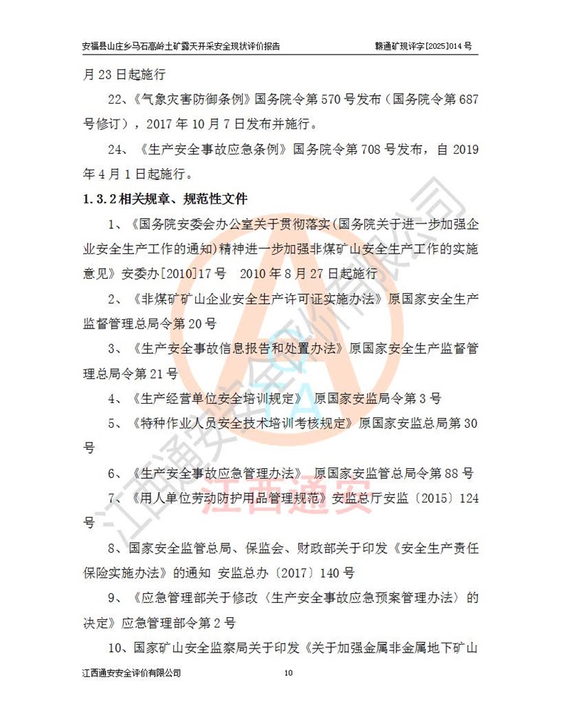 安福縣福吉礦業(yè)有限公司成立于2008年7月8日,地址位于江西省吉安市安??h山莊鄉(xiāng)東頭村五組,注冊資金:1288.66萬元,營業(yè)執(zhí)照統(tǒng)一社會(huì)信用代碼:9136082969683448X,營業(yè)期限:2008年7月8日至長期,企業(yè)類型為有限責(zé)任公司(自然人獨(dú)資),法定**人為劉國棟,經(jīng)營范圍:高嶺土開采、銷售;礦產(chǎn)品(鐵礦除外)加工、銷售。 安??h山莊鄉(xiāng)馬石高嶺土礦為安福縣福吉礦業(yè)有限公司下屬露天礦山,礦區(qū)位于安福縣城北北東,直距縣城12°方位約15km,行政區(qū)劃屬安??h山莊鄉(xiāng)管轄,礦區(qū)地理坐標(biāo)(2000坐標(biāo)系):東經(jīng)114°37′12″~114°38′32″,北緯27°30′37″~27°32′05″。礦區(qū)中心地理坐標(biāo):東經(jīng)114°37′52″,北緯 27°31′14″。礦區(qū)有3km水泥公路通往山莊鄉(xiāng),并與安福-分宜公路相連,距安福縣城18km。 馬石高嶺土礦成立于2008年,生產(chǎn)規(guī)模為2萬噸/年,礦區(qū)面積2.3642平方**,開采深度280m至155m,礦區(qū)資源于2018年重新進(jìn)行了核實(shí),2019年6月由吉安市自然資源局重新核發(fā)了采礦許可證,礦區(qū)面積由原2.3642平方**調(diào)整至1.2016平方**,開采深度由330.3m至155m,生產(chǎn)規(guī)模由2萬噸/年變更為50萬噸/年。 因礦山生產(chǎn)規(guī)模擴(kuò)大,根據(jù)《建設(shè)項(xiàng)目安全設(shè)施“三同時(shí)”監(jiān)督管理辦法》安監(jiān)總局令第36號(hào)(77號(hào)令修改)的要求,礦山應(yīng)履行安全設(shè)施擴(kuò)建“三同時(shí)”手續(xù),安??h福吉礦業(yè)有限公司分別委托內(nèi)蒙古吉安勞動(dòng)安全評(píng)價(jià)有限責(zé)任公司和山東乾舜礦冶科技股份有限公司對(duì)馬石高嶺土礦擴(kuò)建工程進(jìn)行了安全預(yù)評(píng)價(jià)及安全設(shè)施設(shè)計(jì)。 2021年10月16日安全設(shè)施設(shè)計(jì)通過了安??h應(yīng)急管理局組織的專家評(píng)審,2021年11月18日,安??h應(yīng)急管理局下發(fā)了《關(guān)于安福縣福吉礦業(yè)有限公司安??h山莊鄉(xiāng)馬石高嶺土礦露天開采擴(kuò)建工程安全設(shè)施設(shè)計(jì)審查意見》安應(yīng)急字[2021]59號(hào))。 馬石高嶺土礦于2021年12月開始了基建工程,期間因征地原因,設(shè)計(jì)開采范圍發(fā)生了變化,2022年4月,安福縣福吉礦業(yè)有限公司委托山東乾舜礦冶科技股份有限公司編制了《安??h福吉礦業(yè)有限公司安福縣山莊鄉(xiāng)馬石高嶺土礦露天開采擴(kuò)建工程變更設(shè)計(jì)》,2022年4月24日變更設(shè)計(jì)通過了安??h應(yīng)急管理局組織的專家評(píng)審,2022年5月18日,安??h應(yīng)急管理局下發(fā)了《關(guān)于安福縣福吉礦業(yè)有限公司安??h山莊鄉(xiāng)馬石高嶺土礦露天開采擴(kuò)建工程安全設(shè)施設(shè)計(jì)變更審查意見》安應(yīng)急字[2022]30號(hào))。 2022年8月,安福縣山莊鄉(xiāng)馬石高嶺土礦露天開采擴(kuò)建工程通過驗(yàn)收,2022年9月9日,礦山取得了安??h應(yīng)急管理局頒發(fā)的安全生產(chǎn)許可證,編號(hào):(贛)FM安許證字[2022]DAF02號(hào)。**期:2022年9月9日至2025年9月8日。 2024年10月25日,安福縣應(yīng)急管理局現(xiàn)場檢查時(shí),發(fā)現(xiàn)安福縣山莊鄉(xiāng)馬石高嶺土礦存在2條違法違規(guī)行為和事故隱患,并存在5條其他問題,安??h應(yīng)急管理局開具了《安全生產(chǎn)行政執(zhí)法文書現(xiàn)場處理措施決定書》(安福)應(yīng)急現(xiàn)決(2024)非煤007號(hào),《安全生產(chǎn)行政執(zhí)法文書責(zé)令限期整改指令書》(安福)應(yīng)急責(zé)改(2024)058號(hào);2024年11月15日,安??h應(yīng)急管理局開具了《安全生產(chǎn)行政執(zhí)法文書行政處罰決定書》(安福)應(yīng)急罰(2024)非煤-4號(hào);并處人民幣貳萬伍仟元罰款的行政處罰。 隨著正常的生產(chǎn),礦山企業(yè)發(fā)現(xiàn)礦區(qū)Ⅰ-2礦體西部及Ⅰ-2礦體東部的礦體難以達(dá)到工業(yè)品味的需求,經(jīng)礦山企業(yè)商討后決定:放棄對(duì)Ⅰ-2礦體西部及Ⅰ-2礦體東部的開采,僅開采Ⅰ-2礦體南部,并于2025年3月委托山東乾舜礦冶科技股份有限公司編制了《安??h福吉礦業(yè)有限公司安??h山莊鄉(xiāng)馬石高嶺土礦露天開采Ⅰ-2礦體開采設(shè)計(jì)》。 依照《非煤礦礦山企業(yè)安全生產(chǎn)許可證延期換證工作》的通知,根據(jù)***《安全生產(chǎn)許可證條例》、《江西省安全生產(chǎn)條例》、《非煤礦山安全生產(chǎn)許可證實(shí)施辦法》、《江西省非煤礦礦山企業(yè)安全生產(chǎn)許可證辦法》規(guī)定及非煤礦山安全評(píng)價(jià)導(dǎo)則的要求,受安??h福吉礦業(yè)有限公司的委托,我公司承擔(dān)安福縣山莊鄉(xiāng)馬石高嶺土礦露天開采延期換證的安全現(xiàn)狀評(píng)價(jià)工作。 |