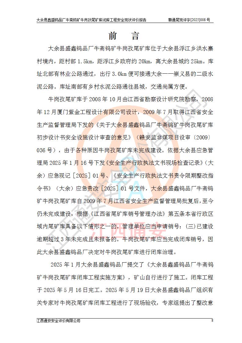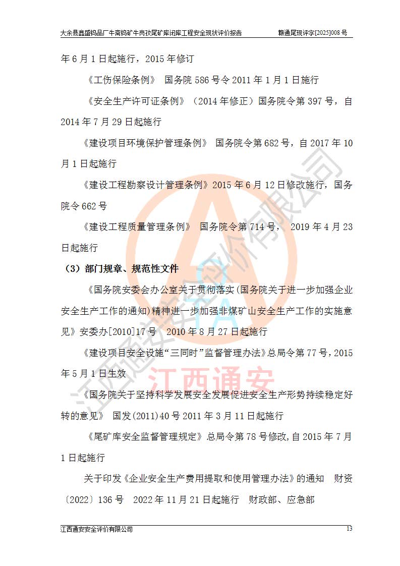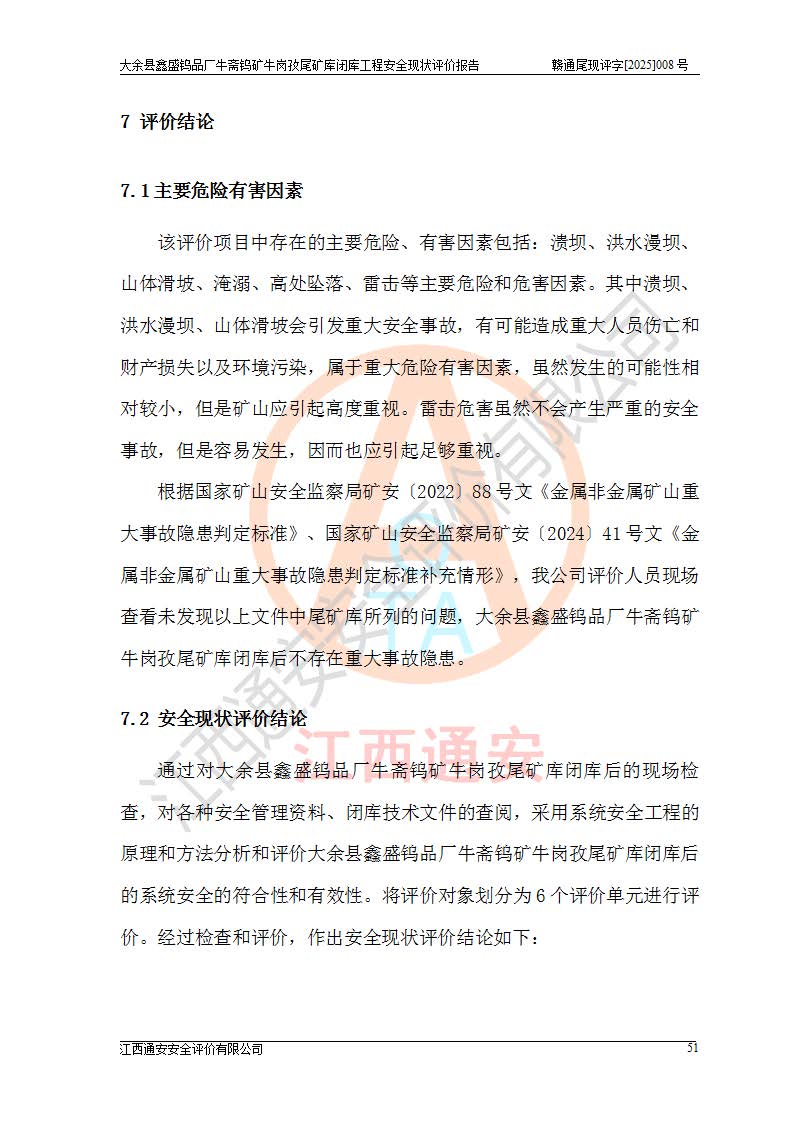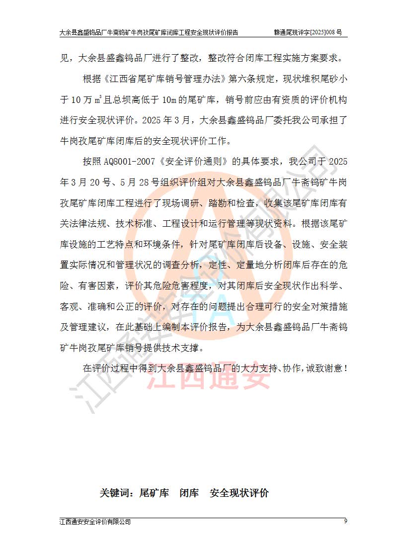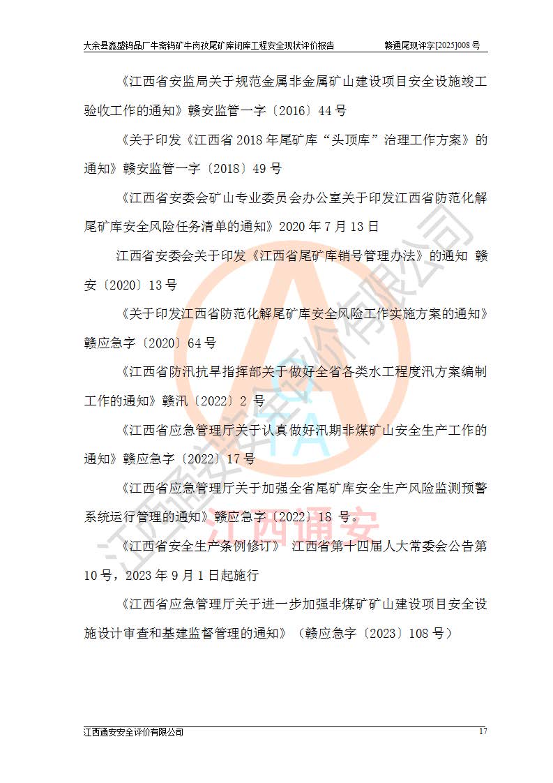 評(píng)價(jià)報(bào)告名稱 | 大余縣鑫盛鎢品廠牛齋鎢礦牛崗孜尾礦庫(kù)閉庫(kù)工程安全現(xiàn)狀評(píng)價(jià)報(bào)告 | |||