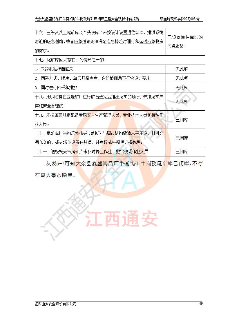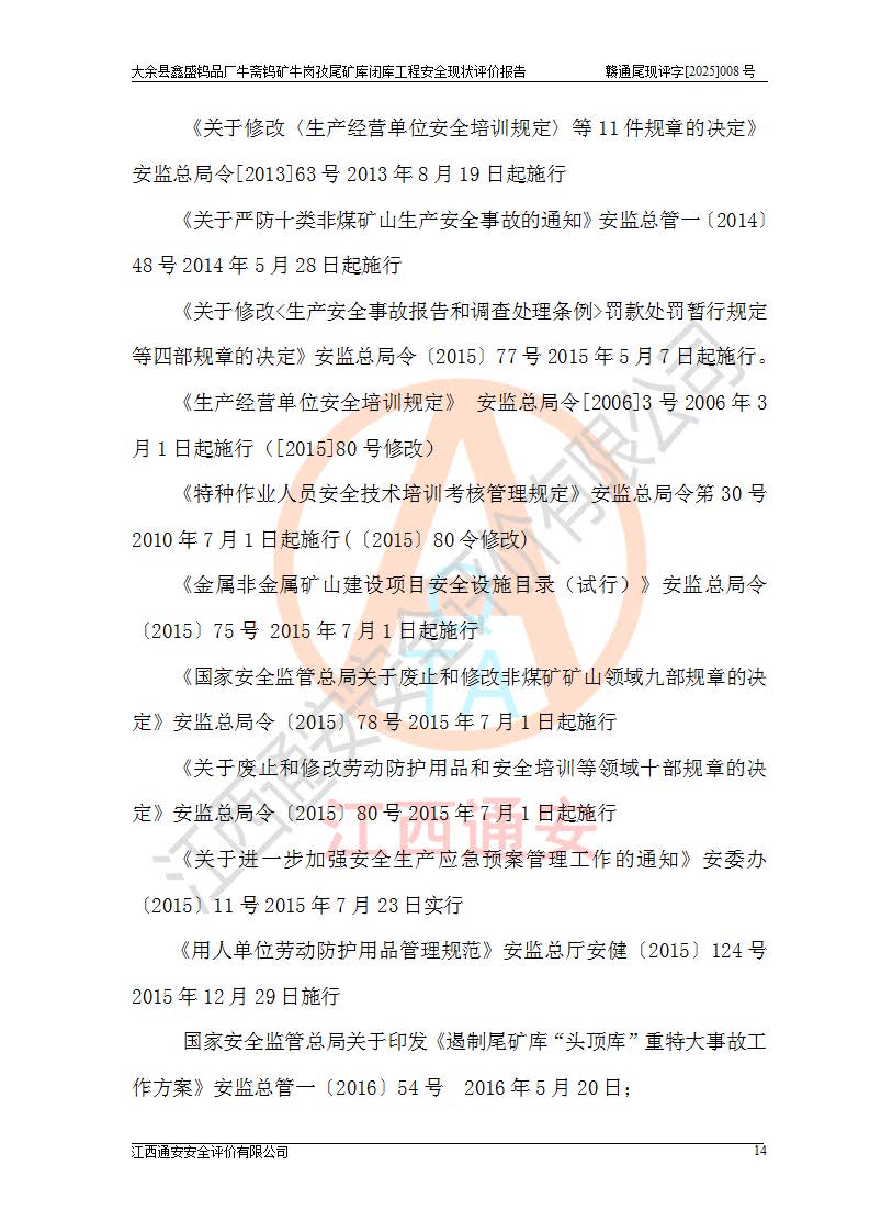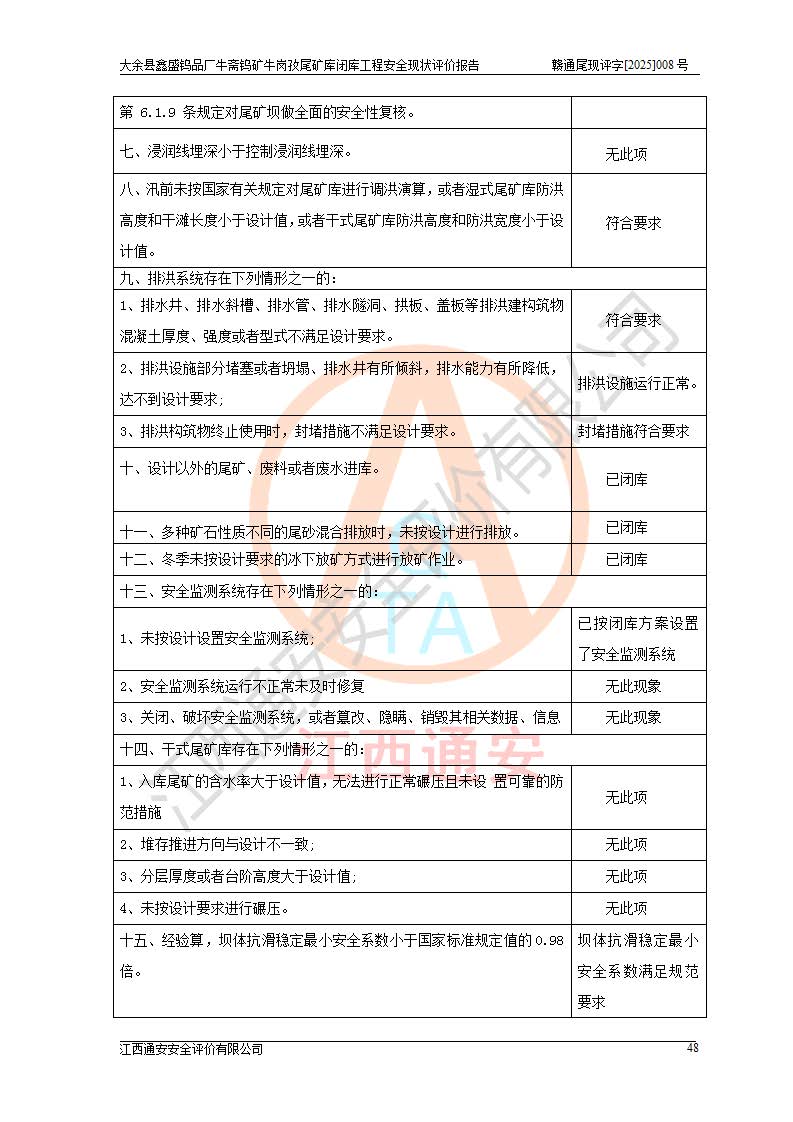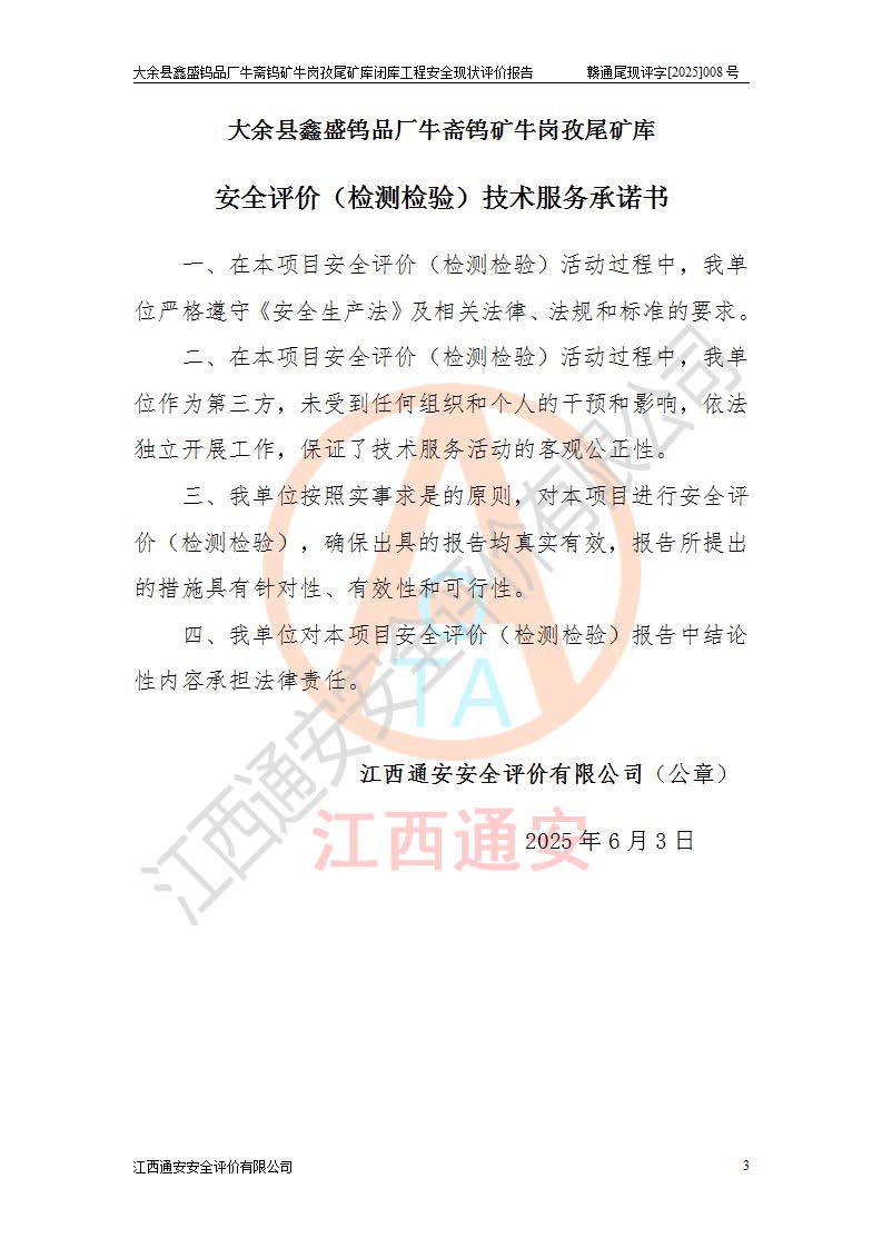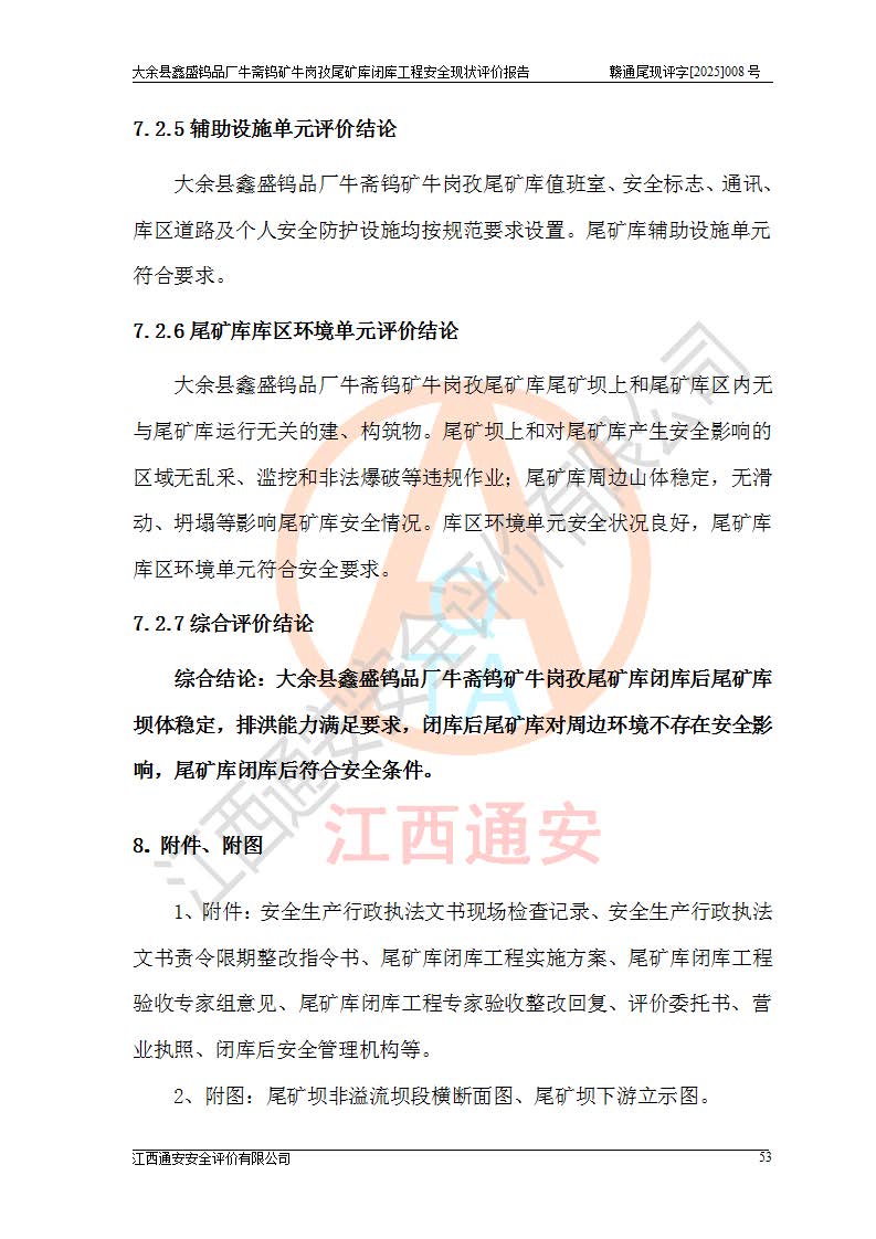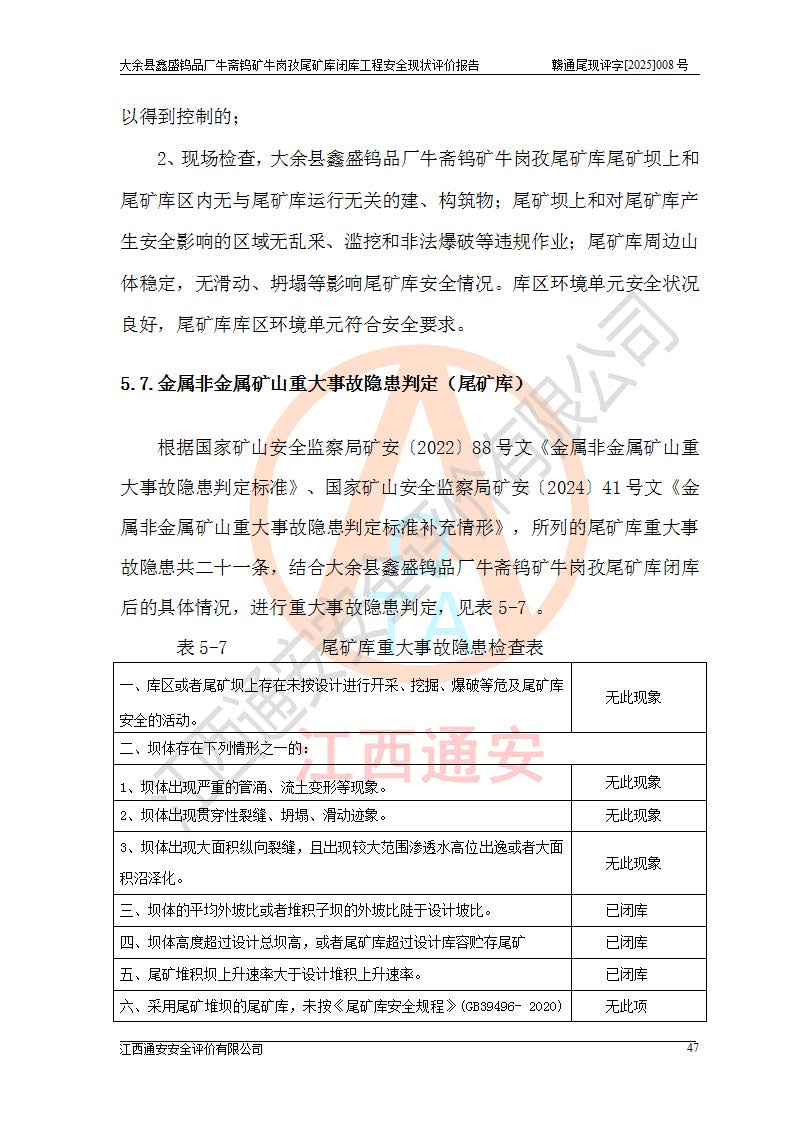 評(píng)價(jià)報(bào)告名稱 | 大余縣鑫盛鎢品廠牛齋鎢礦牛崗孜尾礦庫(kù)閉庫(kù)工程安全現(xiàn)狀評(píng)價(jià)報(bào)告 | |||