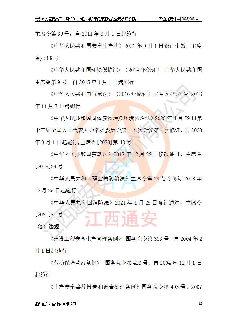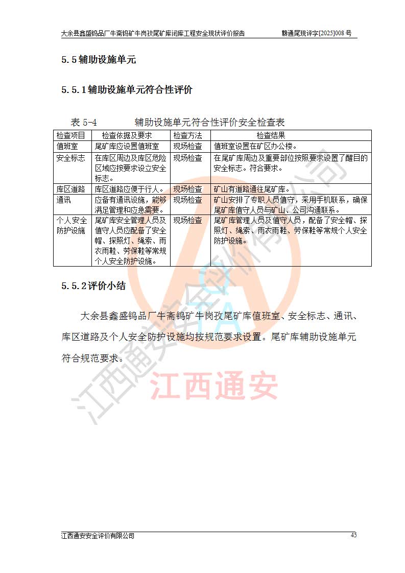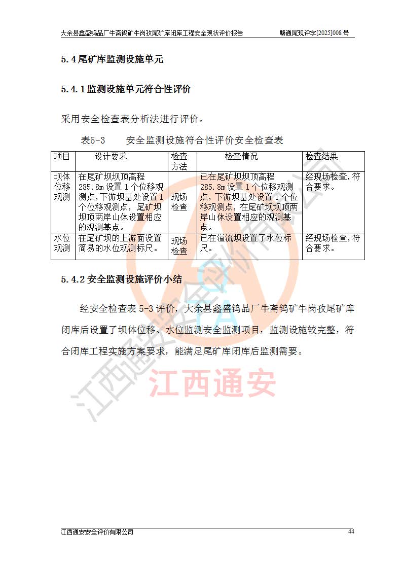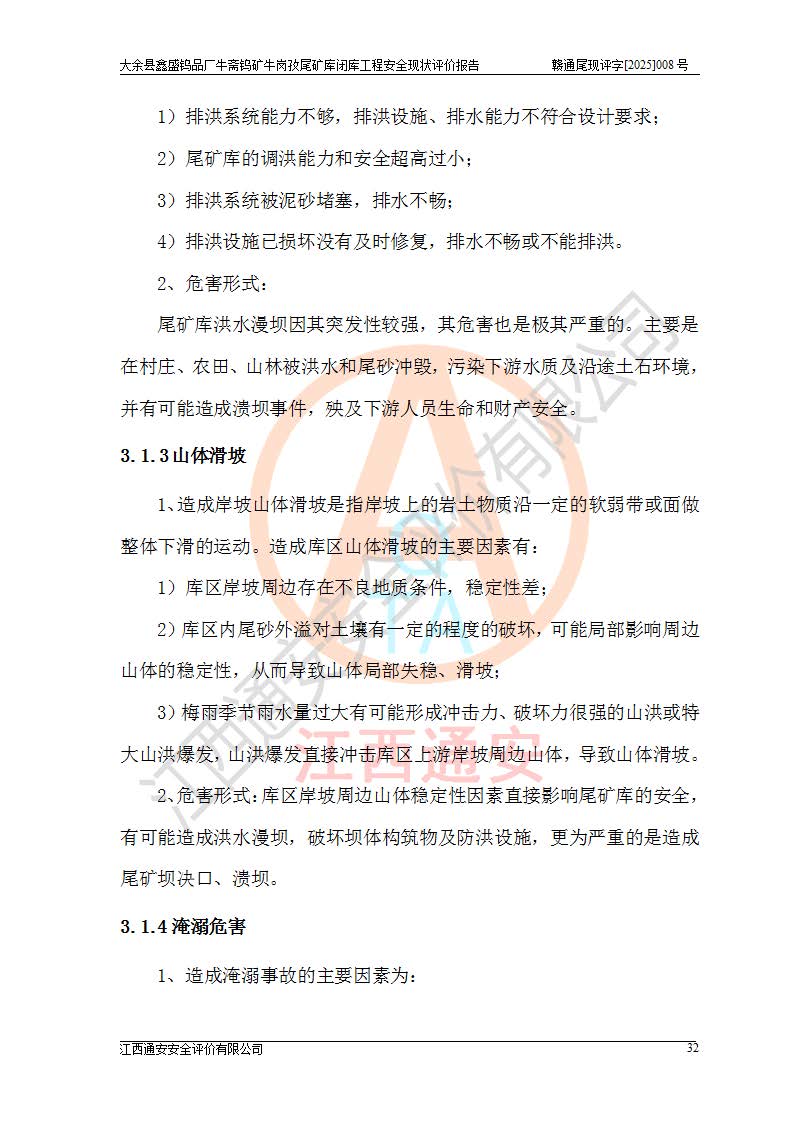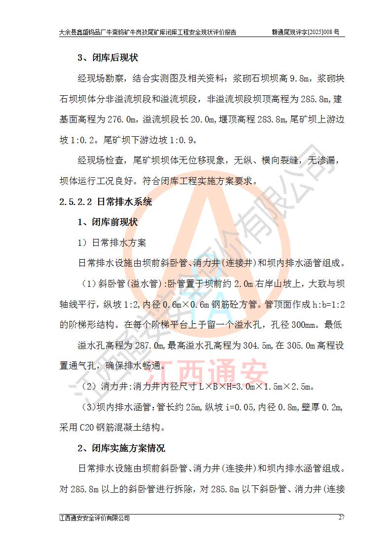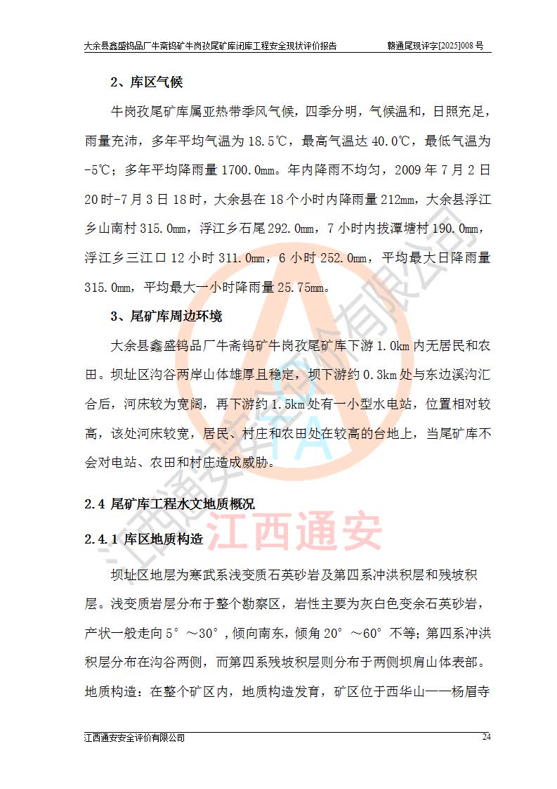 評(píng)價(jià)報(bào)告名稱 | 大余縣鑫盛鎢品廠牛齋鎢礦牛崗孜尾礦庫(kù)閉庫(kù)工程安全現(xiàn)狀評(píng)價(jià)報(bào)告 | |||