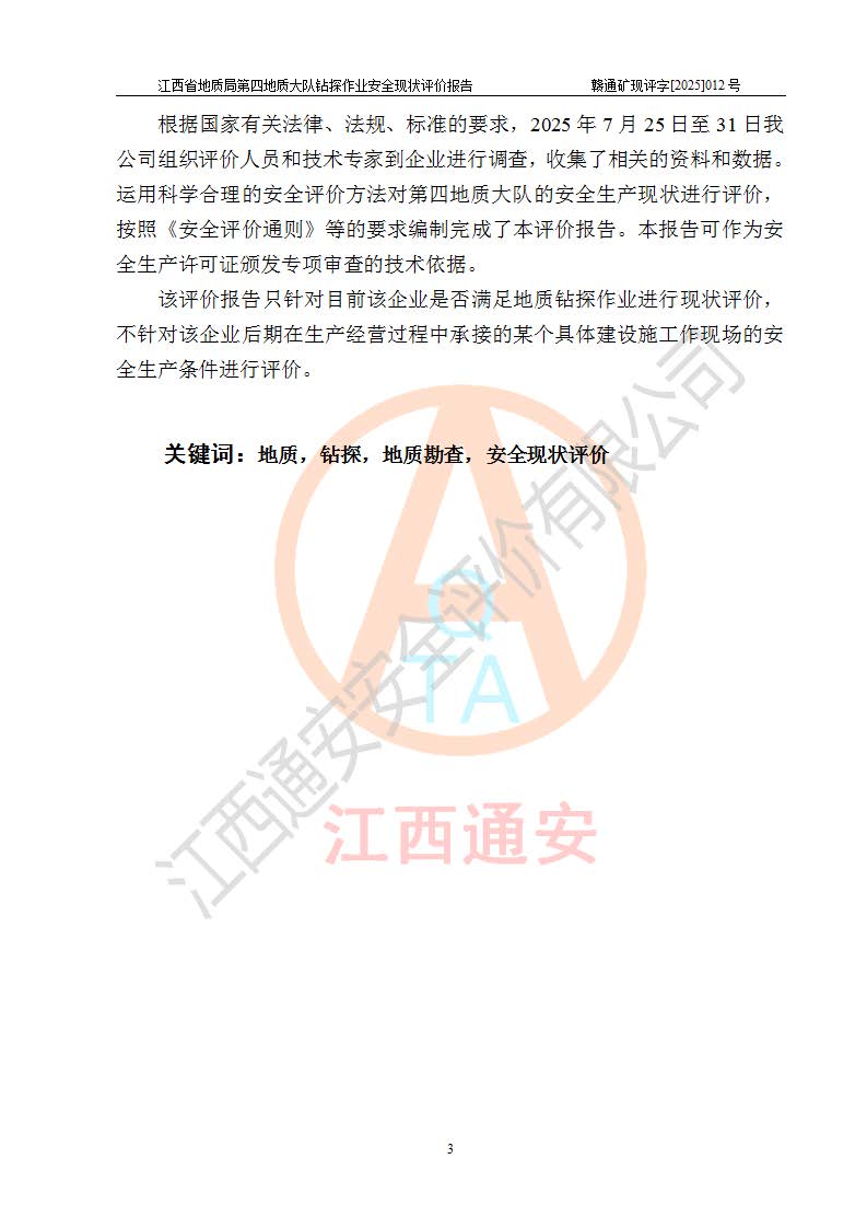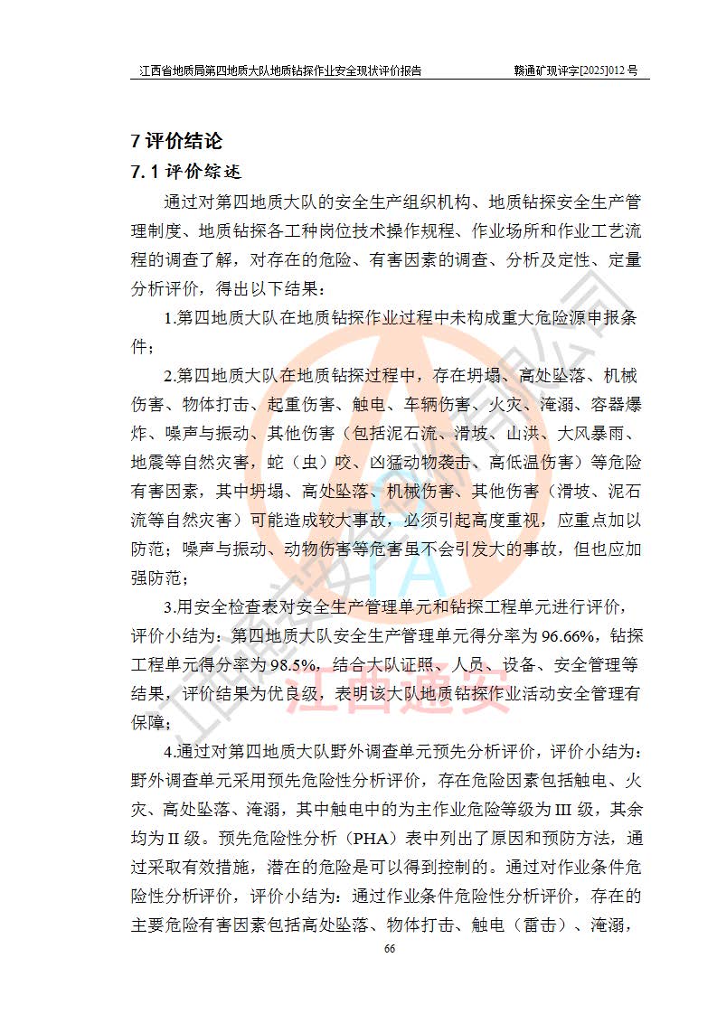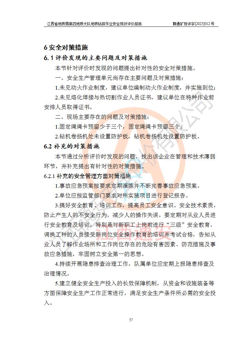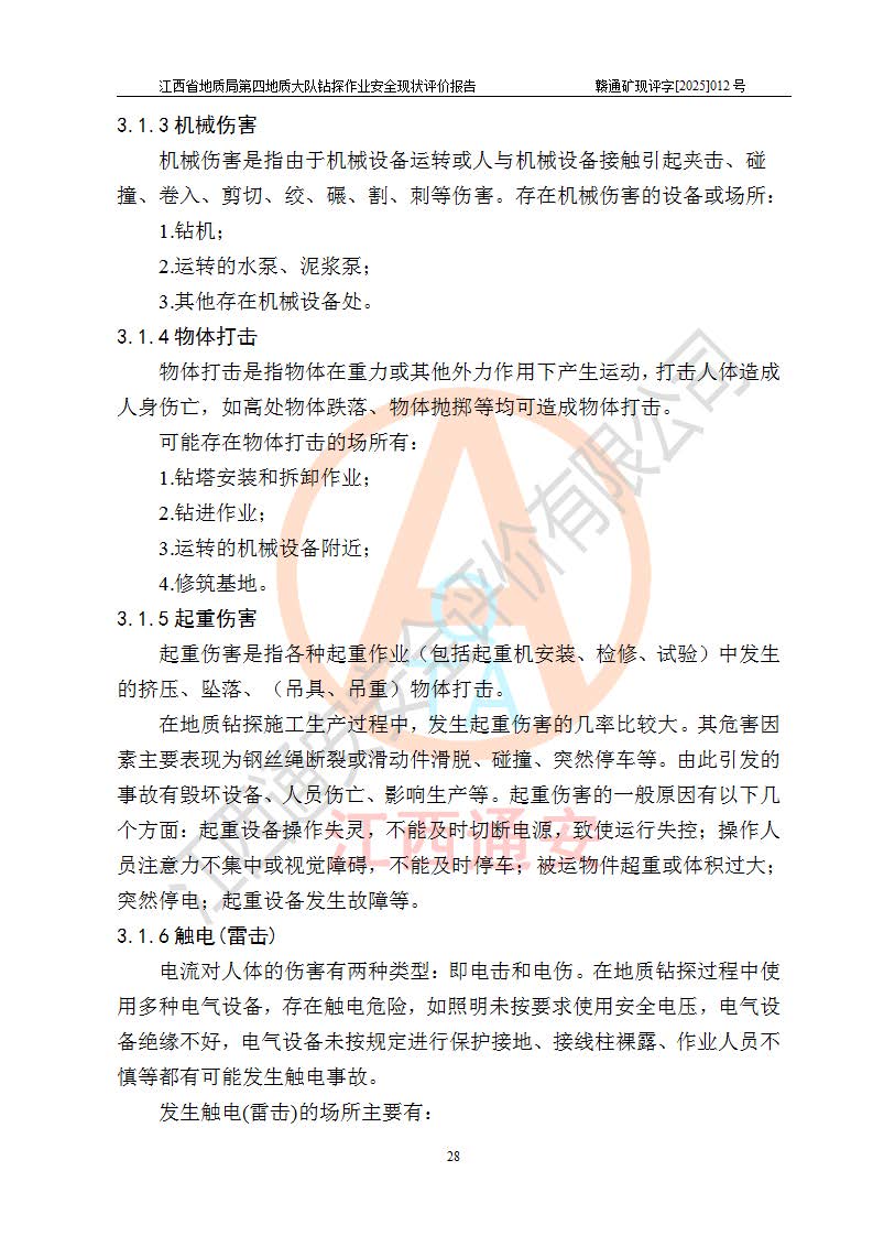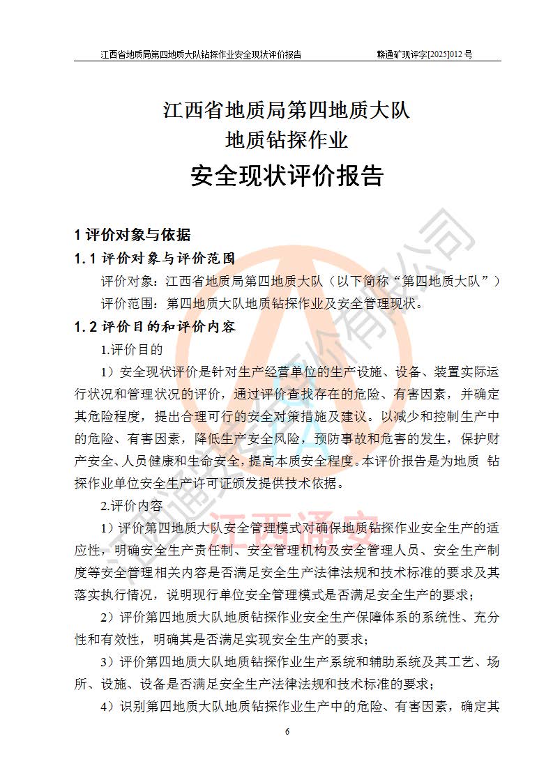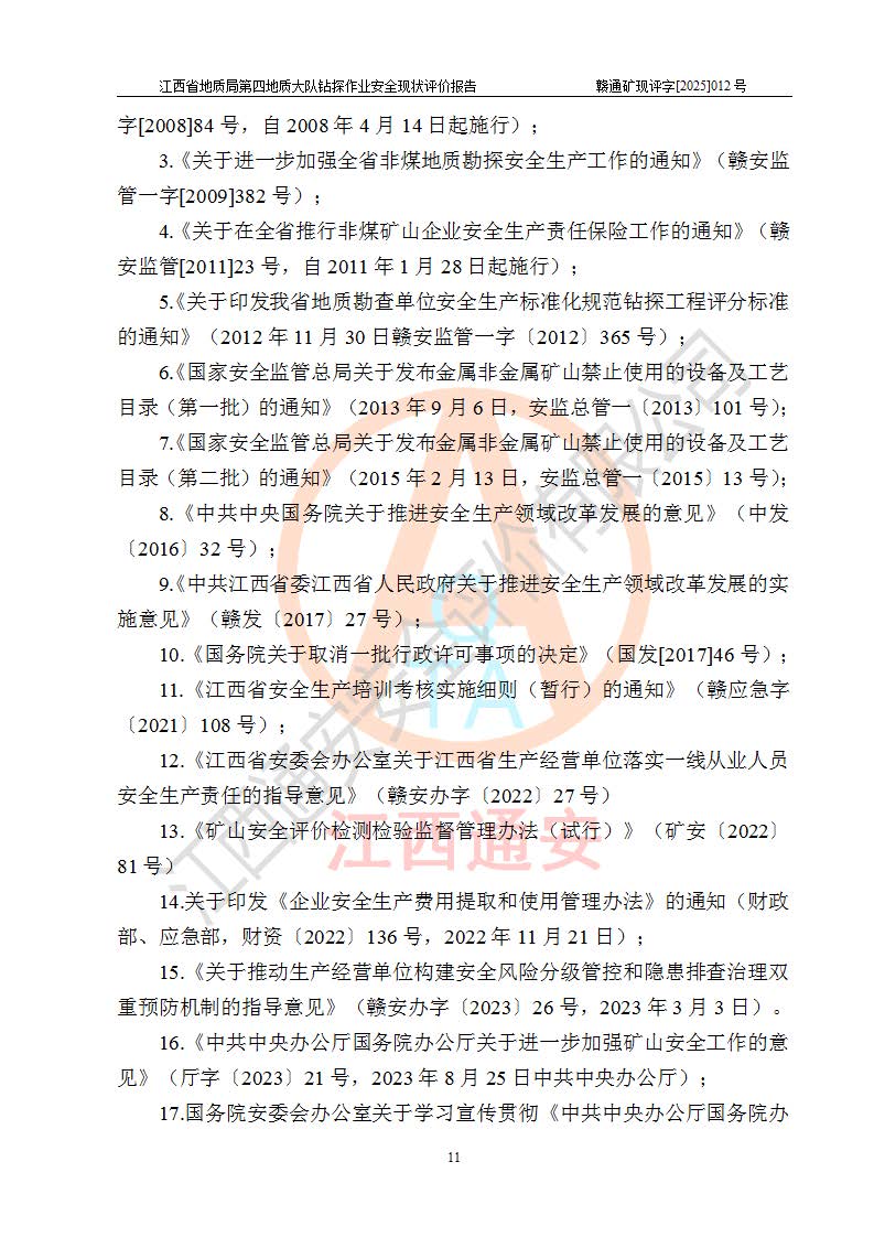 報(bào)告名稱 | 江西省地質(zhì)局第四地質(zhì)大隊(duì)地質(zhì)鉆探作業(yè)安全現(xiàn)狀評(píng)價(jià)報(bào)告 | |||||