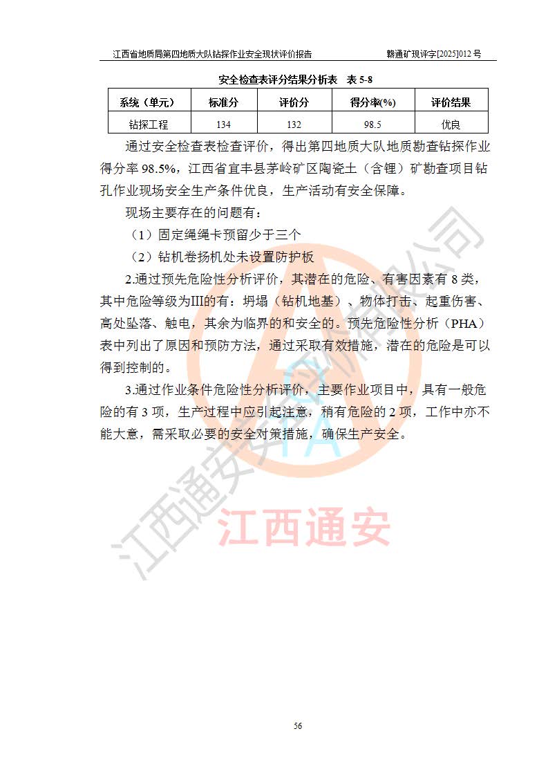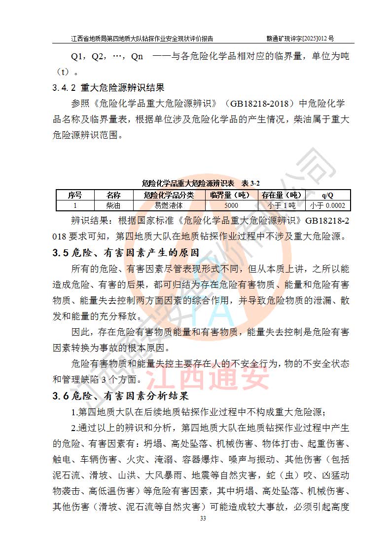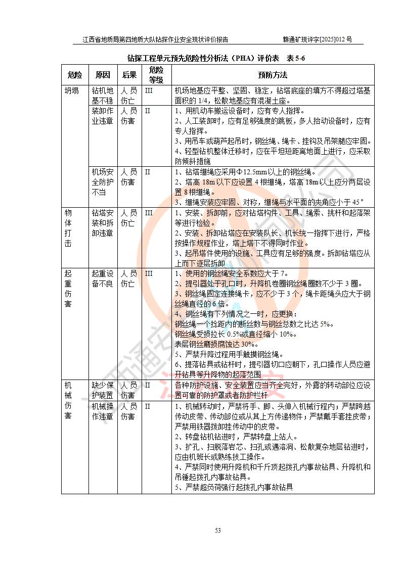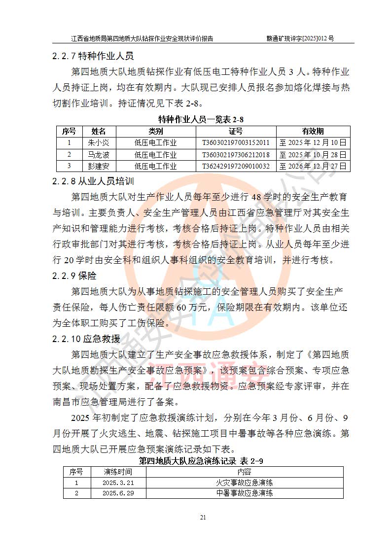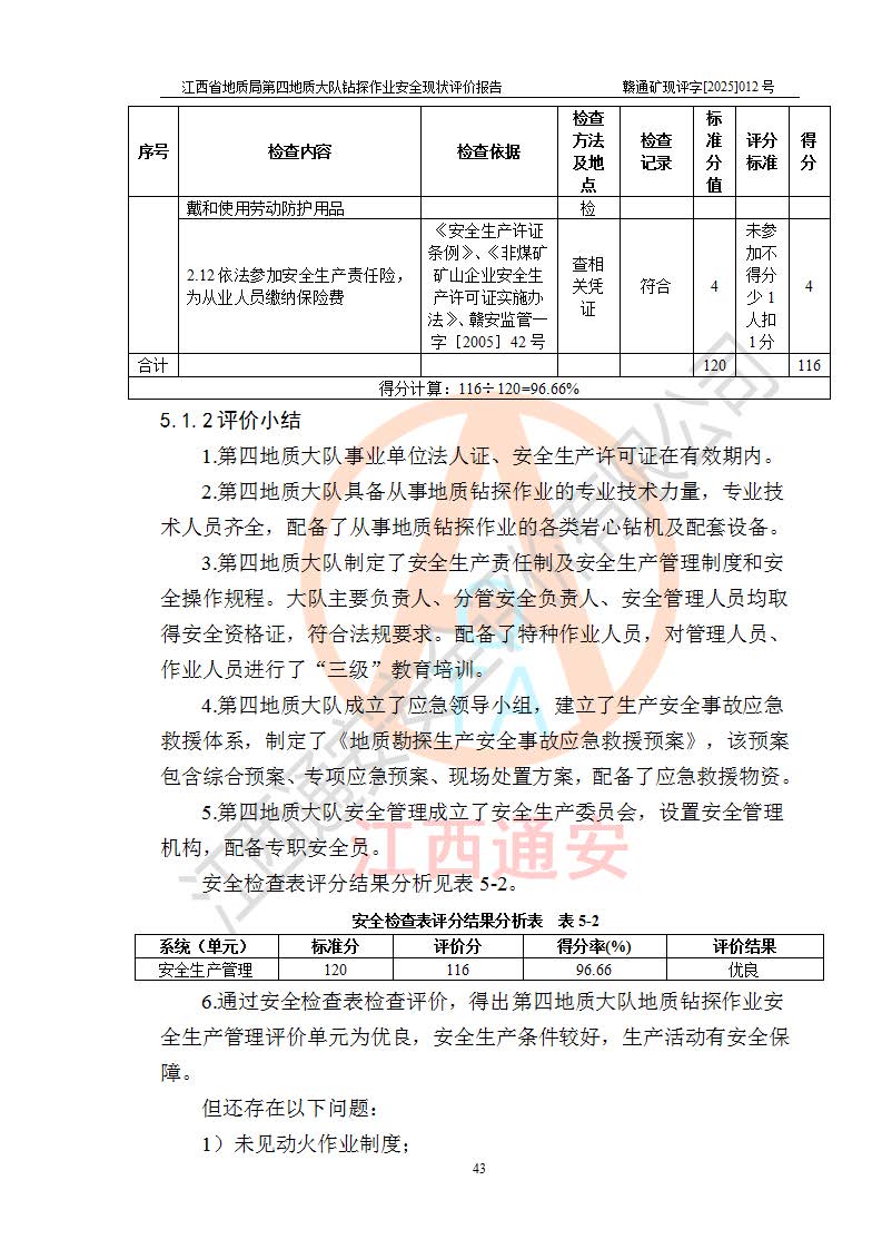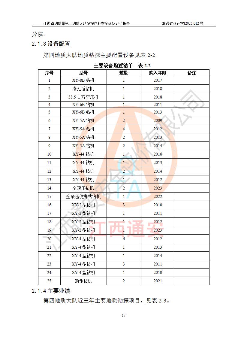報(bào)告名稱 | 江西省地質(zhì)局第四地質(zhì)大隊(duì)地質(zhì)鉆探作業(yè)安全現(xiàn)狀評(píng)價(jià)報(bào)告 | |||||