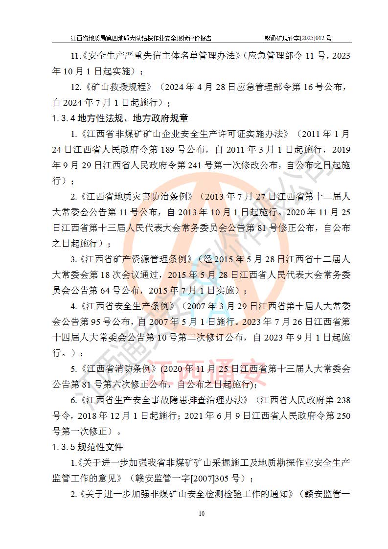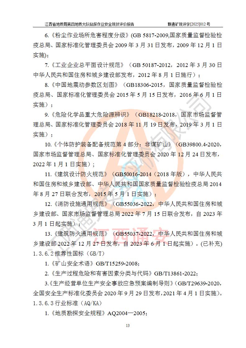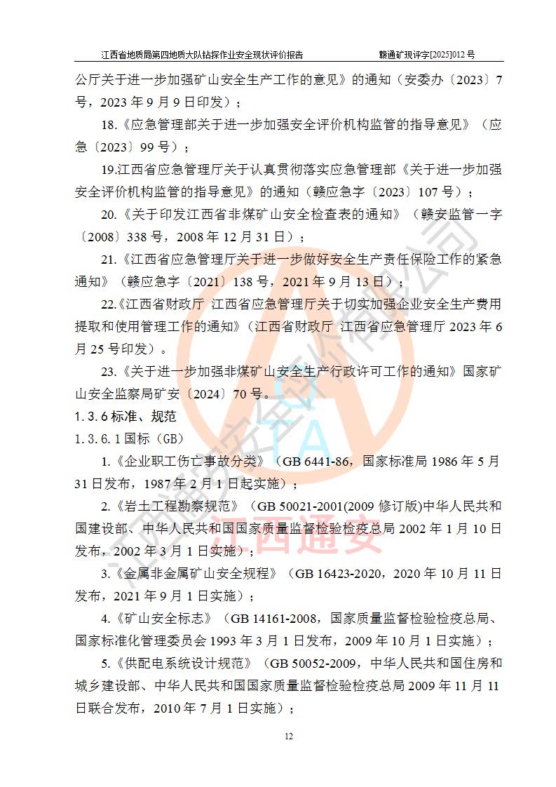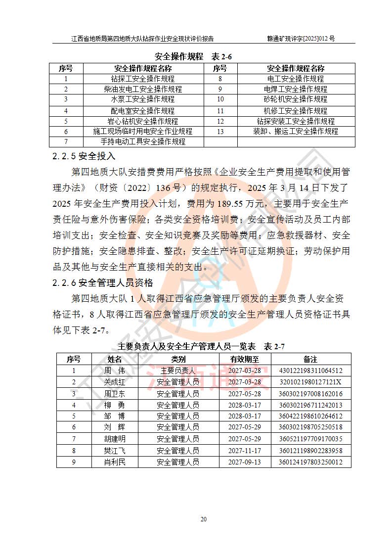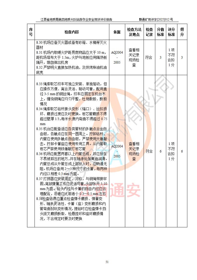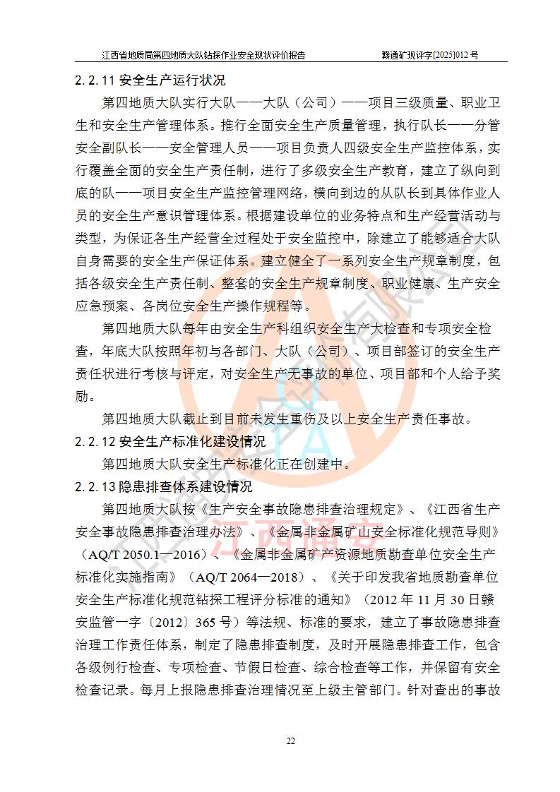 報(bào)告名稱 | 江西省地質(zhì)局第四地質(zhì)大隊(duì)地質(zhì)鉆探作業(yè)安全現(xiàn)狀評(píng)價(jià)報(bào)告 | |||||