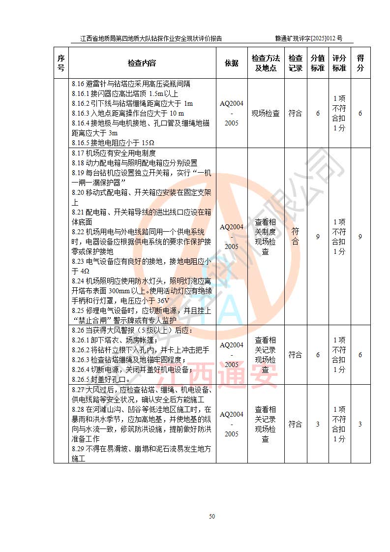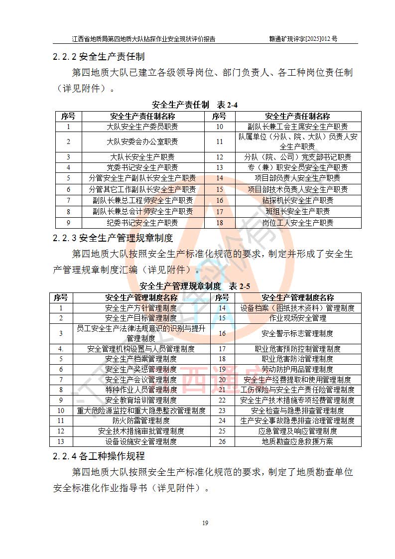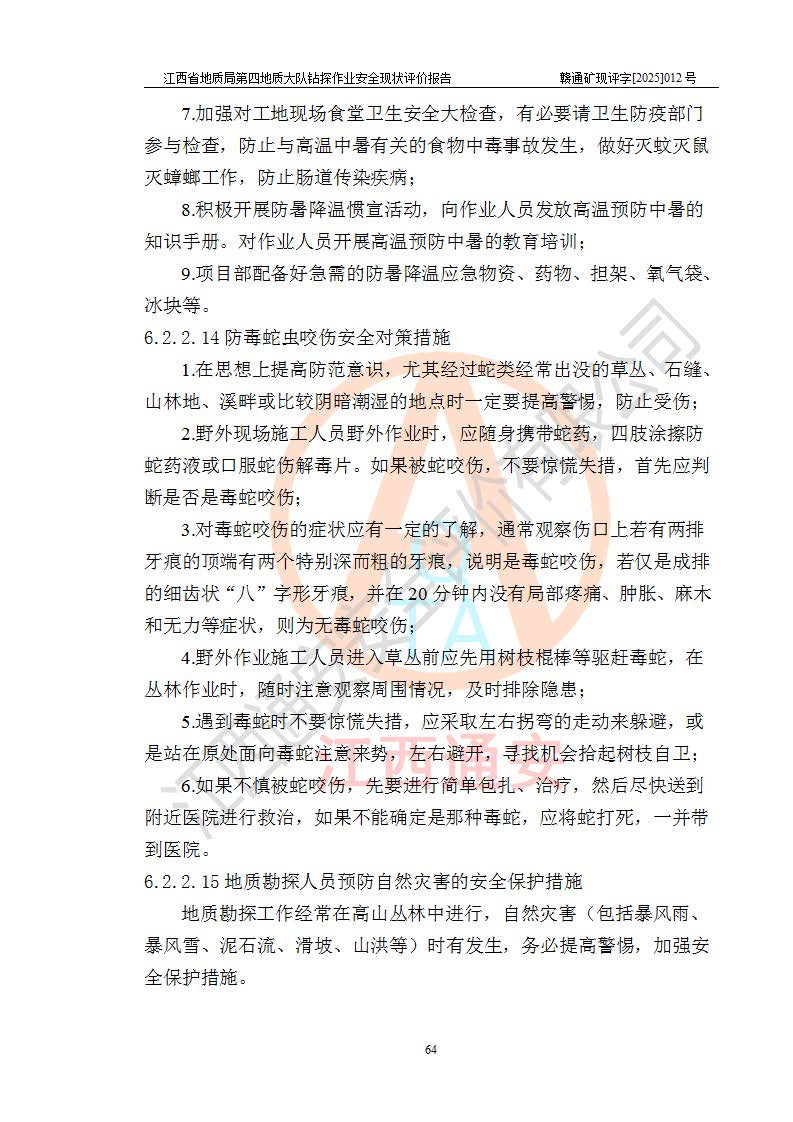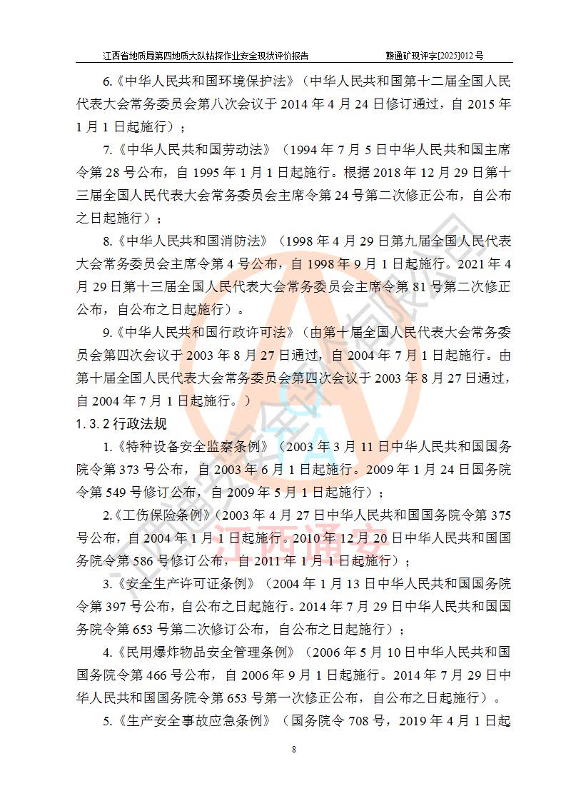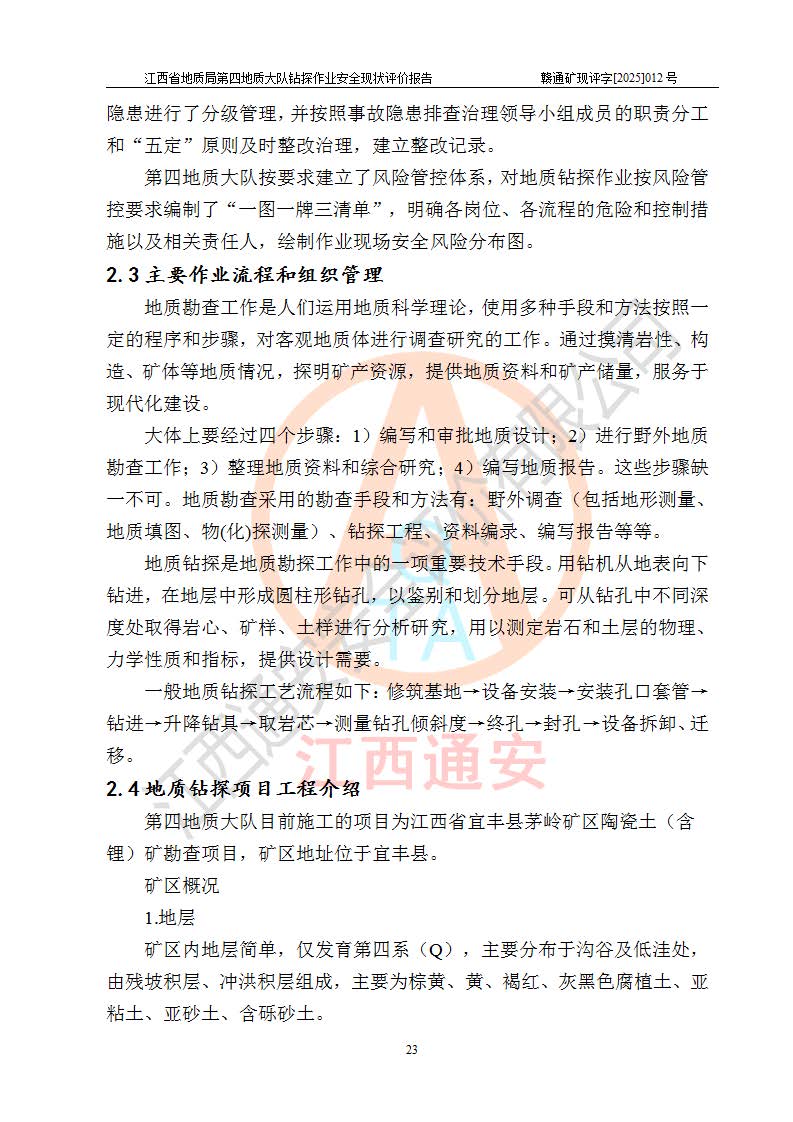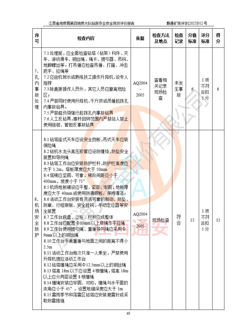 報(bào)告名稱 | 江西省地質(zhì)局第四地質(zhì)大隊(duì)地質(zhì)鉆探作業(yè)安全現(xiàn)狀評(píng)價(jià)報(bào)告 | |||||
